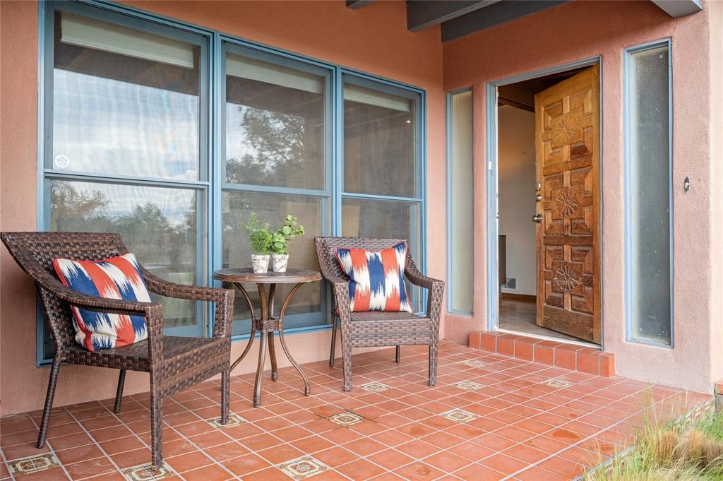 2,000 SF Mid-century Stamm home on .5 acre just south of South Capital. Close to schools,hospital, parks, and hiking. 3 Bedrooms, 2.5 Baths with a large second living area/den or possible fourth bedroom. A charming south-facing front patio welcomes you into the home. Walk through the entryway into a light-filled living room with exposed beams and original oak hardwood floors. The open floorplan is inviting, with the living room opening into a dining area and a beautifully updated kitchen with dining bar and granite counter tops. Skylight in the kitchen and dinning area lets in natural light. Excellent separation of bedrooms with the master and den at one end of the house and the two other bedrooms at the other. Double sinks and slate shower in the master bath. From the master bedroom, full-length glass doors lead outside and offer Jemez mountain views. Interior steps lead into the large and light-filled office or den, which boasts a Kiva fireplace and glass doors leading to a small shaded patio. Dedicated laundry room with utility sink. The concrete pad to the east of the house is perfect for RV/toys parking or possible basketball practice zone. Paved circular driveway and large yard with lots of room to garden or add-on. Several pinon trees in the front of the house. Backyard is a blank slate with views of the Jemez. Roof was redone in 2022 and is under transferable warranty. Aerial photos showing property location were taken before roof re-do.
