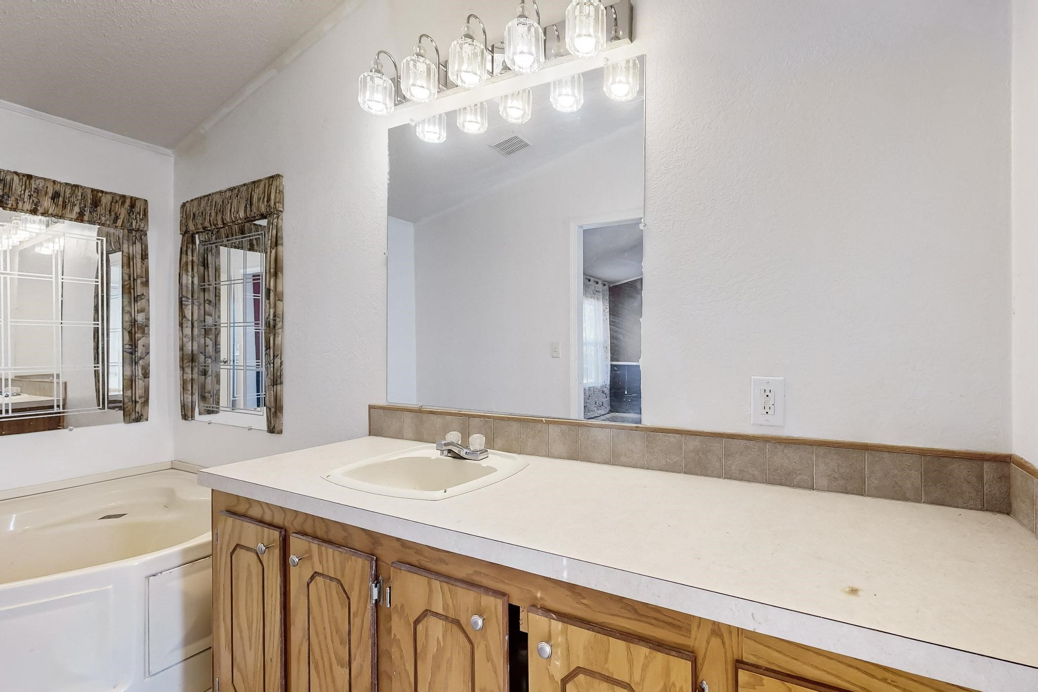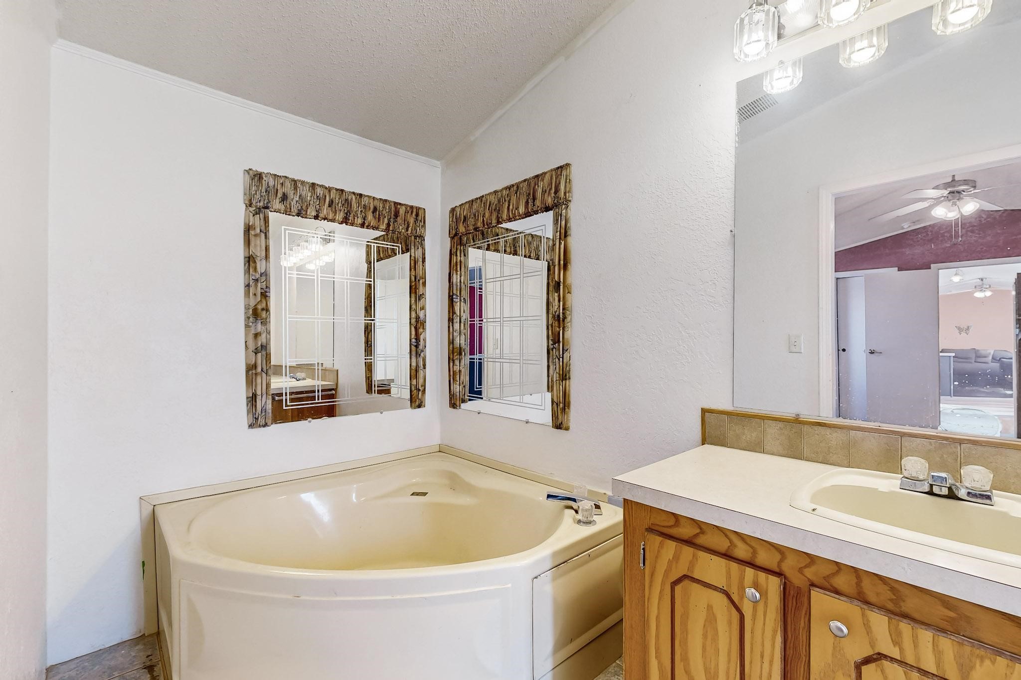 Charming home on a spacious lot! Don't miss out on this opportunity for an open floor plan that offers 3 bedrooms and 2 bathrooms, and many updates such as central air system, new energy efficient windows in the living, primary and third bedroom. The living area is light and bright with plenty of room for seating and entertaining. Enjoy the open kitchen with tons of cabinets and counter space, and eat-in dining area. The primary bedroom is well sized with it's own bathroom- complete with large vanity and garden tub for relaxation. Two secondary bedrooms and full bath to follow! Outside offers lots of room to make your own, With an open patio and plenty of yard out back to enjoy in the cool spring evenings and can accommodate a travel trailer, including a dedicated electrical pole. This home is close to shopping and schools, and ready for it's new owner!