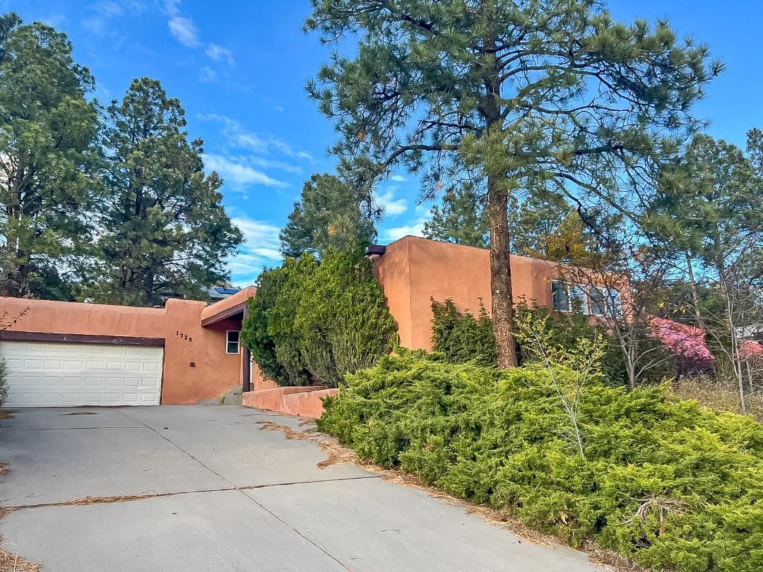 Charming 1930 sq. ft. 4 bedroom/ 2 bath ranch style home with heated two car garage (area not included in square footage figure). Has tongue and groove ceilings with vigas. Kiva fireplaces in living and family rooms. Kitchen open to family room. Cherrywood kitchen cabinets, Bosch convection range with warming drawer and microwave/ exhaust hood. Skylights in entry, kitchen, bath and hallway. New carpeting and paint. Forest-like, fenced back yard with patio, raised flower beds, Morgan garden shed, and dog run. Landscaped front with tall pines. South facing driveway (easy to clean snow.)