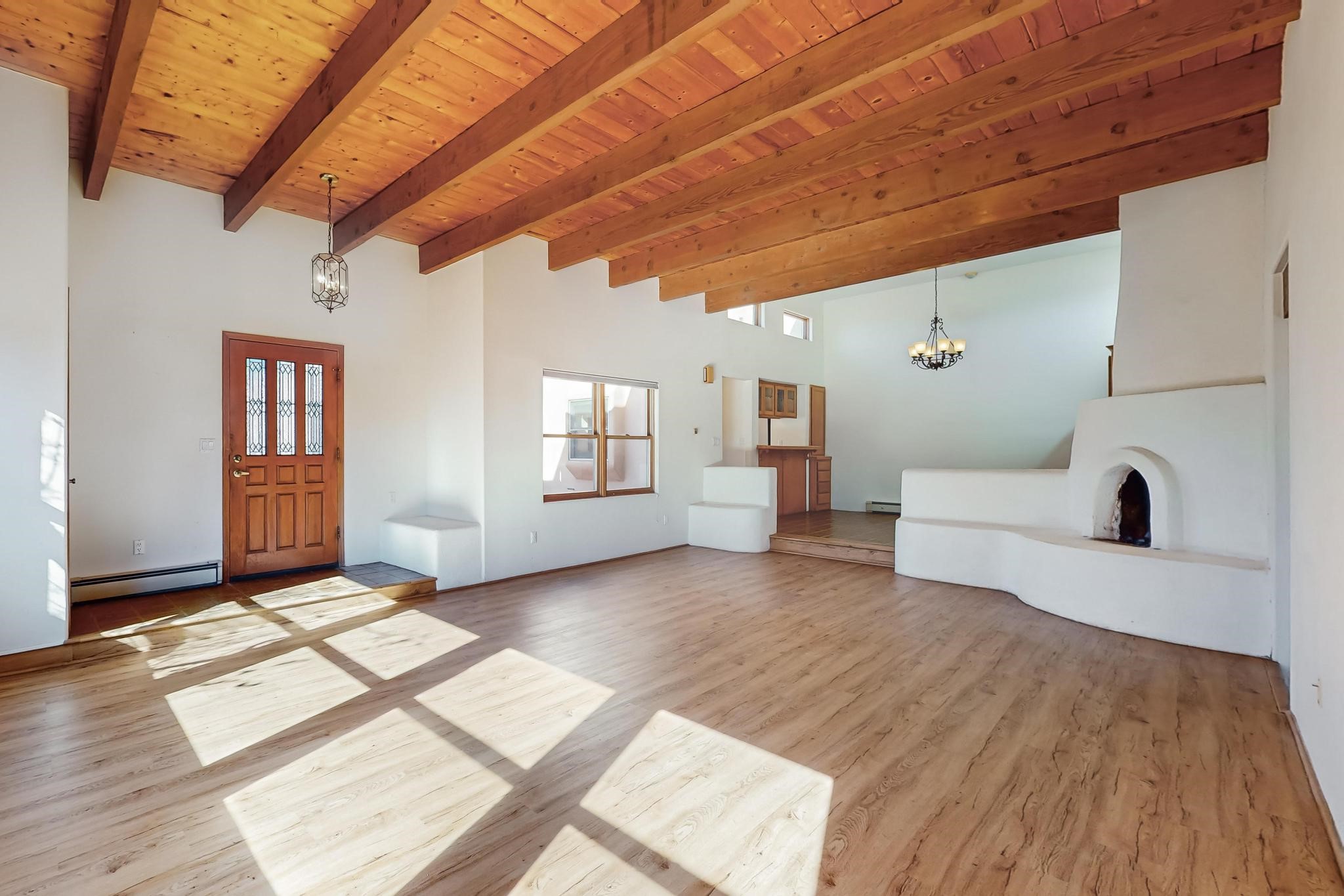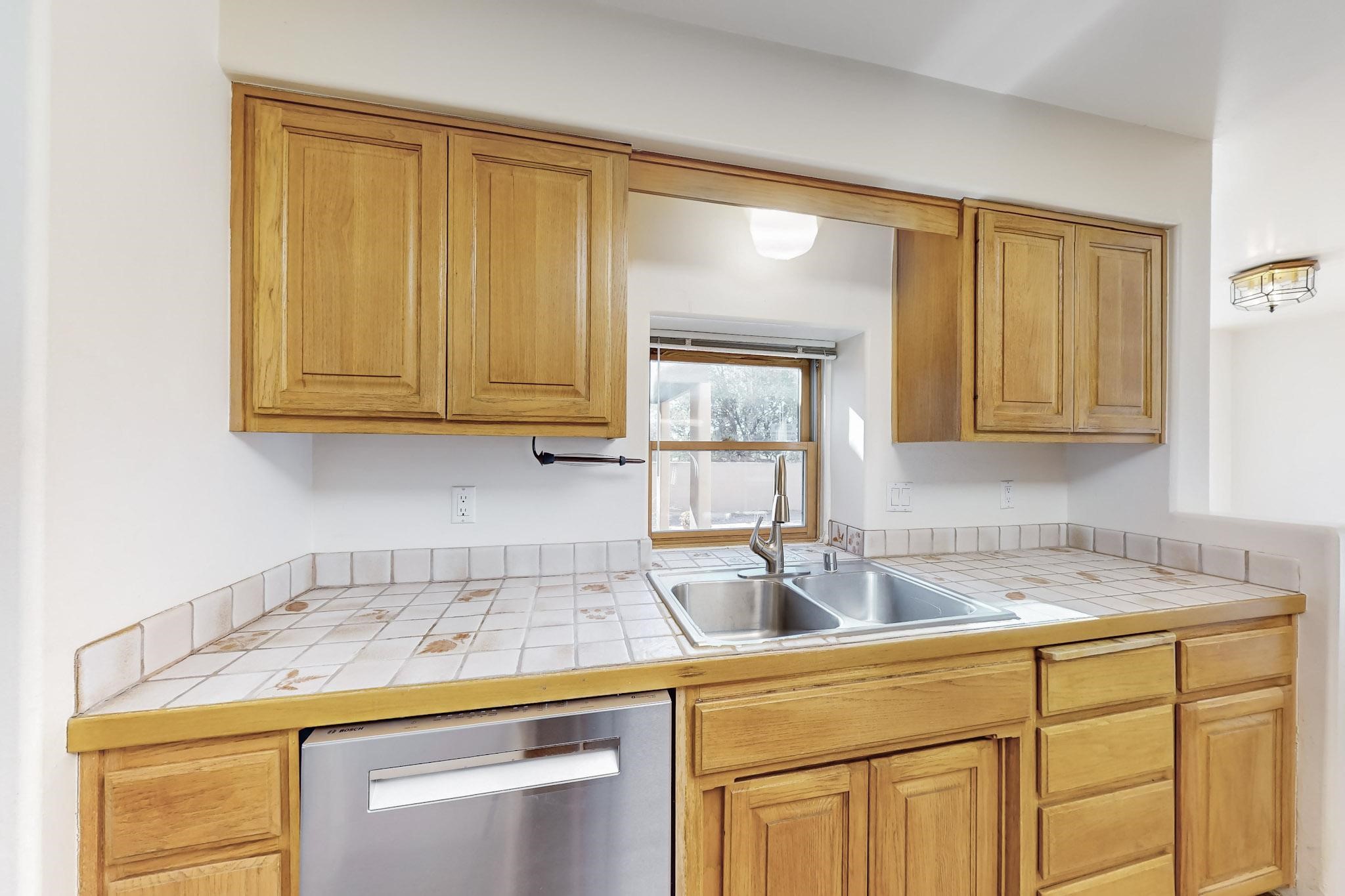 Opportunity knocks for those looking for a spacious one level townhouse is sought after community of Valle del Sol, less than a block to Ft. Marcy Park where you can enjoy a city recreation center, pickle ball courts and dog park. This is an excellent proximity to downtown Santa Fe! Two bedrooms, two full baths. Primary suite has a tub and shower, plus walk-in closet. This property has tremendous investment potential for the buyer who wants to modernize it. Upgraded kitchen appliances in place. The brand new TPO Roof comes with a 10-year labor warranty and 20 year manufacturer warranty transferrable at no cost to the new owner. Home is pre-inspected including a radon test.
