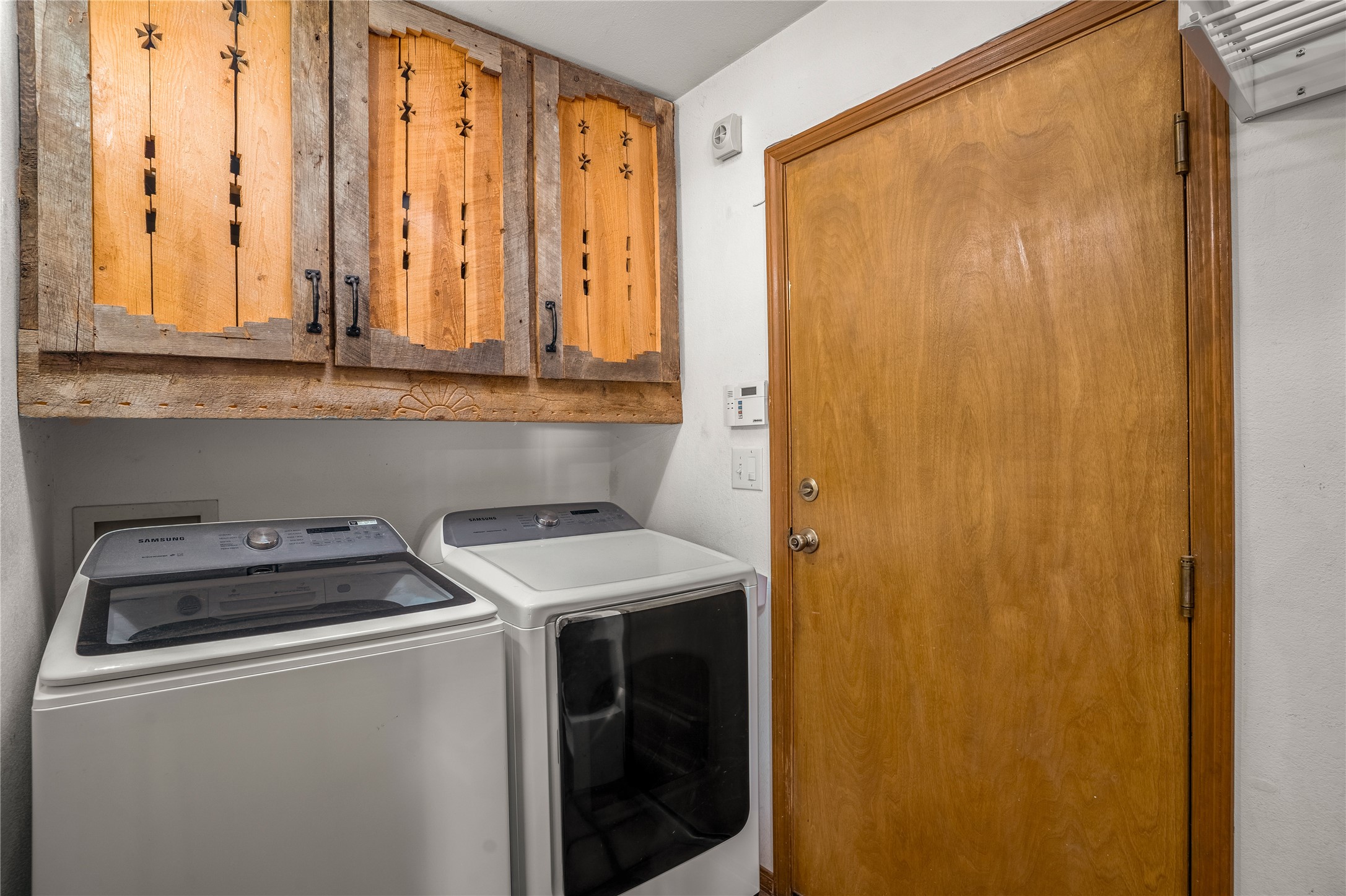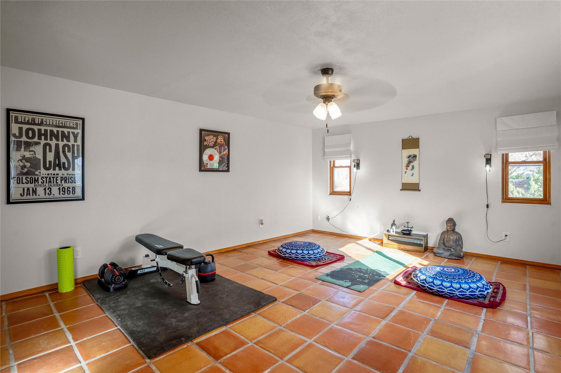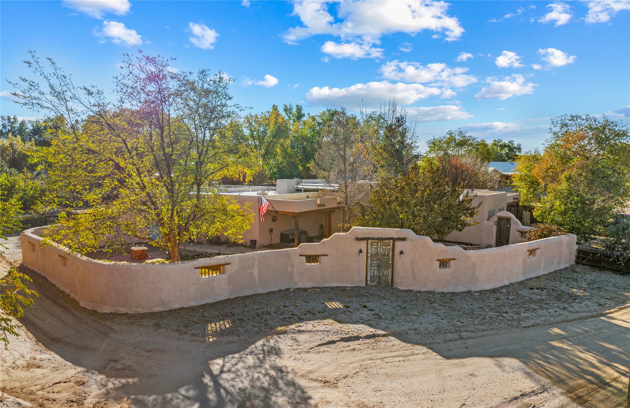 *Price Improvement* This charming New Mexico pueblo-style home is nestled on a private 0.75-acre setting at the end of a quiet, tree-lined private drive in La Mesilla. A stunning curved privacy wall surrounds the property, leading to a beautifully landscaped courtyard with established trees, flower beds, a lawn, drip irrigation, sprinklers, and even a small water featrure--perfect for relaxation and outdoor enjoyment. The home's spacious fenced backyard features, a gazebo, a back porch, and shade trees, ideal for entertaining or unwinding. Inside, the airy and bright open-concept layout boasts tall rustic beams, high ceilings, built-in bookshelves, saltillo tile, and wood grain ceramic flooring throughout. The living room, anchored by a wood-burning kiva fireplace with banco seating, flows seamlessly into the dining area and fully equipped kitchen, featuring stainless steel appliances, granite countertops, and a large pantry. The layout offers excellent bedroom separation, with the inviting primary suite on one side and two guest bedrooms, a spacious office, and a full bathroom on the other. Additional highlights include a large laundry room with cabinetry, an oversized two-car garage with ample storage, and surface water rights through the La Mesilla Community Ditch. Conveniently located approximately 25 miles from the Los Alamos and Santa Fe, this home offers peaceful rural living with modern amenities. Come experience the tranquility and beauty of this exceptional property!