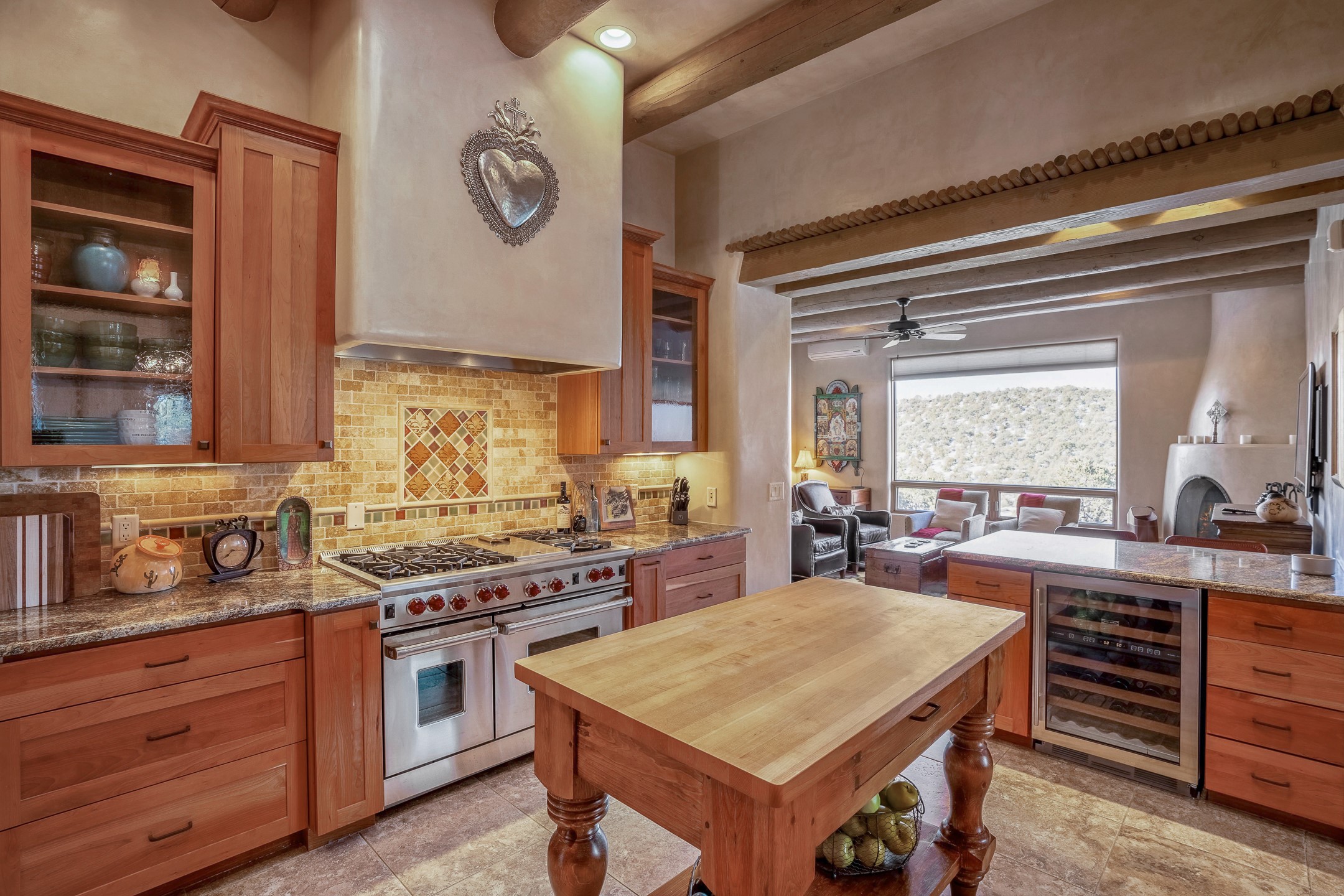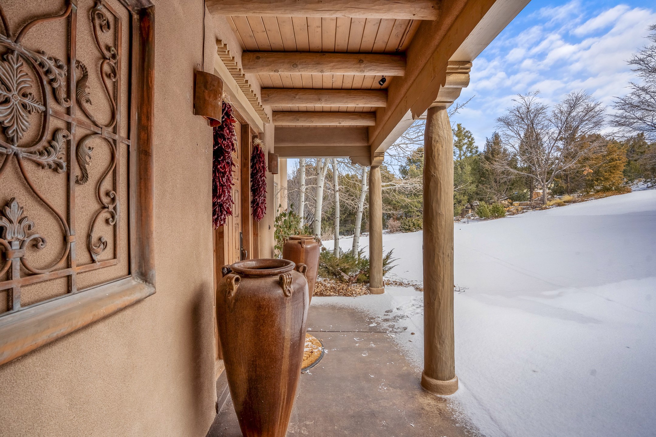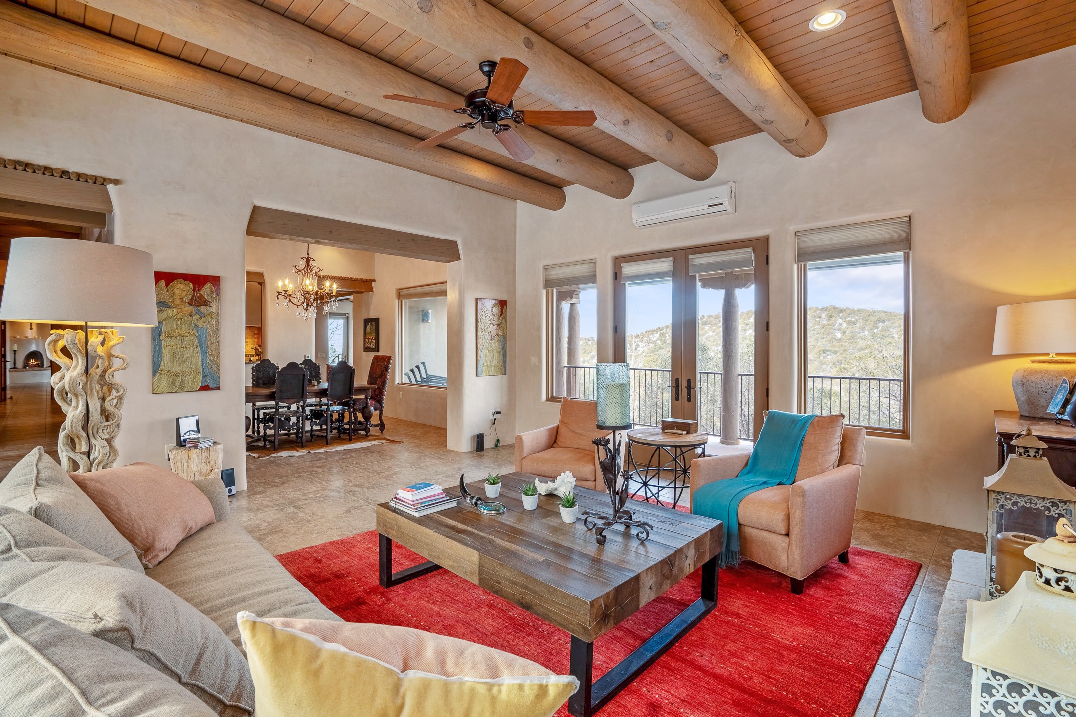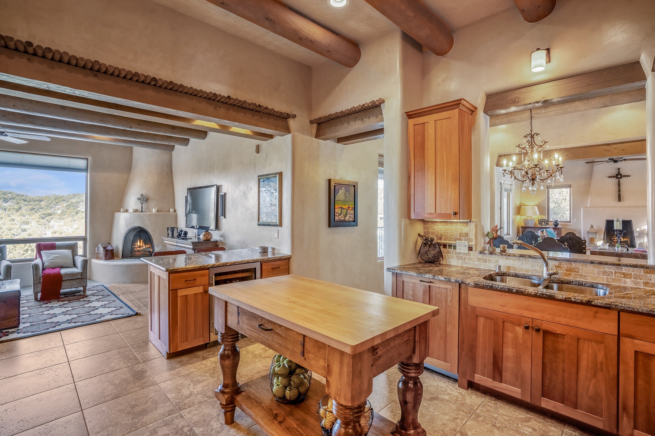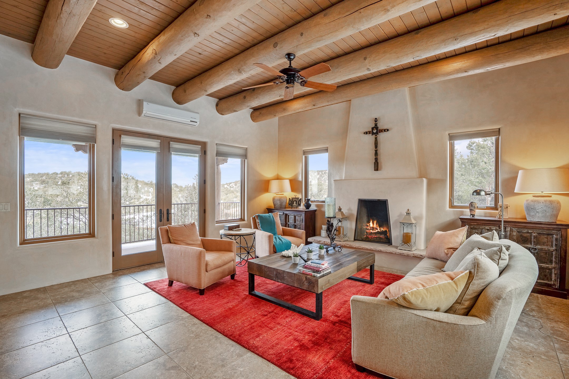 Discover Timeless Santa Fe Elegance at 2020 Senda De AndresNestled within the coveted Cerros Colorados community, this exquisite home perfectly blends traditional Santa Fe charm with modern luxury, offering breathtaking alpine views and a peaceful retreat. Designed for effortless mainly one-level living, this 3-bedroom, 3-bathroom residence embodies sophistication and comfort. The main level welcomes you with a light-filled living room featuring a grand kiva fireplace, authentic vigas and tongue-and-groove ceilings, and hand-troweled plaster walls that radiate warmth and character. The gourmet kitchen is a chef's dream, equipped with top-of-the-line Wolf and Sub-Zero appliances, a wine refrigerator, and custom cabinetry. It flows seamlessly into the dining and den areas, creating an ideal space for entertaining. The primary suite is a luxurious haven, offering a jetted corner tub, walk-in shower, dual closets, and its own kiva fireplace for ultimate relaxation. Step outside onto the expansive rear deck to soak in the panoramic mountain views, perfect for quiet mornings or evening gatherings. The lower level boasts two generously sized guest bedrooms and a full bathroom, ensuring comfort and privacy for family and guests. Refined details, such as porcelain tile flooring throughout, enhance the home's timeless elegance. New roof and stucco in 2024, new boiler and water heater added in 2025. Ideally located just minutes from Santa Fe's vibrant cultural attractions and outdoor adventures, this home is also perfectly positioned right down the hill from Ski Santa Fe, making it a dream for winter sports enthusiasts. 2020 Senda De Andres offers a lifestyle of tranquility, beauty, and sophistication. This exceptional property is more than a home--it's an experience. Schedule your showing today.