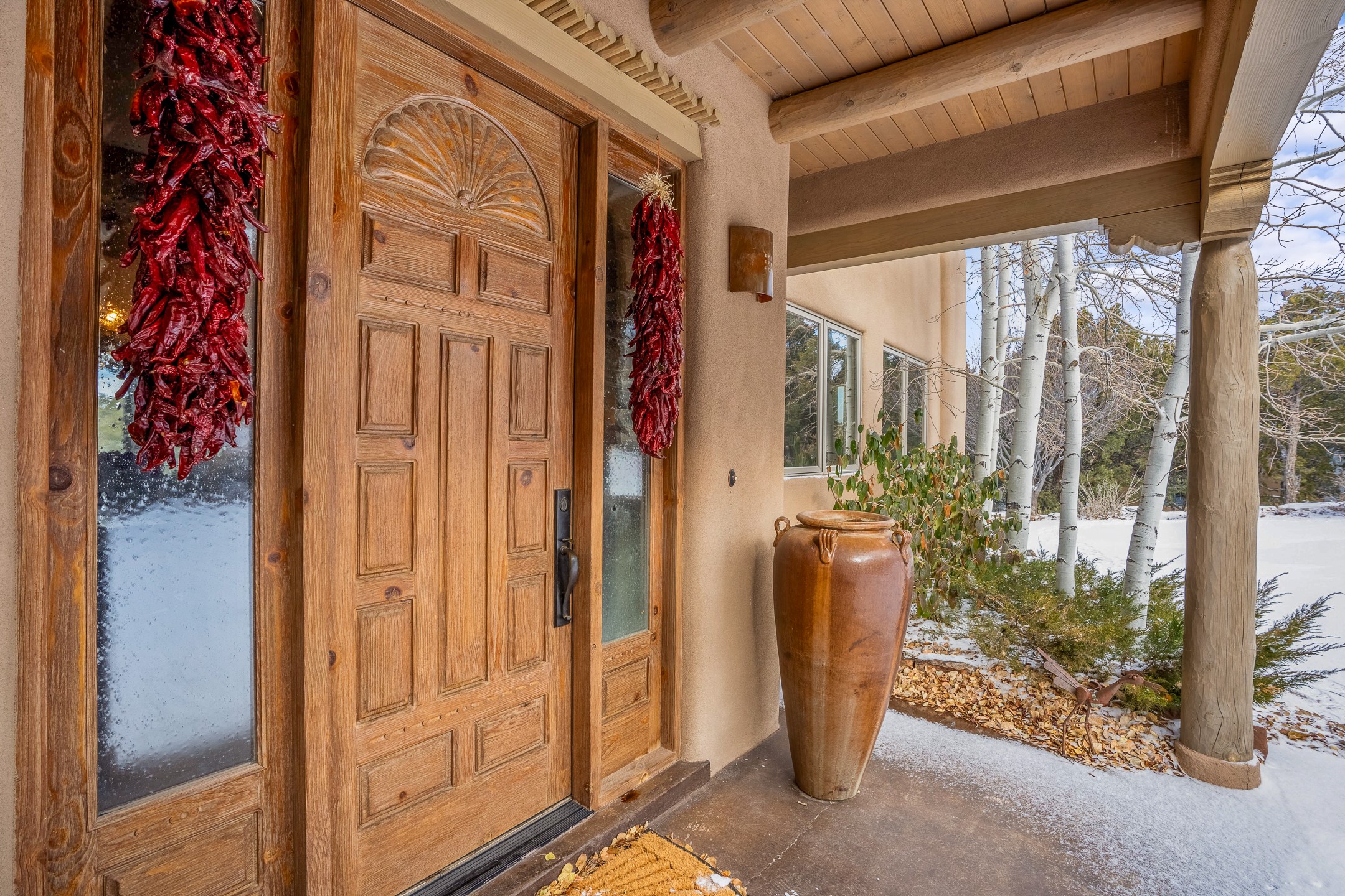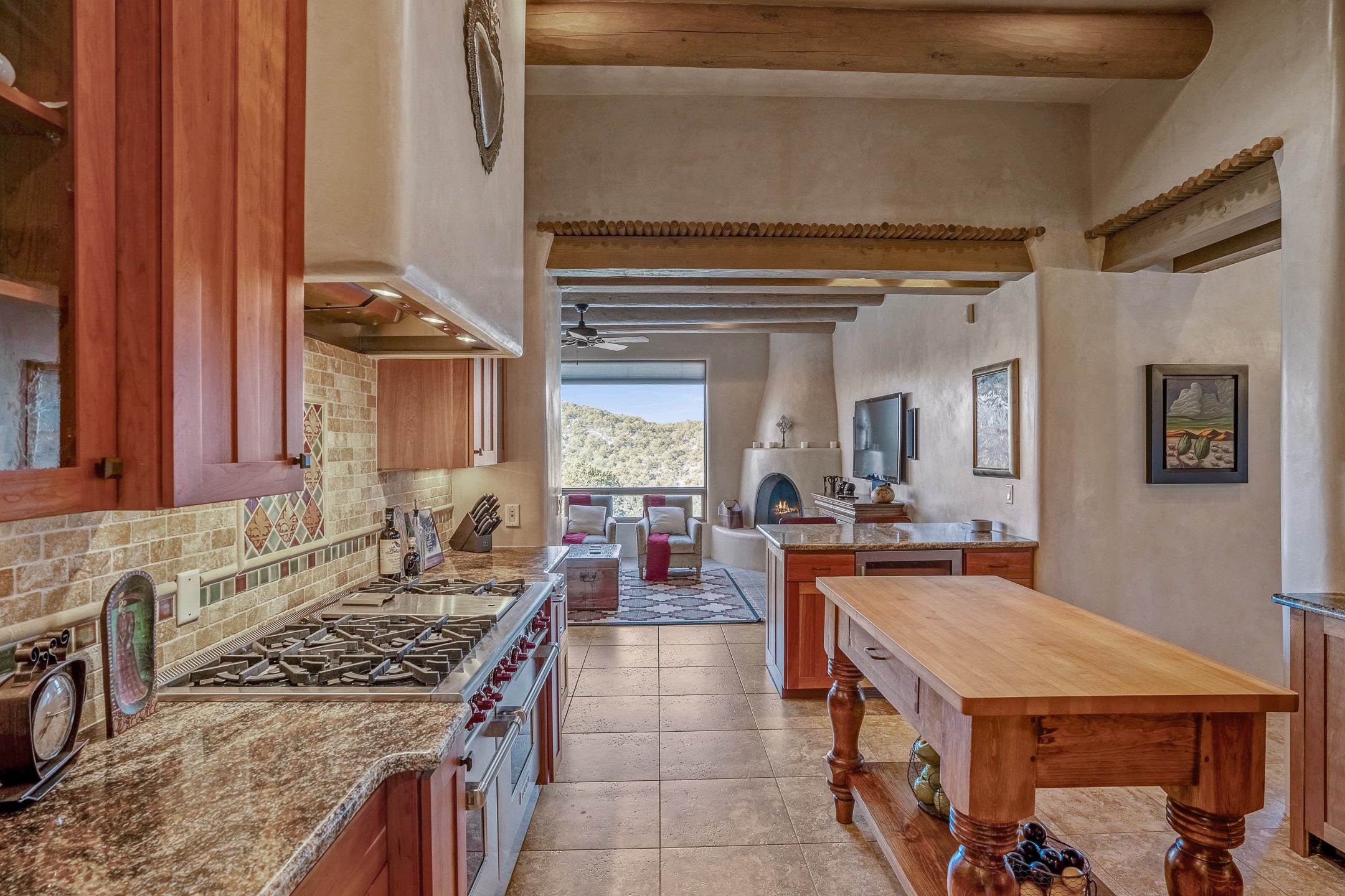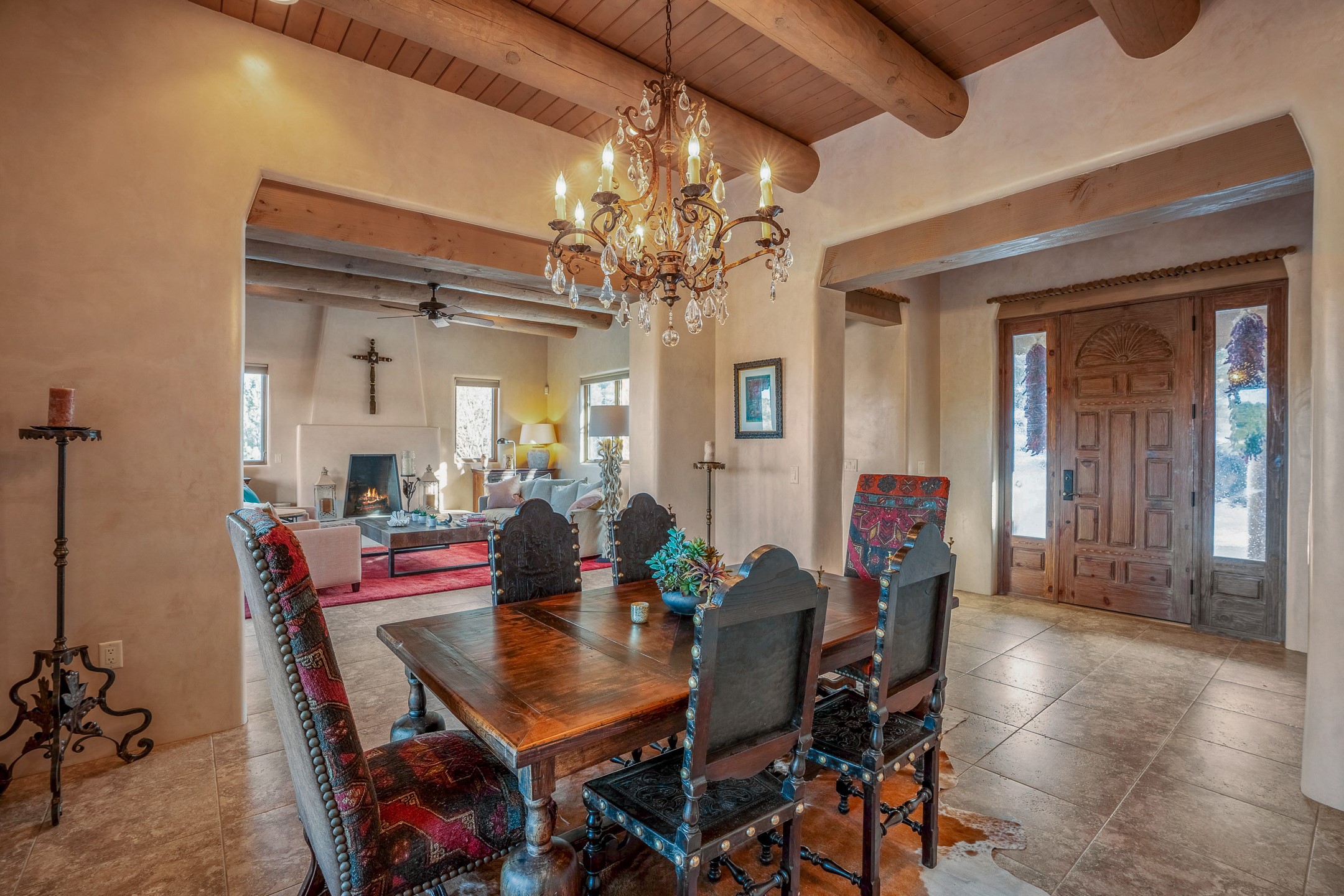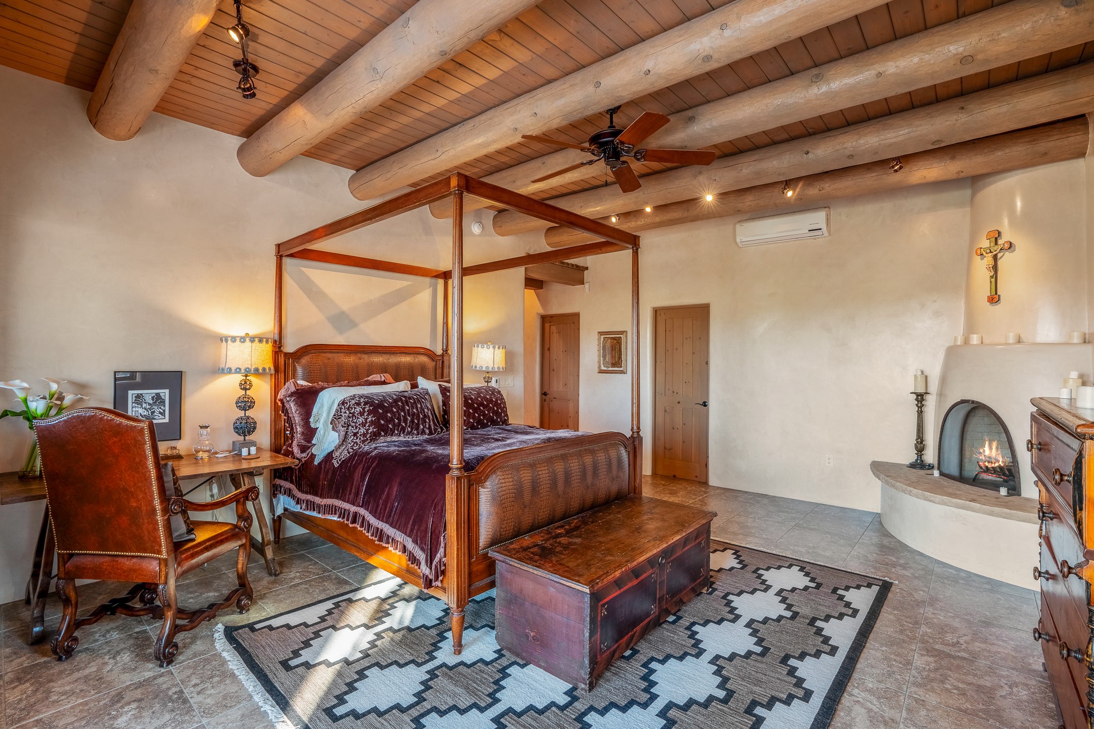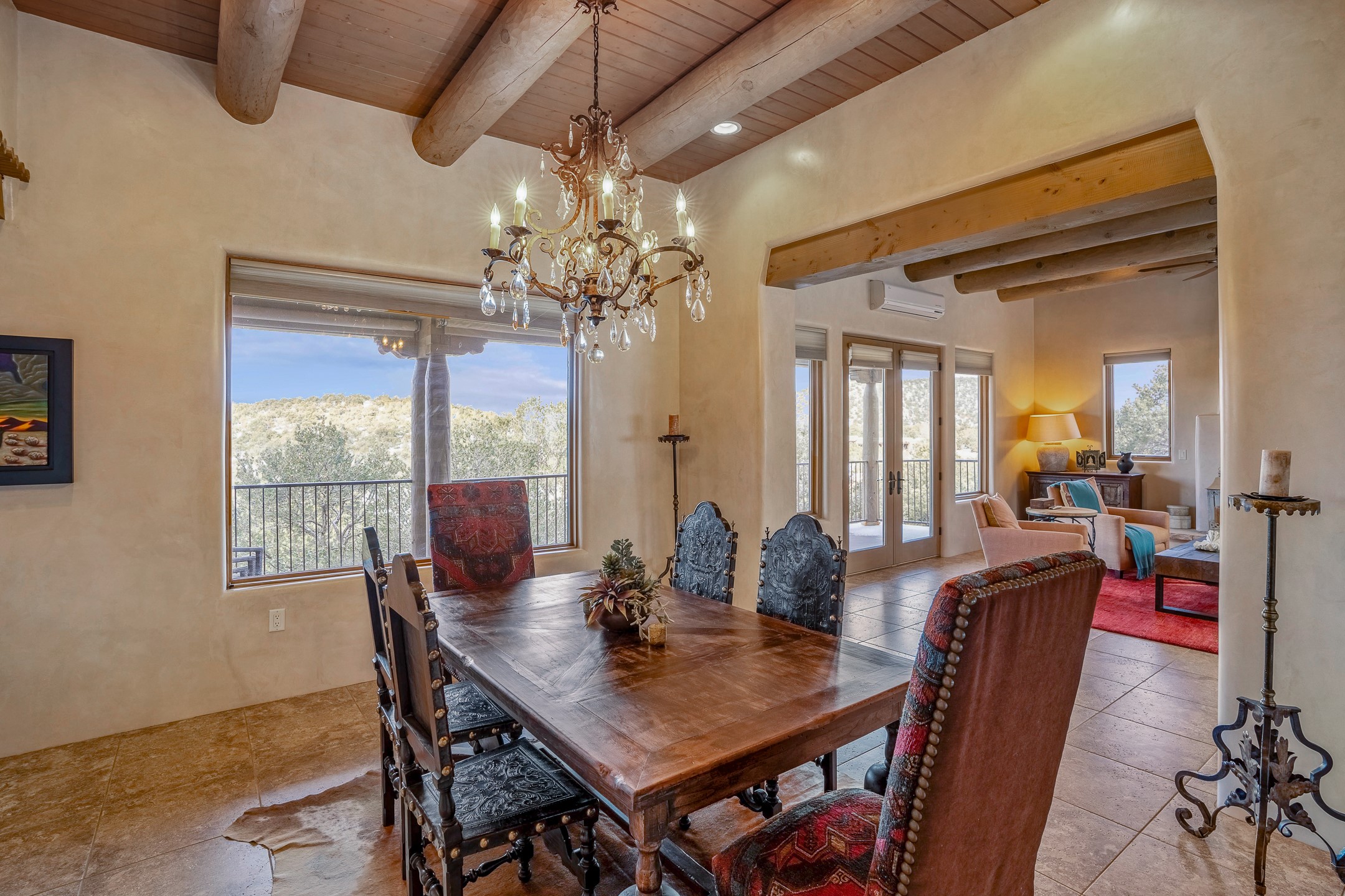 Discover Timeless Santa Fe Elegance at 2020 Senda De AndresNestled within the coveted Cerros Colorados community, this exquisite home perfectly blends traditional Santa Fe charm with modern luxury, offering breathtaking alpine views and a peaceful retreat. Designed for effortless mainly one-level living, this 3-bedroom, 3-bathroom residence embodies sophistication and comfort. The main level welcomes you with a light-filled living room featuring a grand kiva fireplace, authentic vigas and tongue-and-groove ceilings, and hand-troweled plaster walls that radiate warmth and character. The gourmet kitchen is a chef's dream, equipped with top-of-the-line Wolf and Sub-Zero appliances, a wine refrigerator, and custom cabinetry. It flows seamlessly into the dining and den areas, creating an ideal space for entertaining. The primary suite is a luxurious haven, offering a jetted corner tub, walk-in shower, dual closets, and its own kiva fireplace for ultimate relaxation. Step outside onto the expansive rear deck to soak in the panoramic mountain views, perfect for quiet mornings or evening gatherings. The lower level boasts two generously sized guest bedrooms and a full bathroom, ensuring comfort and privacy for family and guests. Refined details, such as porcelain tile flooring throughout, enhance the home's timeless elegance. New roof and stucco in 2024, new boiler and water heater added in 2025. Ideally located just minutes from Santa Fe's vibrant cultural attractions and outdoor adventures, this home is also perfectly positioned right down the hill from Ski Santa Fe, making it a dream for winter sports enthusiasts. 2020 Senda De Andres offers a lifestyle of tranquility, beauty, and sophistication. This exceptional property is more than a home--it's an experience. Schedule your showing today.