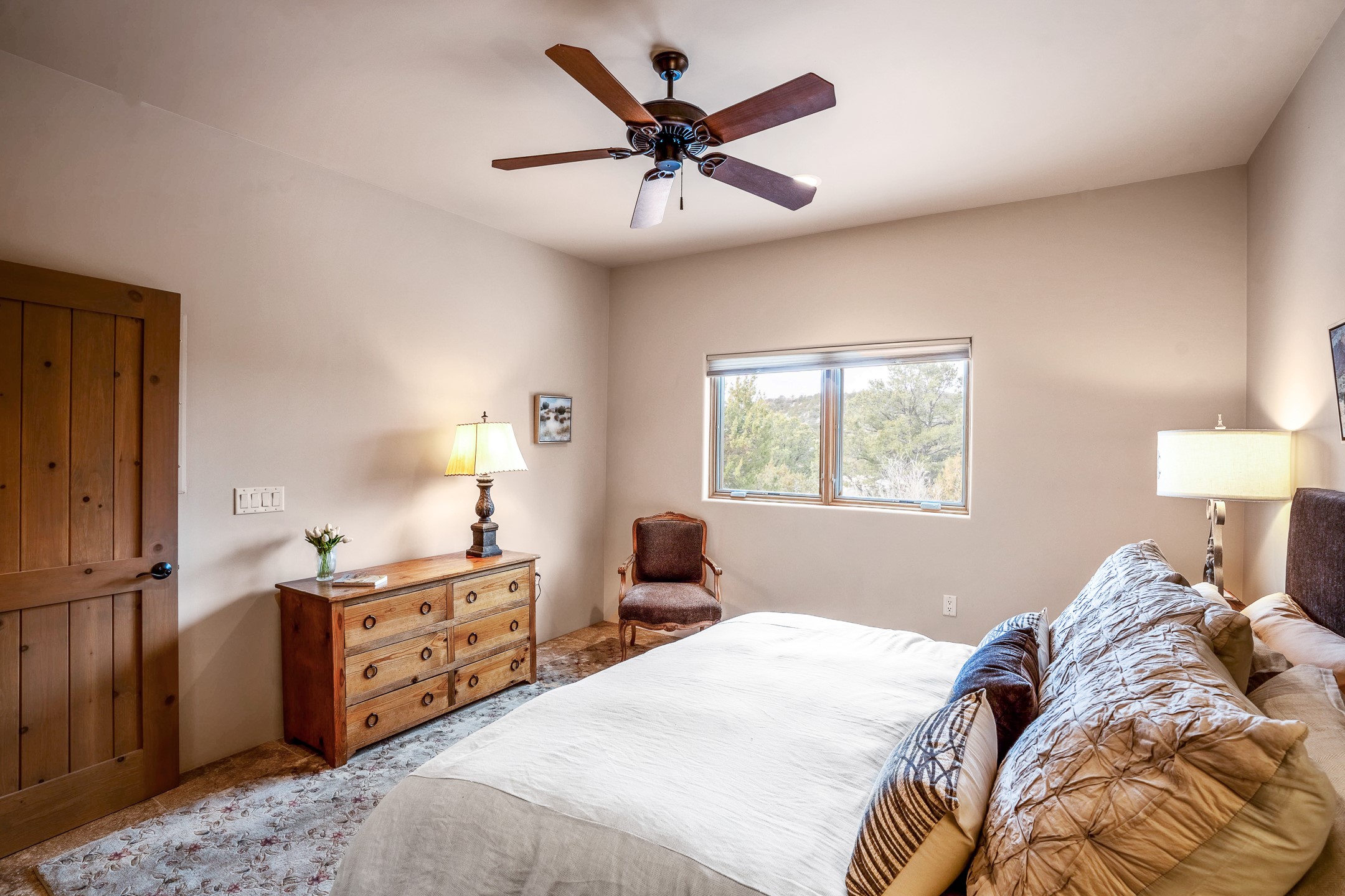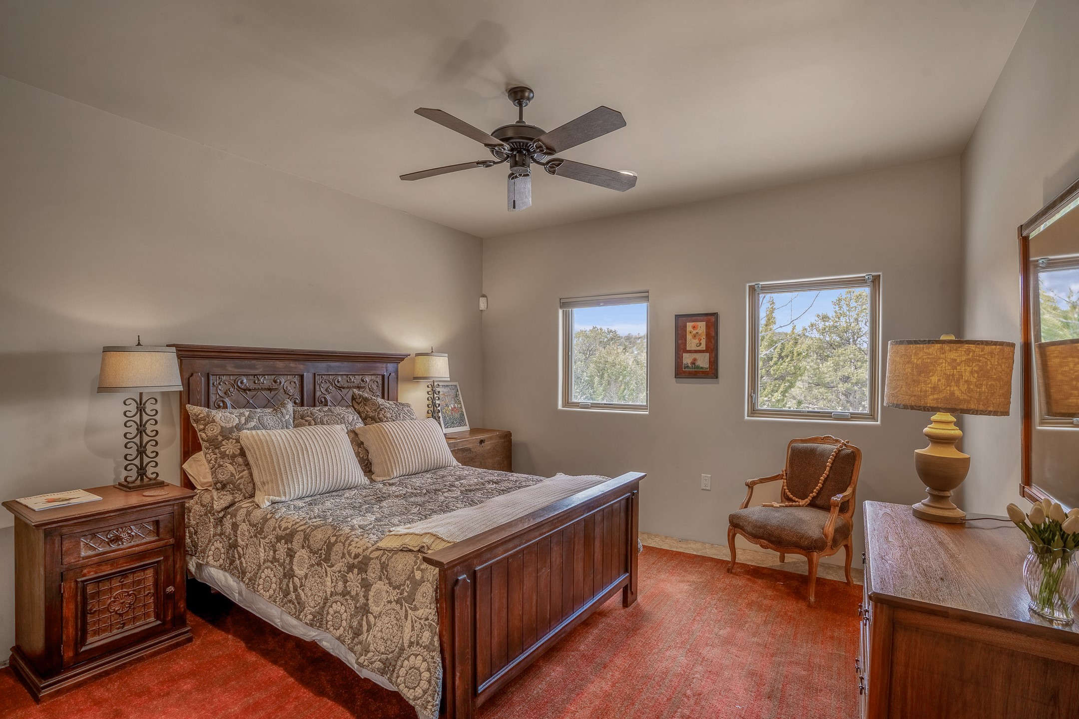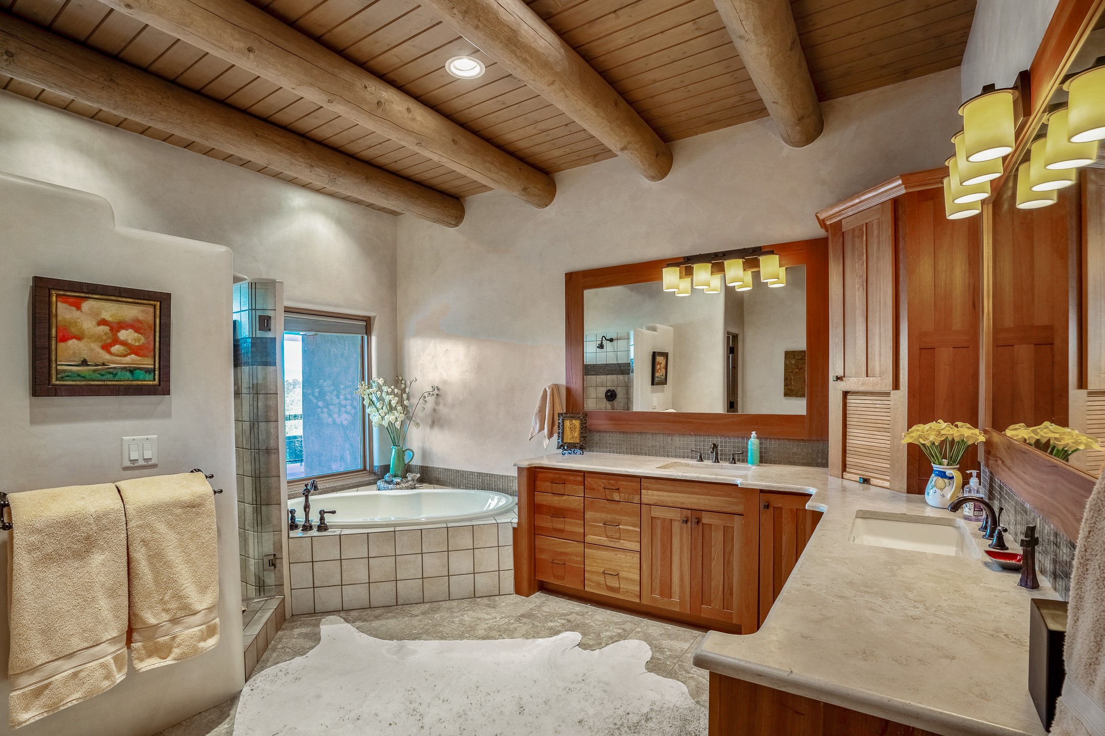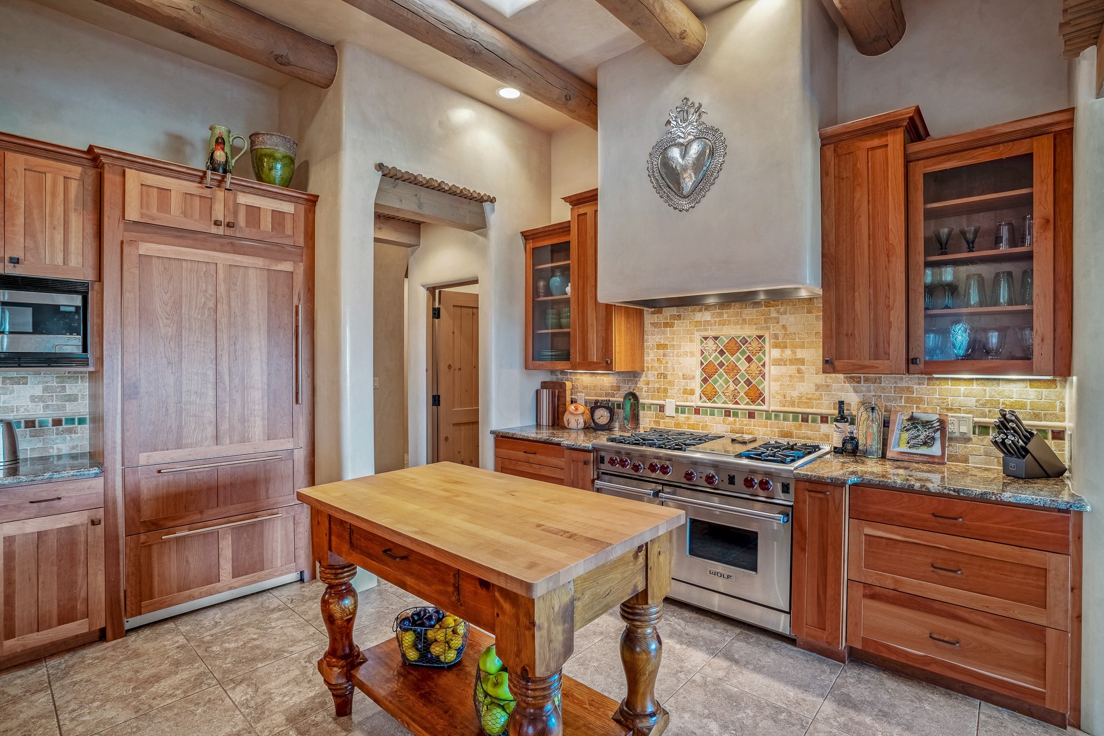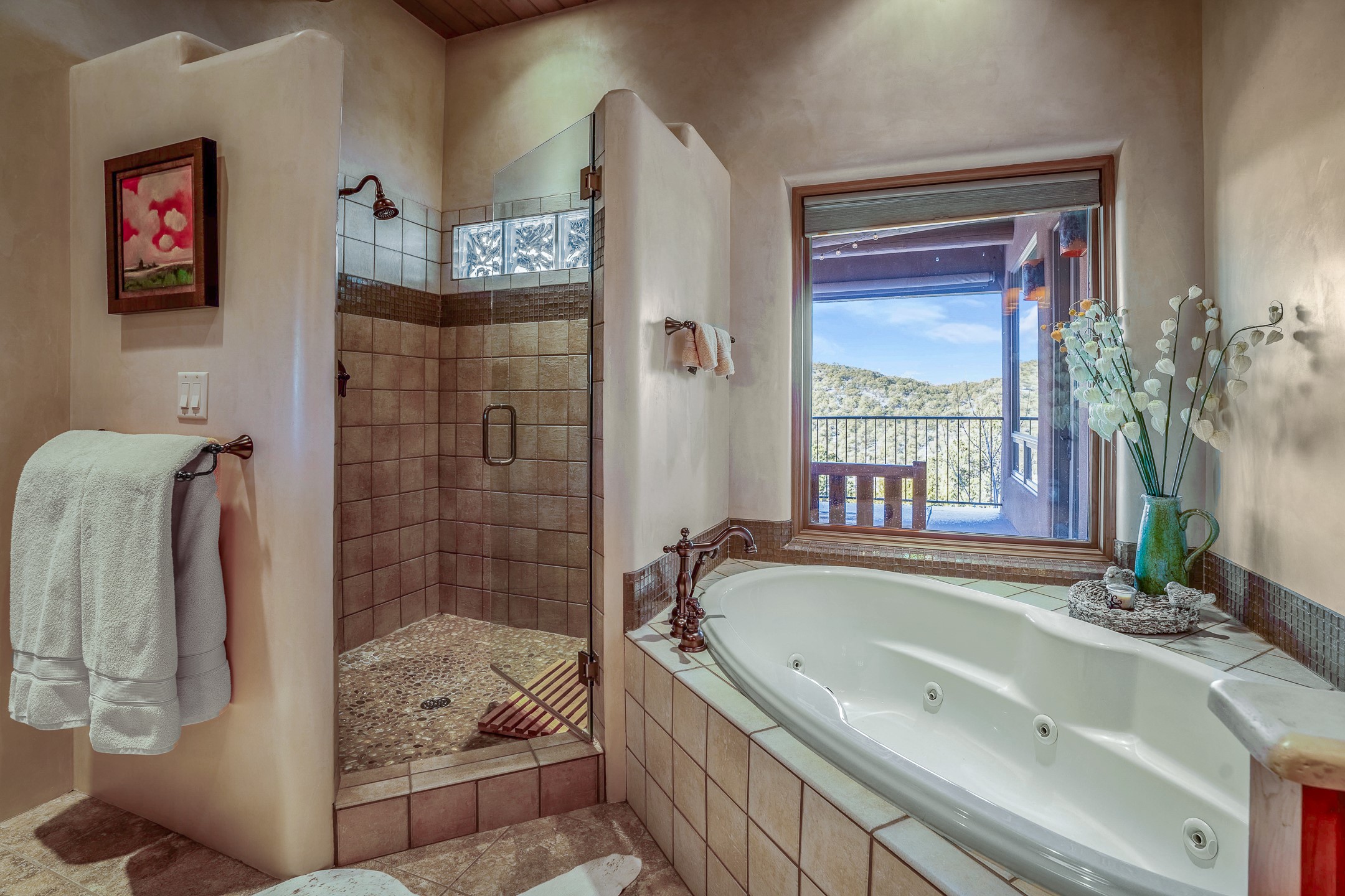 Discover Timeless Santa Fe Elegance at 2020 Senda De AndresNestled within the coveted Cerros Colorados community, this exquisite home perfectly blends traditional Santa Fe charm with modern luxury, offering breathtaking alpine views and a peaceful retreat. Designed for effortless mainly one-level living, this 3-bedroom, 3-bathroom residence embodies sophistication and comfort. The main level welcomes you with a light-filled living room featuring a grand kiva fireplace, authentic vigas and tongue-and-groove ceilings, and hand-troweled plaster walls that radiate warmth and character. The gourmet kitchen is a chef's dream, equipped with top-of-the-line Wolf and Sub-Zero appliances, a wine refrigerator, and custom cabinetry. It flows seamlessly into the dining and den areas, creating an ideal space for entertaining. The primary suite is a luxurious haven, offering a jetted corner tub, walk-in shower, dual closets, and its own kiva fireplace for ultimate relaxation. Step outside onto the expansive rear deck to soak in the panoramic mountain views, perfect for quiet mornings or evening gatherings. The lower level boasts two generously sized guest bedrooms and a full bathroom, ensuring comfort and privacy for family and guests. Refined details, such as porcelain tile flooring throughout, enhance the home's timeless elegance. New roof and stucco in 2024, new boiler and water heater added in 2025. Ideally located just minutes from Santa Fe's vibrant cultural attractions and outdoor adventures, this home is also perfectly positioned right down the hill from Ski Santa Fe, making it a dream for winter sports enthusiasts. 2020 Senda De Andres offers a lifestyle of tranquility, beauty, and sophistication. This exceptional property is more than a home--it's an experience. Schedule your showing today.