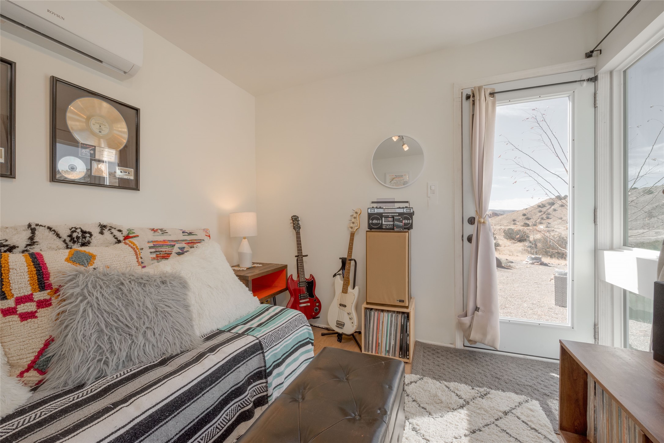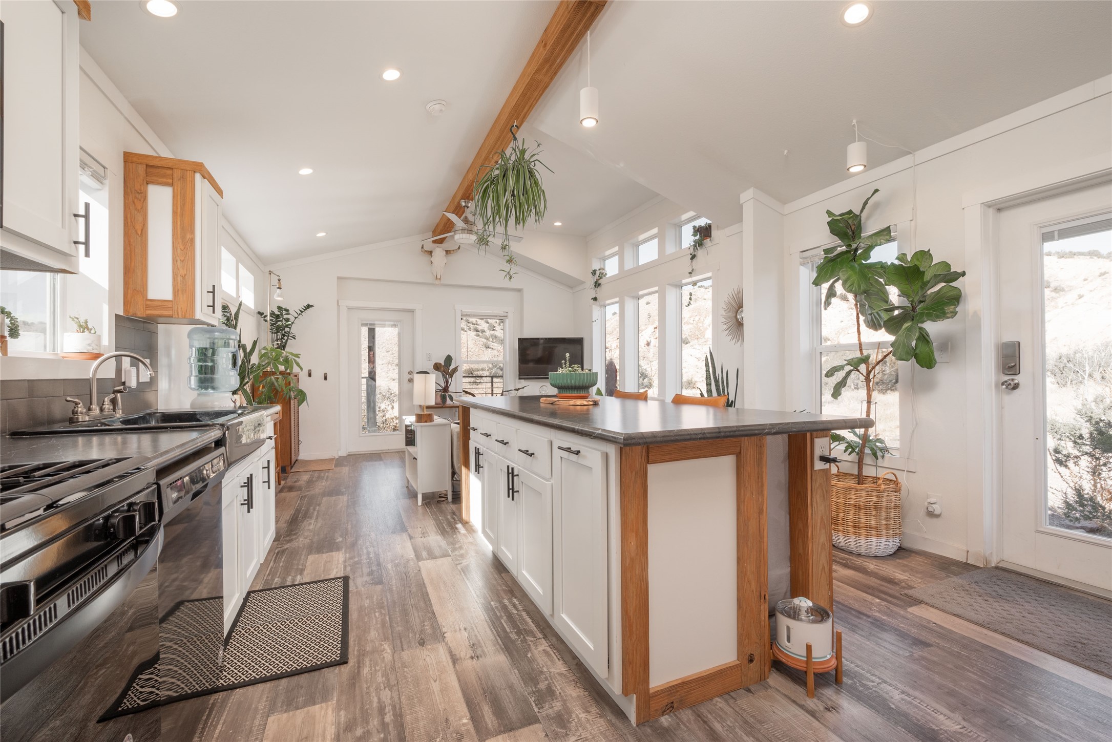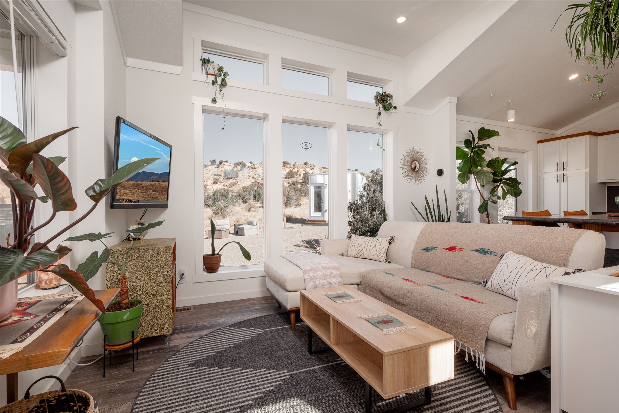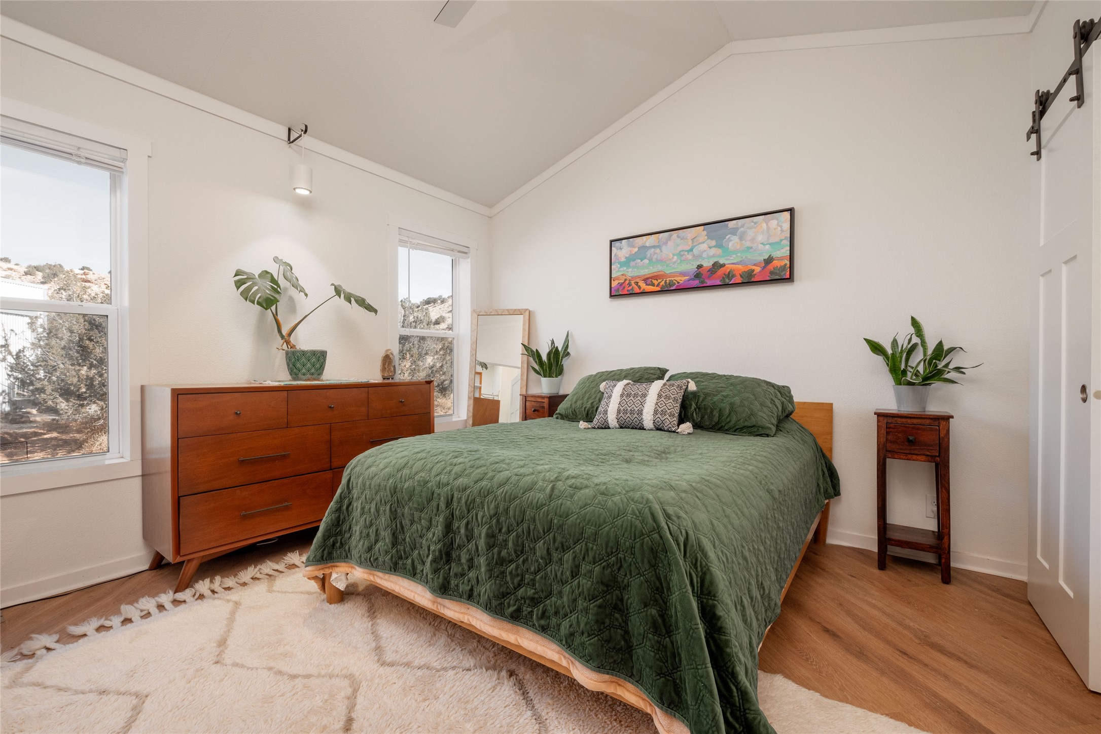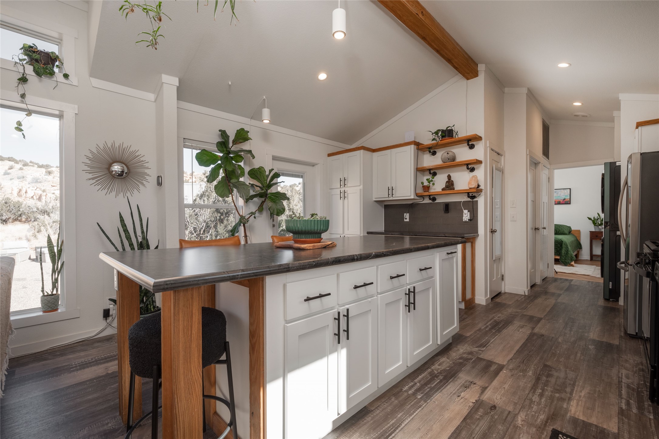 Tucked away at the end of a private, gated road, this turnkey, charming, and modern off-grid manufactured home offers the perfect blend of comfort and sustainability. Situated on over 10 pristine acres and nestled near the base of Sierra Negra, enjoy breathtaking views of red sandstone cliffs and the Jemez Mountains. This bright, light-filled home is newly built and placed on a permanent foundation in 2022. Enjoy high ceilings and a modern kitchen in this thoughtfully designed home with a pitched pro-panel roof and forced air heating and cooling for year-round comfort. The detached studio/guesthouse with a mini-split system provides the perfect space for guests, a home office, or creative pursuits.The property is fully equipped for off-grid living with owned solar panels, lithium batteries, a climate-controlled solar shed, and a Generac propane generator for peace of mind. A private well equipped with a 2500-gallon cistern ensures a reliable water source and a 500-gallon propane tank completes the picture. The generous TuffShed storage provides additional convenience, and the expansive acreage is perfect for horse enthusiasts with plenty of room to ride out.Enjoy a tranquil, sustainable lifestyle with easy access off NM 554 without compromising on modern comforts. Convenient to Abiquiu, Espanola, Los Alamos, and Santa Fe. Don't miss out on this unique property! Please schedule in ShowingTime and wait for confirmation.