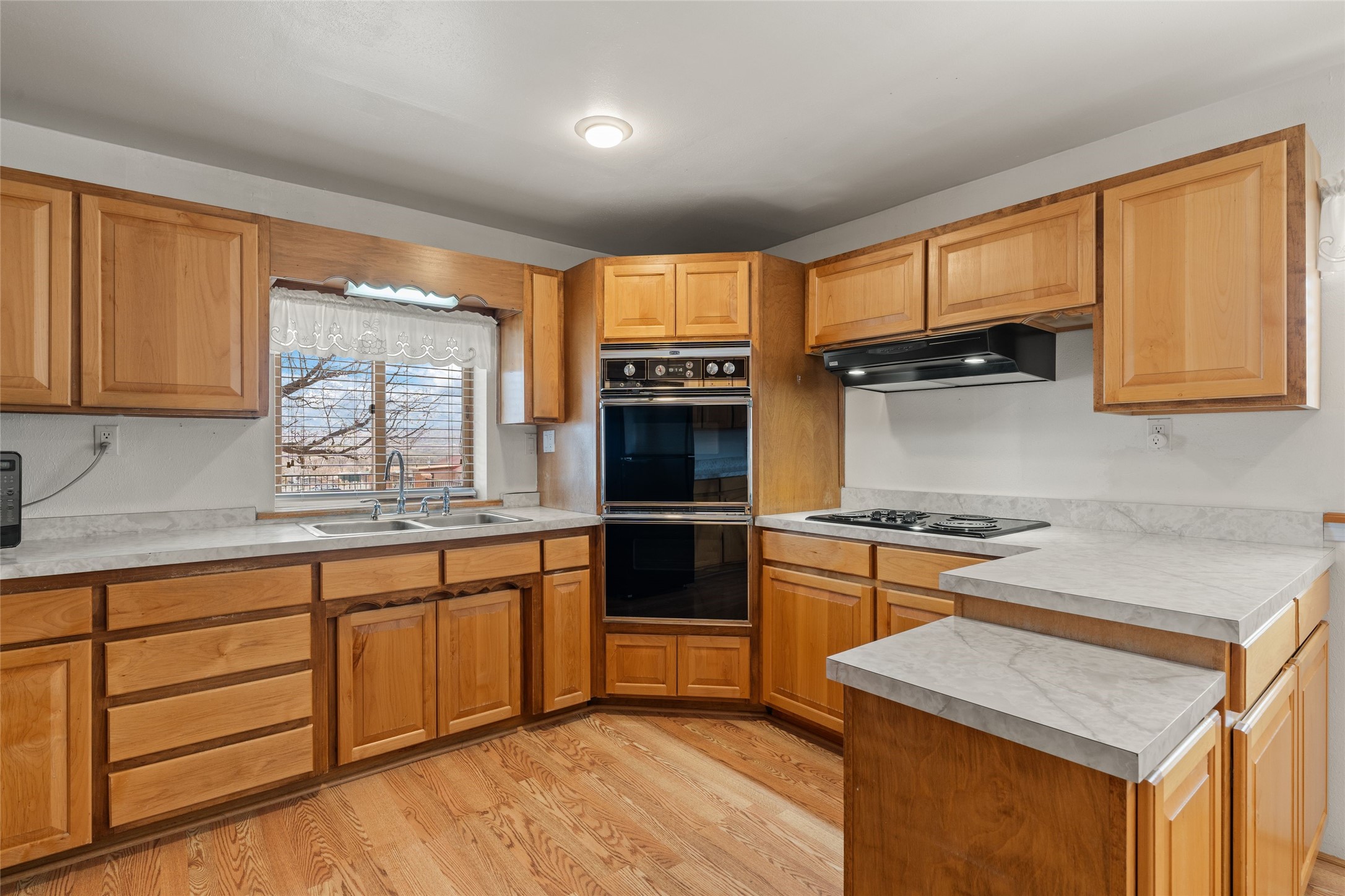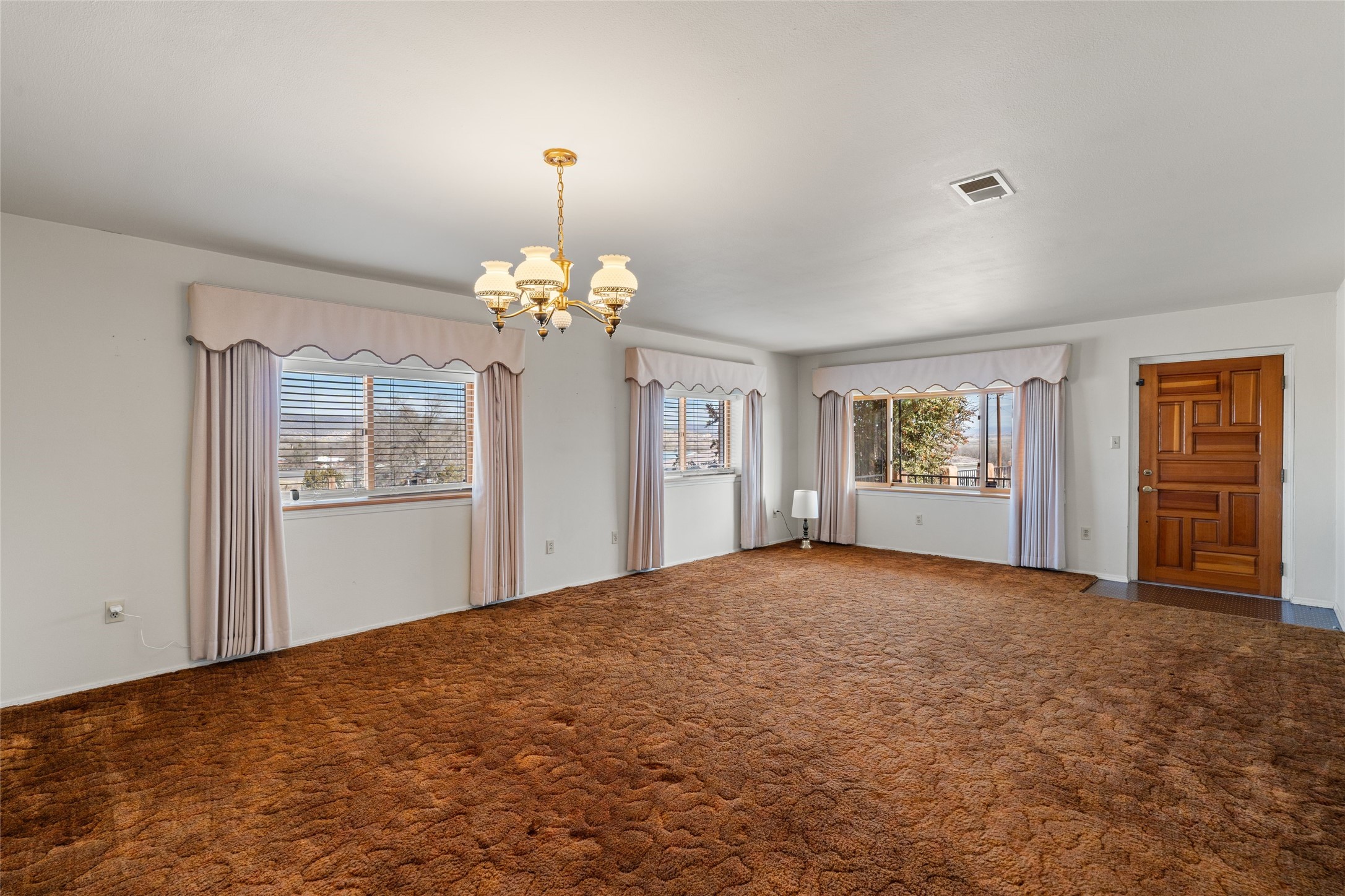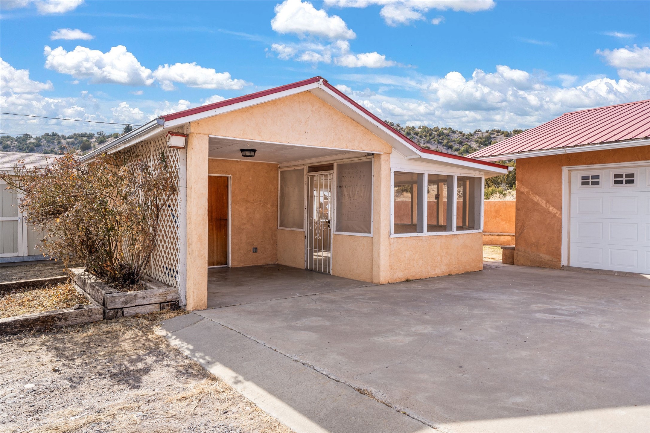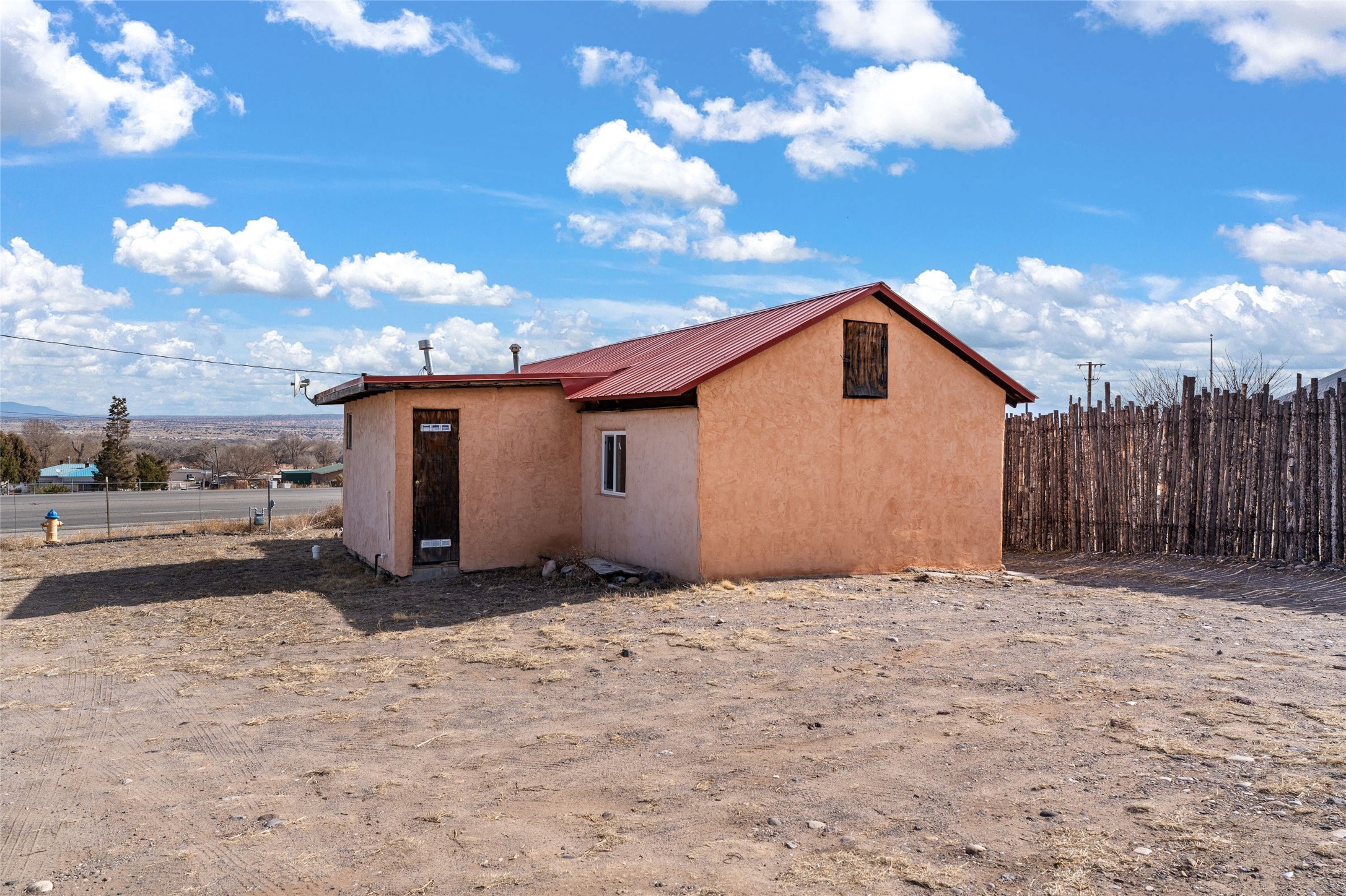 Simply sweet, Pitched Roof Northern NM, part Adobe home and detached Guest Apartment located above the Lush Espanola Valley. On the Westside of the Rio Grande River, lies a well-loved family residence, that offers much to those looking for privacy (the property is 1 acres plus!), close access to the town of Espanola, and a short drive to Los Alamos. Single level, spacious living areas and bedrooms. The large porch with the ability for screens is perfect for dinners and parties or could make a fabulous green house. Three bedrooms in the main house, two bathrooms, attached two car garage. Heaters in house are electric, all appliances electric. Facing the Valley, a fully enclosed yard with healthy fruit bearing tree. There is ample storage in the garage as well as two separate storage areas for tools, gardening equipment, and more. Below the main house is a fully equipped guest apartment with kitchen, living, 1 bedroom, and full bath. Heater in guest apartment is natural gas, there are Two septic systems, 1 for house 1 for guest apt- riser installed and new cleanouts in front yard outside main house.