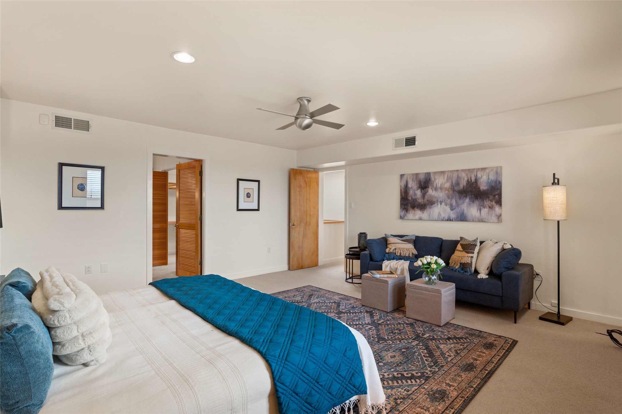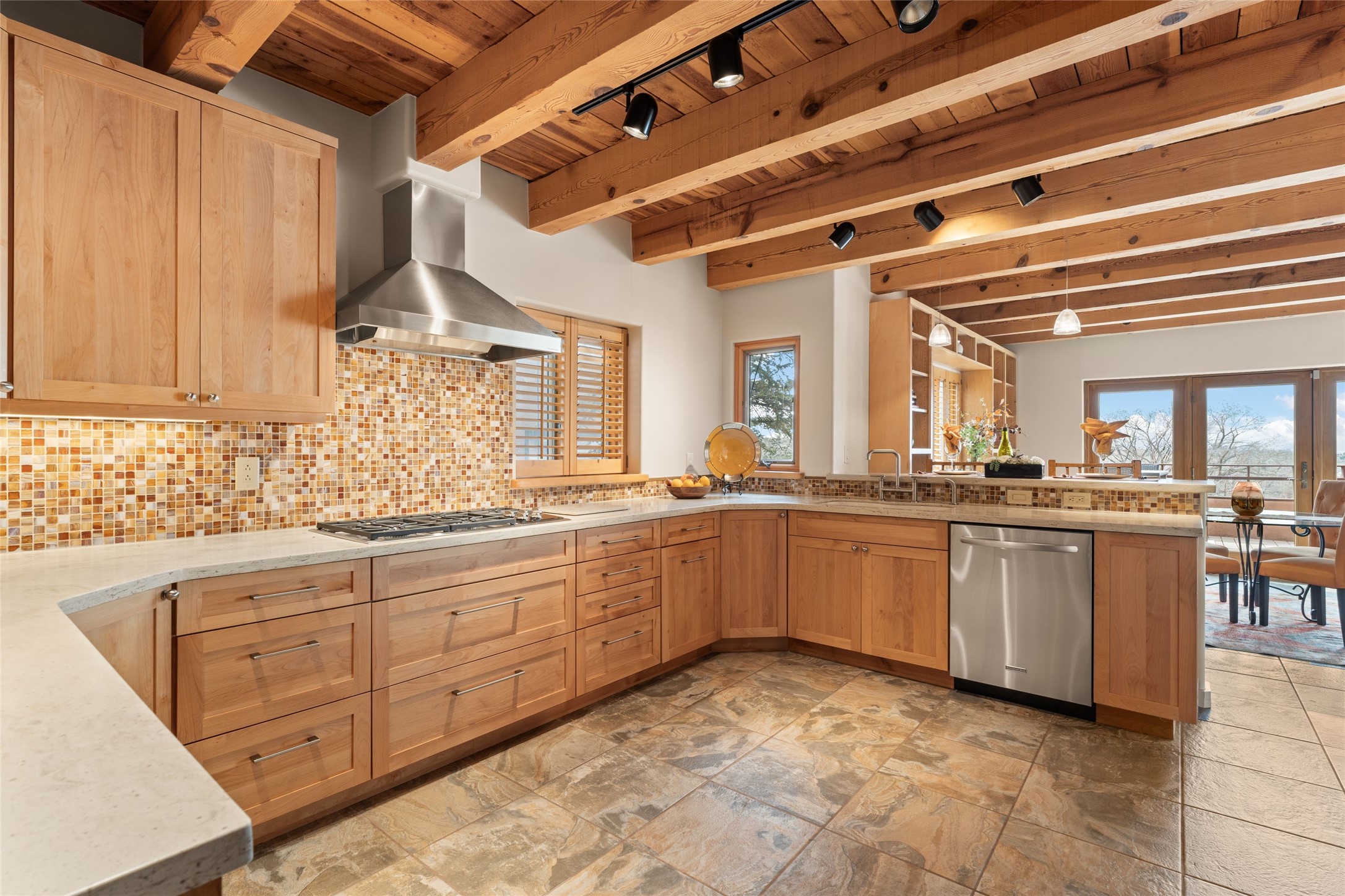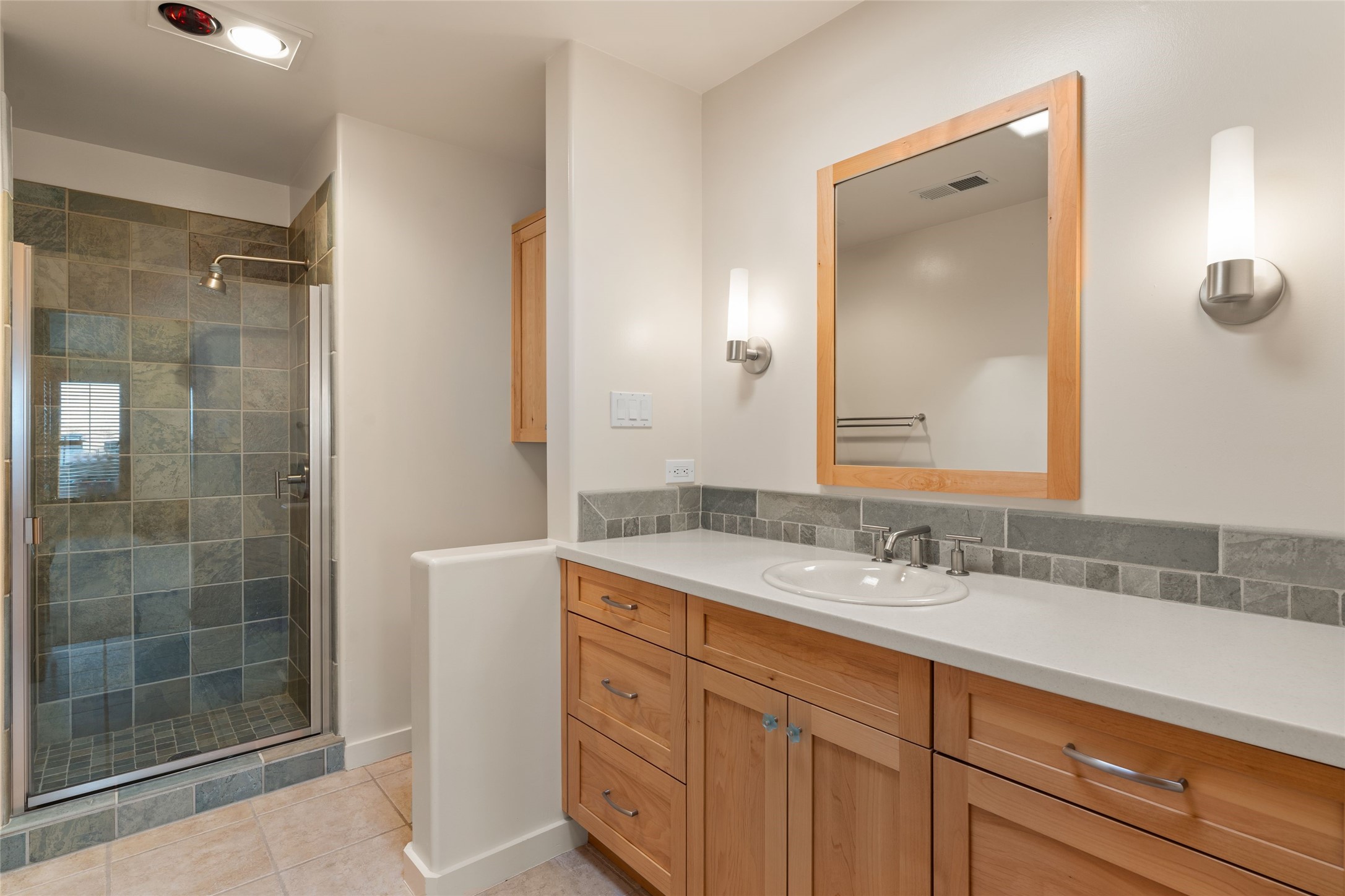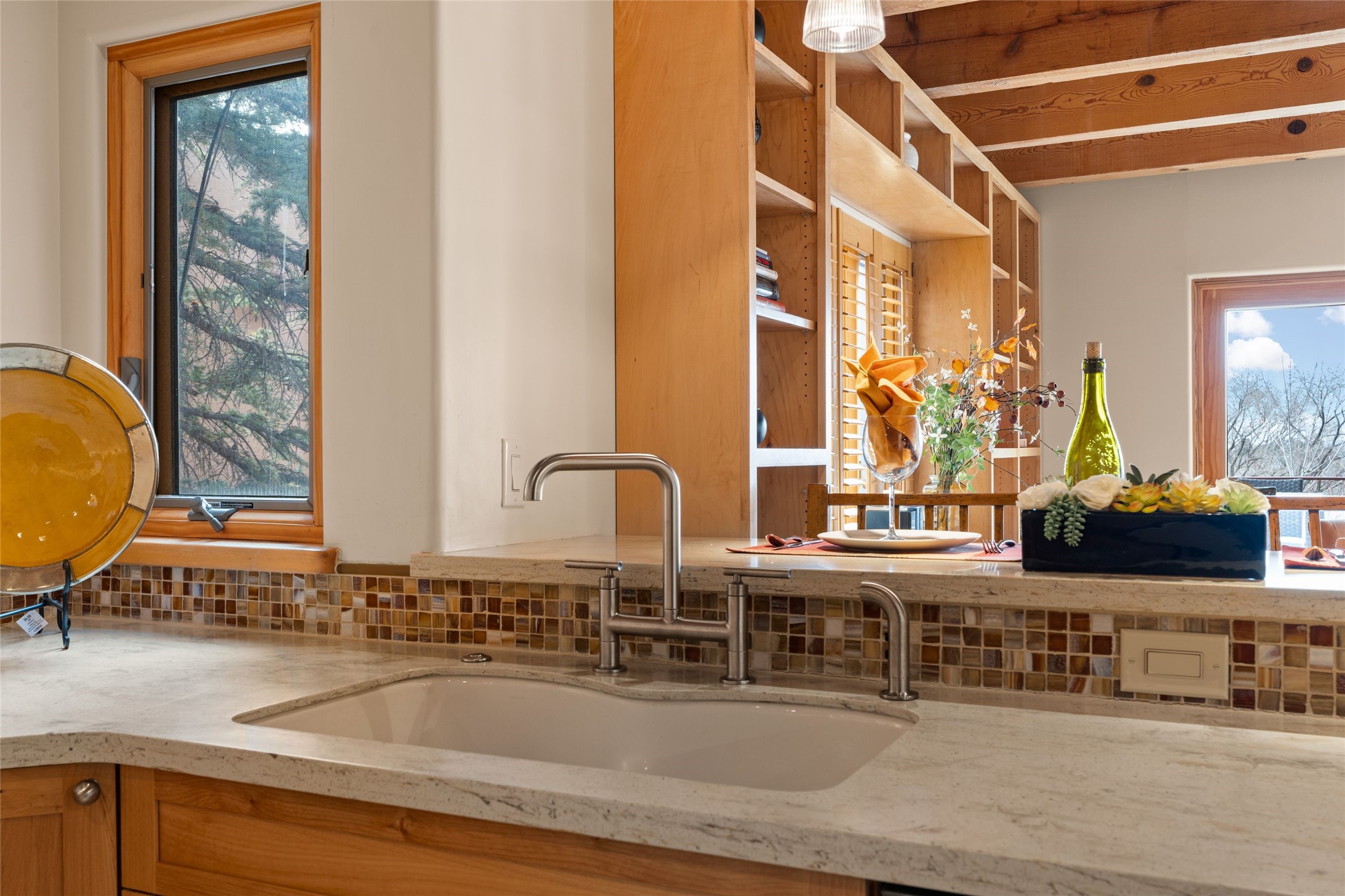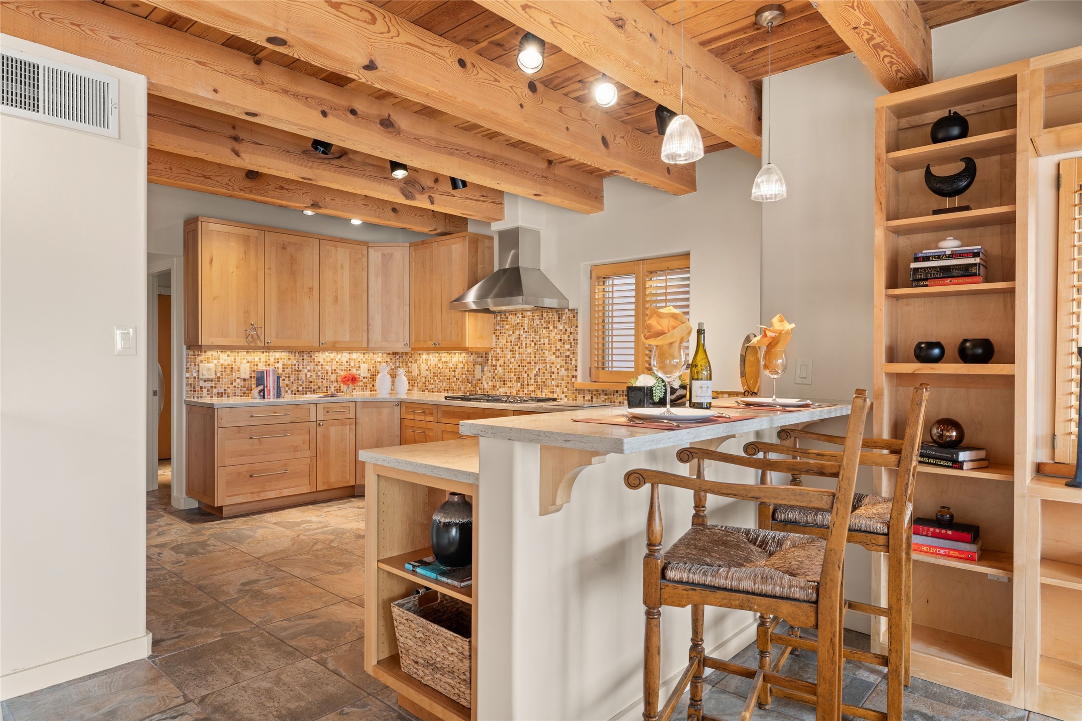 Glorious Views, Downtown Location, Move In Condition Condominium in the popular & established La Vereda Compound. A short ride, stroll, or walk to Canyon Road, the location is ideal for those wishing modern spaces to return to after leisurely days in our Ancient City. Located on the East Side of Downtown Santa Fe, this property has City and Sunset Views, living, kitchen areas, plus 1 Ensuite bedroom on Entry Level with 3/4 bath, attached two car garage, lots of Natural Light throughout, and plenty of storage nooks and room for guests. View deck off the dining area offers easy entertaining options close to the kitchen. Upstairs are two more Spacious bedrooms with ensuite baths, French Doors that lead out onto an oversized deck for relaxing and taking in the views. Updated features include: Gourmet Kitchen with two wall ovens, upgraded cabinetry & appliances, flooring, shelving, and paint- mid 2000s. New Stucco & Deck Railings (2023). Fresh air circulates easily to cool rooms in the Summer. Additional oversized Storage Room in garage area - could be perfect Wine Storage and more. *With the forced air heating system (ducted), Central AC Could Be Seamlessly Added by Future Owners*