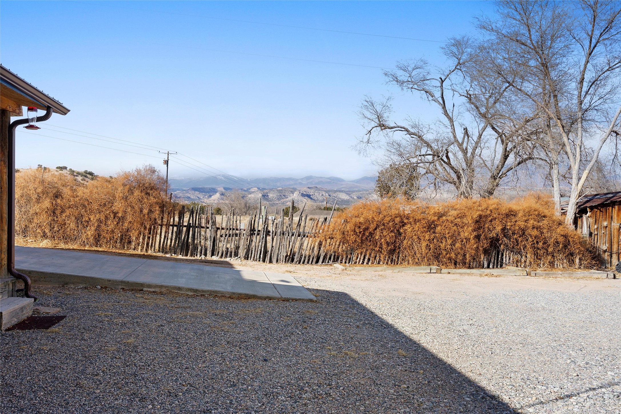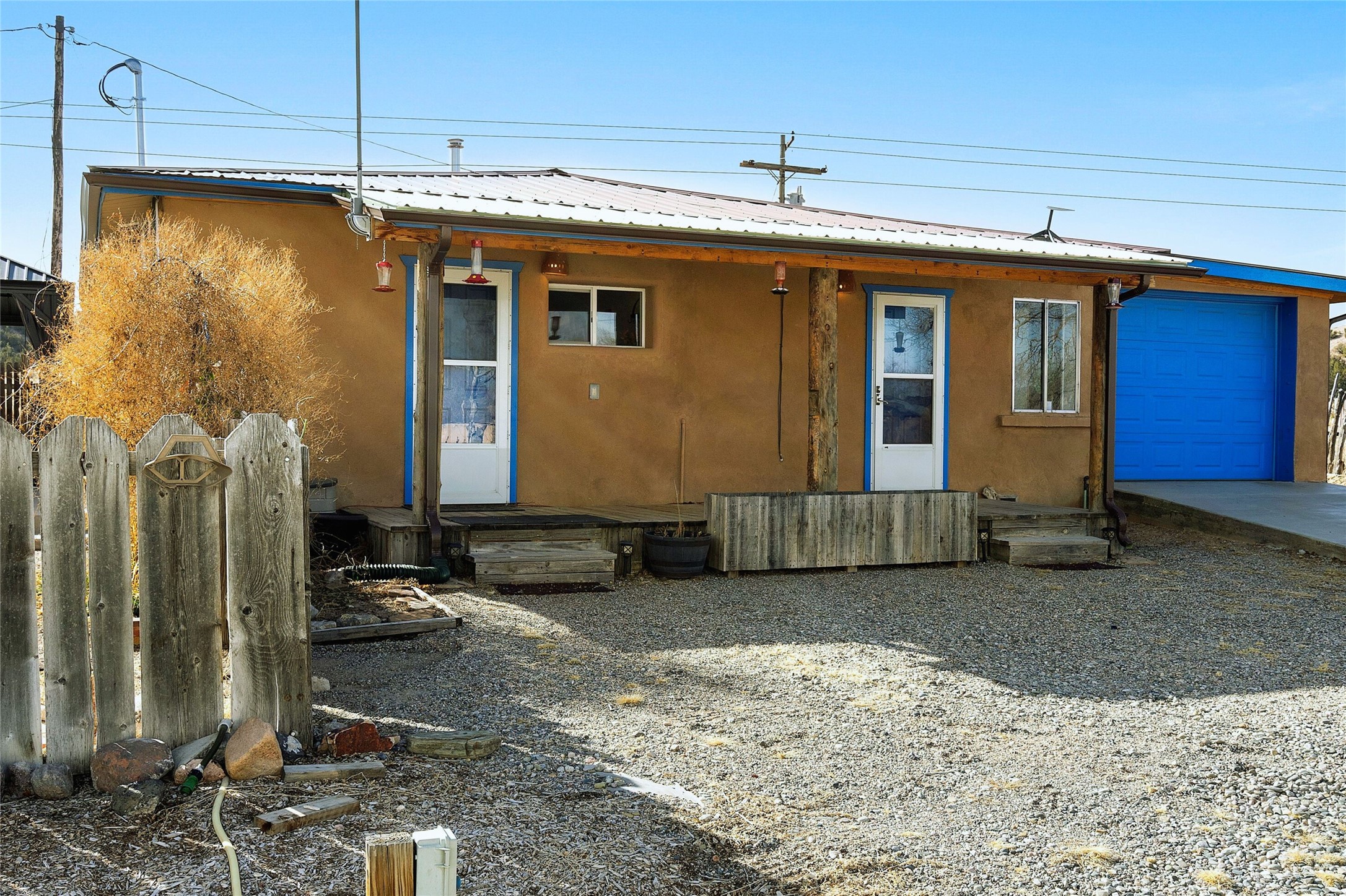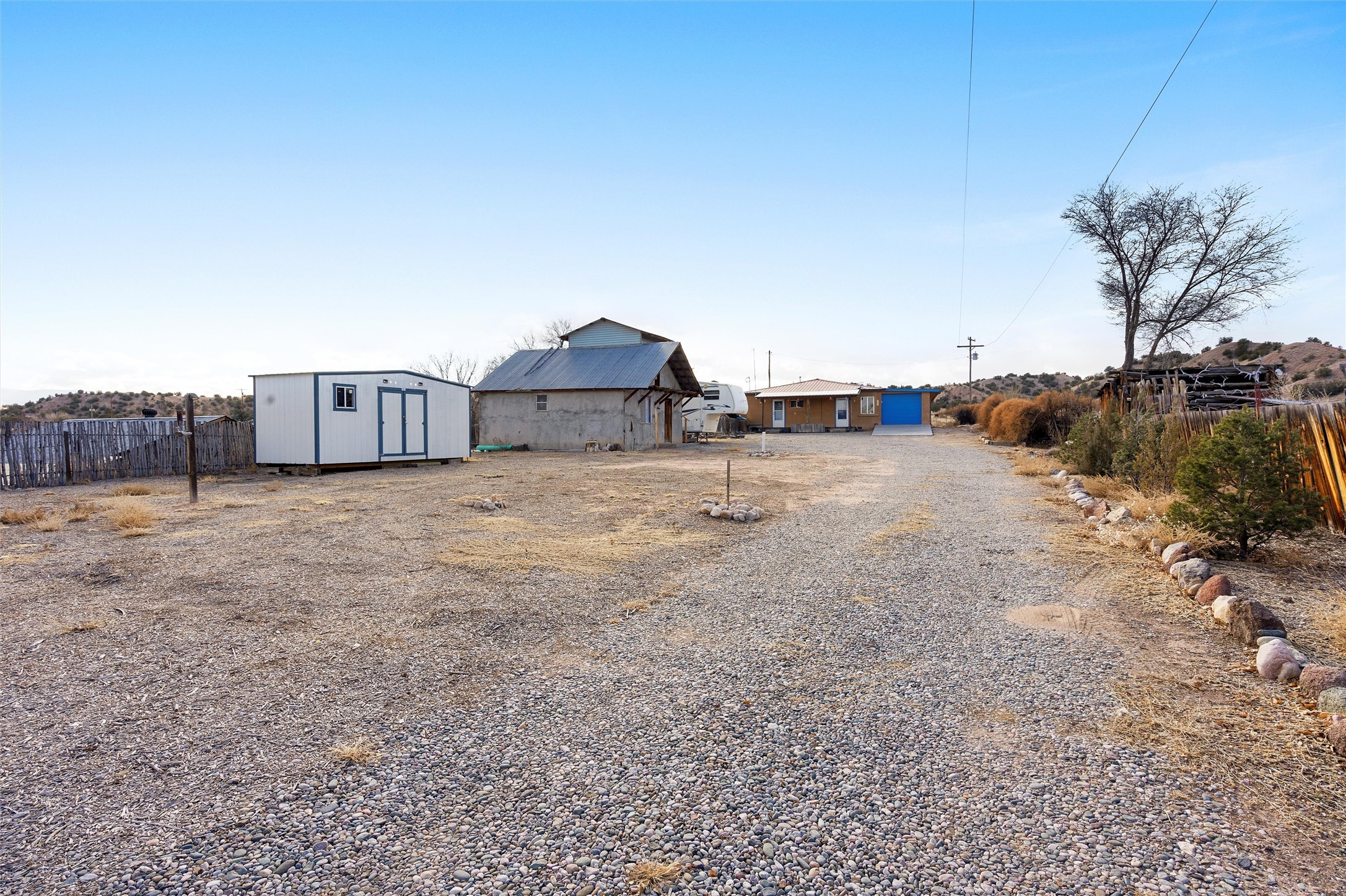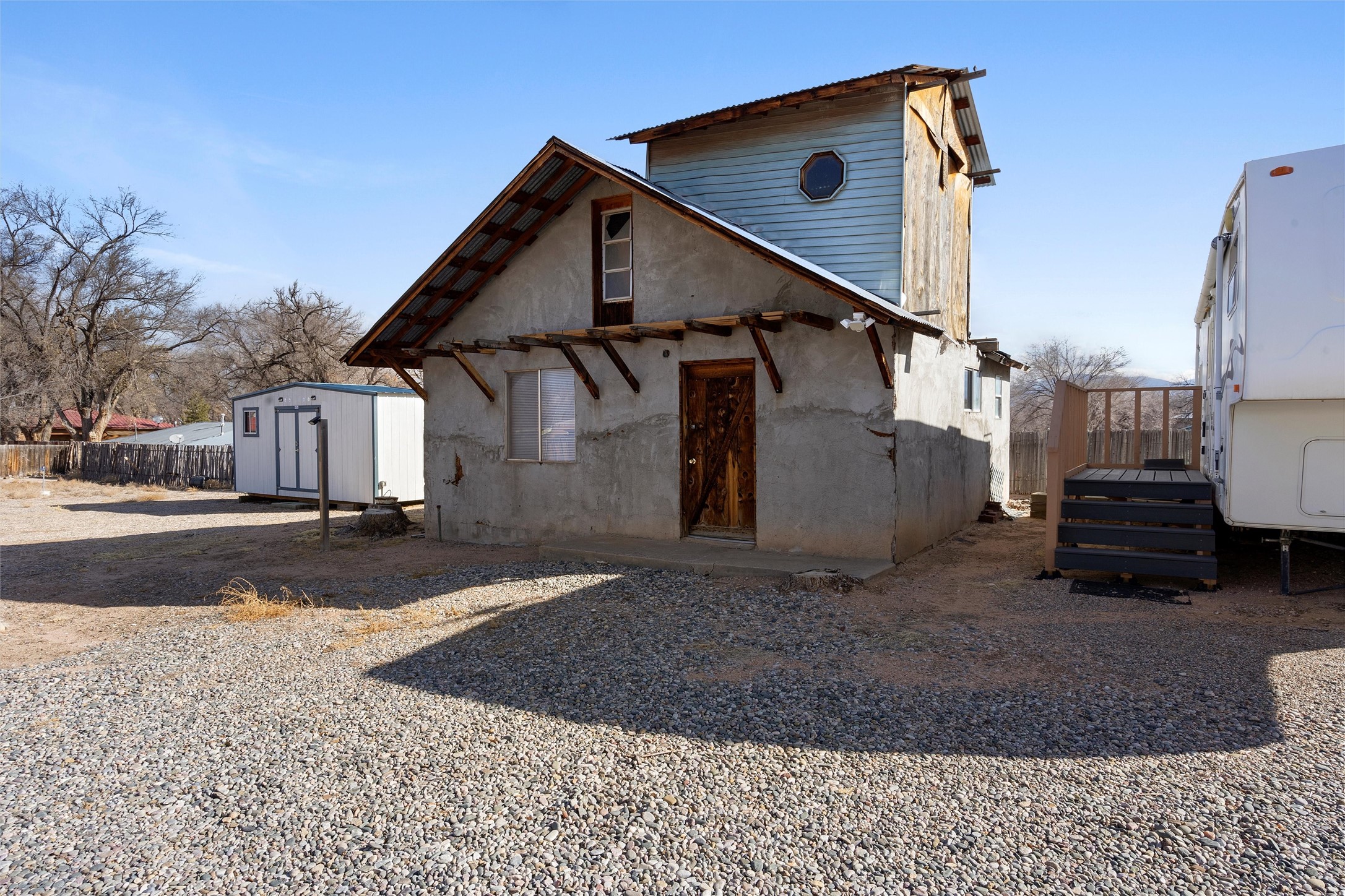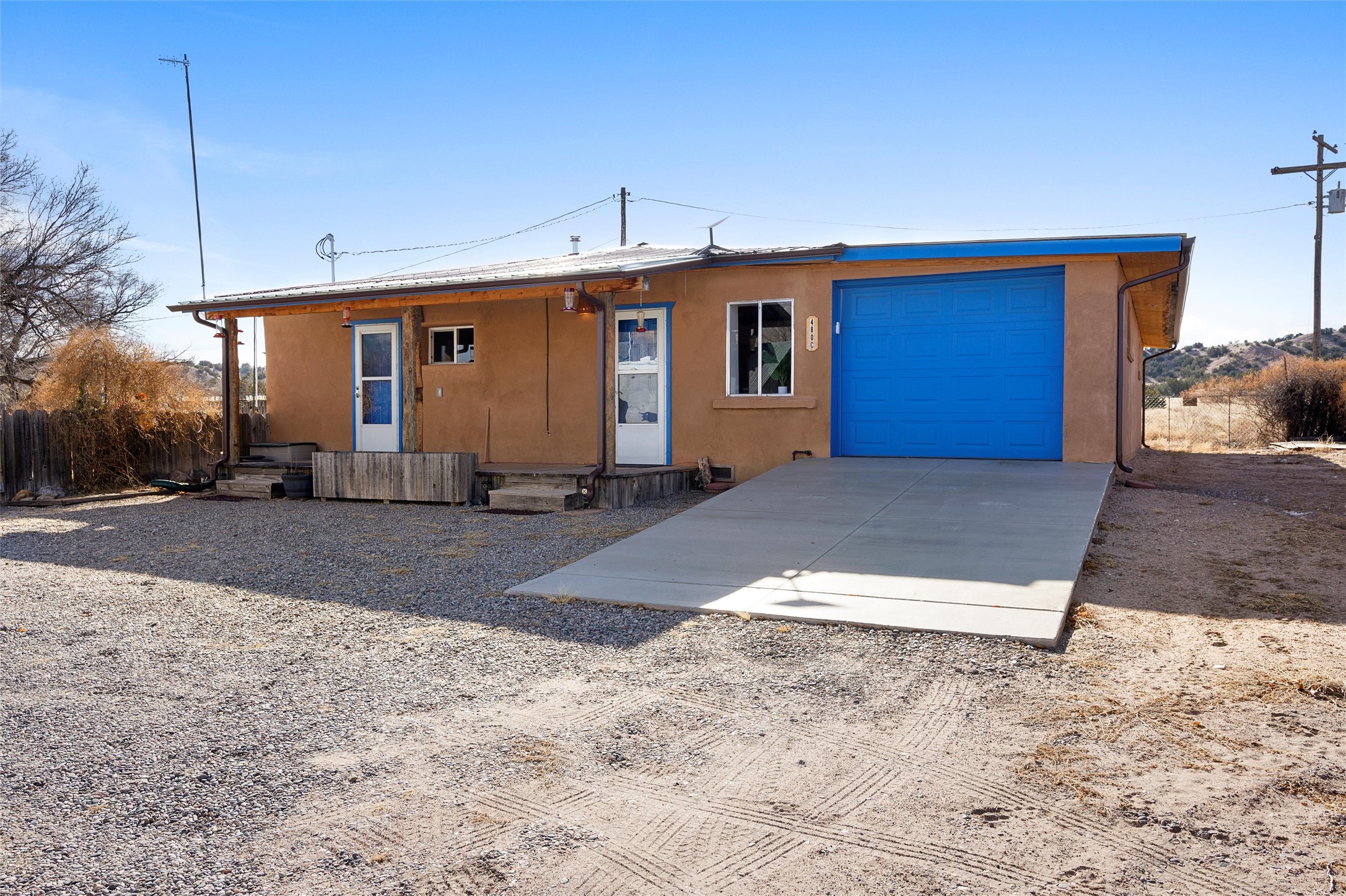 Tucked into the heart of El Rancho, this warm and welcoming adobe home offers the perfect balance of peace, privacy, and possibility. Set on nearly half an acre backing onto open pueblo land, the property enjoys sweeping mountain views and a deep sense of quiet--a true retreat, yet only 20 minutes from Los Alamos, Santa Fe, or Espaola.Inside, you'll find two bedrooms, one and a half bathrooms, and two spacious living areas, including a back den that easily doubles as a third bedroom, home office, creative studio, or flex space. Tongue-and-groove wood walls and ceilings add rustic character throughout, while thick adobe construction and a cozy wood stove help keep the home naturally temperate year-round. The largest bedroom features a hand-carved, built-in wardrobe--an artisan touch that echoes the home's heritage.The updated kitchen includes quartz countertops and newer appliances, blending traditional style with modern function. Outdoors, a 12'x20' pergola with stamped concrete flooring, overhead lighting, and a metal roof with a fan extends your living space and sets the stage for slow mornings, sunset dinners, and weekend gatherings.Additional spaces include a tandem two-car garage with 240V power, a 22'x22' detached workshop with a loft, electricity, and plumbing rough-ins--ideal for hobbyists or creatives--and an 8'x20' shed with electricity. The renovated Laredo 5th Wheel RV is hooked up to water, electricity, and septic, and has served as a guest space or income-producing rental. It is available for purchase separately. High-speed Starlink internet service transfers with the home, keeping you connected while enjoying the best of rural Northern New Mexico.Whether you're craving a quiet homestead, space for artistic pursuits, or a place to live and work close to nature, this property offers room to dream. Experience the lifestyle of Northern New Mexico--relaxed, rooted, and richly connected to the land.