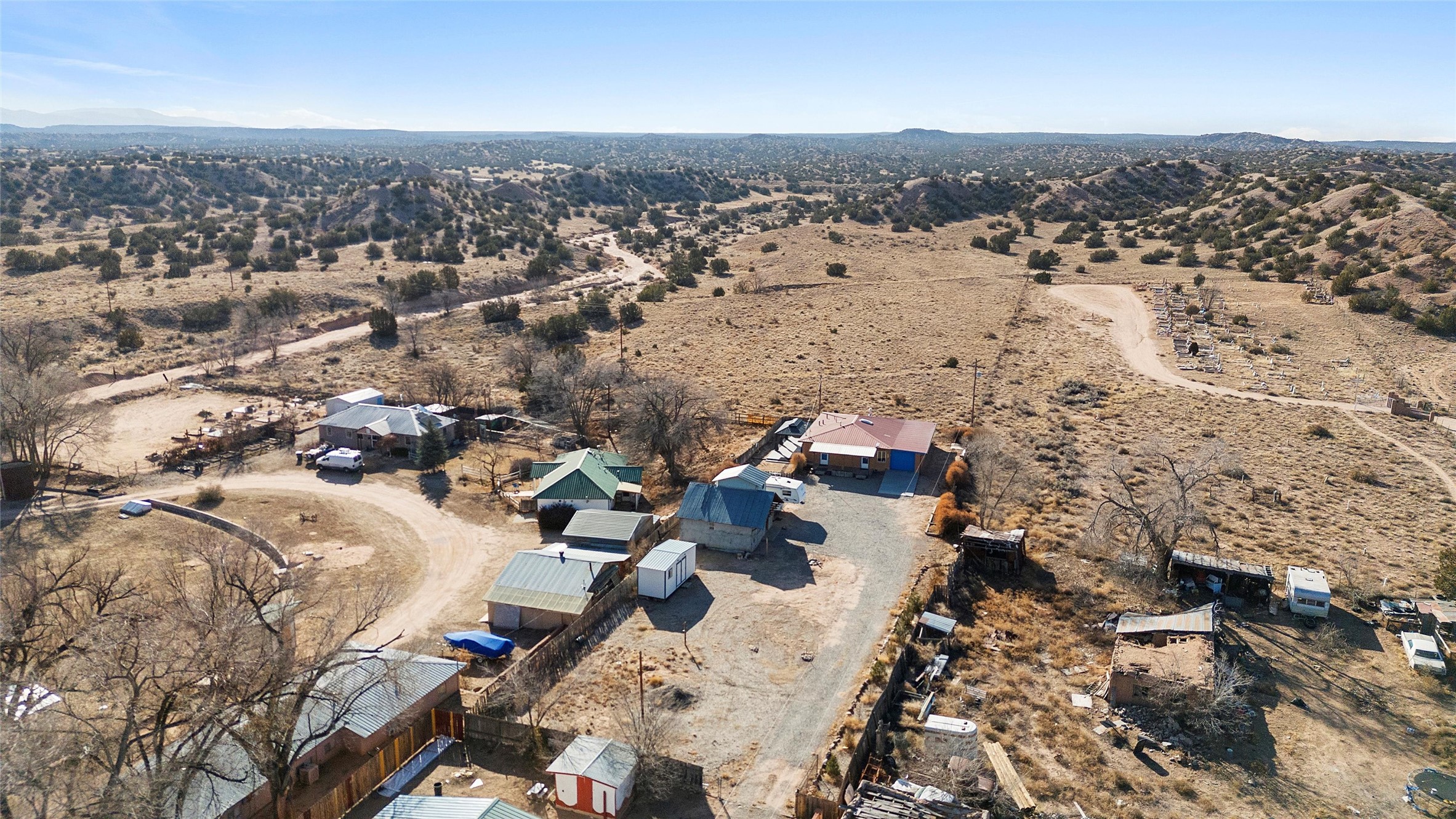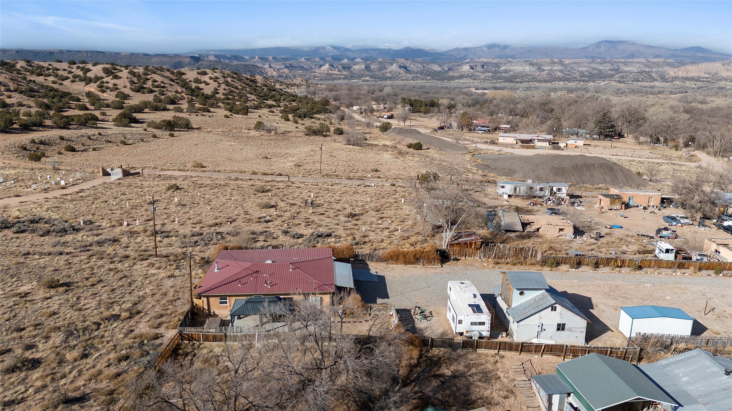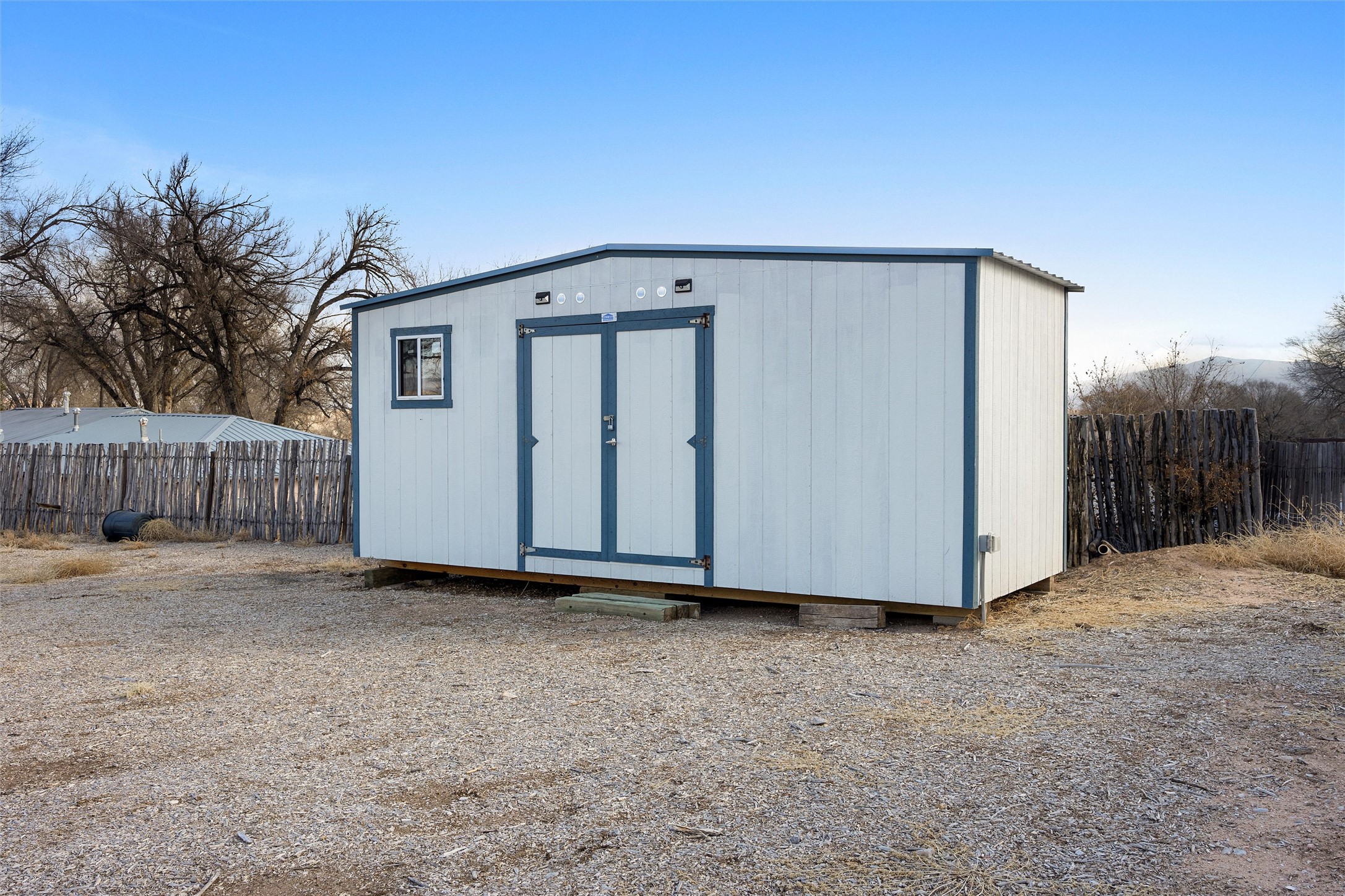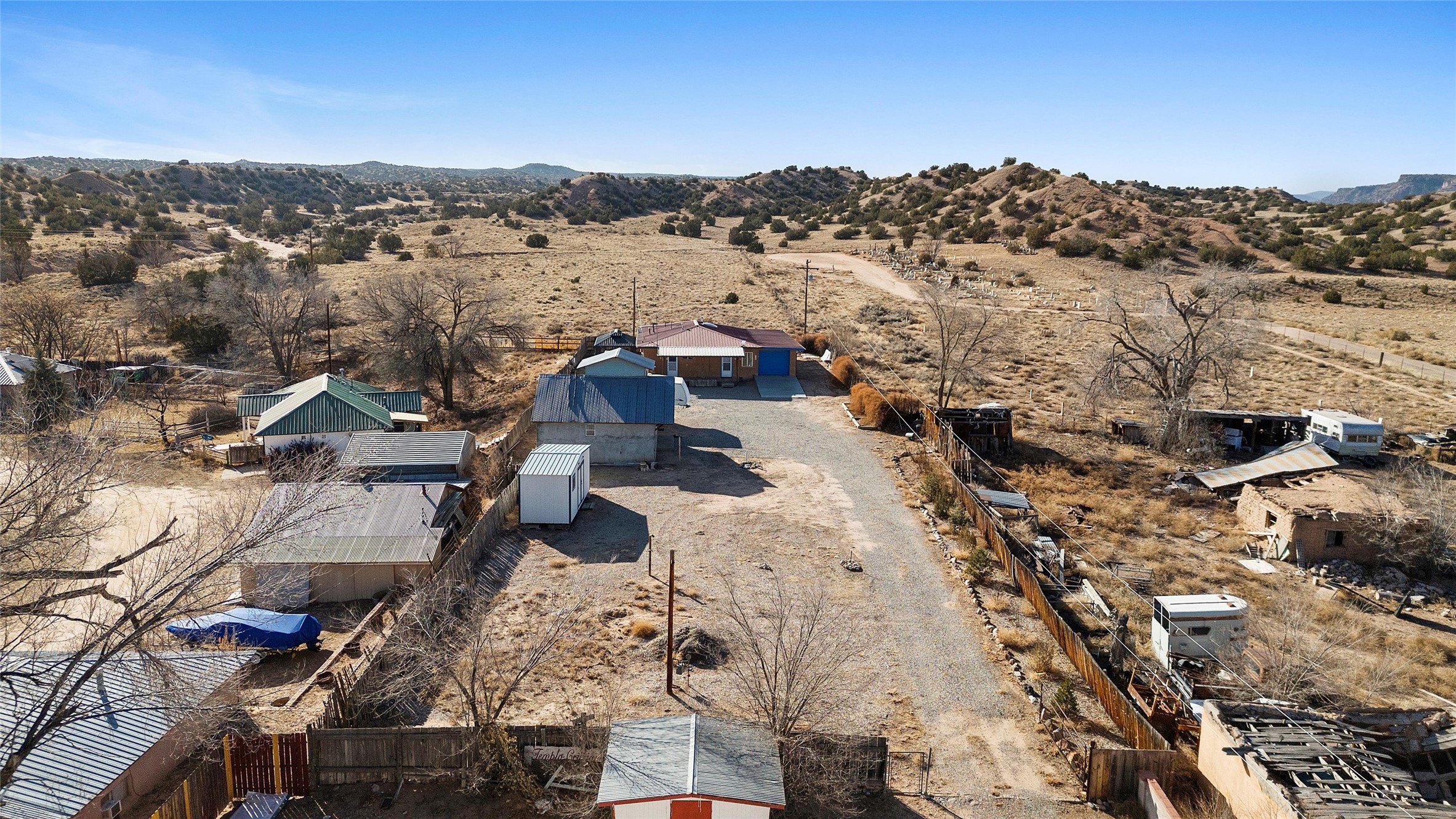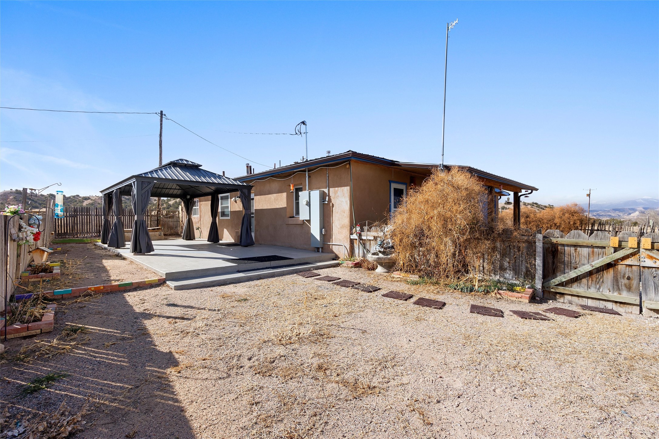 Tucked into the heart of El Rancho, this warm and welcoming adobe home offers the perfect balance of peace, privacy, and possibility. Set on nearly half an acre backing onto open pueblo land, the property enjoys sweeping mountain views and a deep sense of quiet--a true retreat, yet only 20 minutes from Los Alamos, Santa Fe, or Espaola.Inside, you'll find two bedrooms, one and a half bathrooms, and two spacious living areas, including a back den that easily doubles as a third bedroom, home office, creative studio, or flex space. Tongue-and-groove wood walls and ceilings add rustic character throughout, while thick adobe construction and a cozy wood stove help keep the home naturally temperate year-round. The largest bedroom features a hand-carved, built-in wardrobe--an artisan touch that echoes the home's heritage.The updated kitchen includes quartz countertops and newer appliances, blending traditional style with modern function. Outdoors, a 12'x20' pergola with stamped concrete flooring, overhead lighting, and a metal roof with a fan extends your living space and sets the stage for slow mornings, sunset dinners, and weekend gatherings.Additional spaces include a tandem two-car garage with 240V power, a 22'x22' detached workshop with a loft, electricity, and plumbing rough-ins--ideal for hobbyists or creatives--and an 8'x20' shed with electricity. The renovated Laredo 5th Wheel RV is hooked up to water, electricity, and septic, and has served as a guest space or income-producing rental. It is available for purchase separately. High-speed Starlink internet service transfers with the home, keeping you connected while enjoying the best of rural Northern New Mexico.Whether you're craving a quiet homestead, space for artistic pursuits, or a place to live and work close to nature, this property offers room to dream. Experience the lifestyle of Northern New Mexico--relaxed, rooted, and richly connected to the land.