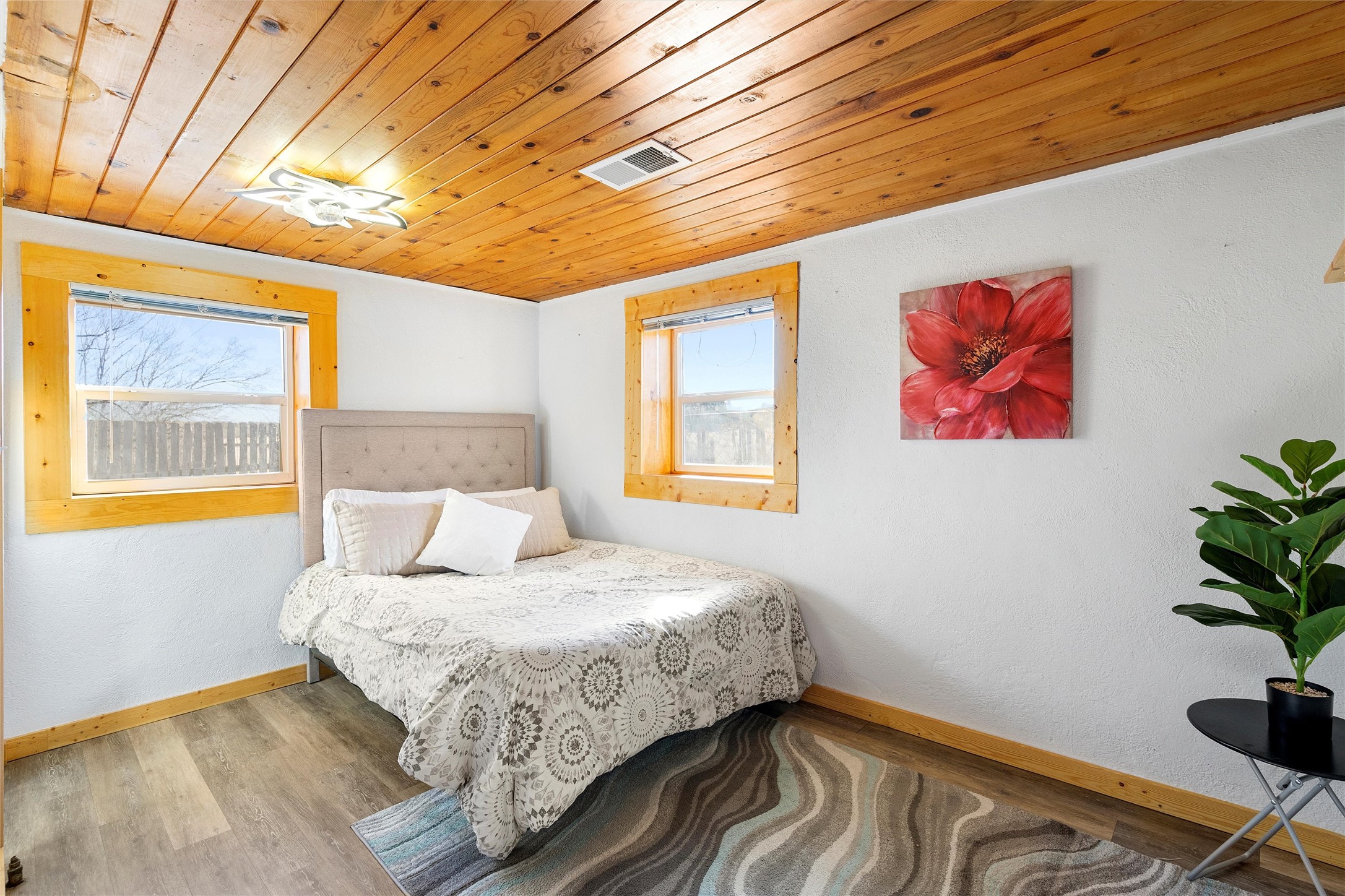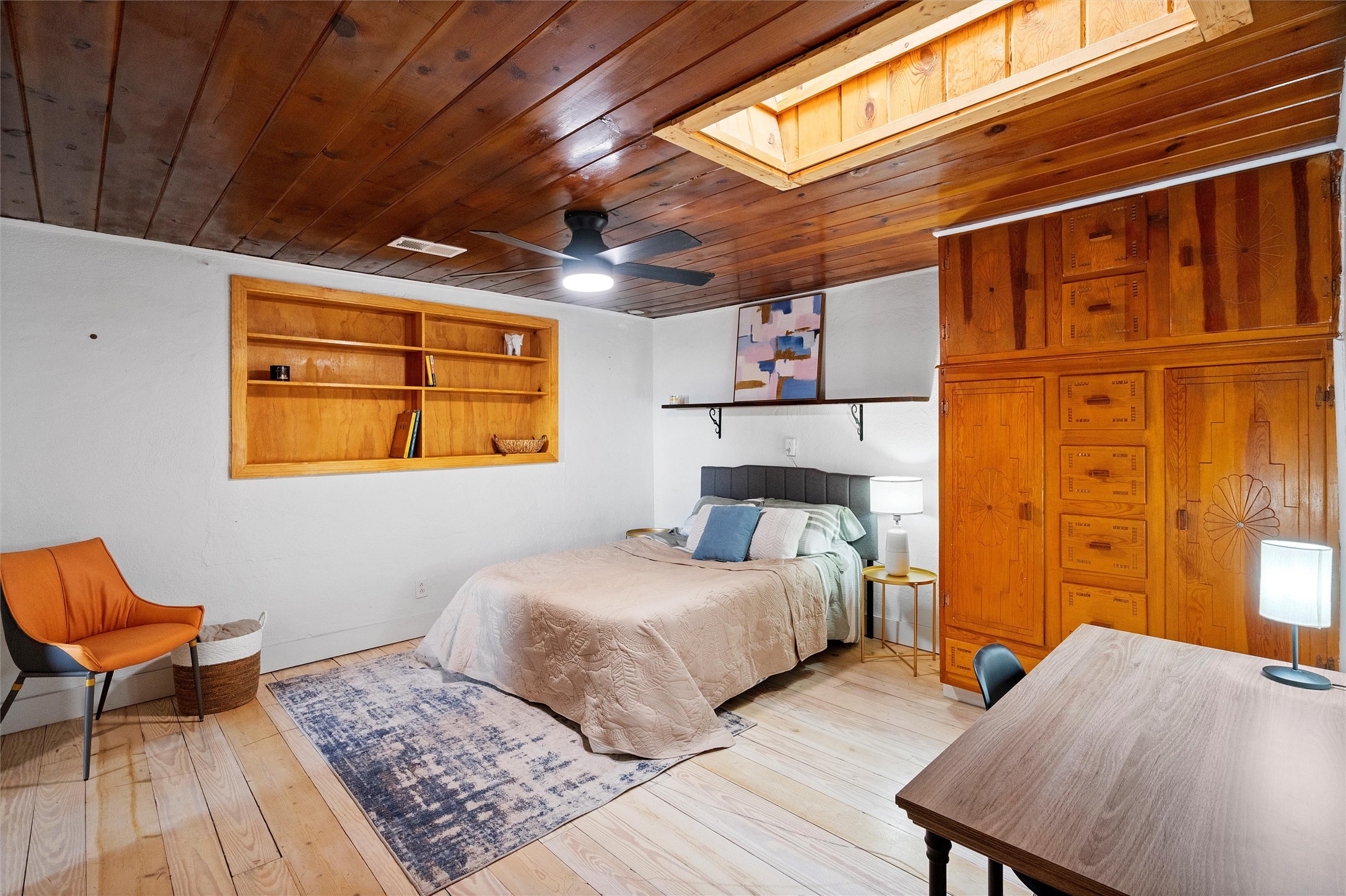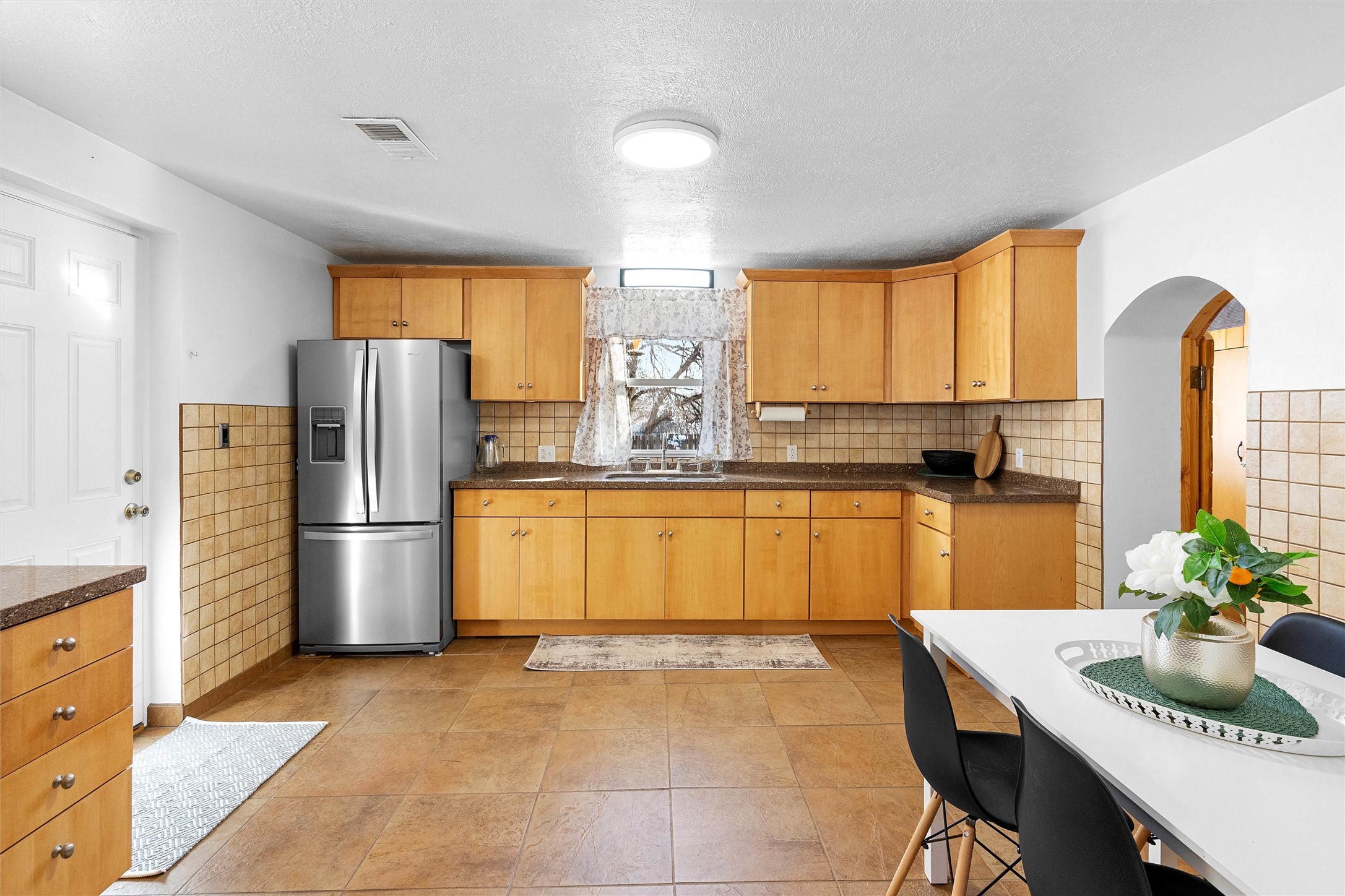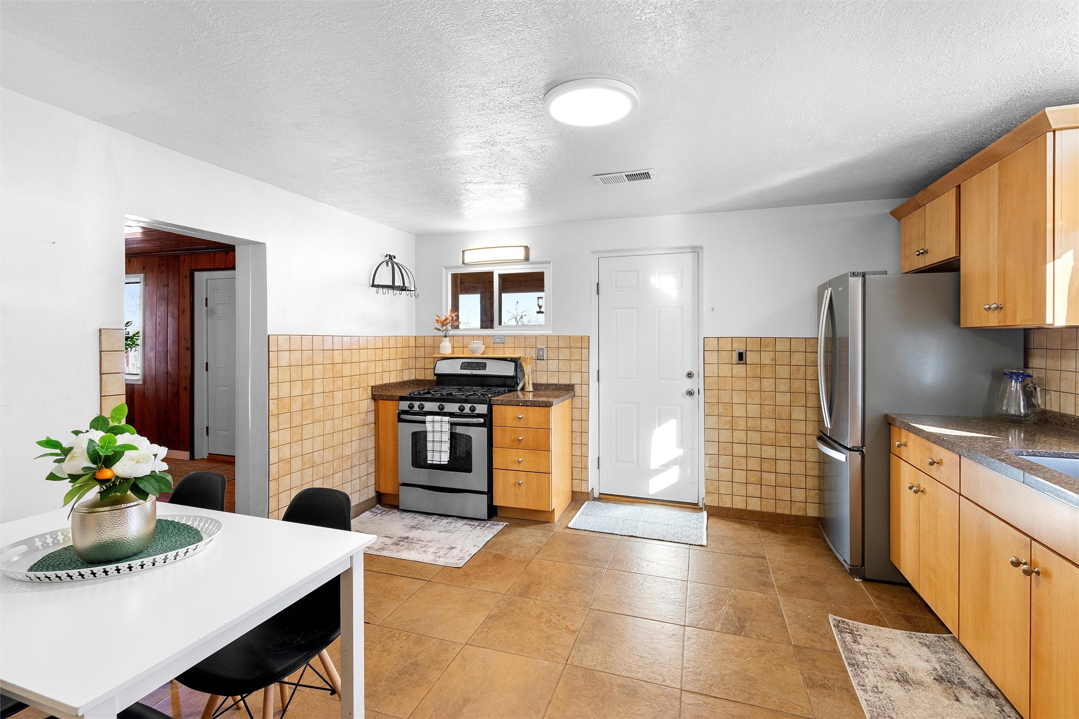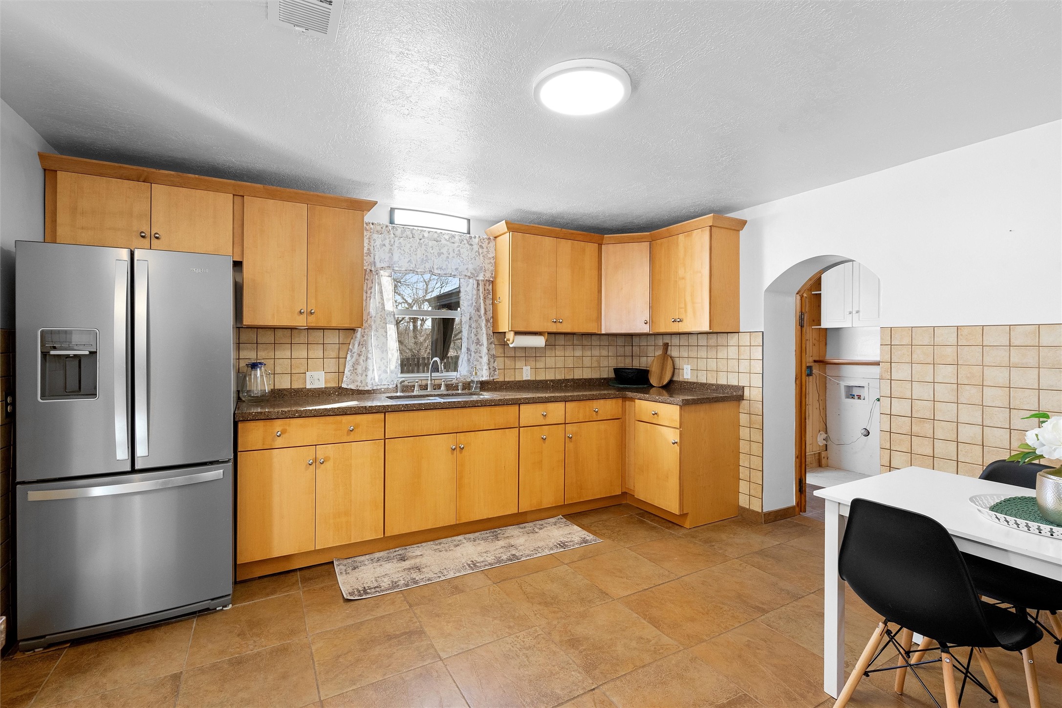 Tucked into the heart of El Rancho, this warm and welcoming adobe home offers the perfect balance of peace, privacy, and possibility. Set on nearly half an acre backing onto open pueblo land, the property enjoys sweeping mountain views and a deep sense of quiet--a true retreat, yet only 20 minutes from Los Alamos, Santa Fe, or Espaola.Inside, you'll find two bedrooms, one and a half bathrooms, and two spacious living areas, including a back den that easily doubles as a third bedroom, home office, creative studio, or flex space. Tongue-and-groove wood walls and ceilings add rustic character throughout, while thick adobe construction and a cozy wood stove help keep the home naturally temperate year-round. The largest bedroom features a hand-carved, built-in wardrobe--an artisan touch that echoes the home's heritage.The updated kitchen includes quartz countertops and newer appliances, blending traditional style with modern function. Outdoors, a 12'x20' pergola with stamped concrete flooring, overhead lighting, and a metal roof with a fan extends your living space and sets the stage for slow mornings, sunset dinners, and weekend gatherings.Additional spaces include a tandem two-car garage with 240V power, a 22'x22' detached workshop with a loft, electricity, and plumbing rough-ins--ideal for hobbyists or creatives--and an 8'x20' shed with electricity. The renovated Laredo 5th Wheel RV is hooked up to water, electricity, and septic, and has served as a guest space or income-producing rental. It is available for purchase separately. High-speed Starlink internet service transfers with the home, keeping you connected while enjoying the best of rural Northern New Mexico.Whether you're craving a quiet homestead, space for artistic pursuits, or a place to live and work close to nature, this property offers room to dream. Experience the lifestyle of Northern New Mexico--relaxed, rooted, and richly connected to the land.