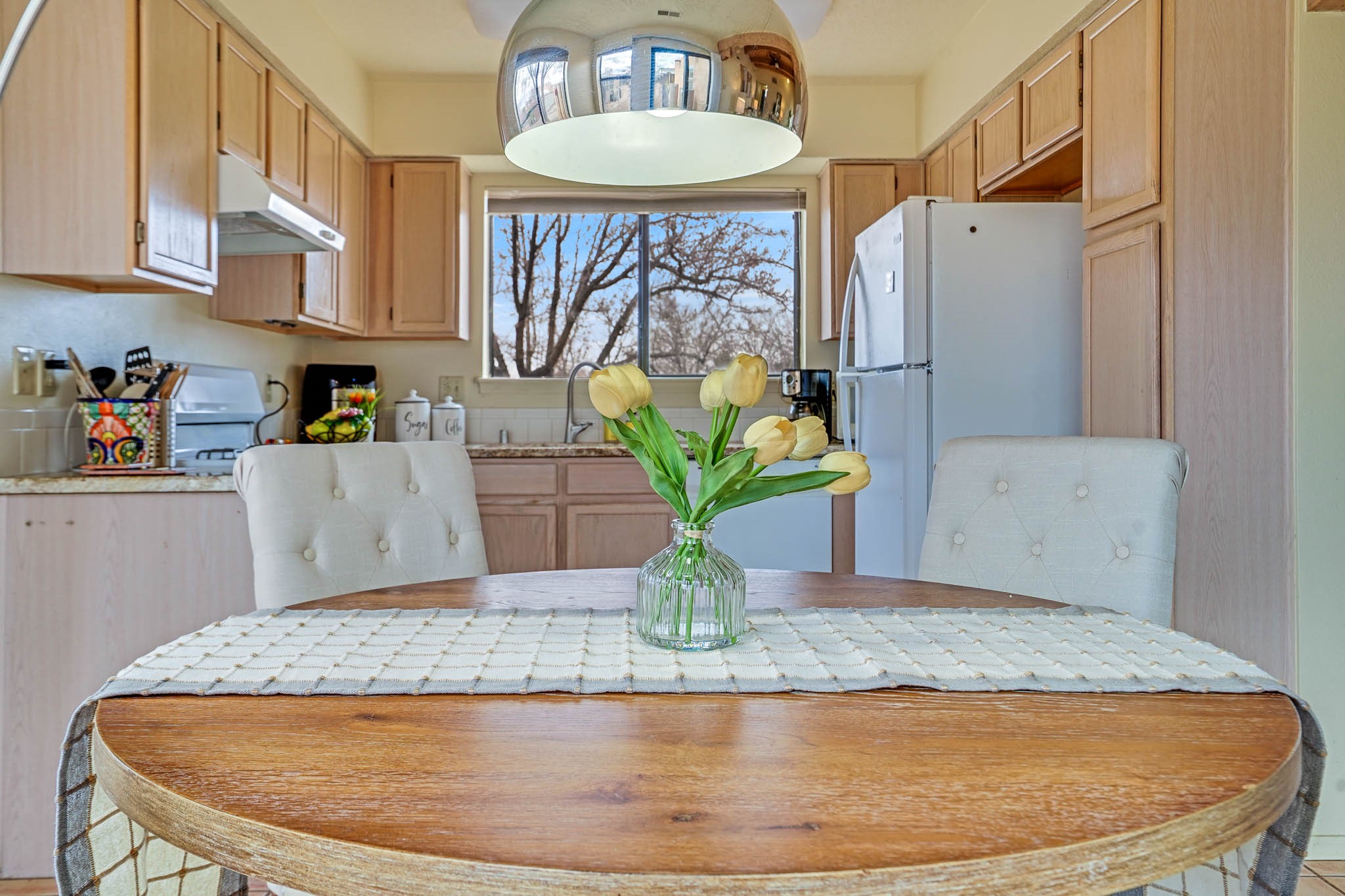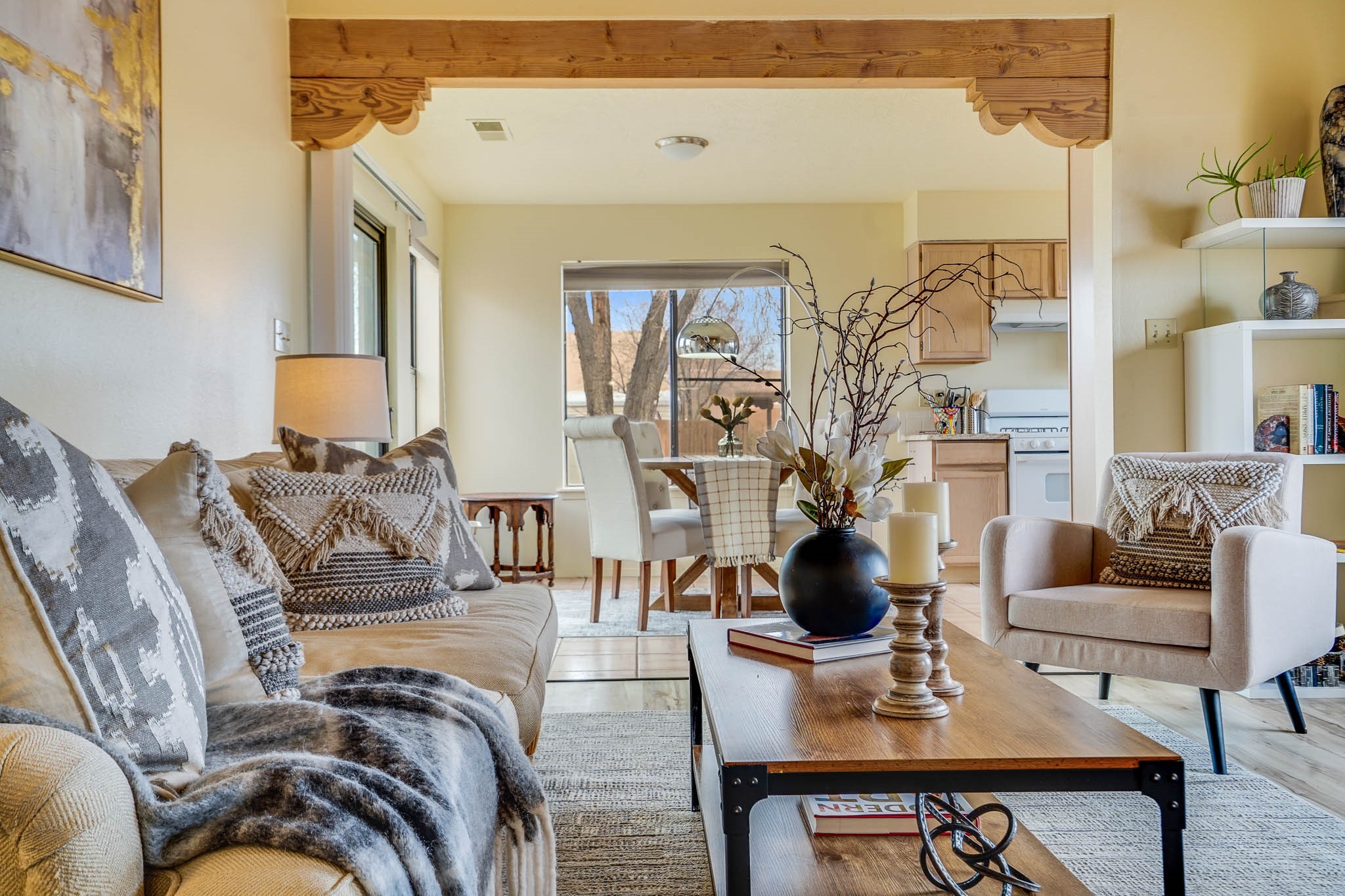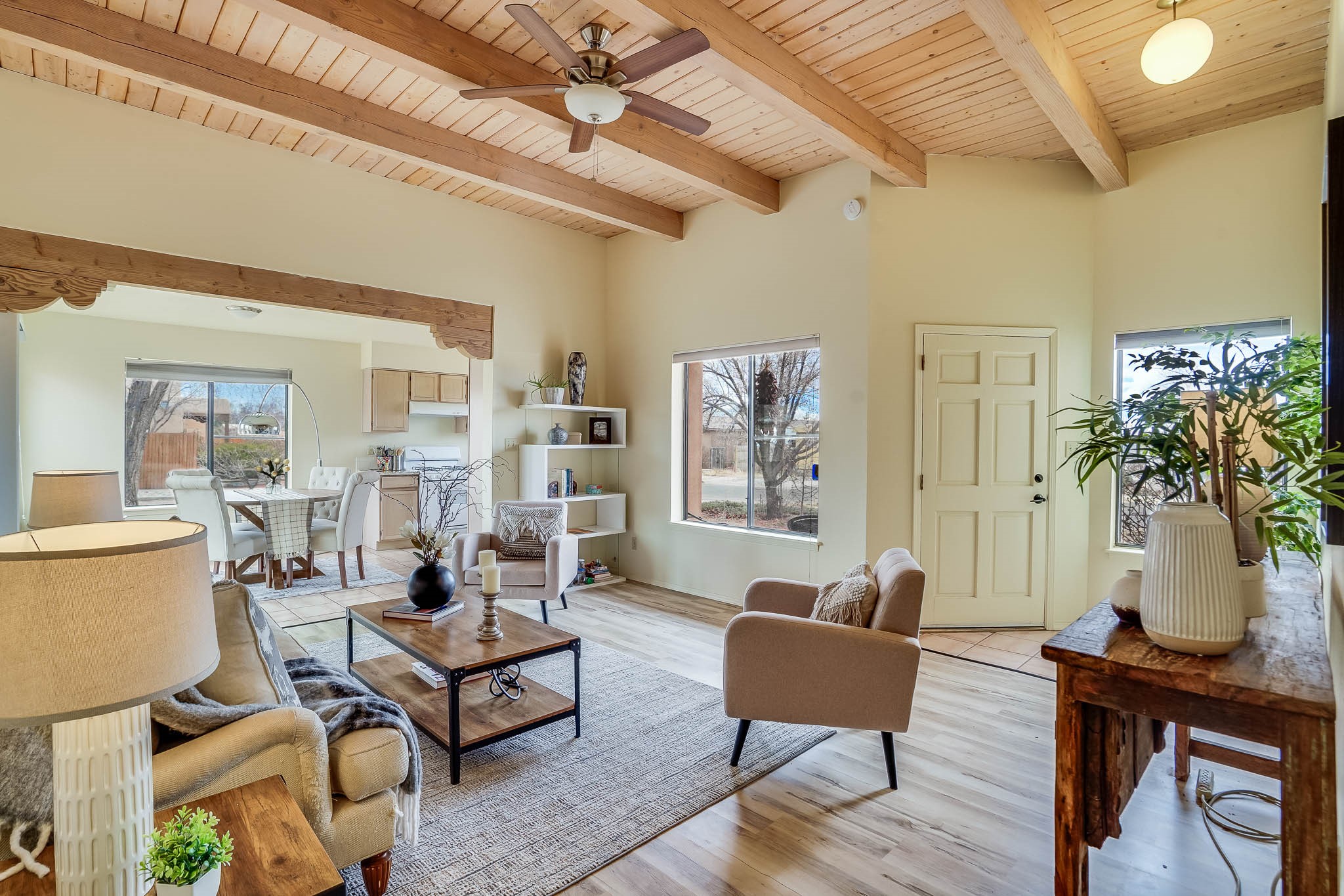 Experience the perfect balance of comfort and efficiency in this charming 3 bedroom, 2 bathroom home. Nestled on a generous corner lot, the residence features an inviting open floorplan with high beam ceilings and abundant natural light streaming through large, bright windows. The spacious layout seamlessly connects living, dining, and kitchen areas, ideal for both entertaining and daily life. Enjoy the convenience of a finished single-car garage, a fully fenced yard perfect for pets and play, and dedicated RV parking.Recent enhancements includea 2024 photovoltaic solar panel system for sustainableliving, an upgraded electrical panel ready for EV charging and AC installation, a 2023 roof with a transferable warranty, a new 2024 sliding glass door, and a new furnace installed in March 2025.