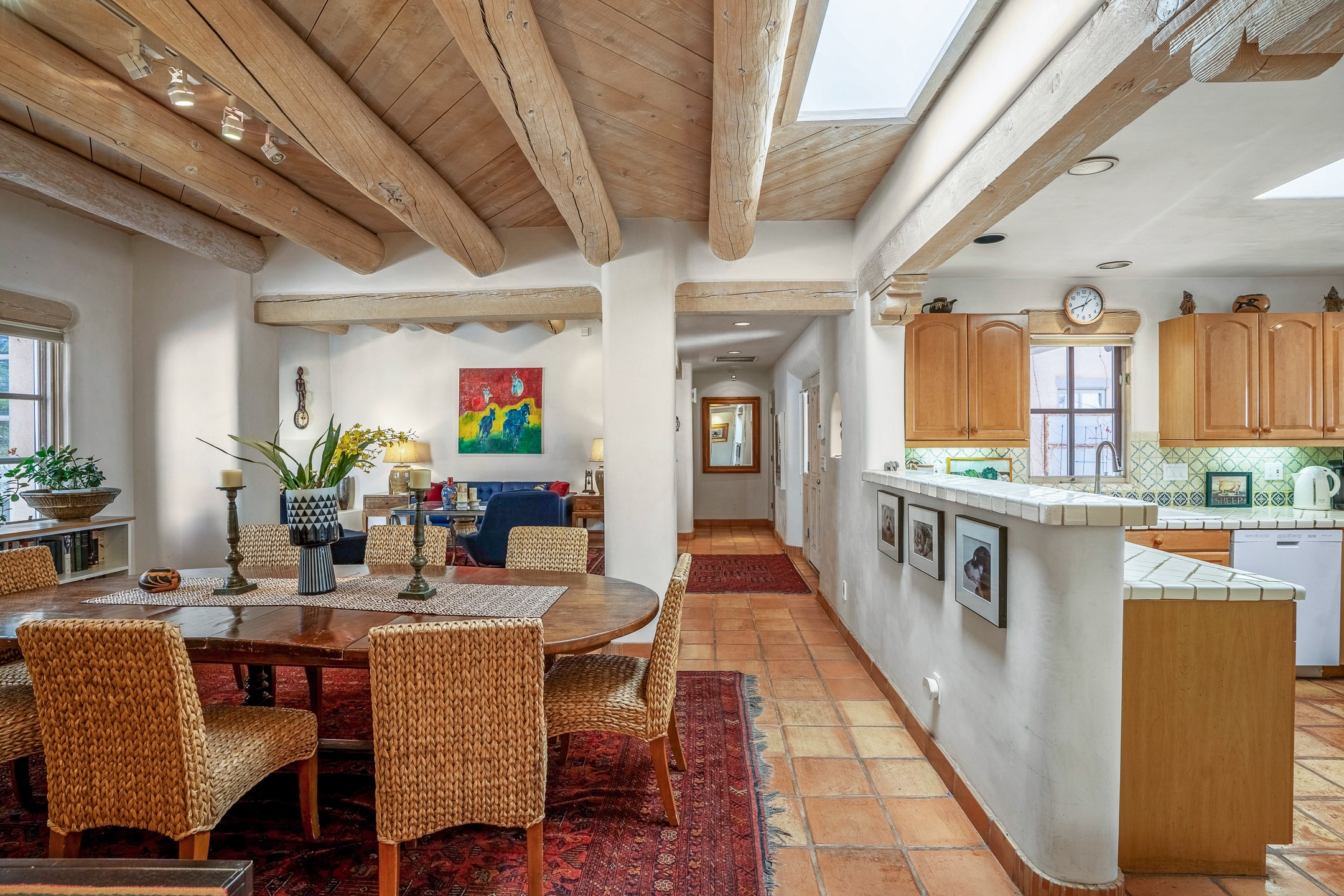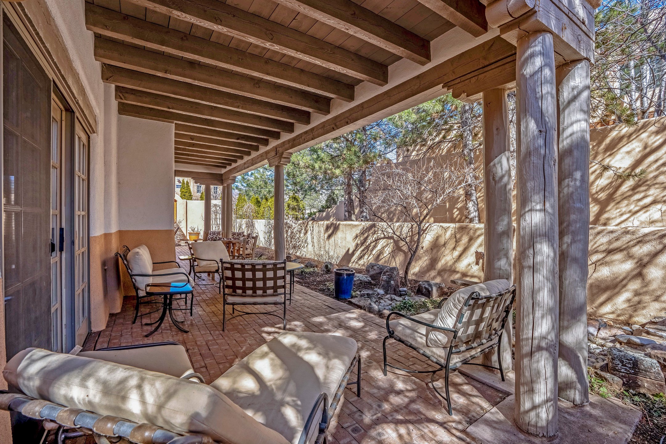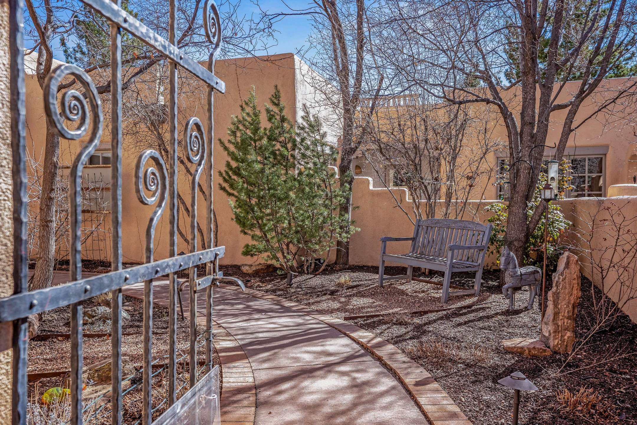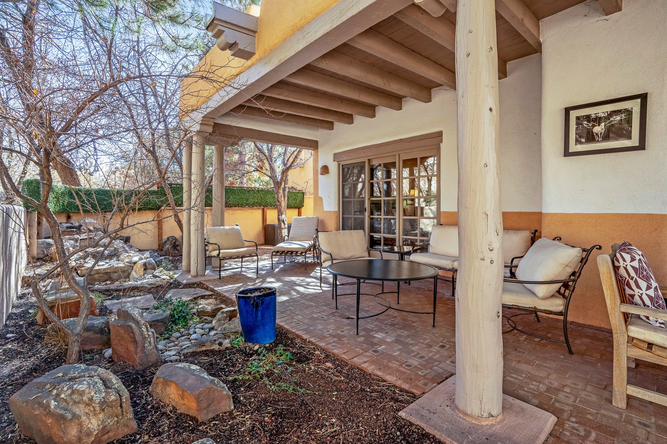 Discover the essence of Santa Fe living in this elegant Pinon B floor plan, offering 1640 Sq Ft of beautifully designed space within the coveted Quail Run Community. From the moment you step through the expansive front courtyard, you'll be welcomed by classic Southwestern warmth and character. Inside, rich Santa Fe influences abound, including viga ceilings, kiva fireplaces and saltillo tile floors, creating a timeless and inviting atmosphere. The well-appointed kitchen and open living area flow effortlessly to the private back portal, a serene retreat perfect for outdoor relaxation or entertaining. Beyond the condos appeal, Quail Run offers unparalleled amenities, just minutes from Santa Fe's vibrant Plaza and Canyon Road.