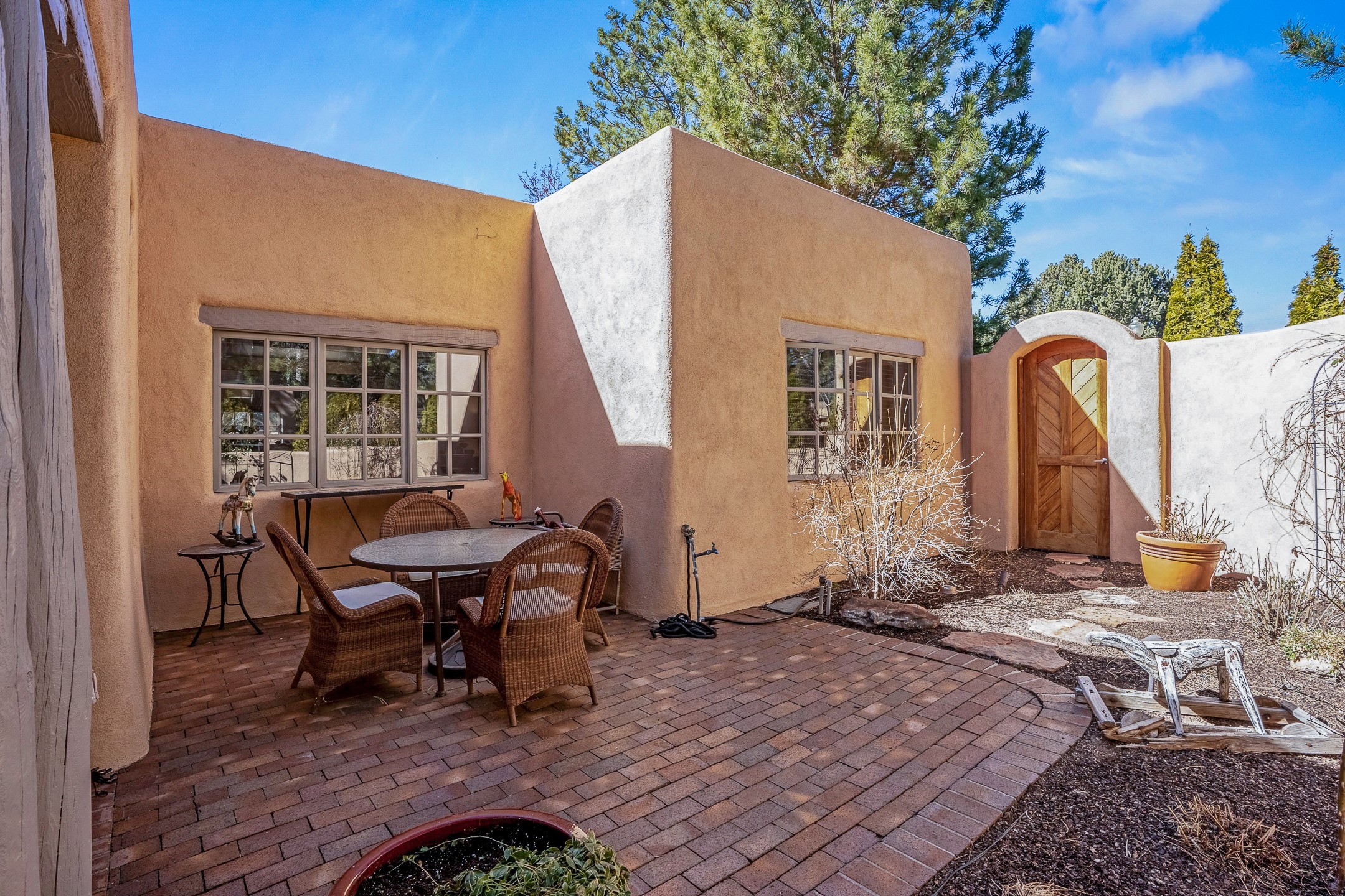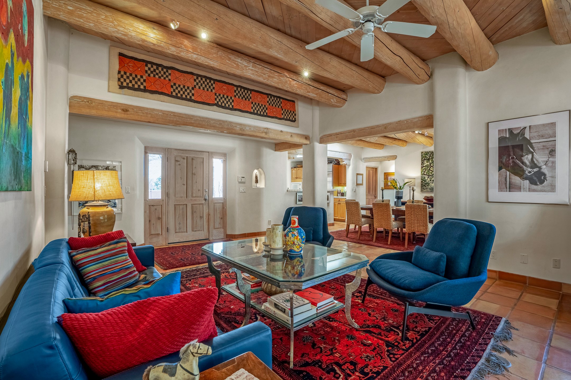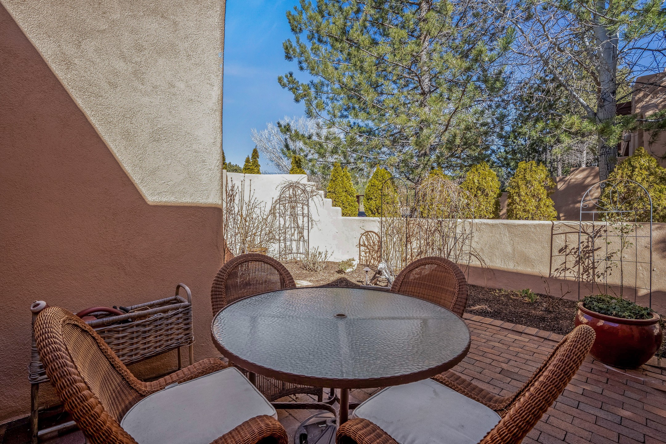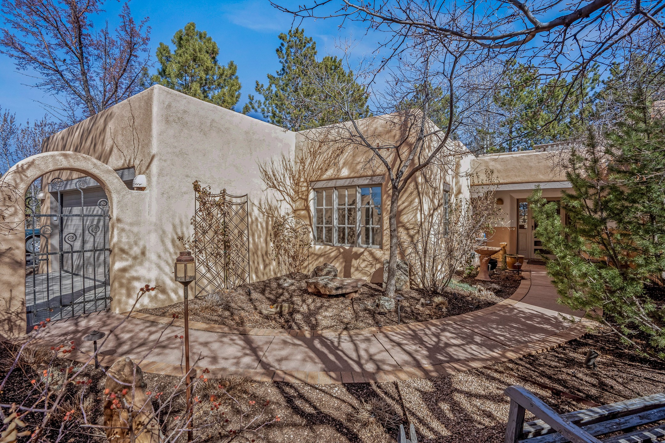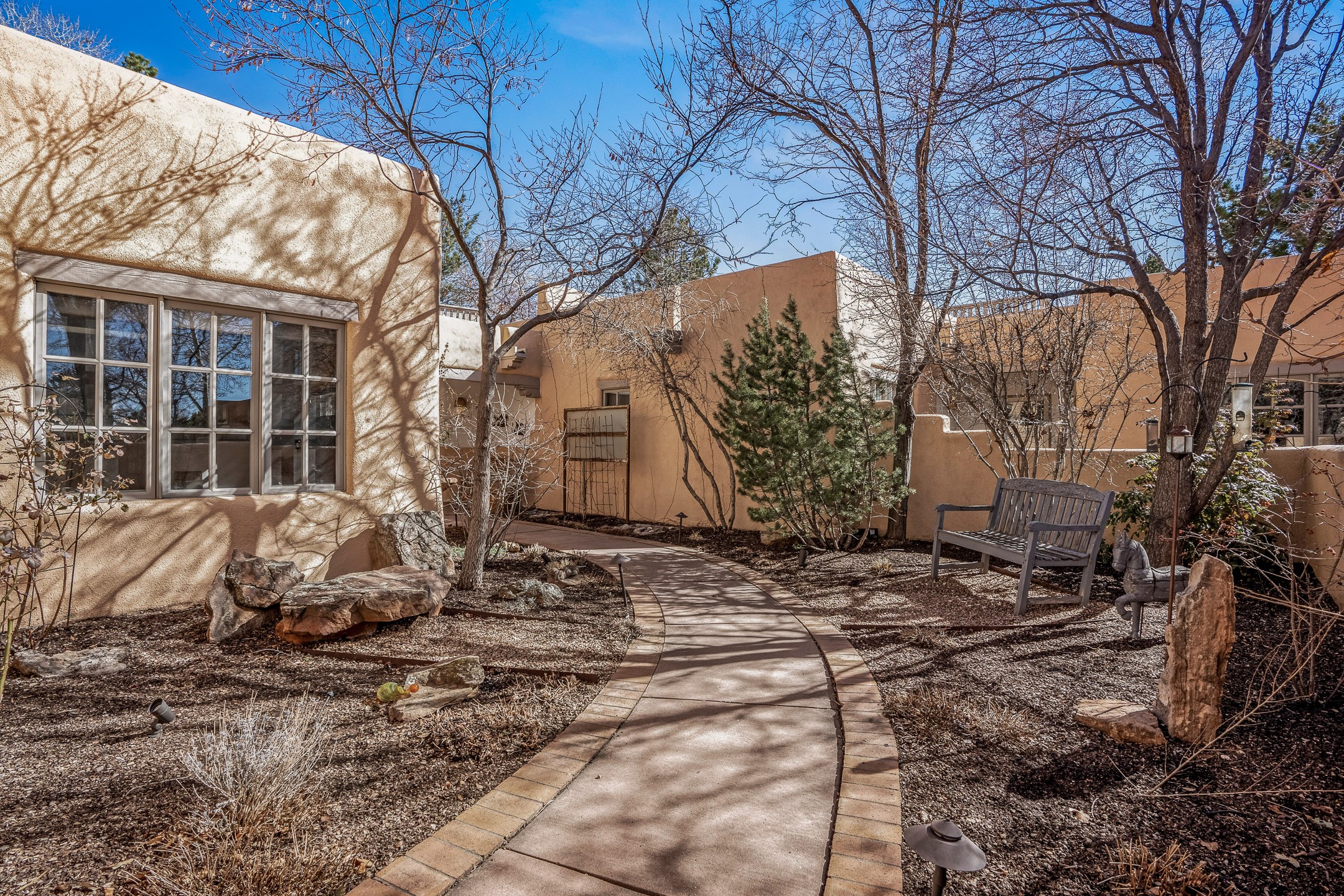 Discover the essence of Santa Fe living in this elegant Pinon B floor plan, offering 1640 Sq Ft of beautifully designed space within the coveted Quail Run Community. From the moment you step through the expansive front courtyard, you'll be welcomed by classic Southwestern warmth and character. Inside, rich Santa Fe influences abound, including viga ceilings, kiva fireplaces and saltillo tile floors, creating a timeless and inviting atmosphere. The well-appointed kitchen and open living area flow effortlessly to the private back portal, a serene retreat perfect for outdoor relaxation or entertaining. Beyond the condos appeal, Quail Run offers unparalleled amenities, just minutes from Santa Fe's vibrant Plaza and Canyon Road.