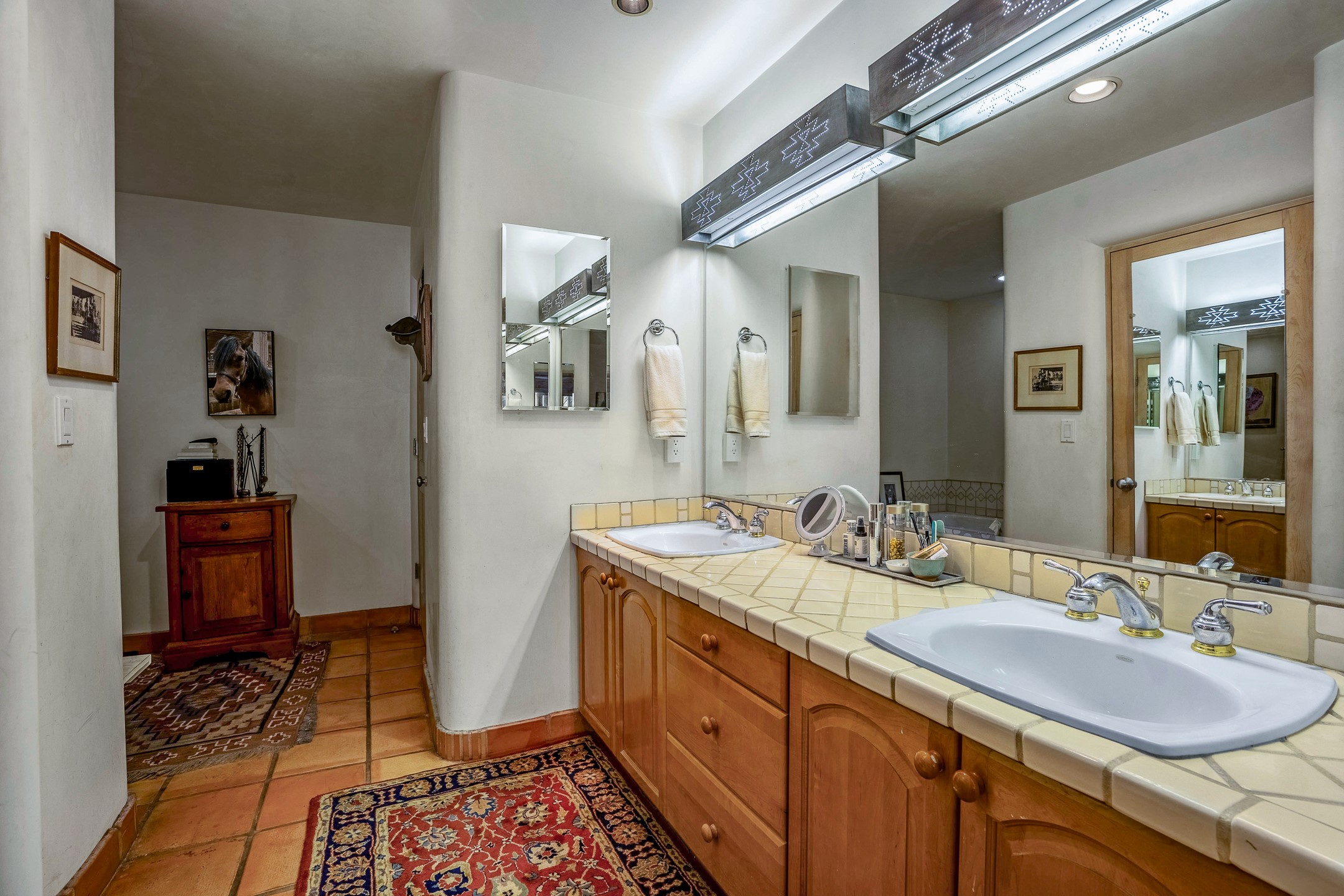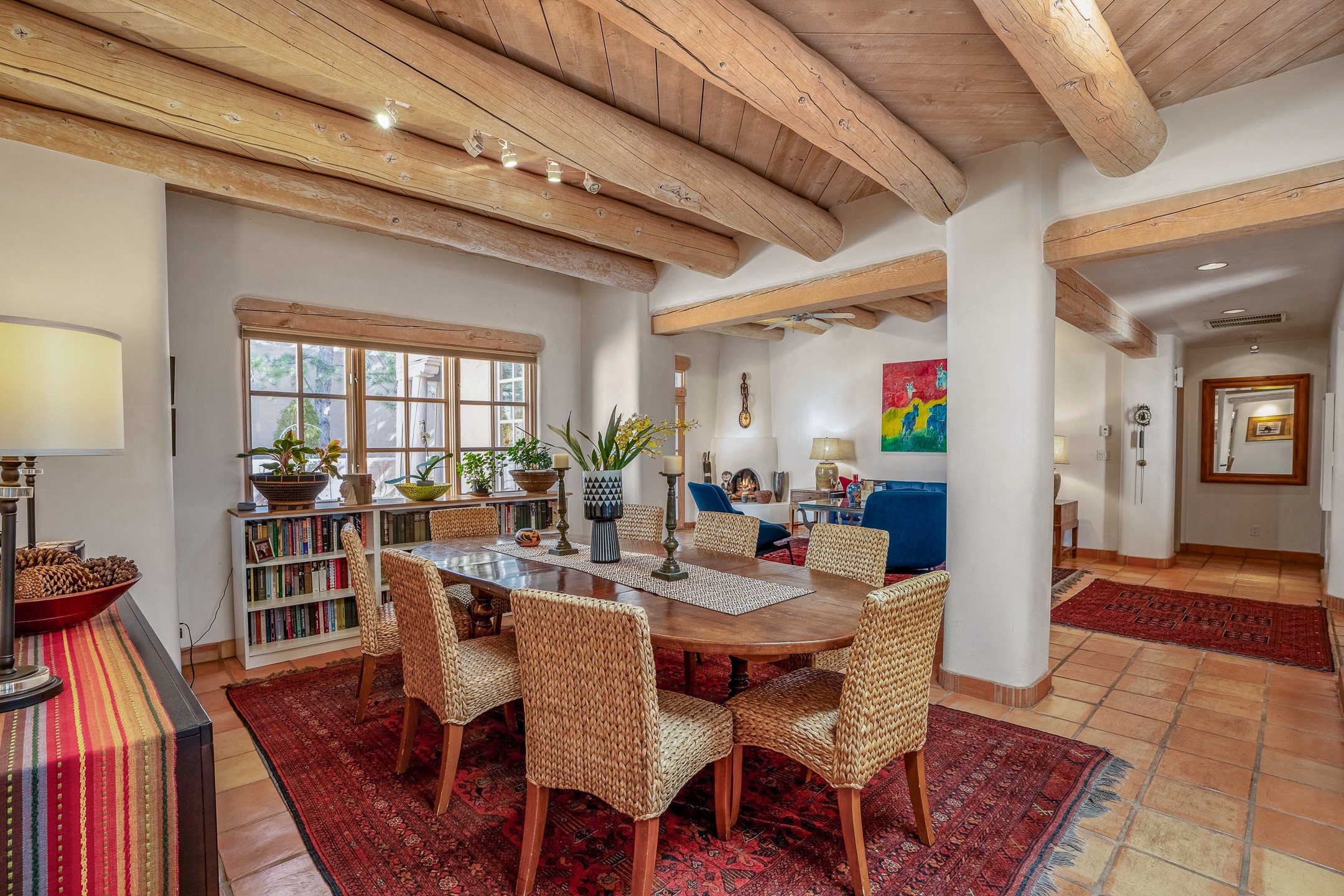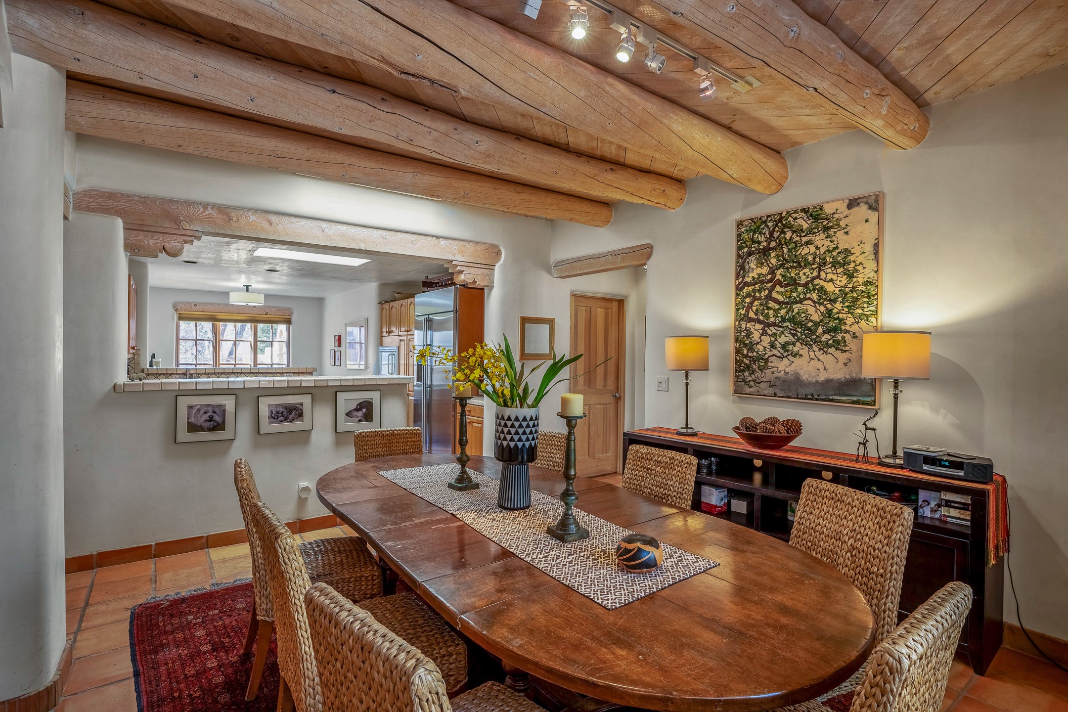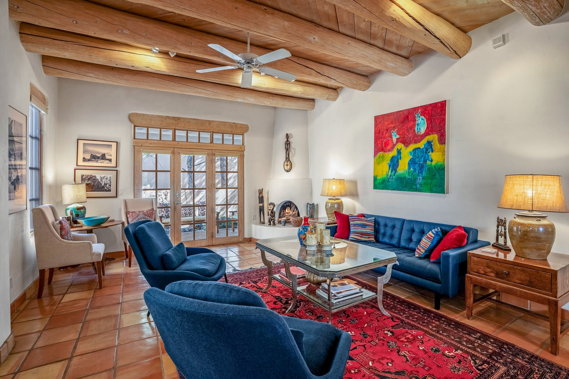 Discover the essence of Santa Fe living in this elegant Pinon B floor plan, offering 1640 Sq Ft of beautifully designed space within the coveted Quail Run Community. From the moment you step through the expansive front courtyard, you'll be welcomed by classic Southwestern warmth and character. Inside, rich Santa Fe influences abound, including viga ceilings, kiva fireplaces and saltillo tile floors, creating a timeless and inviting atmosphere. The well-appointed kitchen and open living area flow effortlessly to the private back portal, a serene retreat perfect for outdoor relaxation or entertaining. Beyond the condos appeal, Quail Run offers unparalleled amenities, just minutes from Santa Fe's vibrant Plaza and Canyon Road.