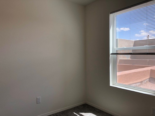 Only three years old, this townhouse has been lightly lived in and is now available for purchase by YOU! The front door opens into a living/dining room. At one end is a cute kitchen, with granite countertops, dark wood cabinets, and pantry. At the other end, a sliding glass door leads to the patio and walled back yard. The primary bedroom and bathroom are on the first floor, as well as a laundry room which leads into the one-car garage. Upstairs are two more bedrooms and a full bath. Energy efficient design with programmable thermostat, low E windows, and energy efficient central heating and cooling. The centrally located, only minutes from the Big I, in the North Valley off 4th Street.