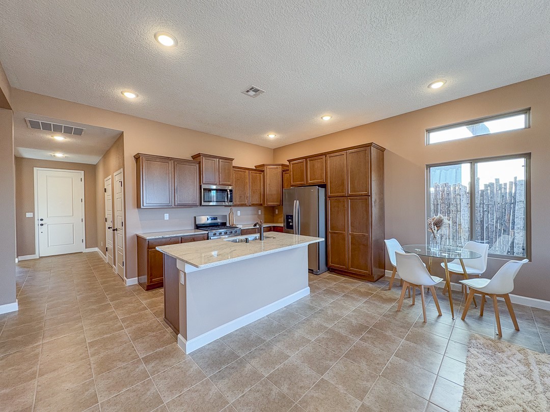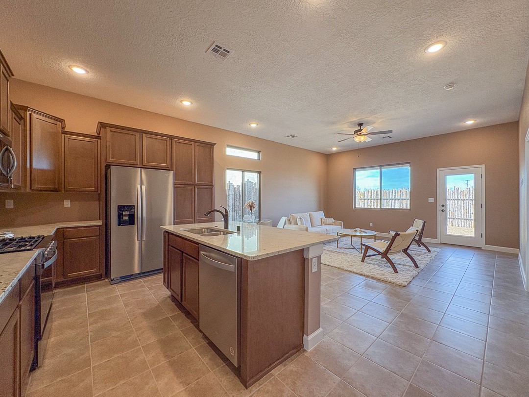 Welcome to your dream home in the heart of Santa Fe! This brand-new construction offers a perfect blend of modern comfort and Southwestern charm. The open floor plan creates a seamless flow between rooms, perfect for entertaining or simply enjoying quality time with loved ones. Energy-efficient features throughout the home not only help reduce your carbon footprint but also keep those utility bills in check. The primary suite provides a peaceful retreat with ample closet space and an en-suite bathroom. Peace of mind comes standard with this home, thanks to a one-year builder warranty and a ten-year roof warranty so you can rest easy knowing that your investment is protected for years to come. Don't miss your chance to make this lovely new construction your forever home. Schedule a viewing today and prepare to fall in love!