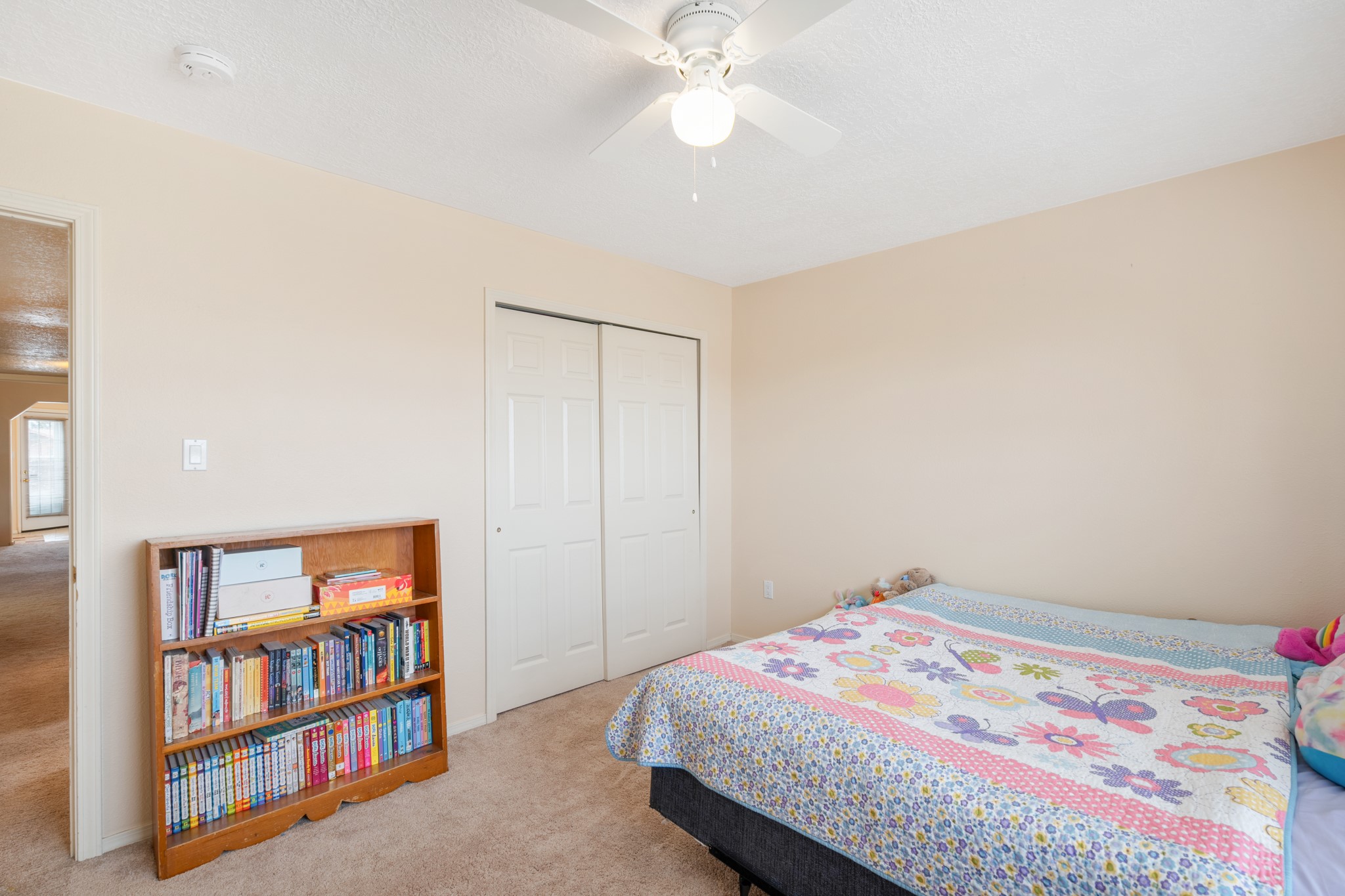 Tucked away in a peaceful cul-de-sac within a desirable gated community, this beautiful 3-bedroom, 2-bathroom home offers the perfect blend of comfort, tranquility, convenience, and modern living. Designed with an open floor plan and abundant natural light, this home feels bright and welcoming.The spacious kitchen is a standout feature, boasting newer appliances, ample counter space, and generous storage--ideal for cooking enthusiasts and entertainers alike. The airy living and dining areas flow seamlessly, creating a welcoming atmosphere for gatherings or quiet evenings at home.Step outside and enjoy the xeriscaped front and back yards, designed for low maintenance and water efficiency. The large backyard is a dream for pet owners, especially dogs, offering plenty of space to run and play. Established fruit trees bring natural beauty and seasonal harvests to your private outdoor retreat. Located in a family-friendly neighborhood, this home offers exclusive access to a private park, perfect for outdoor activities and community events. With easy access to NM 599, commuting and daily errands are a breeze.Additional features include a roof warranty for peace of mind, new dining and family room blinds, a new sliding glass door, a new evaporative cooling system, fresh interior paint, and stucco maintenance.Don't miss this rare opportunity to own a beautiful home in a serene, secure, and welcoming community!
