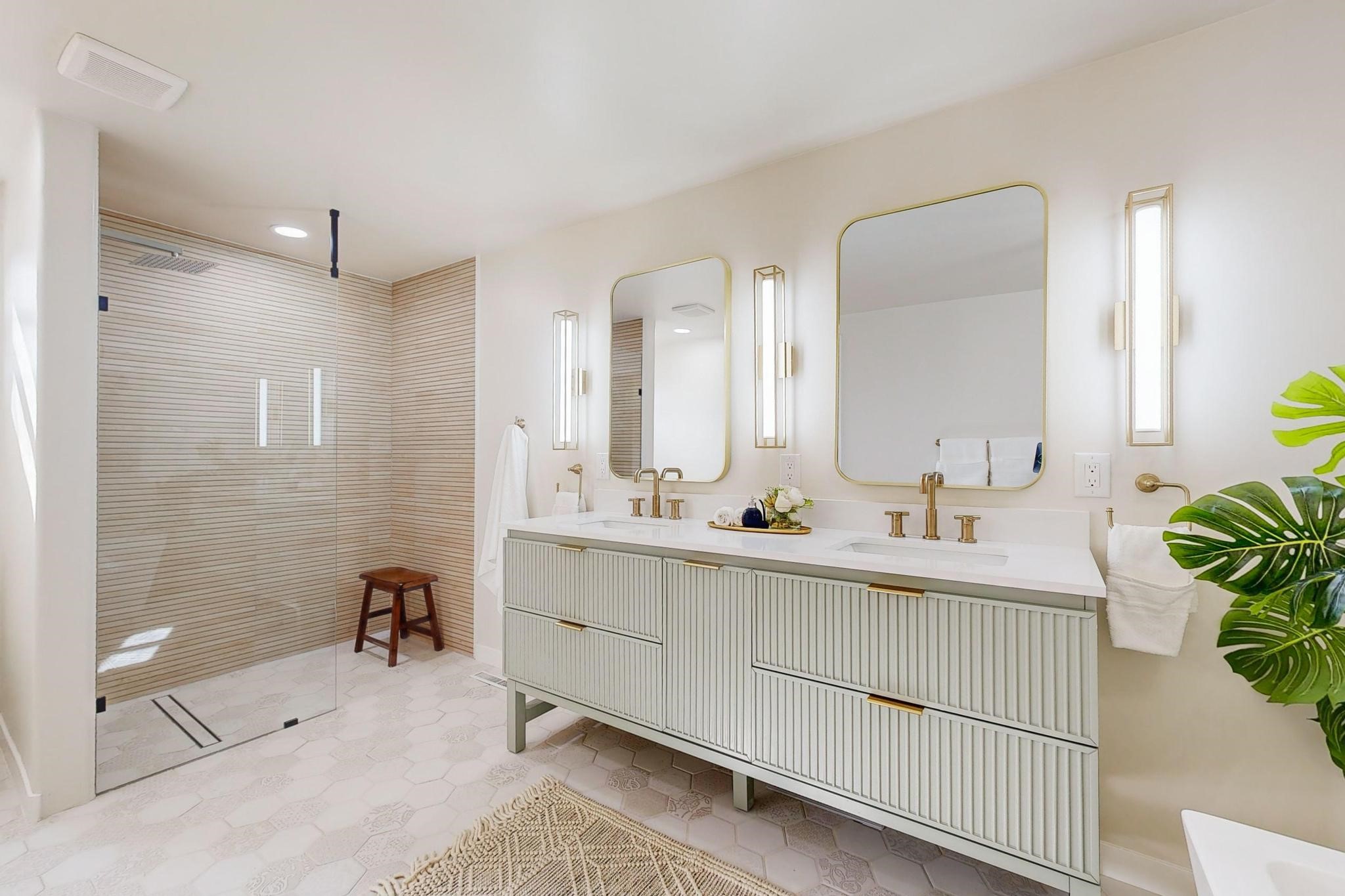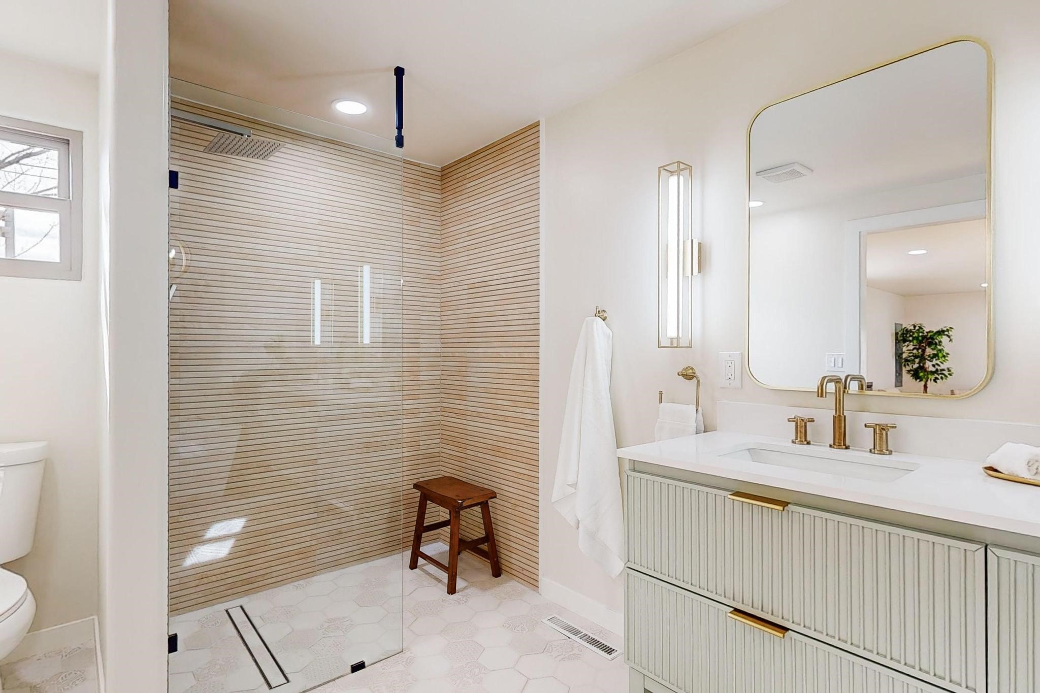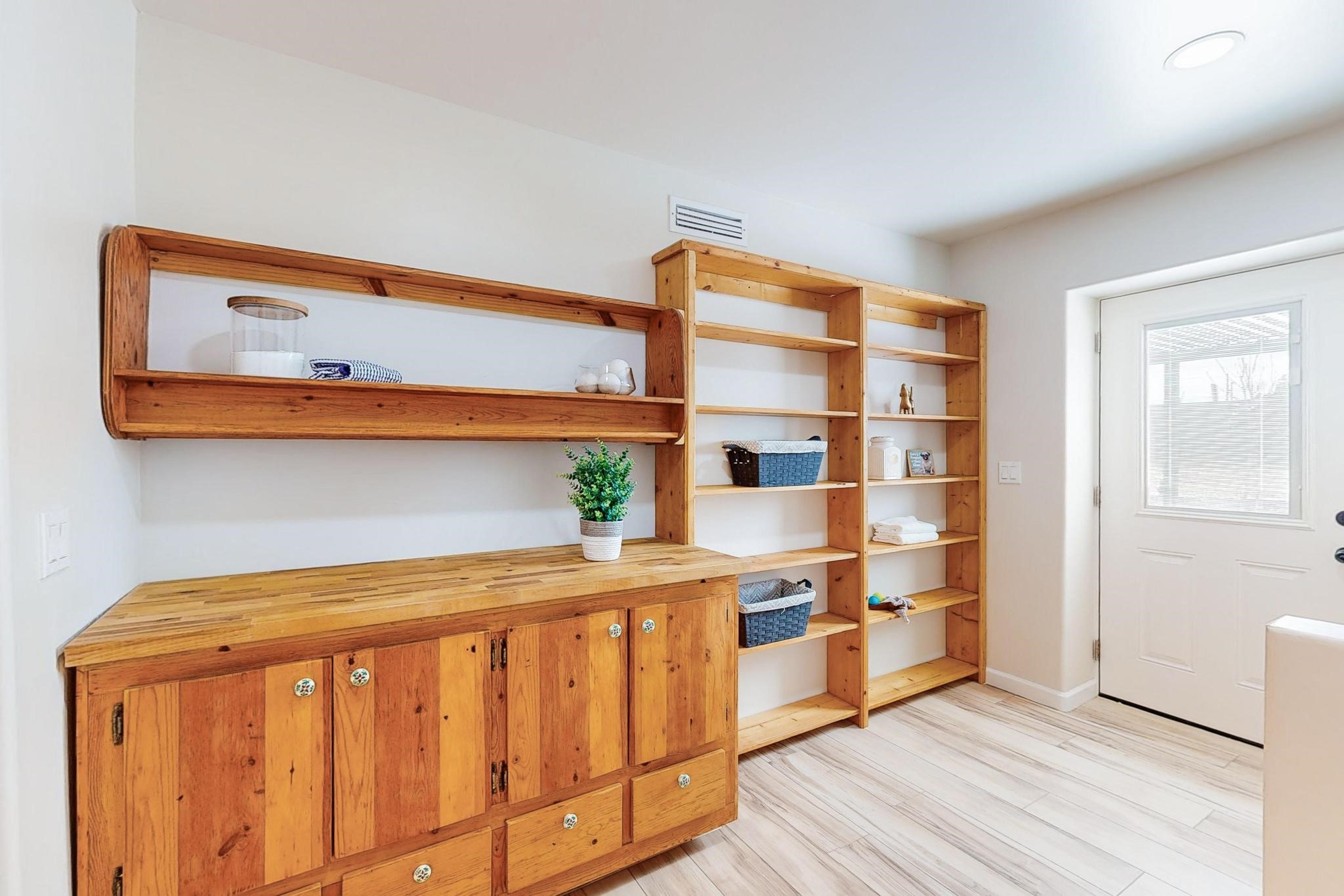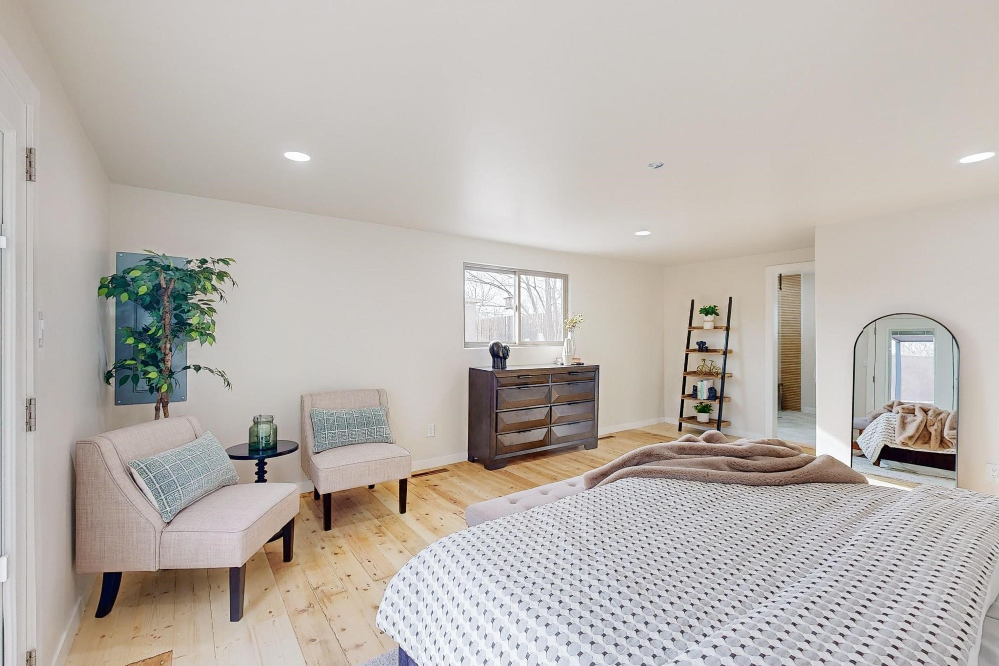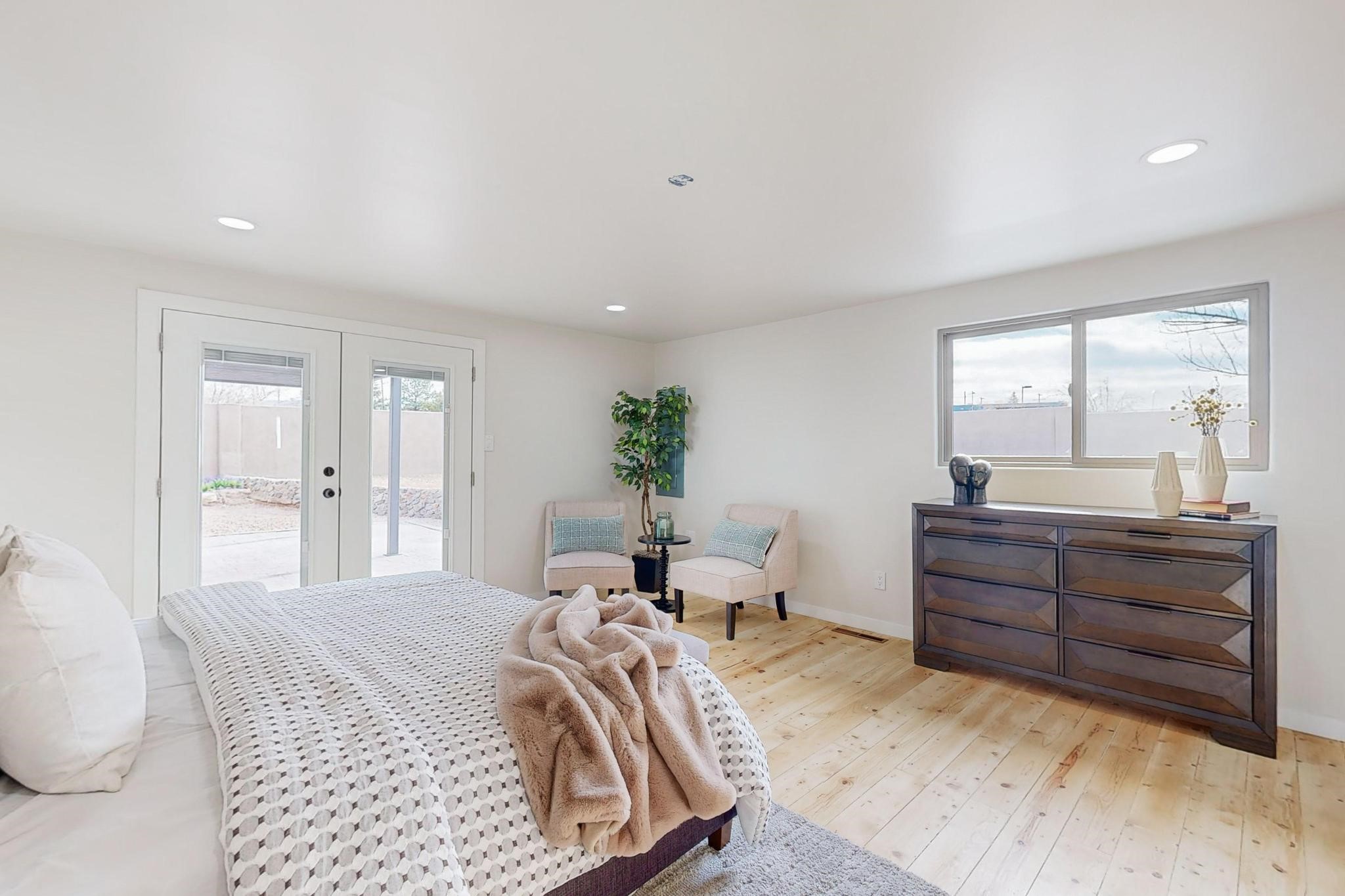 Discover the perfect balance of classic Santa Fe charm and contemporary living in this beautiful 3 bedroom, 2 bath Allen Stamm home, nestled in the highly sought-after Casa Alegre neighborhood. This home showcases hallmark Stamm features including exposed vigas, original hardwood floors, and two stunning fireplaces- a cozy Kiva and a traditional wood-burning hearth- that infuse warmth and character throughout. Enjoy the flexibility of two living spaces. The chef's kitchen is both stylish and functional, boasting quartz countertops, updated appliances, & an expansive 8-foot island with a built-in beverage fridge, ideal for casual gatherings or culinary creations. A bonus office space with a private entrance offers flexibility for remote work, creative pursuits, or a peaceful retreat. The primary bathroom invites relaxation with a large soaking tub, perfect for unwinding after a busy day. Outside is a spacious backyard designed for entertaining, gardening, or simply savoring serene Santa Fe sunsets. A convenient wash station off the back door makes cleanup after outdoor activities a breeze. With new windows, ample parking, and a central location close to Santa Fe's vibrant amenities, this home offers the perfect blend of comfort, charm, and convenience in one of the city's most desirable neighborhoods. Schedule your showing today!