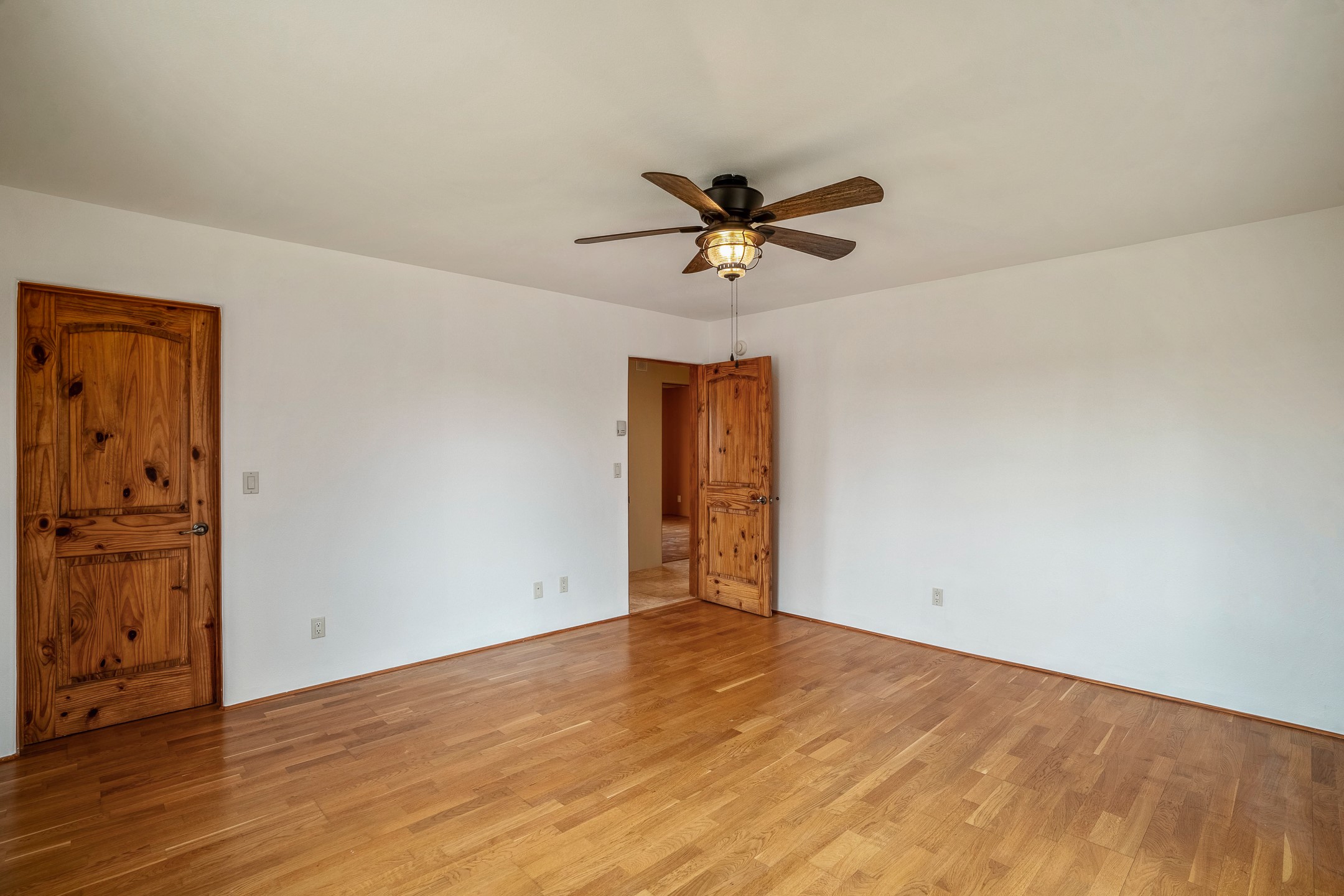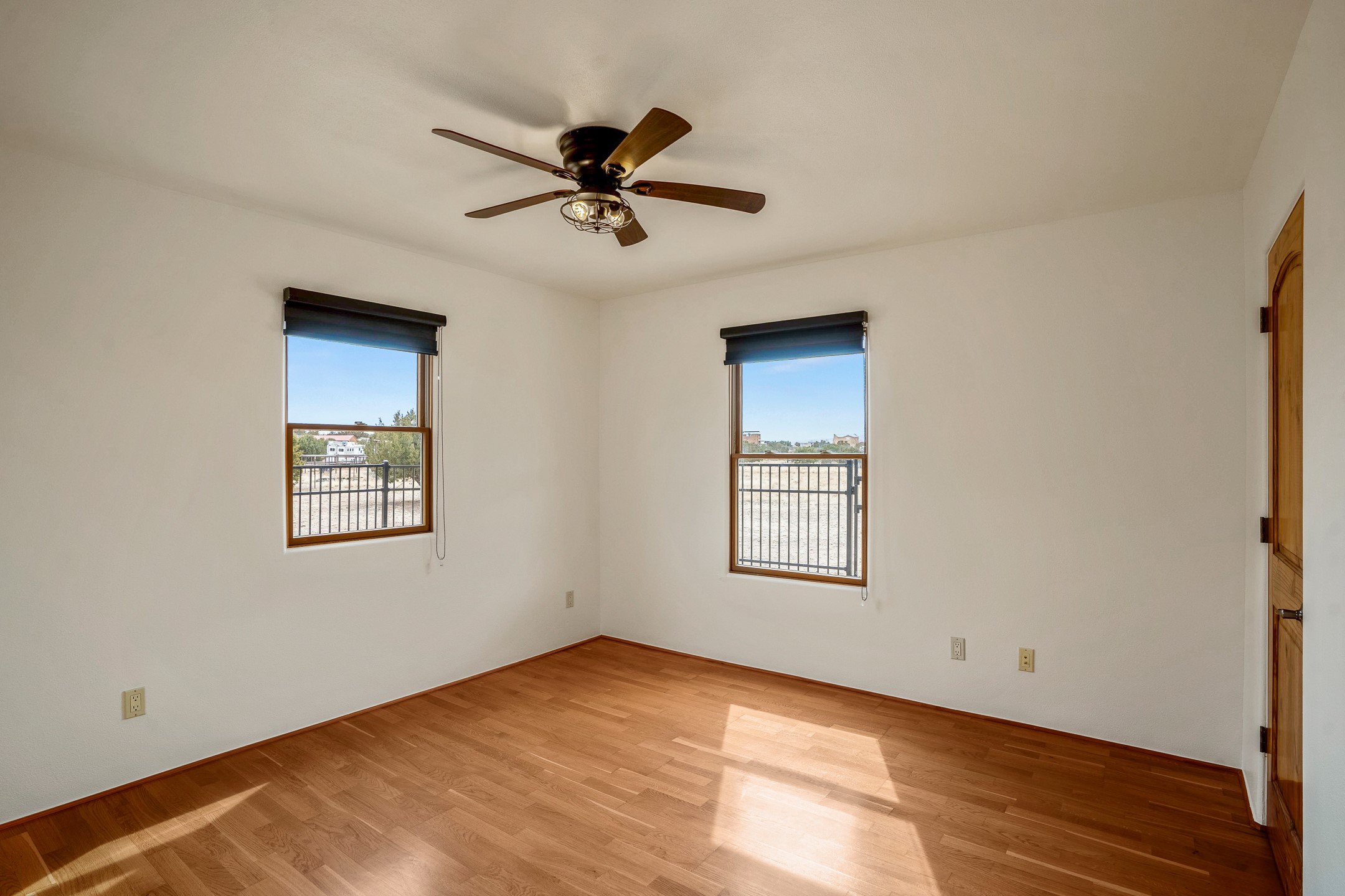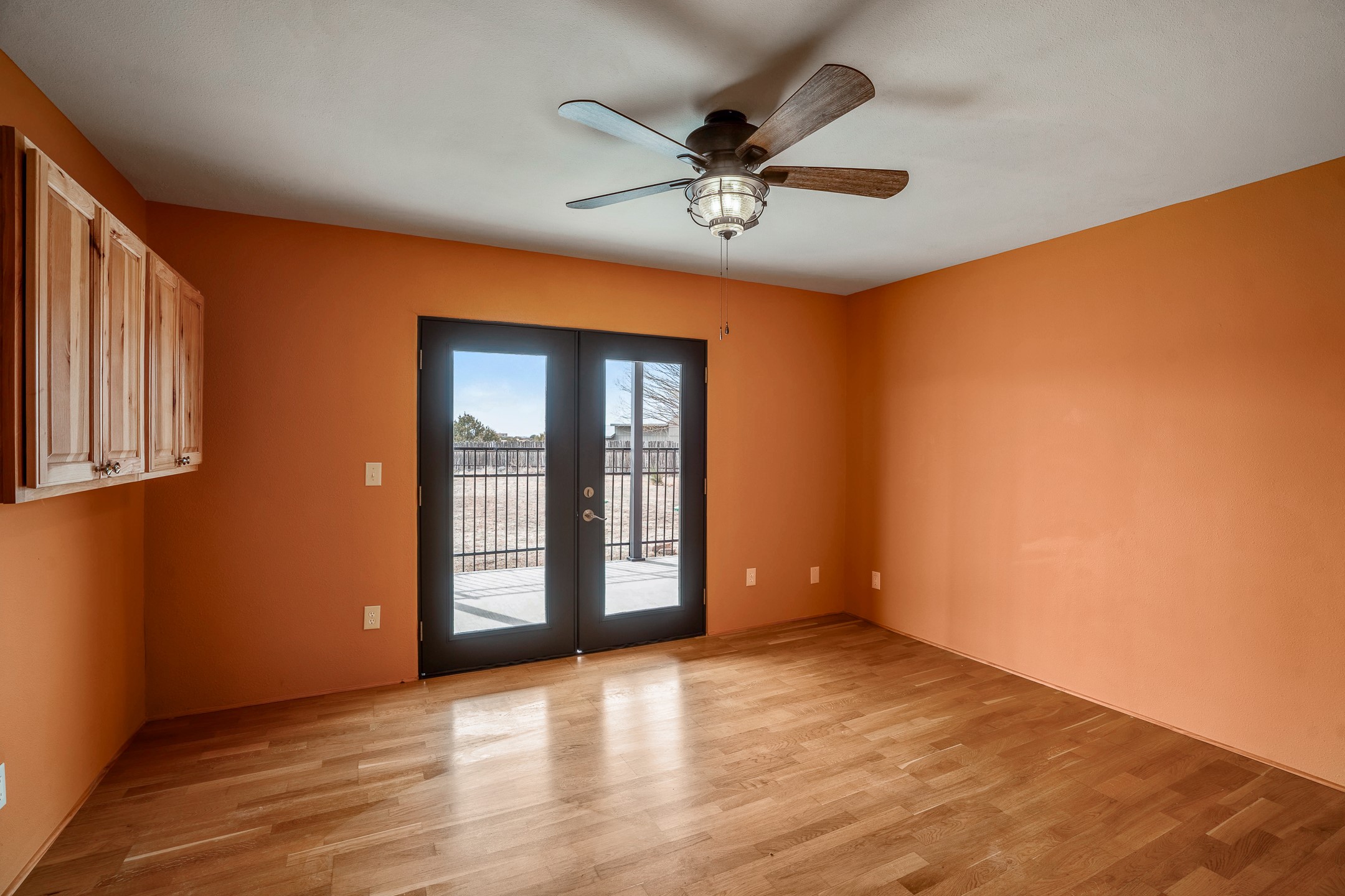 This beautiful single-level home boasts a spacious 2,727 +/- square foot split-bedroom floor plan with 4 bedrooms, a sunroom, 3 full baths, and a 3-car garage. 2025: home has been appx 80% re-stuccoed, & is situated on a fenced & gated 2.5-acre lot with breathtaking mountain views in all directions, offering a serene rural setting allowing horses, no HOA, just minutes from hospitals, restaurants, & grocery stores. The large kitchen is a chef's dream, featuring NEW MOSAIC TILE BACKSPLASH, abundant cabinetry & drawers for ample storage, granite countertops, an island/breakfast bar, pantry and stainless-steel appliances. Adjacent to the kitchen is the formal dining room with tiled accents and plaster finished wall/ceiling. The grand living room impresses with high ceilings, vigas, can lighting, and a REMODELED GAS FIREPLACE WITH MANTLE. From the living room, step into the NEW SUNROOM, which opens to a NEW COVERED PORCH perfect for relaxing & enjoying the views. The spacious owner's suite has NEW ENGINEERED WOOD FLOORING, walk-in closet with built-ins, vigas with tongue & groove ceiling and a ceiling fan. The ensuite bath has a NEW TUB, NEW LOVELY TILED SHOWER, AND NEW DOUBLE SINK VANITY. Additional bedrooms are thoughtfully designed with ample space & functionality. The hall bath has been updated with a NEW VANITY, while the laundry room, complete with plentiful cabinets and drawers, a skylight, and an NEWELY ADDED SINK, offers convenience and style. Many wonderful features and amenities include: Radiant heat-2 Evaporative cooling units-Tons of skylights-Wood doors-NEW PERGOLA-NEW 16X16 TUFF SHED (13K)-Plaster finish walls-Hunter Douglas blinds-Ceiling fans-NEW BRICK TILED ACCENT WALLS in hallway-Plenty of wall space for artwork-FRESHLY PAINTED INTERIOR (Almost every room)-Multiple covered enclosed patios, perfect for outdoor living, and entertaining. This property combines comfort and functionality with stunning views. Please read agent only remarks.