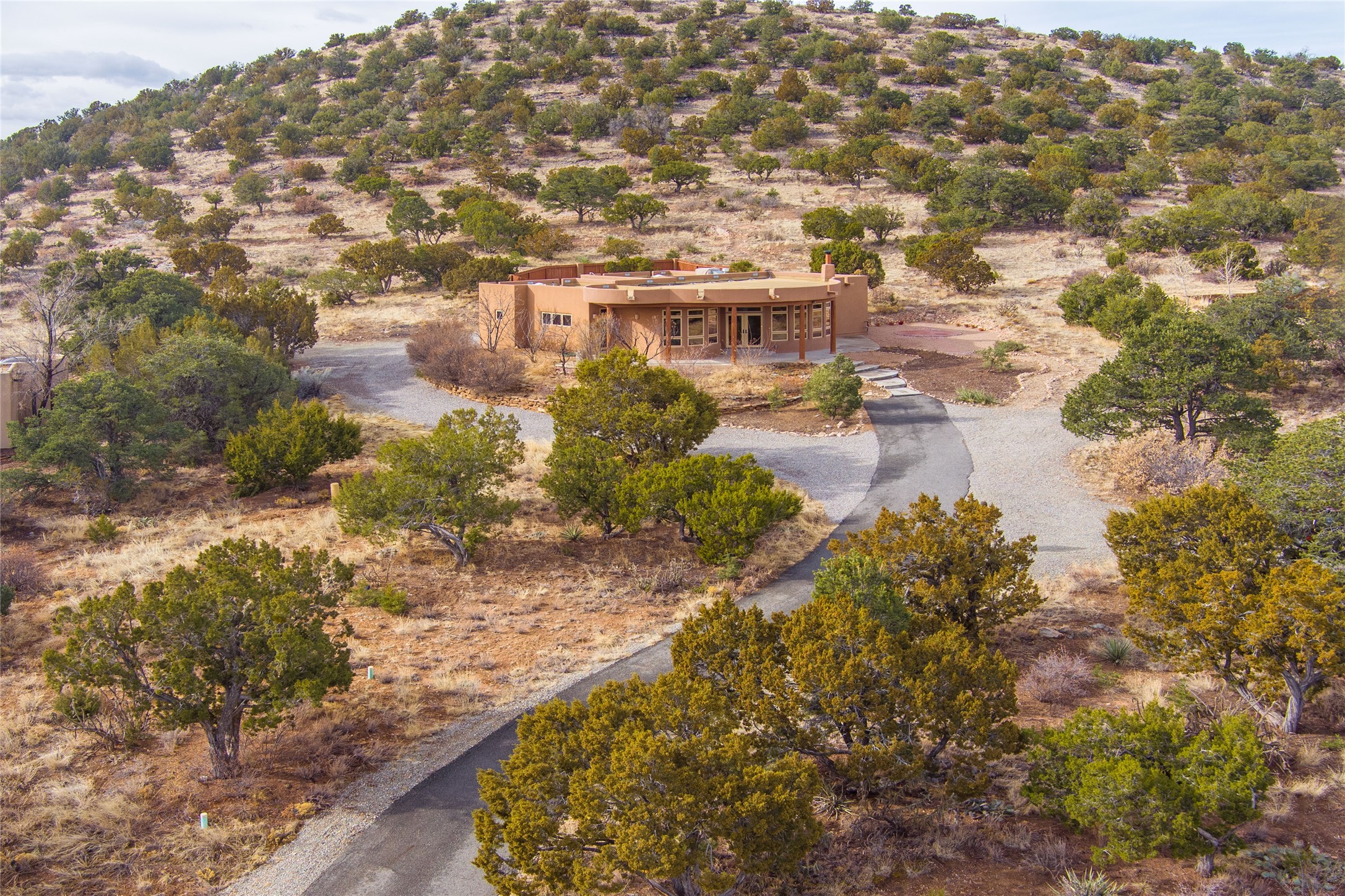 This stunning 2 bedroom, 1 office/bedroom, 2 bath home sits on a premier view lot in the sought after DosGriegos Subdivision, offering breathtaking mountain and foothills views. Designed for privacy,the house is hidden from the street and features a large office, wall of windows, an open floorplan, a plaster kiva fireplace, radial vigas, tile flooring, and solid pine doors. The spaciouskitchen boasts cherry cabinetry and a large walk in pantry. A formal office off of the great roomprovides inspiring views. The oversized garage provides space for hobbies or a workshop andan enclosed dog run/yard adds convenience. With paved roads, community water, fire hydrantsfor lower insurance, and no HOA dues, this high quality 2006 built home offers comfort,seclusion and views. Schedule a showing today!