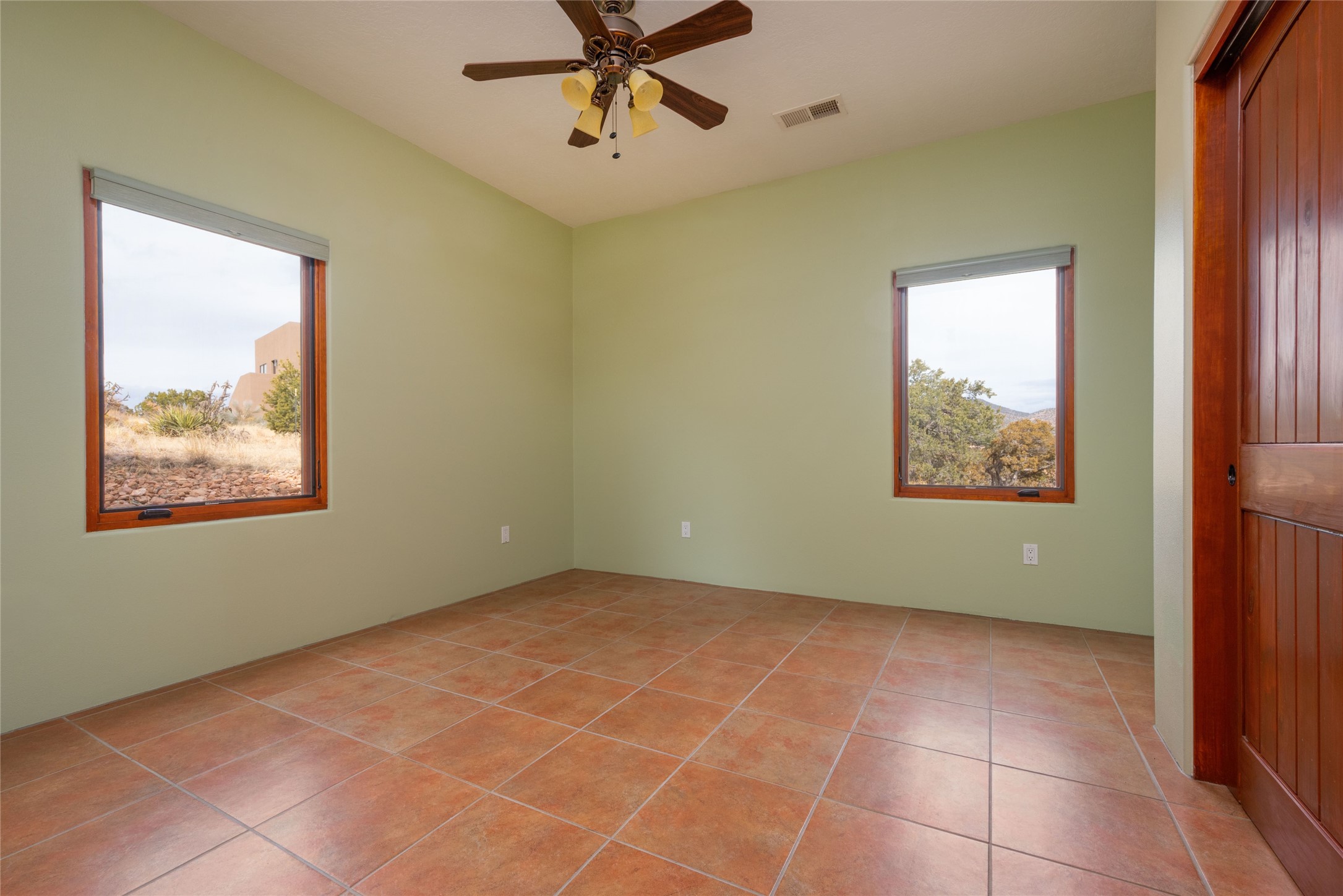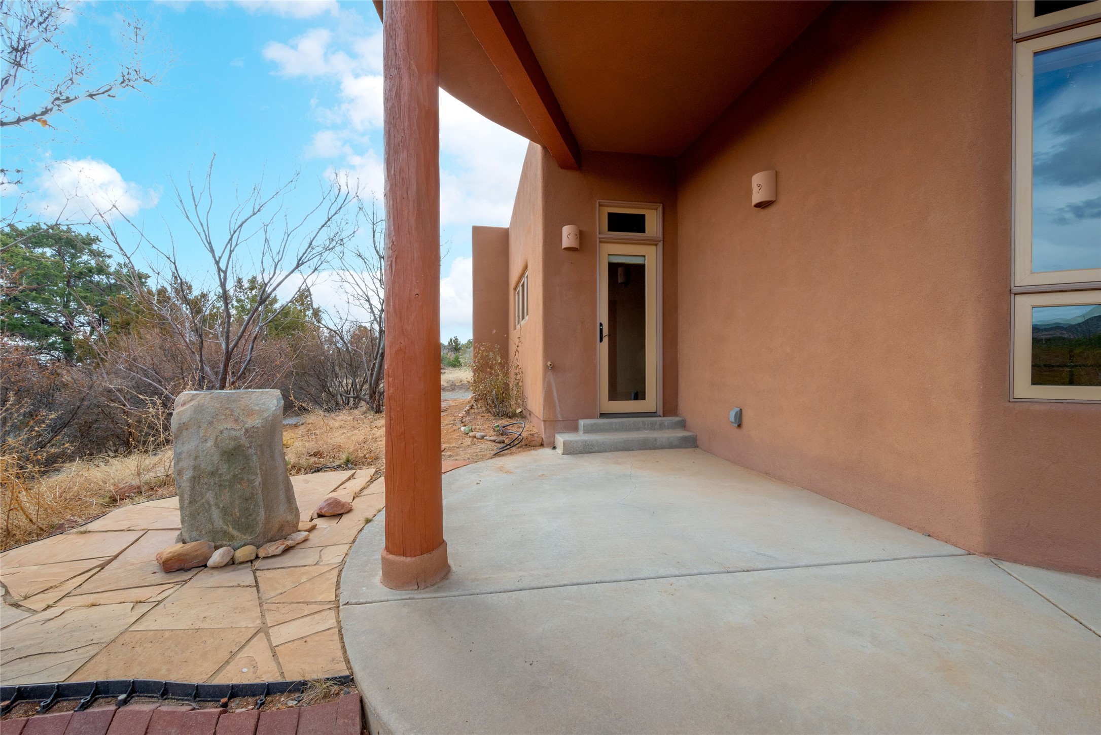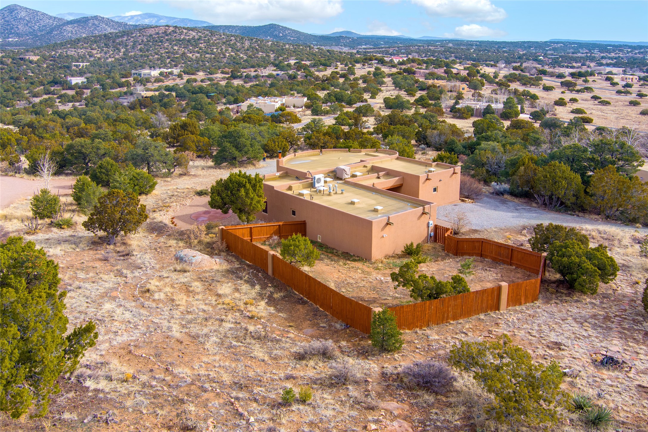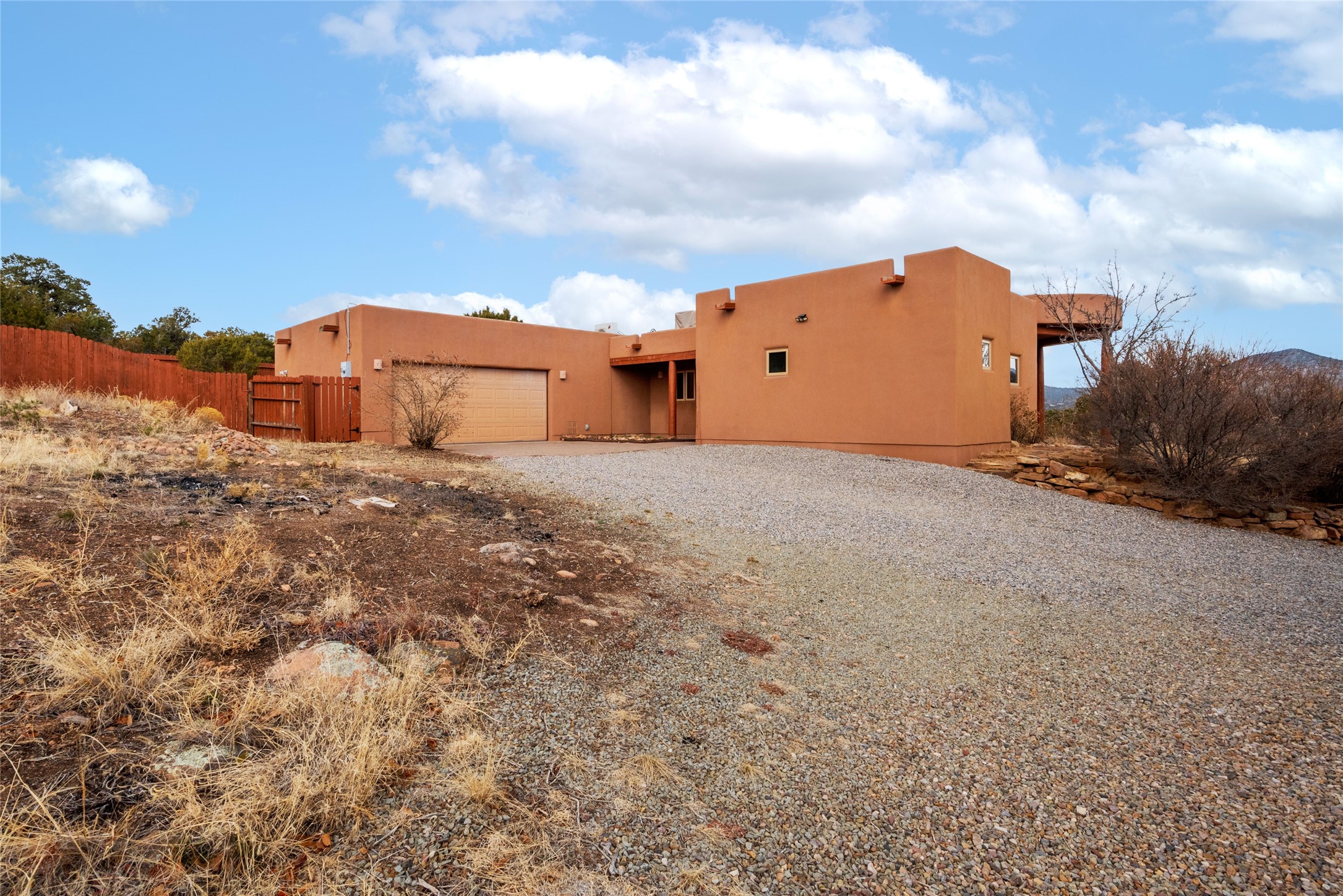 This stunning 2 bedroom, 1 office/bedroom, 2 bath home sits on a premier view lot in the sought after DosGriegos Subdivision, offering breathtaking mountain and foothills views. Designed for privacy,the house is hidden from the street and features a large office, wall of windows, an open floorplan, a plaster kiva fireplace, radial vigas, tile flooring, and solid pine doors. The spaciouskitchen boasts cherry cabinetry and a large walk in pantry. A formal office off of the great roomprovides inspiring views. The oversized garage provides space for hobbies or a workshop andan enclosed dog run/yard adds convenience. With paved roads, community water, fire hydrantsfor lower insurance, and no HOA dues, this high quality 2006 built home offers comfort,seclusion and views. Schedule a showing today!