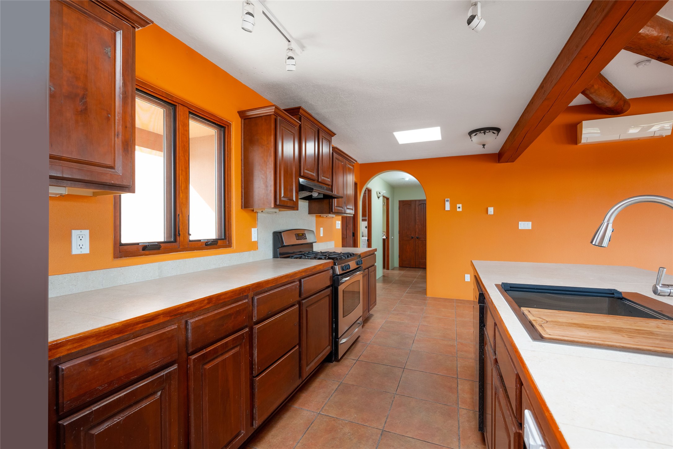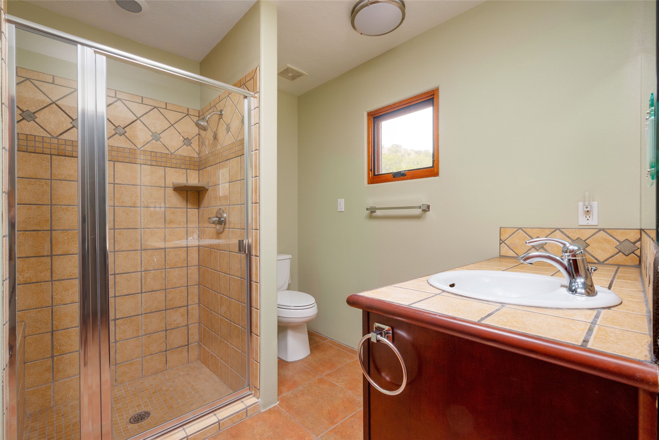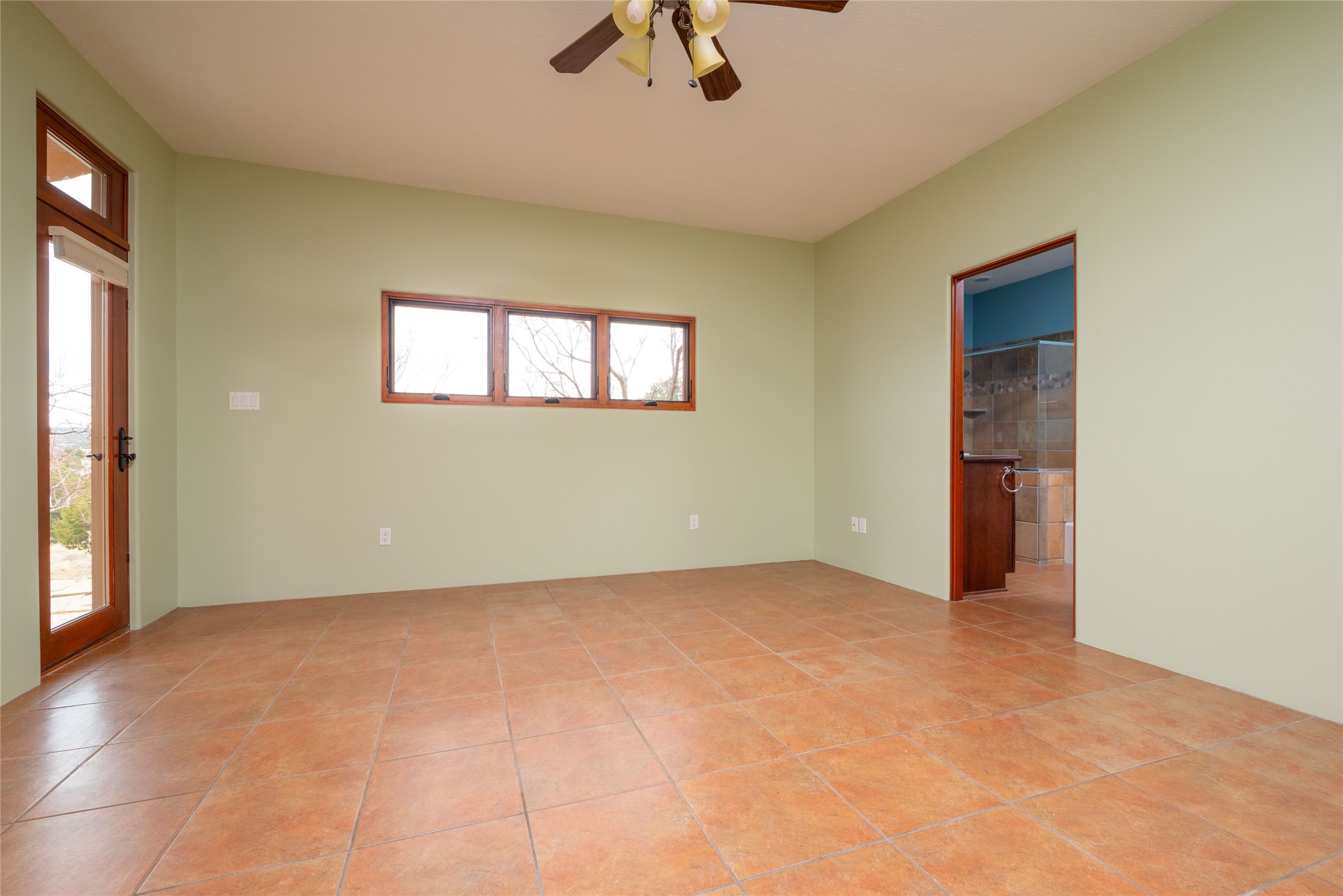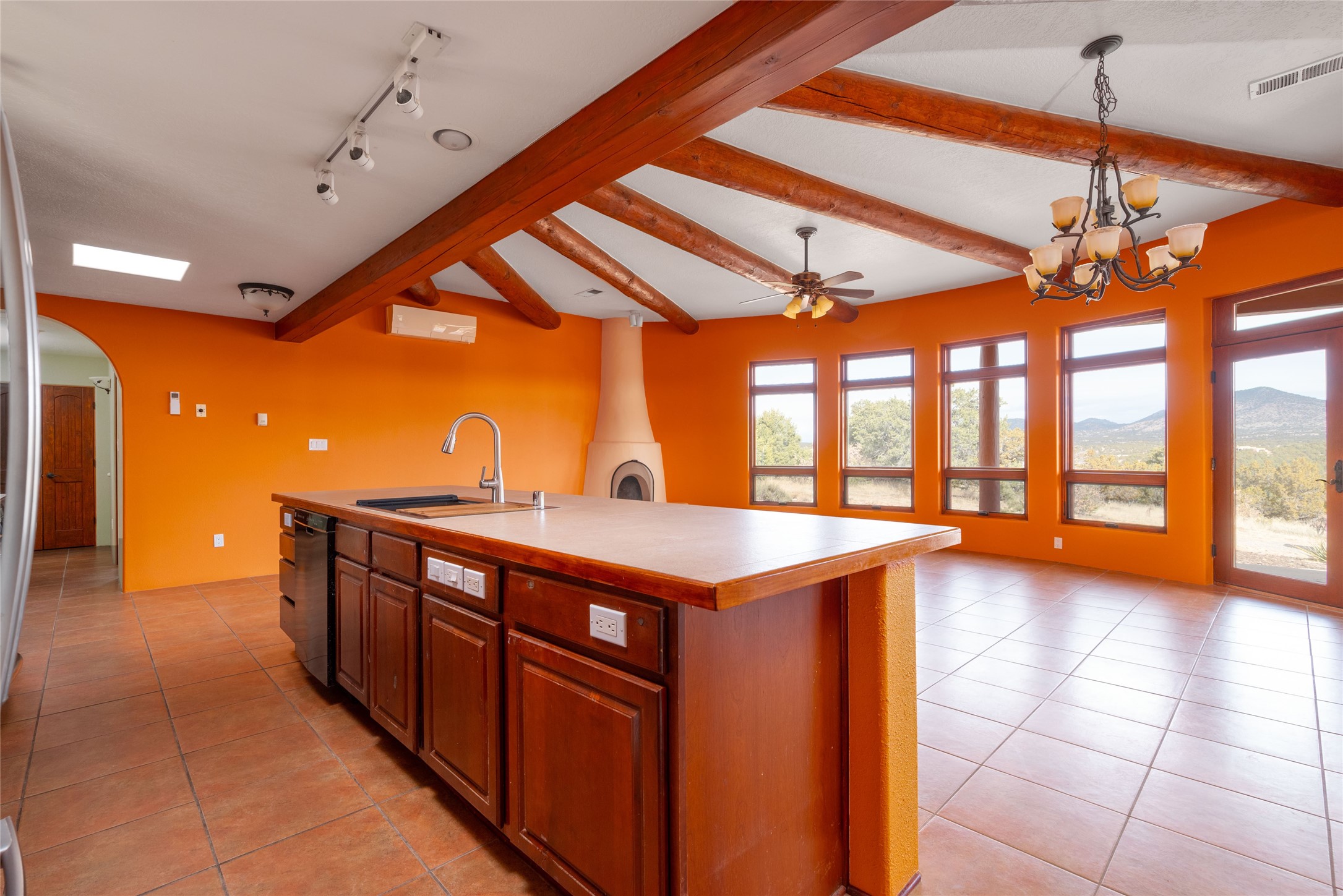 This stunning 2 bedroom, 1 office/bedroom, 2 bath home sits on a premier view lot in the sought after DosGriegos Subdivision, offering breathtaking mountain and foothills views. Designed for privacy,the house is hidden from the street and features a large office, wall of windows, an open floorplan, a plaster kiva fireplace, radial vigas, tile flooring, and solid pine doors. The spaciouskitchen boasts cherry cabinetry and a large walk in pantry. A formal office off of the great roomprovides inspiring views. The oversized garage provides space for hobbies or a workshop andan enclosed dog run/yard adds convenience. With paved roads, community water, fire hydrantsfor lower insurance, and no HOA dues, this high quality 2006 built home offers comfort,seclusion and views. Schedule a showing today!