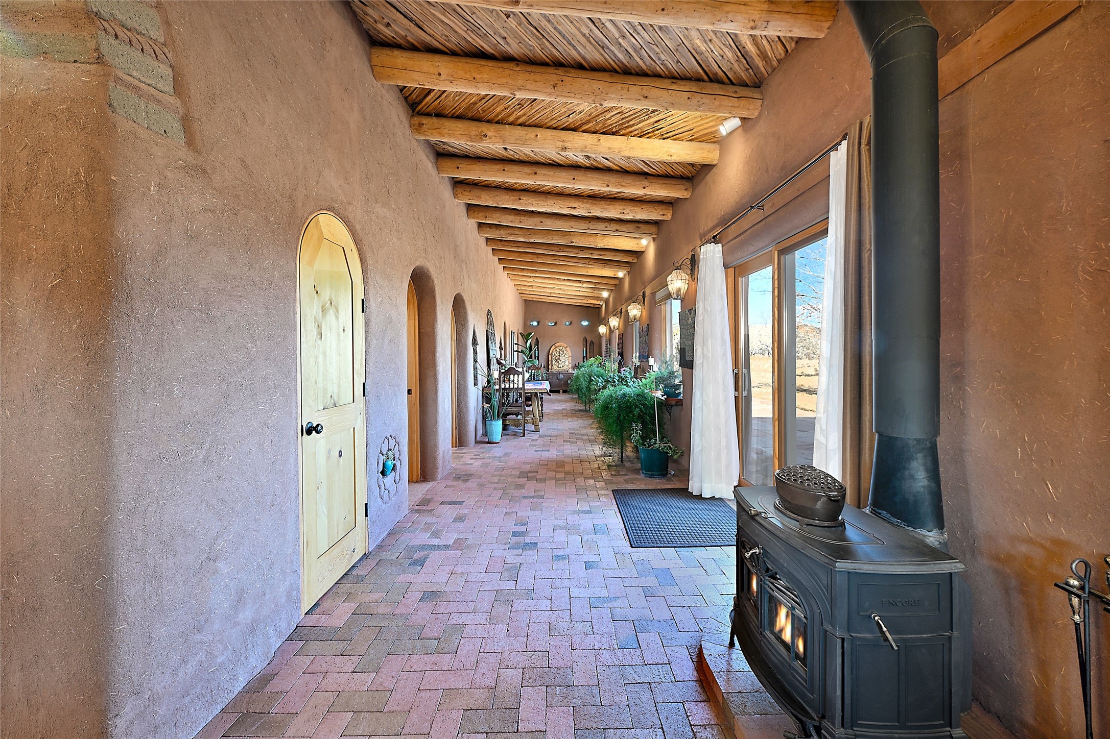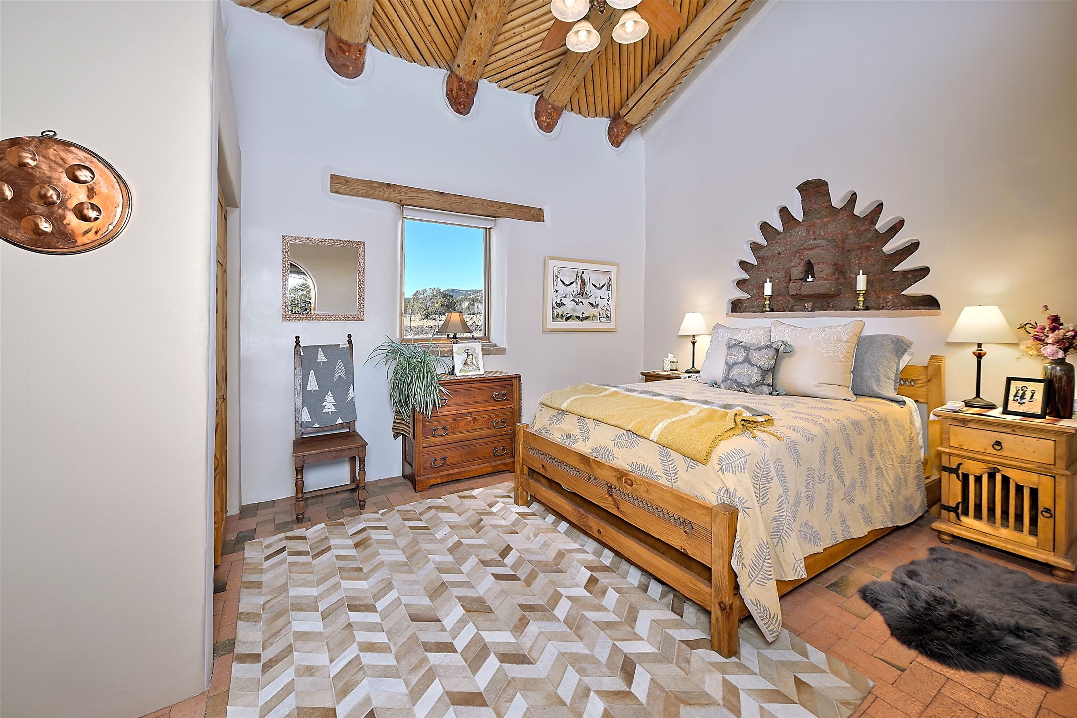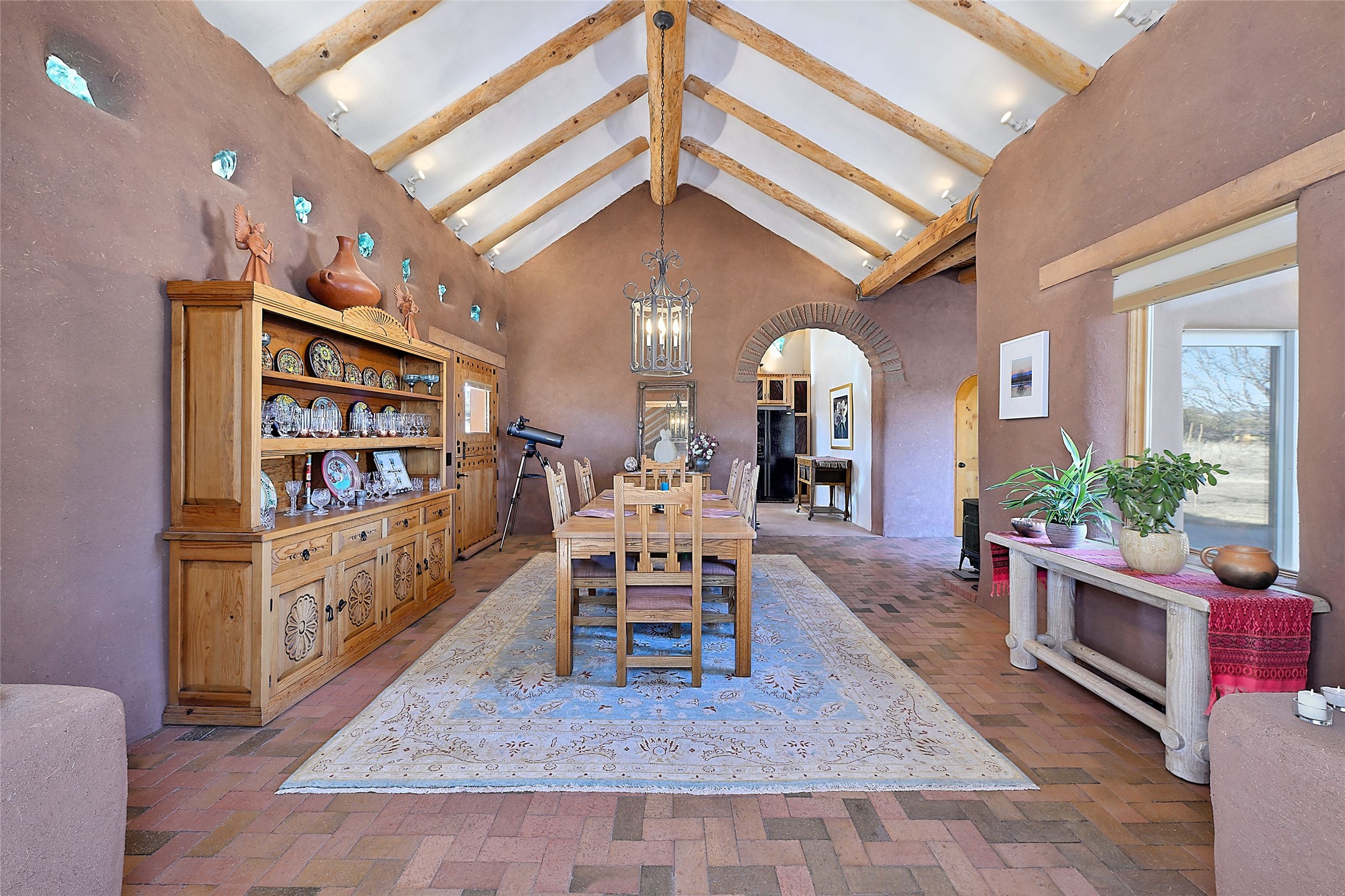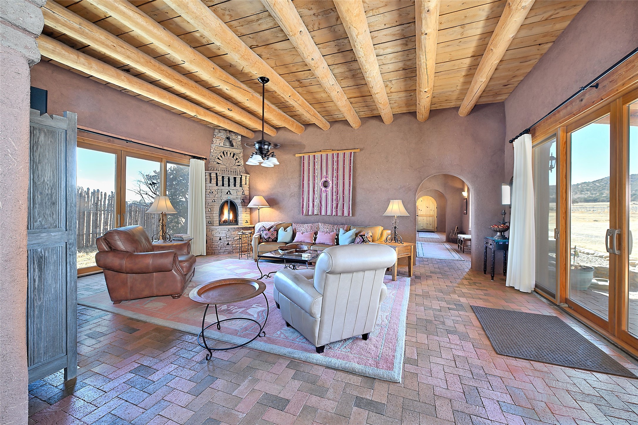 Welcome to this serene Northern New Mexico retreat, just minutes from the charming village of El Rito. Nestled on 3.96 acres, this stunning home captures the essence of Northern New Mexico-style architecture, blending exquisite craftsmanship with natural beauty.Step inside to find grand sunroom hallways that showcase the home's character, from beam and latilla ceilings to exposed adobe features in nichos and decorative accents. The cathedral ceilings, adobe-plastered walls, and warm brick and flagstone floors create a timeless, inviting atmosphere. Natural light pours in through windows and skylights, enhancing the spacious layout.Designed for comfort and privacy, the 3-bedroom, 2-bath home offers excellent separation between the primary suite and the guest wing. The primary suite features a full bath with a jetted tub and a dedicated laundry area, while the guest wing includes its own bath with a beautiful stone shower, feels like you're bathing in a castle or resort. There is also a separate laundry space. The family room, centered around two striking stone fireplaces, flows into the living room, creating a perfect space for relaxation. A wood stove in the living room and in the dining room/sunroom hallway, along with radiant in-floor heating, ensures cozy warmth throughout the home.Outdoors, enjoy breathtaking views, tranquil surroundings, and a historic acequia that runs through the property. Carson National Forest surrounding the property, offering endless outdoor adventures, while Abiqui Lake is just 30 minutes away.This well-maintained home has seen recent updates, including new exterior stucco (2024), gutters, refreshed woodwork, and new roofs. The property includes community water, water rights, and a private well with a 2,500-gallon storage tank.El Rito, originally named El Rito Colorado for the red creek that flows through the village, is rich in history and home to a growing community of artists. Whether you're seeking serenity, space, or a stunning retreat, this one-of-a-kind property is a must-see!