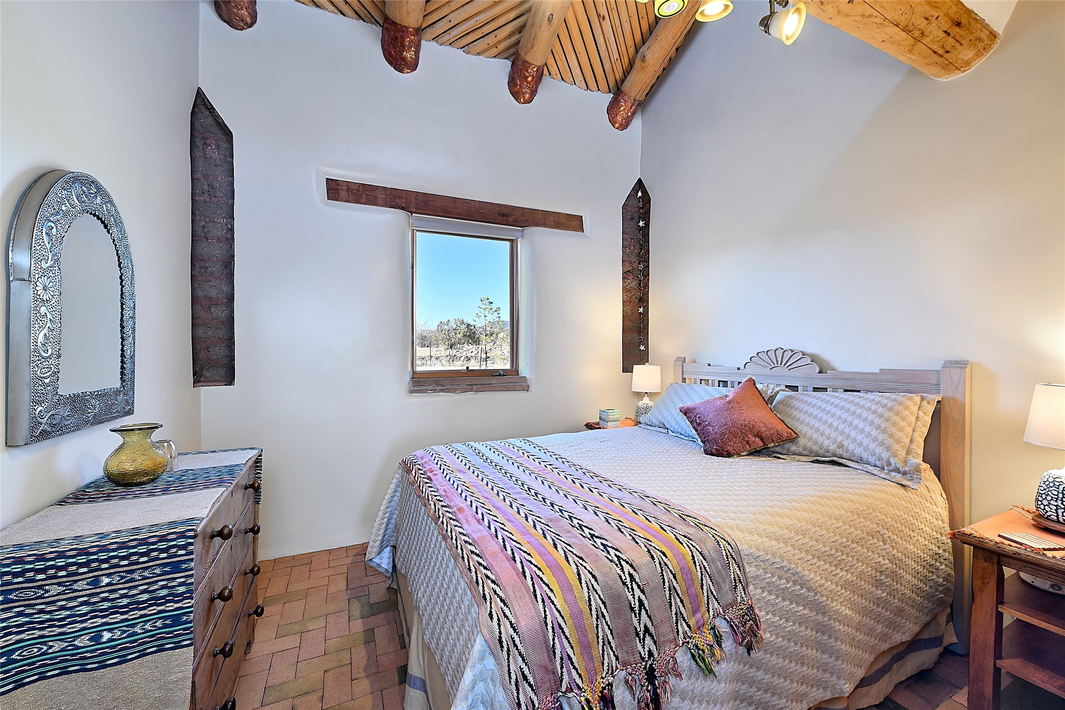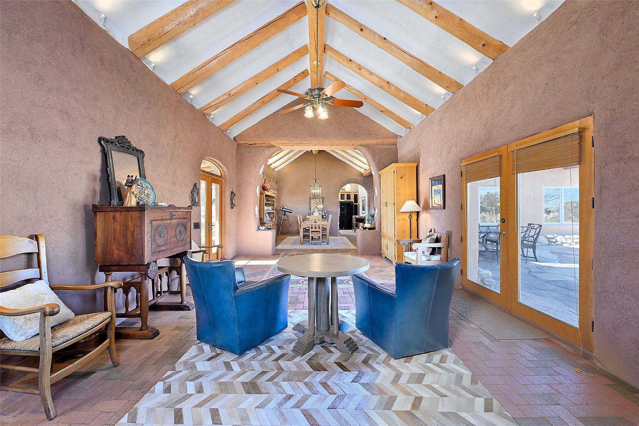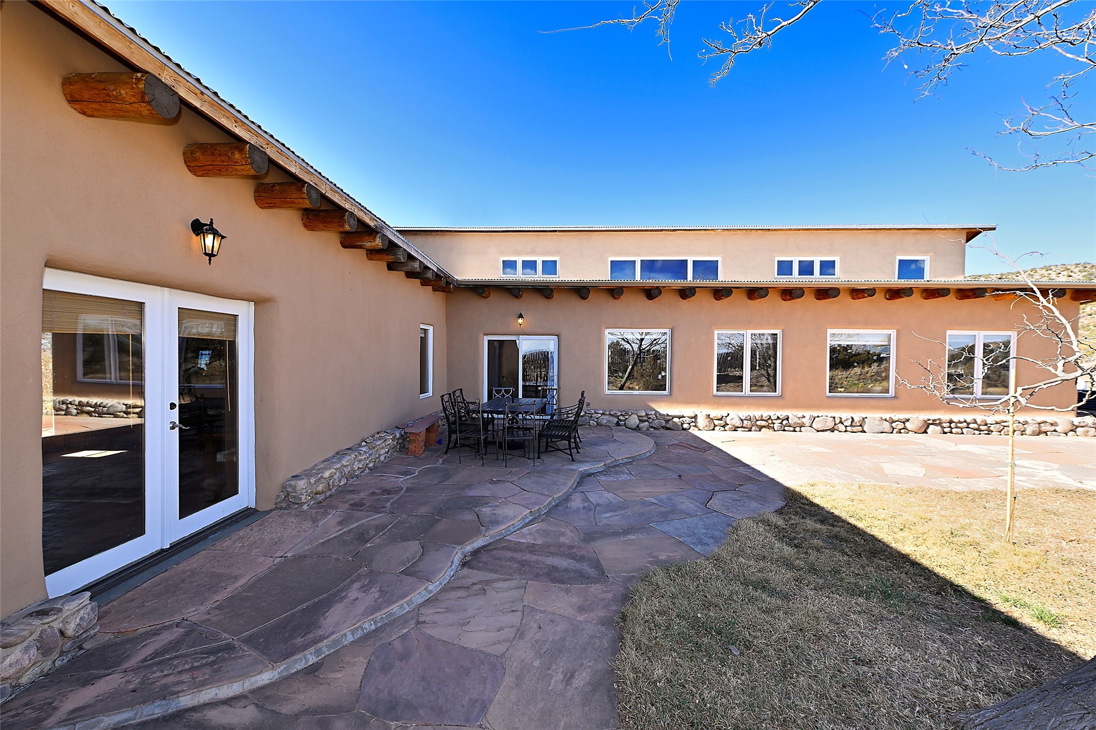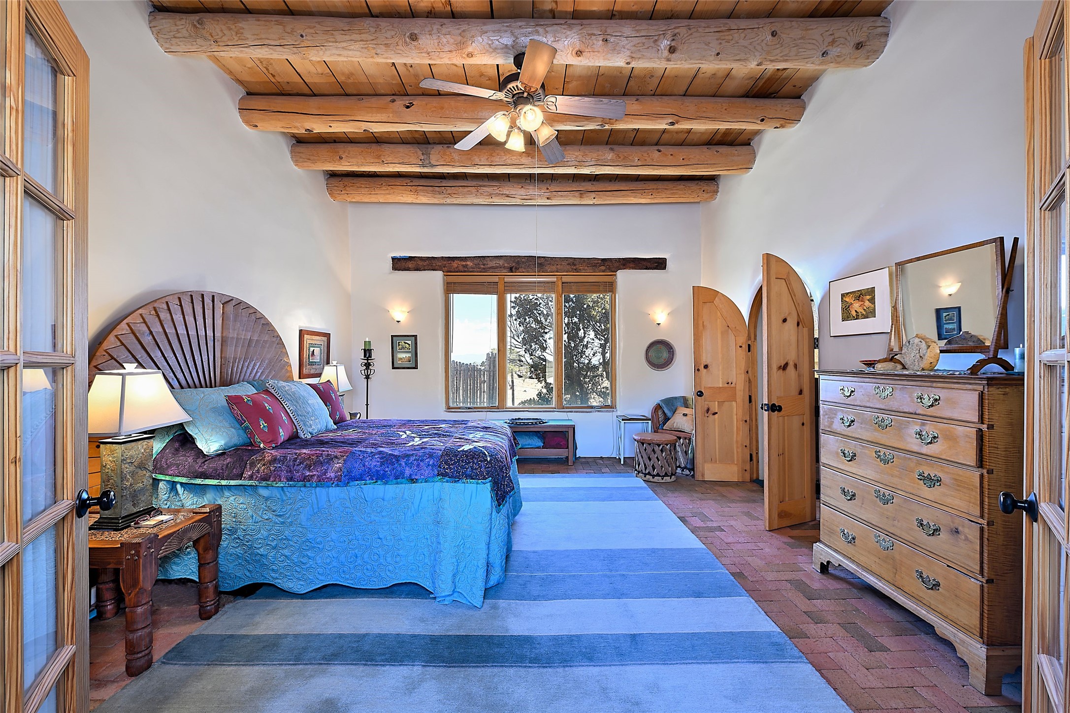 Welcome to this serene Northern New Mexico retreat, just minutes from the charming village of El Rito. Nestled on 3.96 acres, this stunning home captures the essence of Northern New Mexico-style architecture, blending exquisite craftsmanship with natural beauty.Step inside to find grand sunroom hallways that showcase the home's character, from beam and latilla ceilings to exposed adobe features in nichos and decorative accents. The cathedral ceilings, adobe-plastered walls, and warm brick and flagstone floors create a timeless, inviting atmosphere. Natural light pours in through windows and skylights, enhancing the spacious layout.Designed for comfort and privacy, the 3-bedroom, 2-bath home offers excellent separation between the primary suite and the guest wing. The primary suite features a full bath with a jetted tub and a dedicated laundry area, while the guest wing includes its own bath with a beautiful stone shower, feels like you're bathing in a castle or resort. There is also a separate laundry space. The family room, centered around two striking stone fireplaces, flows into the living room, creating a perfect space for relaxation. A wood stove in the living room and in the dining room/sunroom hallway, along with radiant in-floor heating, ensures cozy warmth throughout the home.Outdoors, enjoy breathtaking views, tranquil surroundings, and a historic acequia that runs through the property. Carson National Forest surrounding the property, offering endless outdoor adventures, while Abiqui Lake is just 30 minutes away.This well-maintained home has seen recent updates, including new exterior stucco (2024), gutters, refreshed woodwork, and new roofs. The property includes community water, water rights, and a private well with a 2,500-gallon storage tank.El Rito, originally named El Rito Colorado for the red creek that flows through the village, is rich in history and home to a growing community of artists. Whether you're seeking serenity, space, or a stunning retreat, this one-of-a-kind property is a must-see!