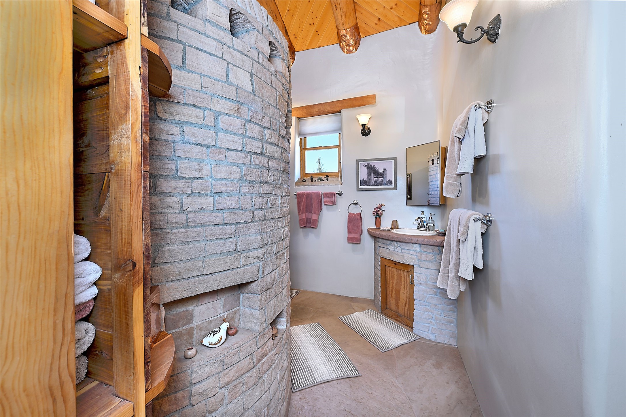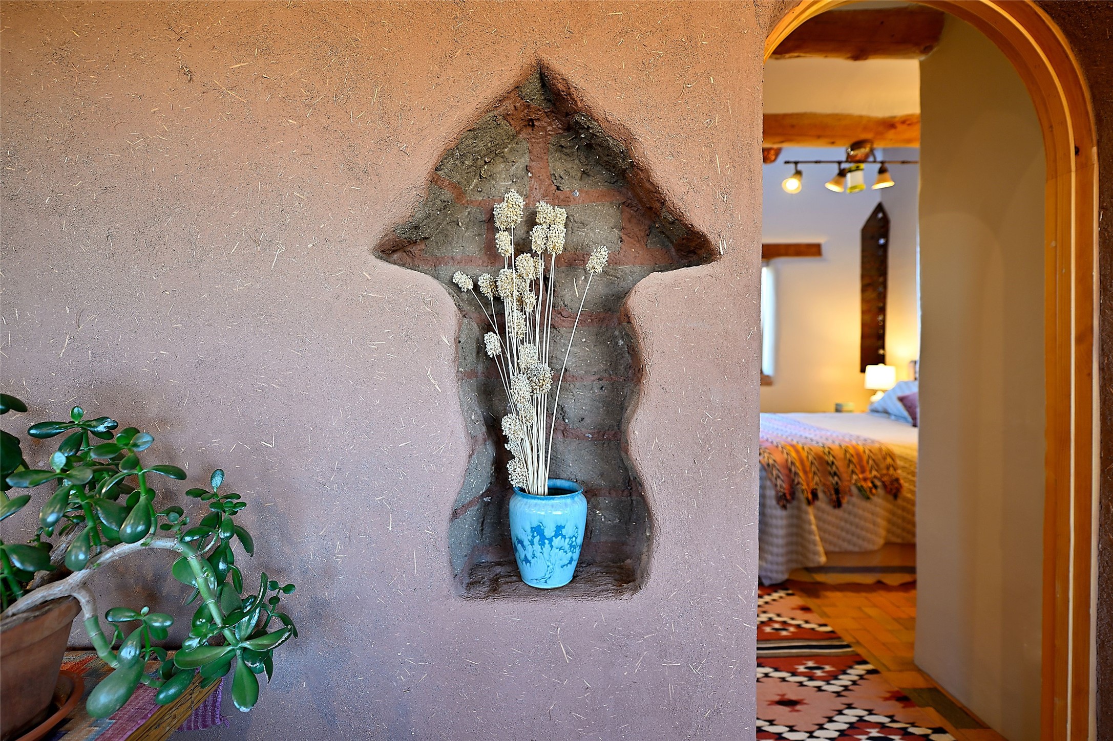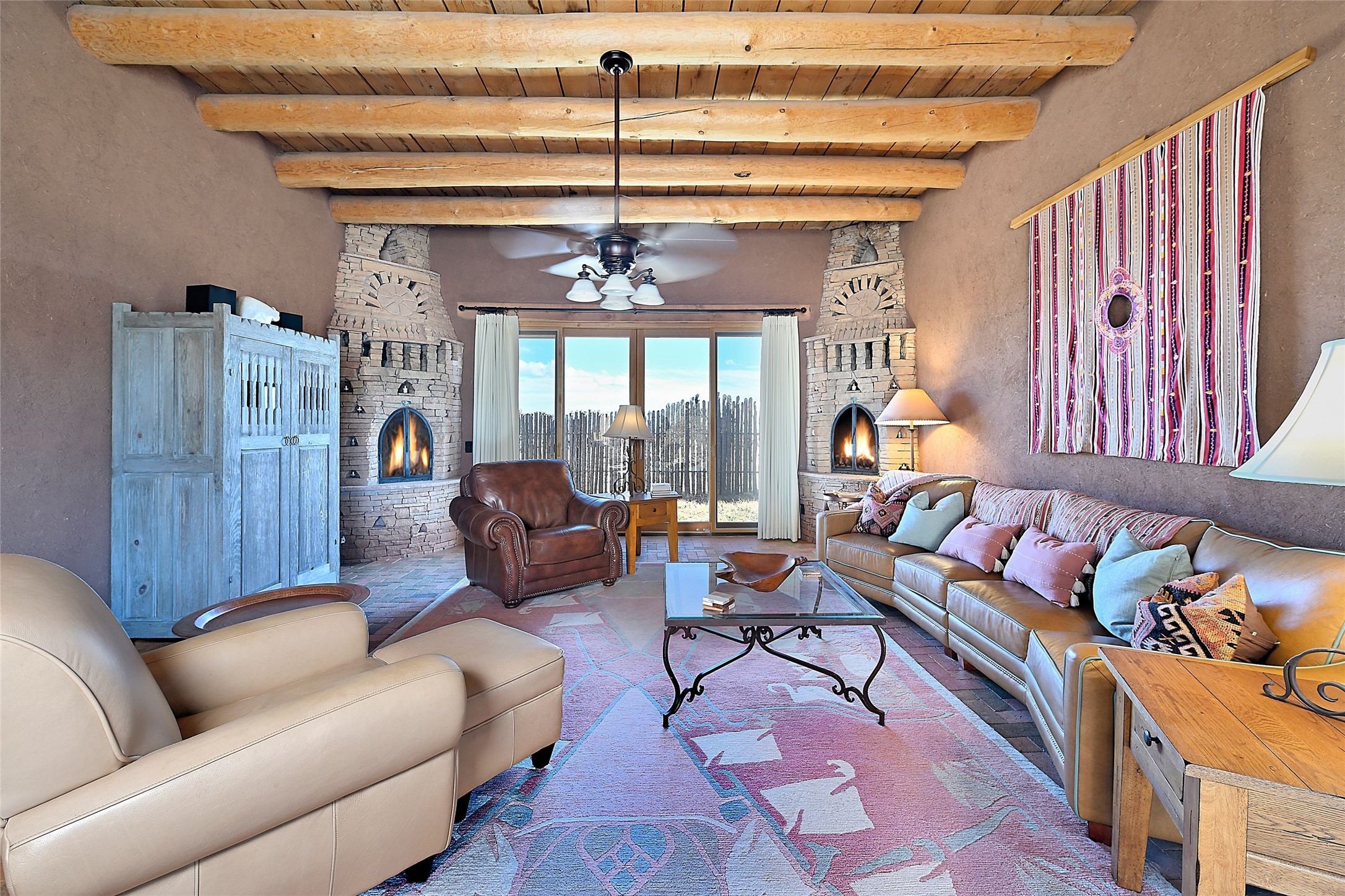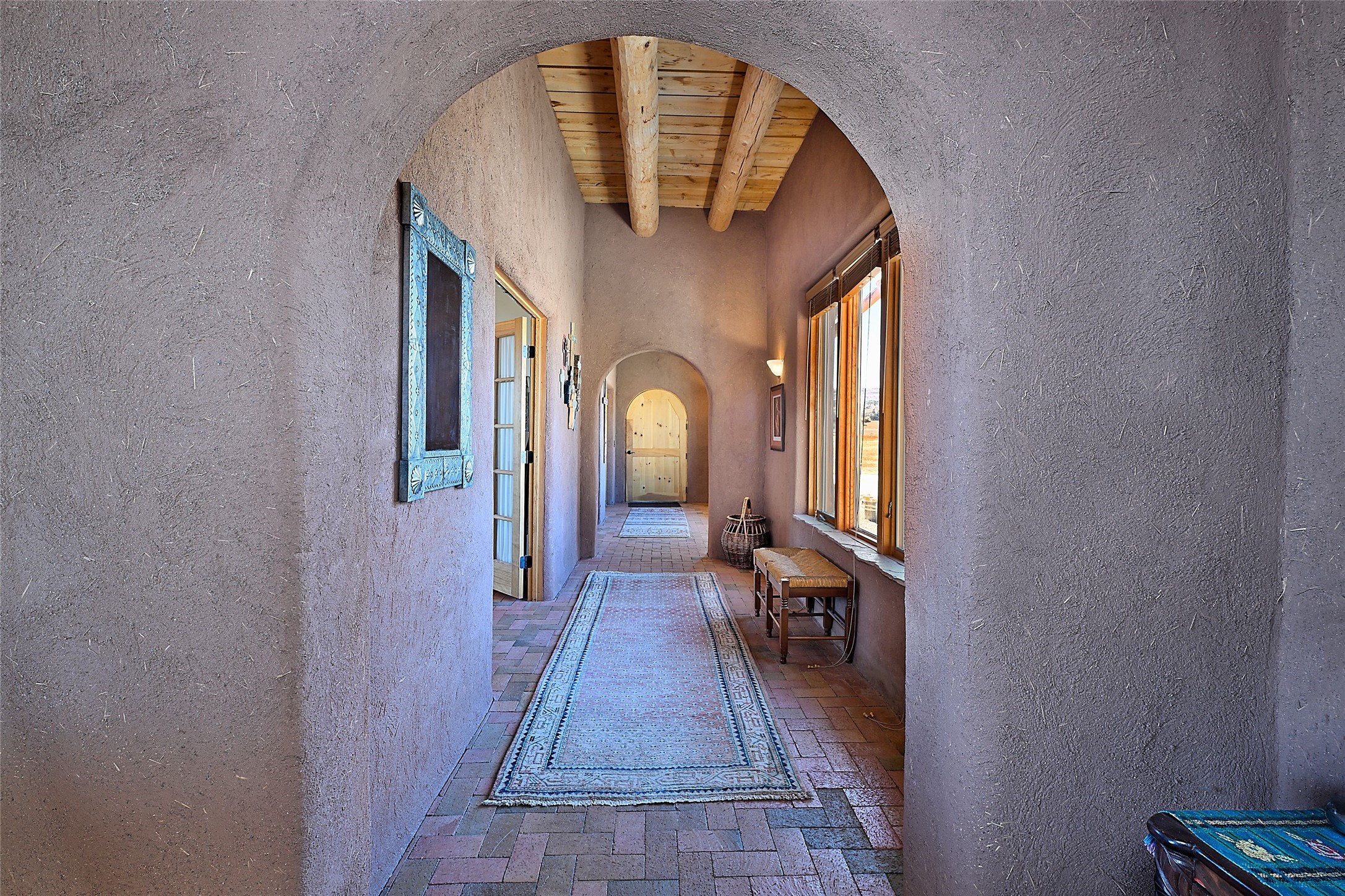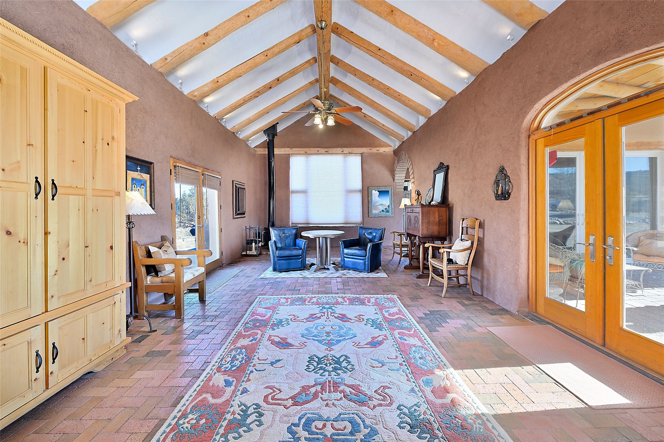 Welcome to this serene Northern New Mexico retreat, just minutes from the charming village of El Rito. Nestled on 3.96 acres, this stunning home captures the essence of Northern New Mexico-style architecture, blending exquisite craftsmanship with natural beauty.Step inside to find grand sunroom hallways that showcase the home's character, from beam and latilla ceilings to exposed adobe features in nichos and decorative accents. The cathedral ceilings, adobe-plastered walls, and warm brick and flagstone floors create a timeless, inviting atmosphere. Natural light pours in through windows and skylights, enhancing the spacious layout.Designed for comfort and privacy, the 3-bedroom, 2-bath home offers excellent separation between the primary suite and the guest wing. The primary suite features a full bath with a jetted tub and a dedicated laundry area, while the guest wing includes its own bath with a beautiful stone shower, feels like you're bathing in a castle or resort. There is also a separate laundry space. The family room, centered around two striking stone fireplaces, flows into the living room, creating a perfect space for relaxation. A wood stove in the living room and in the dining room/sunroom hallway, along with radiant in-floor heating, ensures cozy warmth throughout the home.Outdoors, enjoy breathtaking views, tranquil surroundings, and a historic acequia that runs through the property. Carson National Forest surrounding the property, offering endless outdoor adventures, while Abiqui Lake is just 30 minutes away.This well-maintained home has seen recent updates, including new exterior stucco (2024), gutters, refreshed woodwork, and new roofs. The property includes community water, water rights, and a private well with a 2,500-gallon storage tank.El Rito, originally named El Rito Colorado for the red creek that flows through the village, is rich in history and home to a growing community of artists. Whether you're seeking serenity, space, or a stunning retreat, this one-of-a-kind property is a must-see!