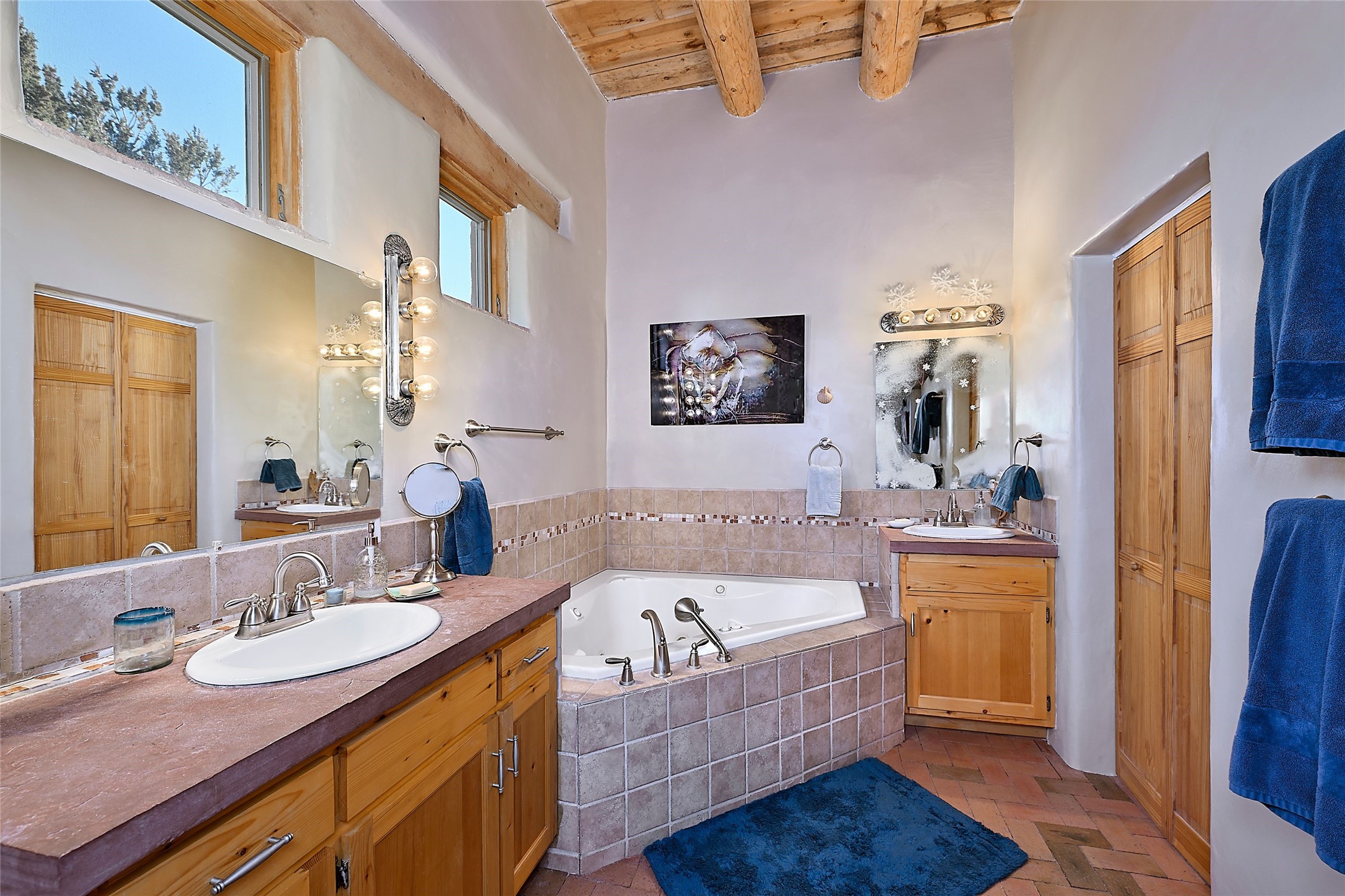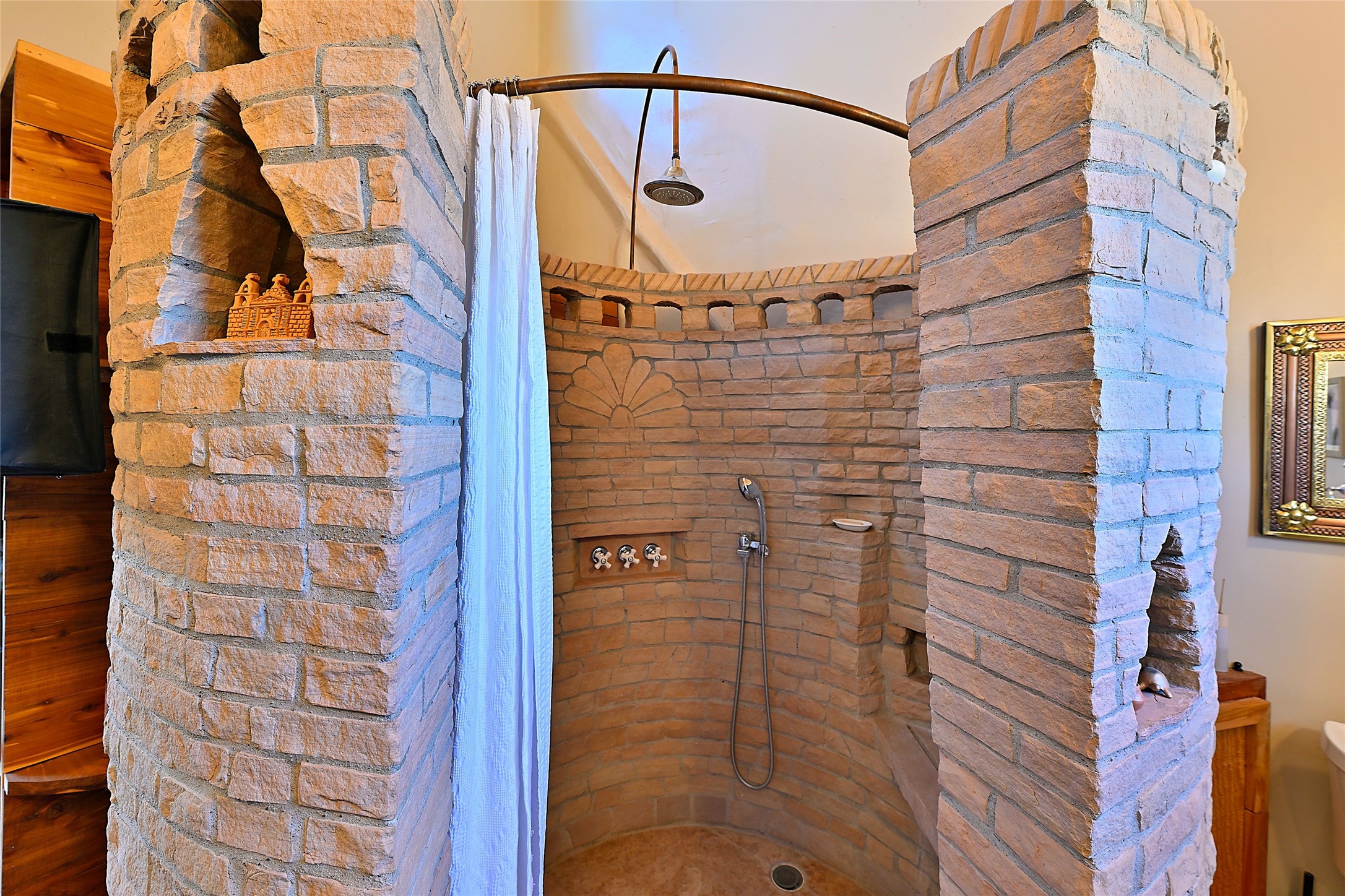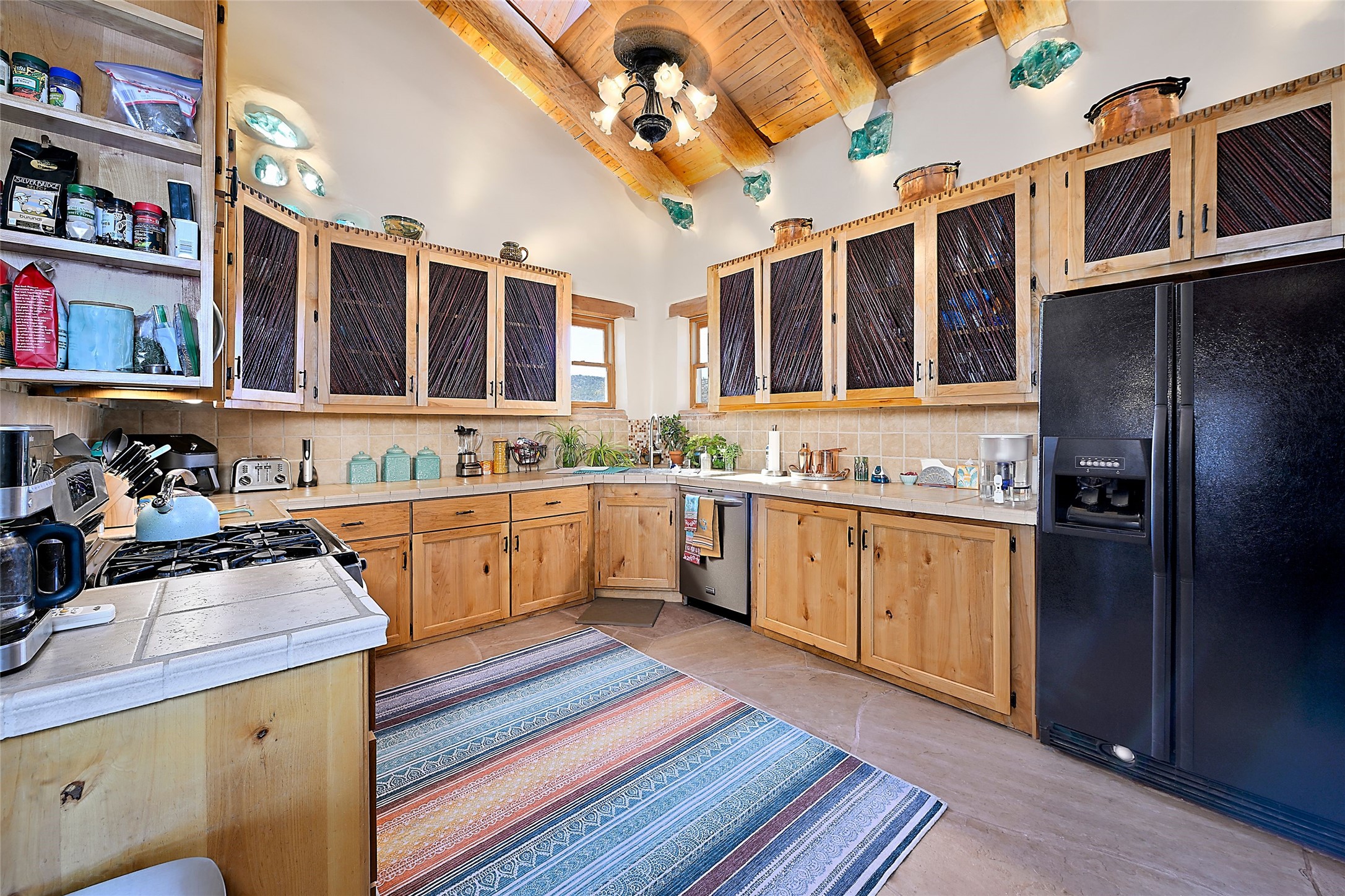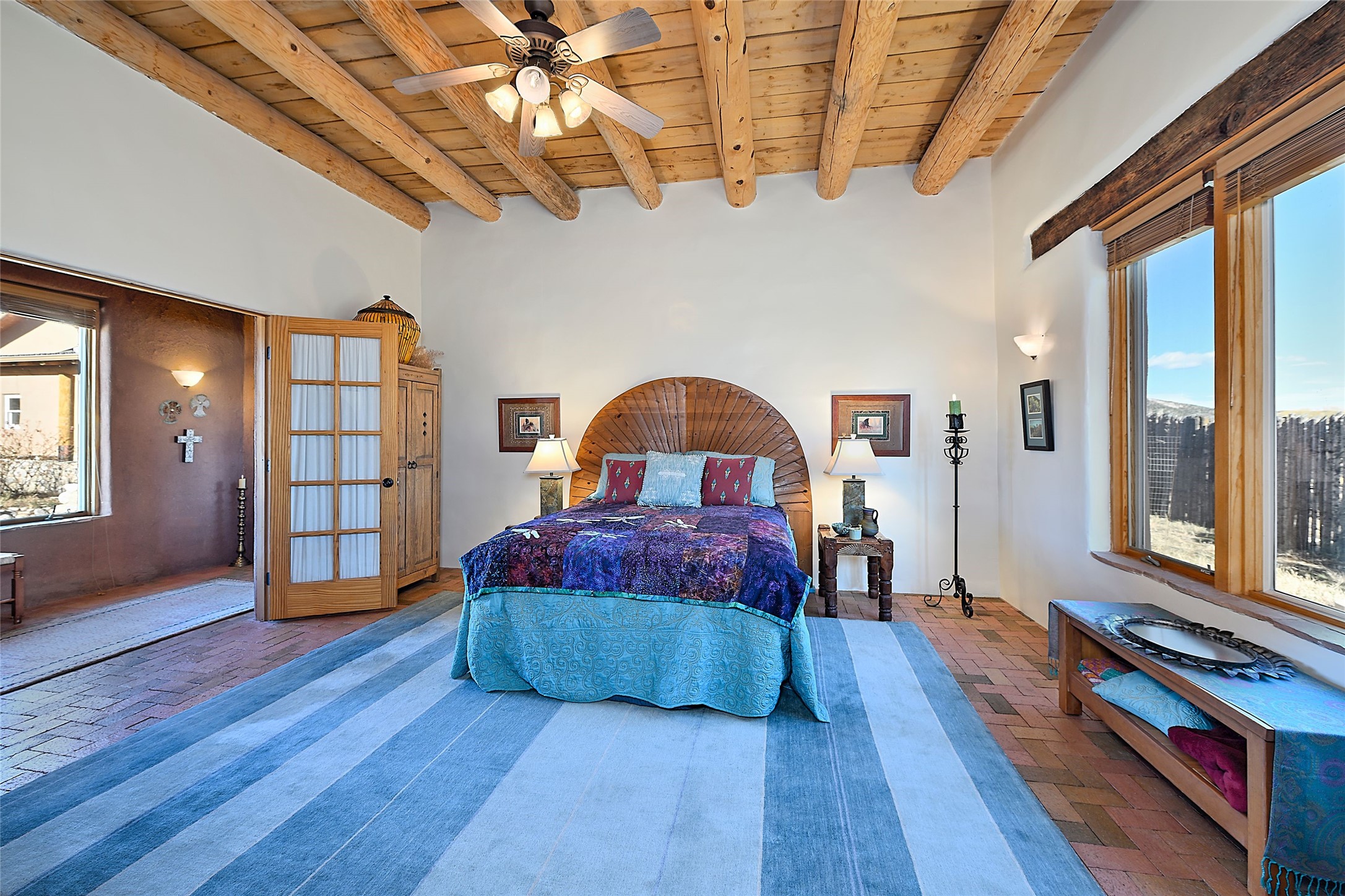 Welcome to this serene Northern New Mexico retreat, just minutes from the charming village of El Rito. Nestled on 3.96 acres, this stunning home captures the essence of Northern New Mexico-style architecture, blending exquisite craftsmanship with natural beauty.Step inside to find grand sunroom hallways that showcase the home's character, from beam and latilla ceilings to exposed adobe features in nichos and decorative accents. The cathedral ceilings, adobe-plastered walls, and warm brick and flagstone floors create a timeless, inviting atmosphere. Natural light pours in through windows and skylights, enhancing the spacious layout.Designed for comfort and privacy, the 3-bedroom, 2-bath home offers excellent separation between the primary suite and the guest wing. The primary suite features a full bath with a jetted tub and a dedicated laundry area, while the guest wing includes its own bath with a beautiful stone shower, feels like you're bathing in a castle or resort. There is also a separate laundry space. The family room, centered around two striking stone fireplaces, flows into the living room, creating a perfect space for relaxation. A wood stove in the living room and in the dining room/sunroom hallway, along with radiant in-floor heating, ensures cozy warmth throughout the home.Outdoors, enjoy breathtaking views, tranquil surroundings, and a historic acequia that runs through the property. Carson National Forest surrounding the property, offering endless outdoor adventures, while Abiqui Lake is just 30 minutes away.This well-maintained home has seen recent updates, including new exterior stucco (2024), gutters, refreshed woodwork, and new roofs. The property includes community water, water rights, and a private well with a 2,500-gallon storage tank.El Rito, originally named El Rito Colorado for the red creek that flows through the village, is rich in history and home to a growing community of artists. Whether you're seeking serenity, space, or a stunning retreat, this one-of-a-kind property is a must-see!