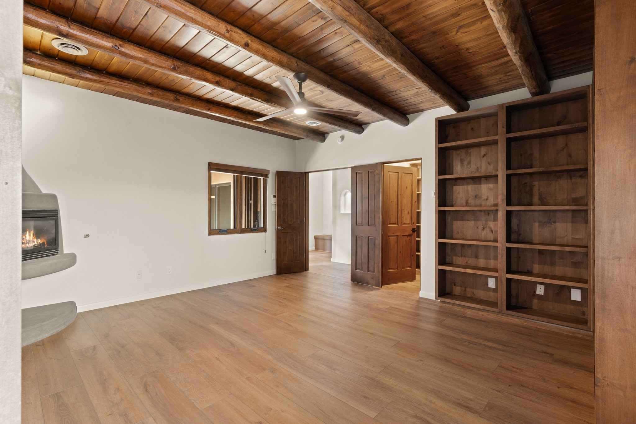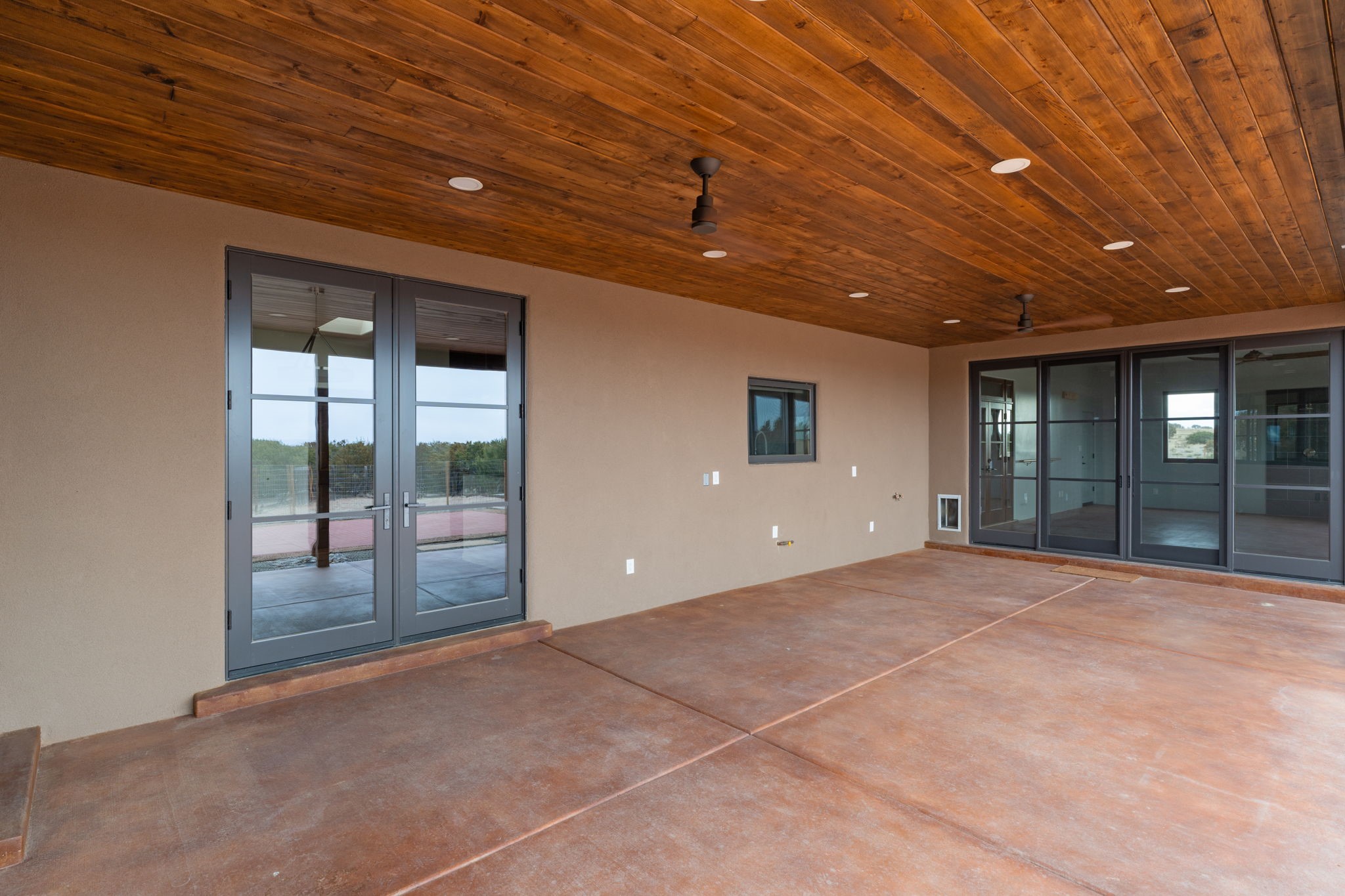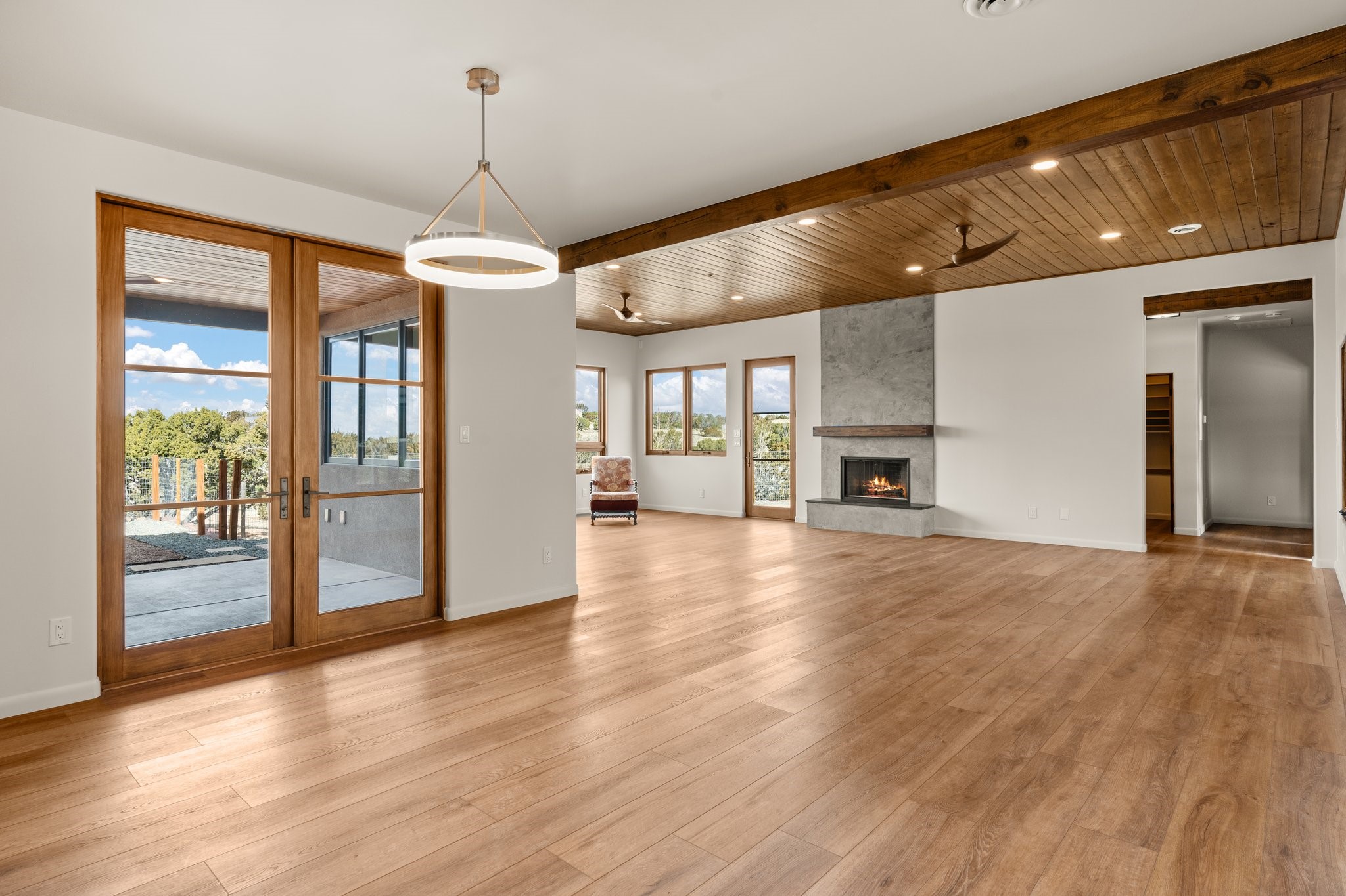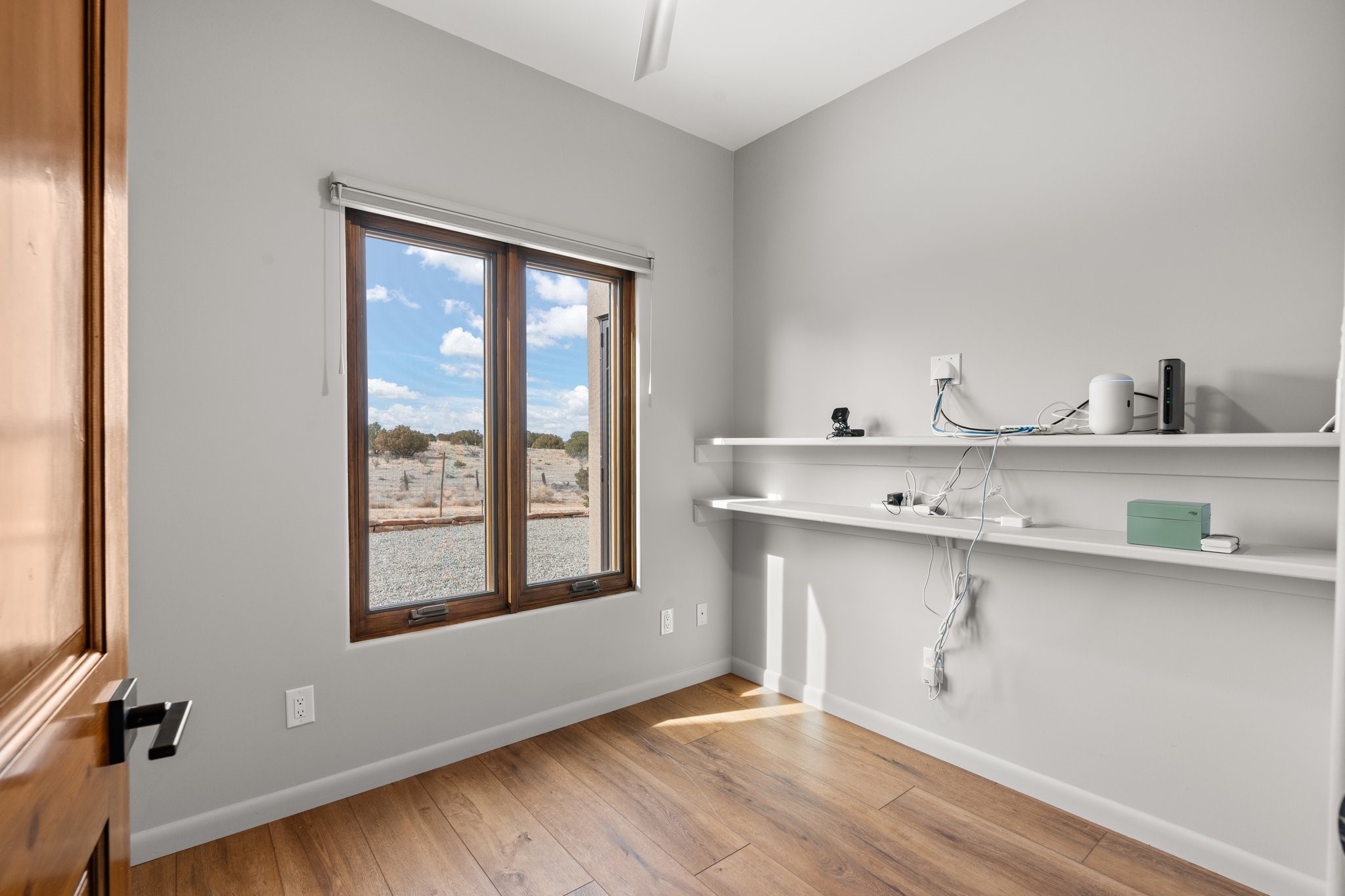 SPECTACULAR ELDORADO ESTATE! Spa living in this extraordinary property with end of the road privacy, mountain views sited on a greenbelt. An endless pool and hot tub have their own room with rain showerhead and room for exercise equipment. In-floor radiant heat with a new HVAC system for back up heating and air conditioning. Generous great room includes dining room and opens to kitchen with Dekton countertops, 2002 stainless appliances, large pantry and an island. Primary wing has library/office with viga ceilings and gas fireplace. Primary bedroom has a private portal and enormous walk-in closet. Primary bath has double sinks, soaking tub and separate shower. Separate guest wing has two bedrooms and a full bath. There is a den/media room off the spa area with a data room for the systems, CAT-6 wifi. Walled front courtyard with covered areas for seating. Fully fenced back yard with large covered portal. California closet systems throughout including kitchen pantry. Solar panels are owned and provide some back up power in the event of an outage.. Large 2.4 acre lot bordering open space with approved RV parking with two areas for hook ups. Proper laundry room with storage and new LG washer/dryer. Approximately 9,000 square feet of fencing. Two sheds, both with electricity. Whole house water filtration. New windows and doors throughout. Three-car finished garage. LIST OF UPGRAGES IN SUPPLEMENTS.