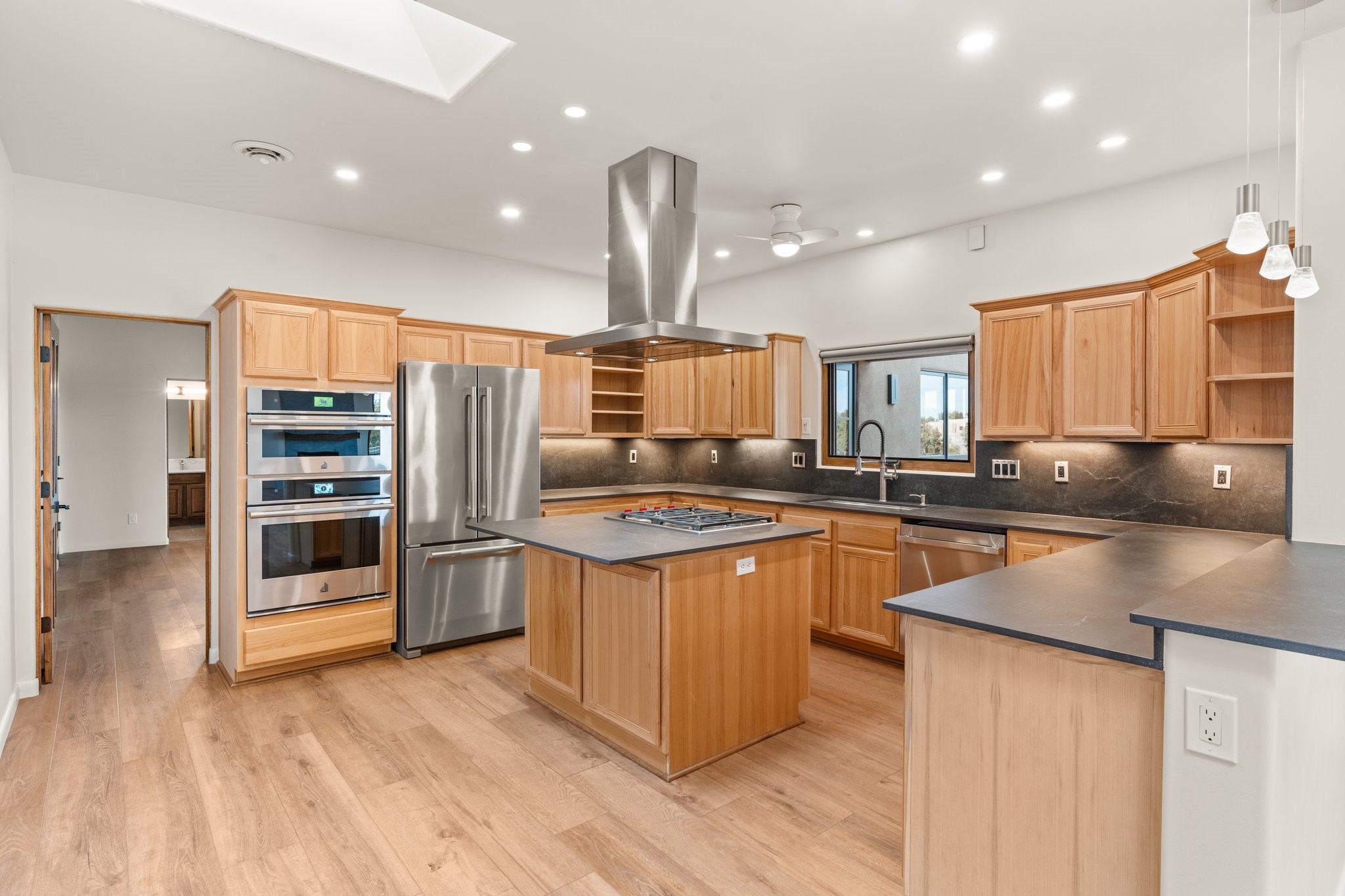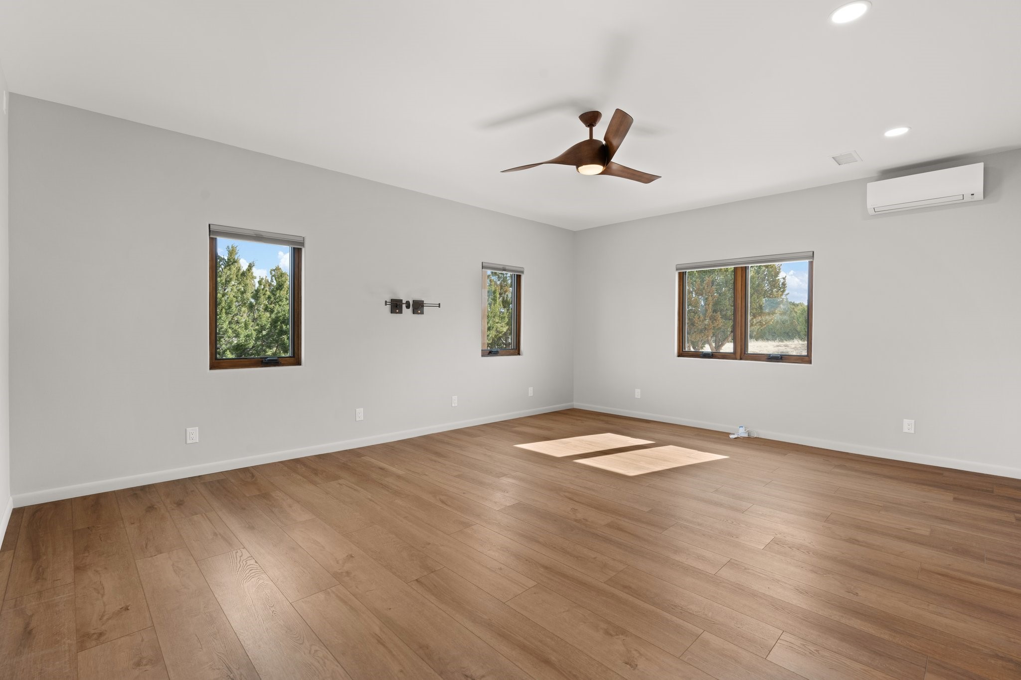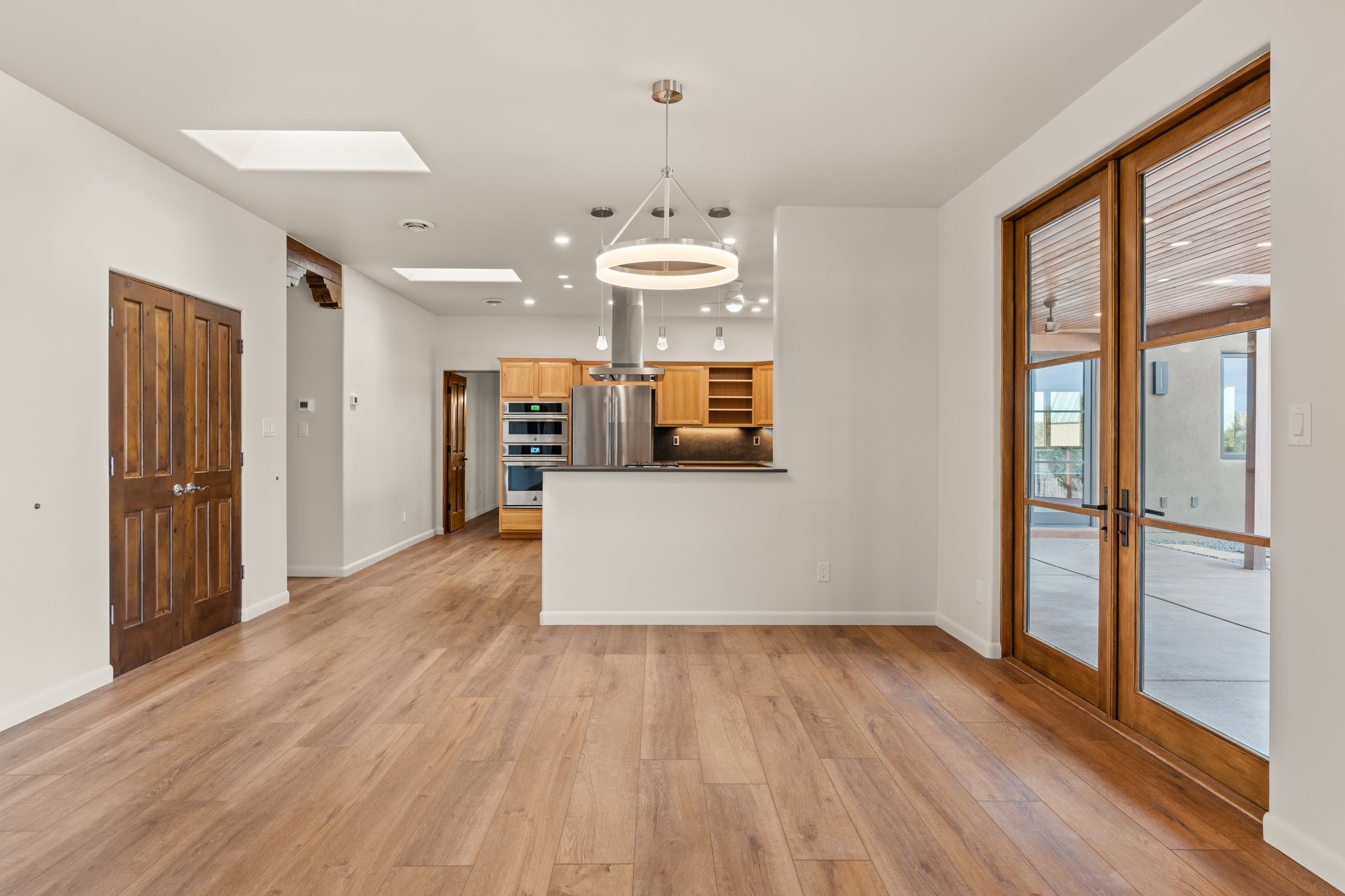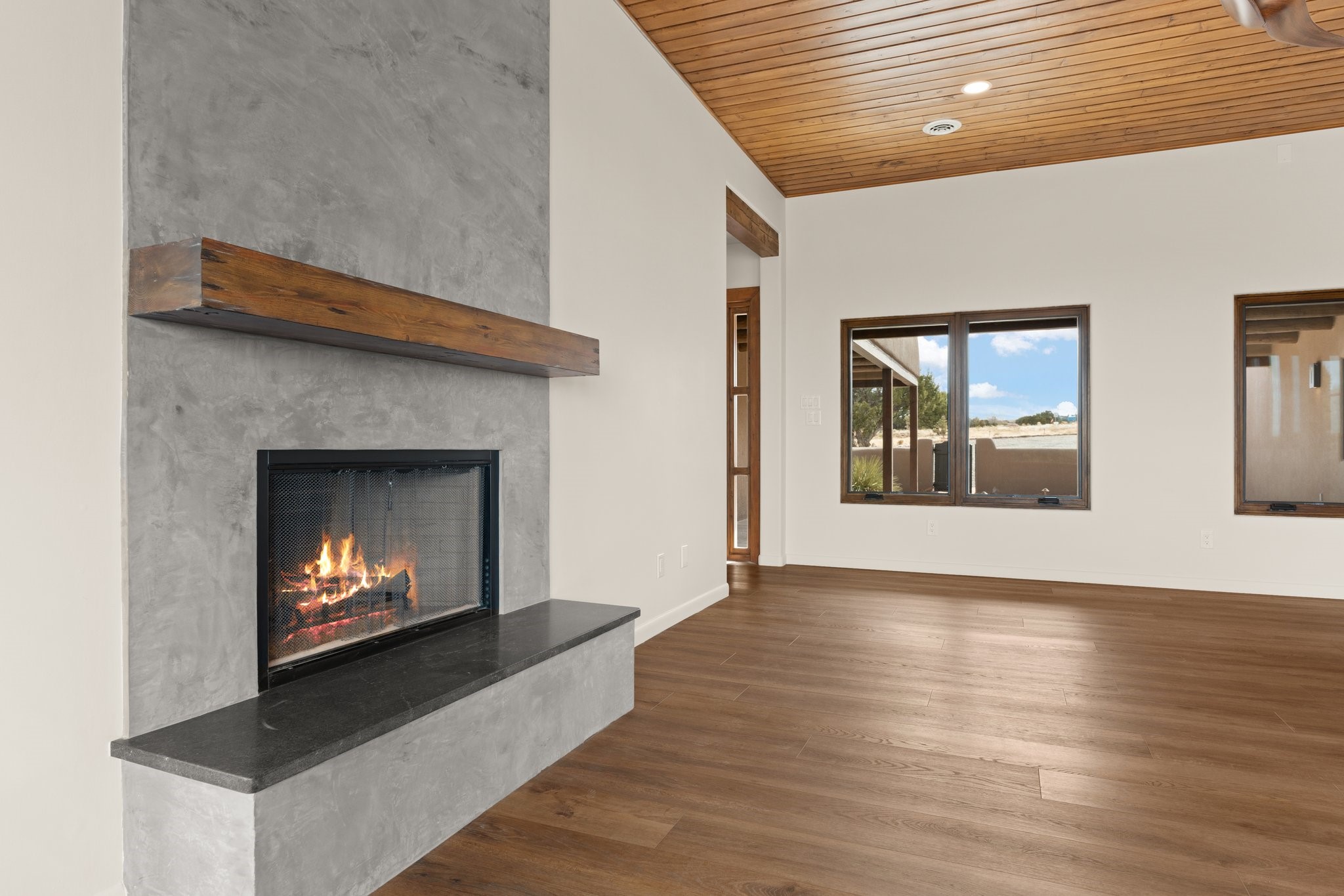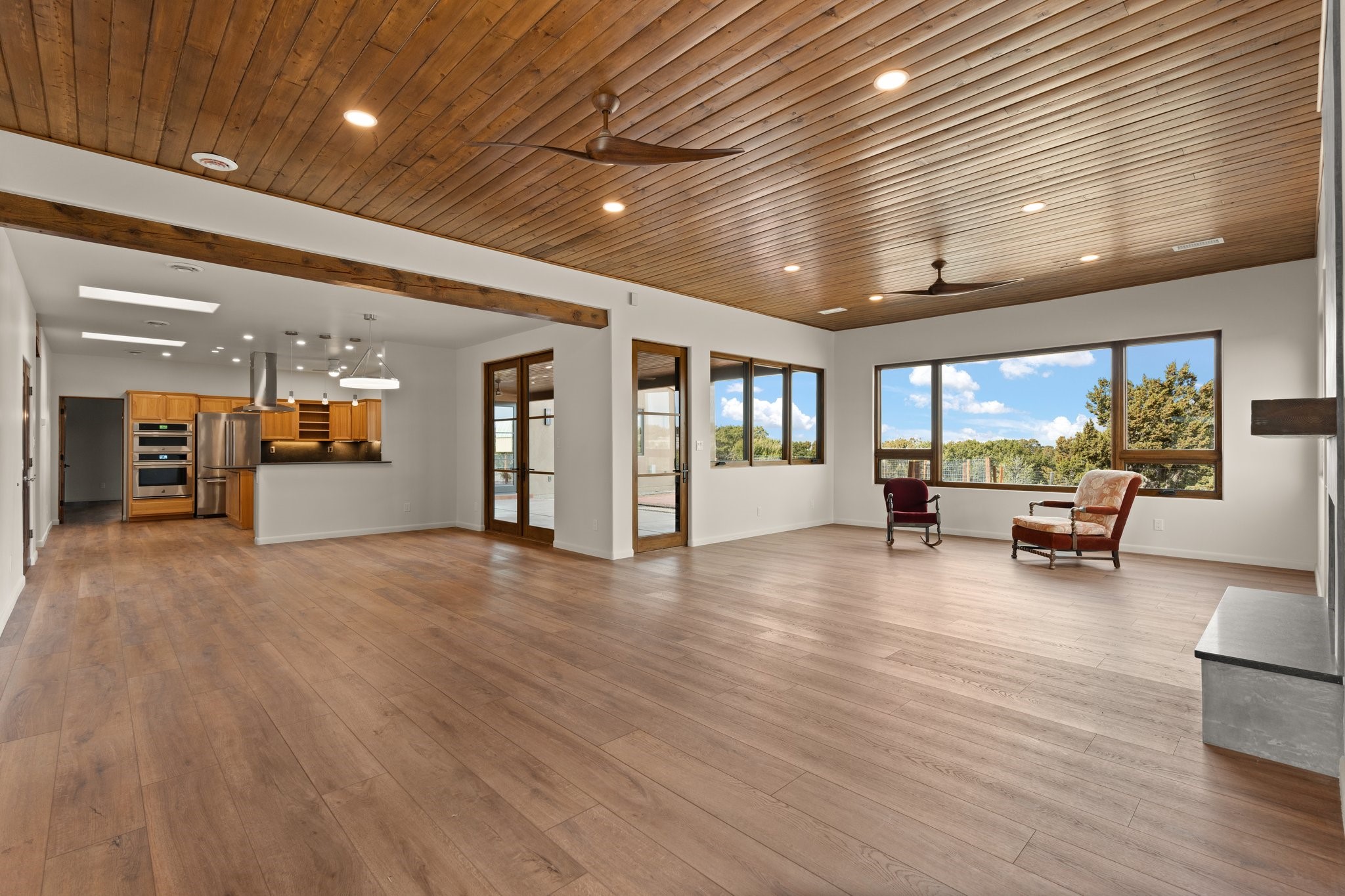 SPECTACULAR ELDORADO ESTATE! Spa living in this extraordinary property with end of the road privacy, mountain views sited on a greenbelt. An endless pool and hot tub have their own room with rain showerhead and room for exercise equipment. In-floor radiant heat with a new HVAC system for back up heating and air conditioning. Generous great room includes dining room and opens to kitchen with Dekton countertops, 2002 stainless appliances, large pantry and an island. Primary wing has library/office with viga ceilings and gas fireplace. Primary bedroom has a private portal and enormous walk-in closet. Primary bath has double sinks, soaking tub and separate shower. Separate guest wing has two bedrooms and a full bath. There is a den/media room off the spa area with a data room for the systems, CAT-6 wifi. Walled front courtyard with covered areas for seating. Fully fenced back yard with large covered portal. California closet systems throughout including kitchen pantry. Solar panels are owned and provide some back up power in the event of an outage.. Large 2.4 acre lot bordering open space with approved RV parking with two areas for hook ups. Proper laundry room with storage and new LG washer/dryer. Approximately 9,000 square feet of fencing. Two sheds, both with electricity. Whole house water filtration. New windows and doors throughout. Three-car finished garage. LIST OF UPGRAGES IN SUPPLEMENTS.