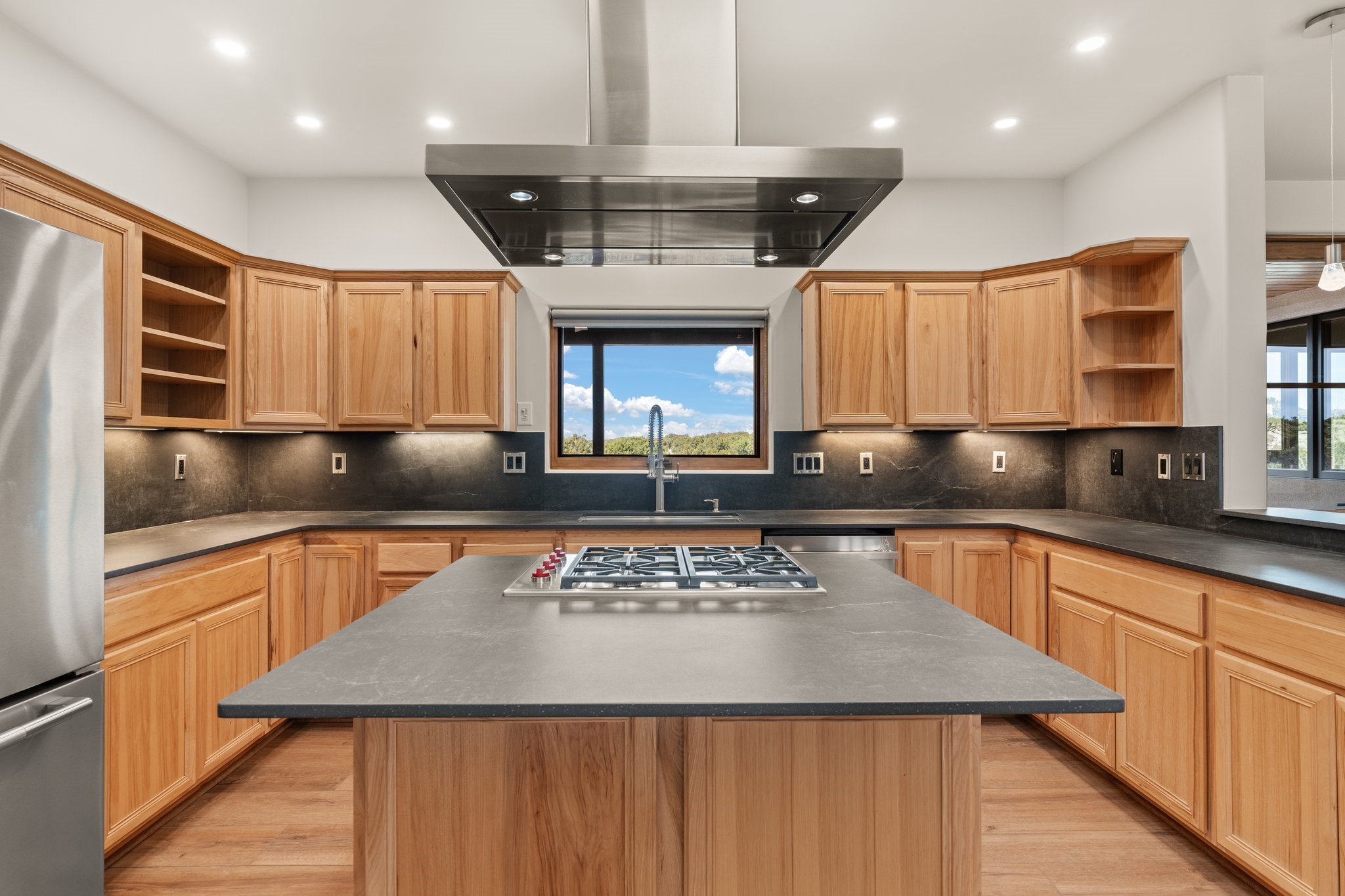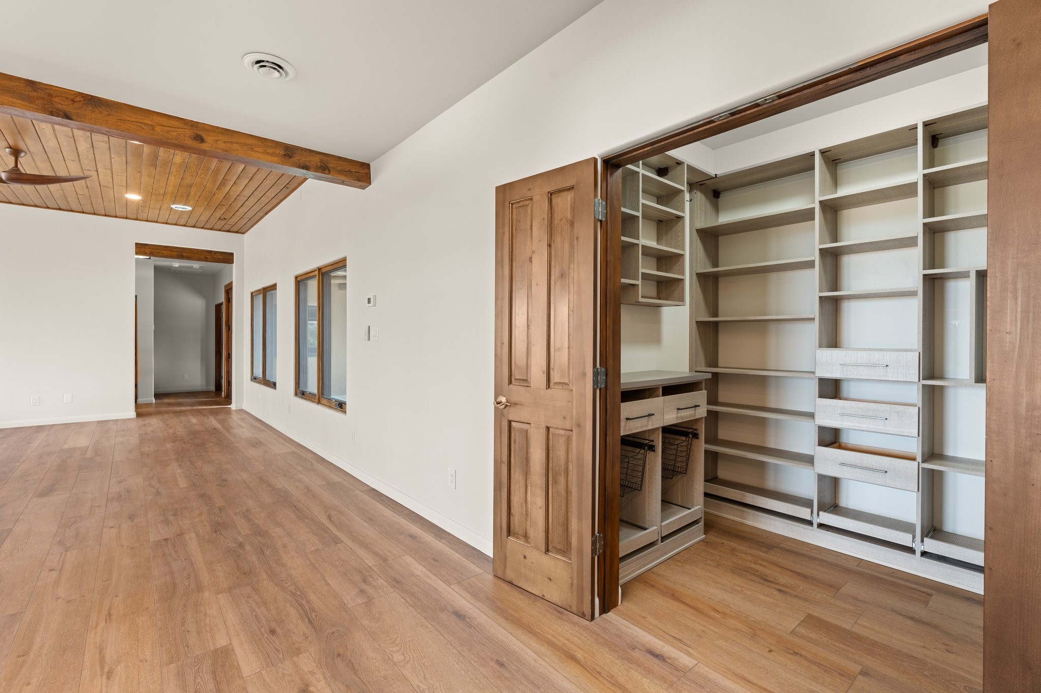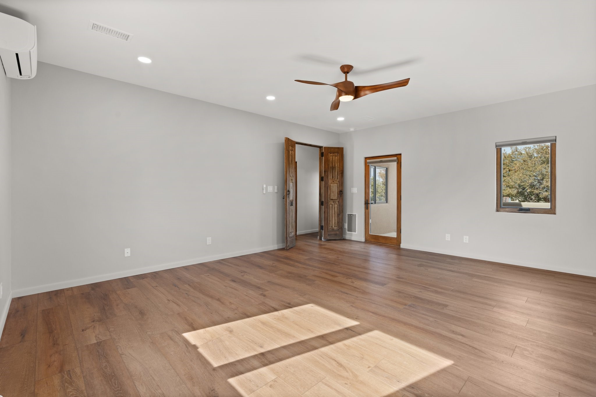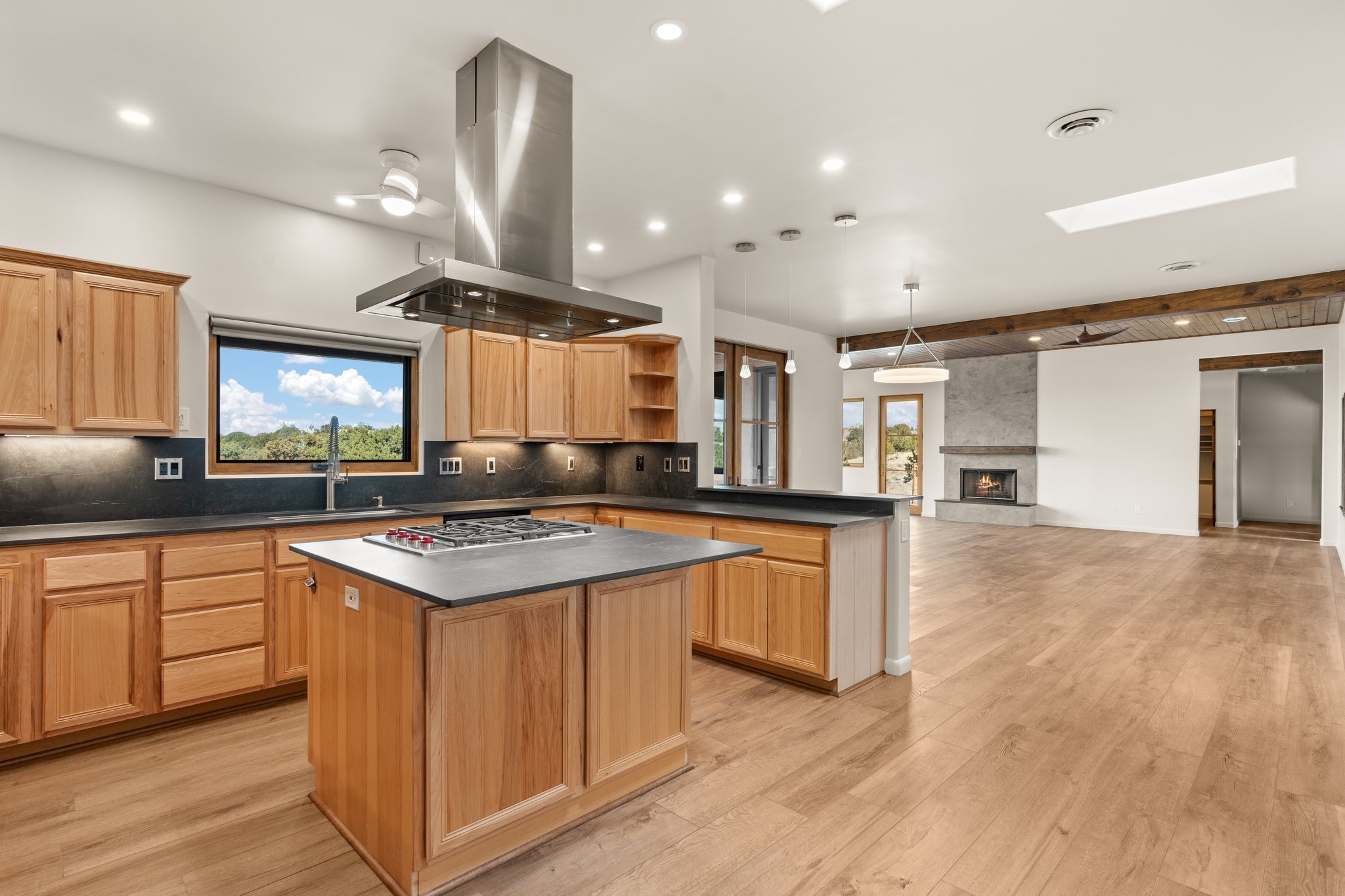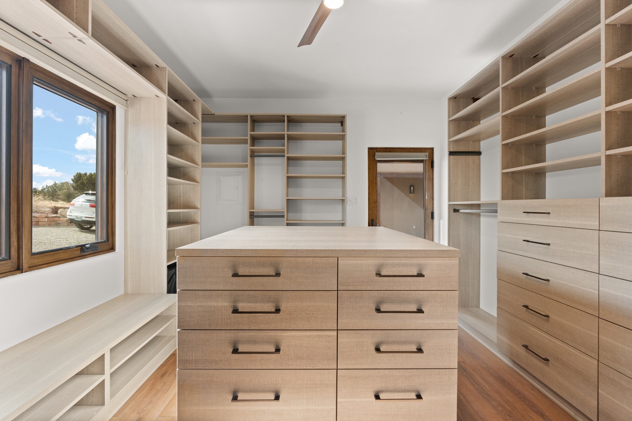 SPECTACULAR ELDORADO ESTATE! Spa living in this extraordinary property with end of the road privacy, mountain views sited on a greenbelt. An endless pool and hot tub have their own room with rain showerhead and room for exercise equipment. In-floor radiant heat with a new HVAC system for back up heating and air conditioning. Generous great room includes dining room and opens to kitchen with Dekton countertops, 2002 stainless appliances, large pantry and an island. Primary wing has library/office with viga ceilings and gas fireplace. Primary bedroom has a private portal and enormous walk-in closet. Primary bath has double sinks, soaking tub and separate shower. Separate guest wing has two bedrooms and a full bath. There is a den/media room off the spa area with a data room for the systems, CAT-6 wifi. Walled front courtyard with covered areas for seating. Fully fenced back yard with large covered portal. California closet systems throughout including kitchen pantry. Solar panels are owned and provide some back up power in the event of an outage.. Large 2.4 acre lot bordering open space with approved RV parking with two areas for hook ups. Proper laundry room with storage and new LG washer/dryer. Approximately 9,000 square feet of fencing. Two sheds, both with electricity. Whole house water filtration. New windows and doors throughout. Three-car finished garage. LIST OF UPGRAGES IN SUPPLEMENTS.