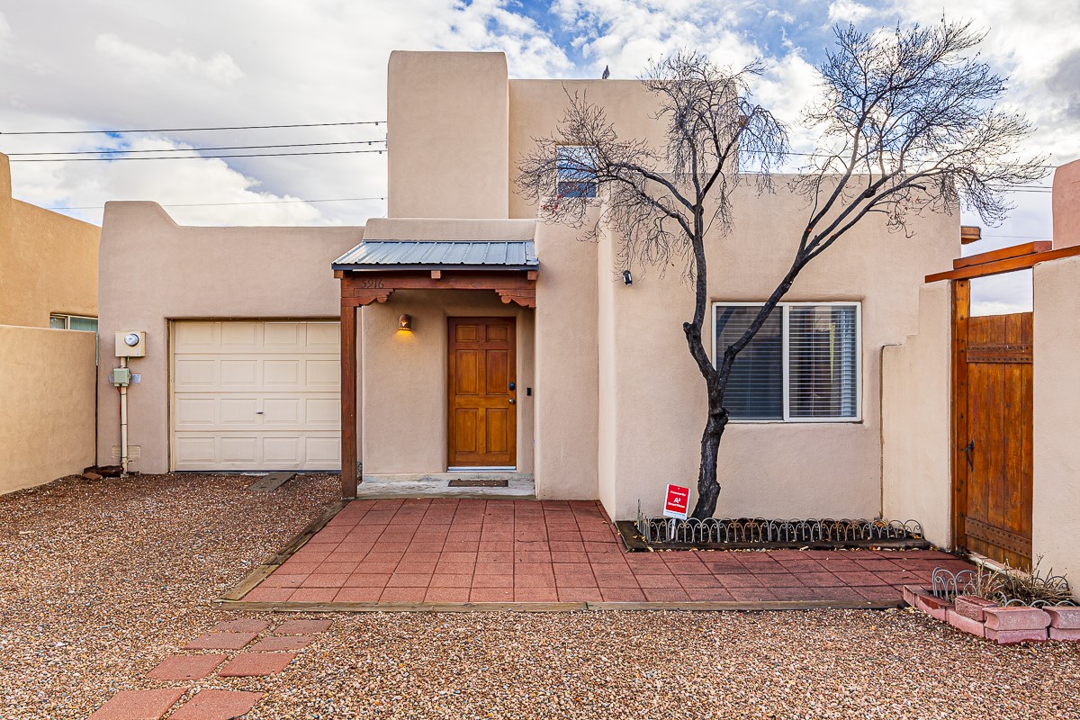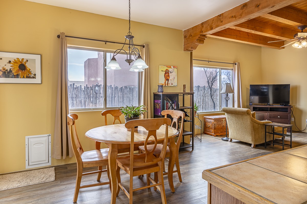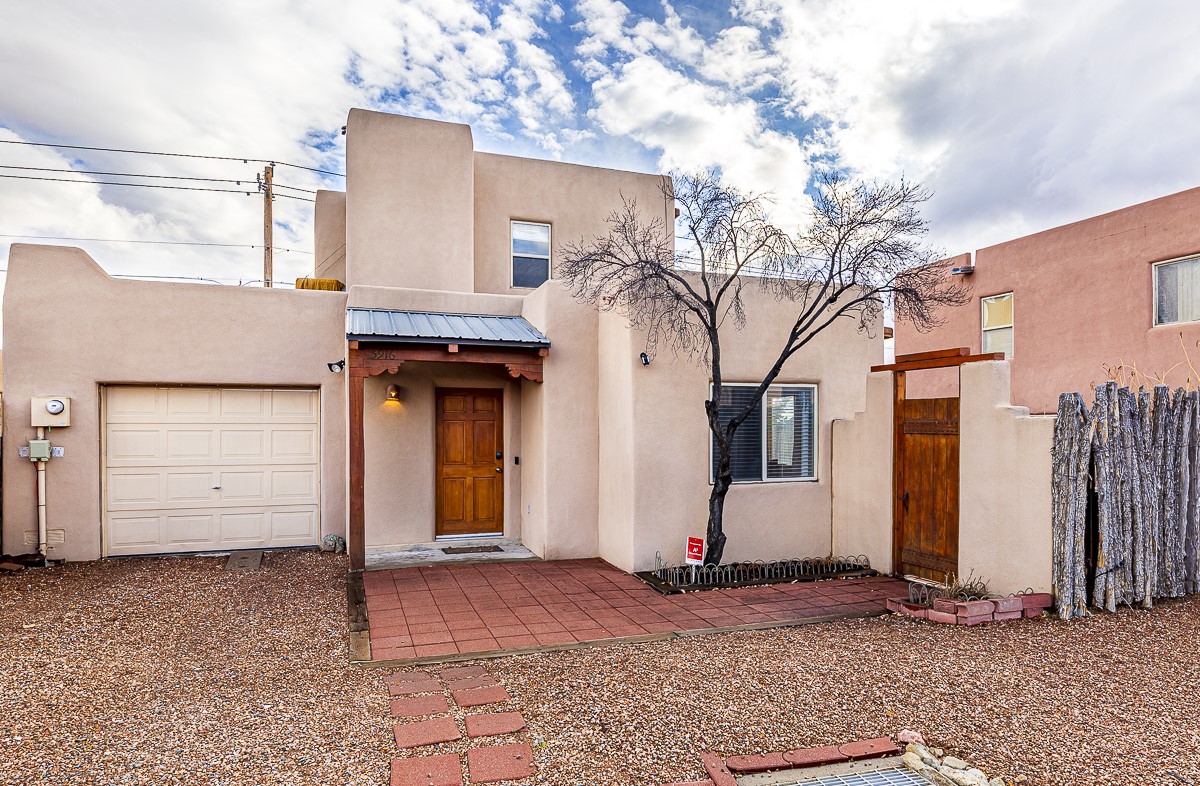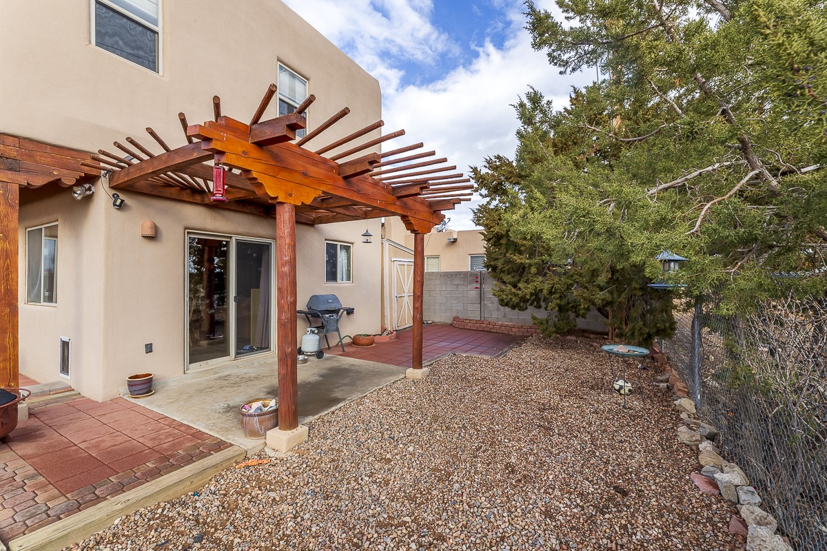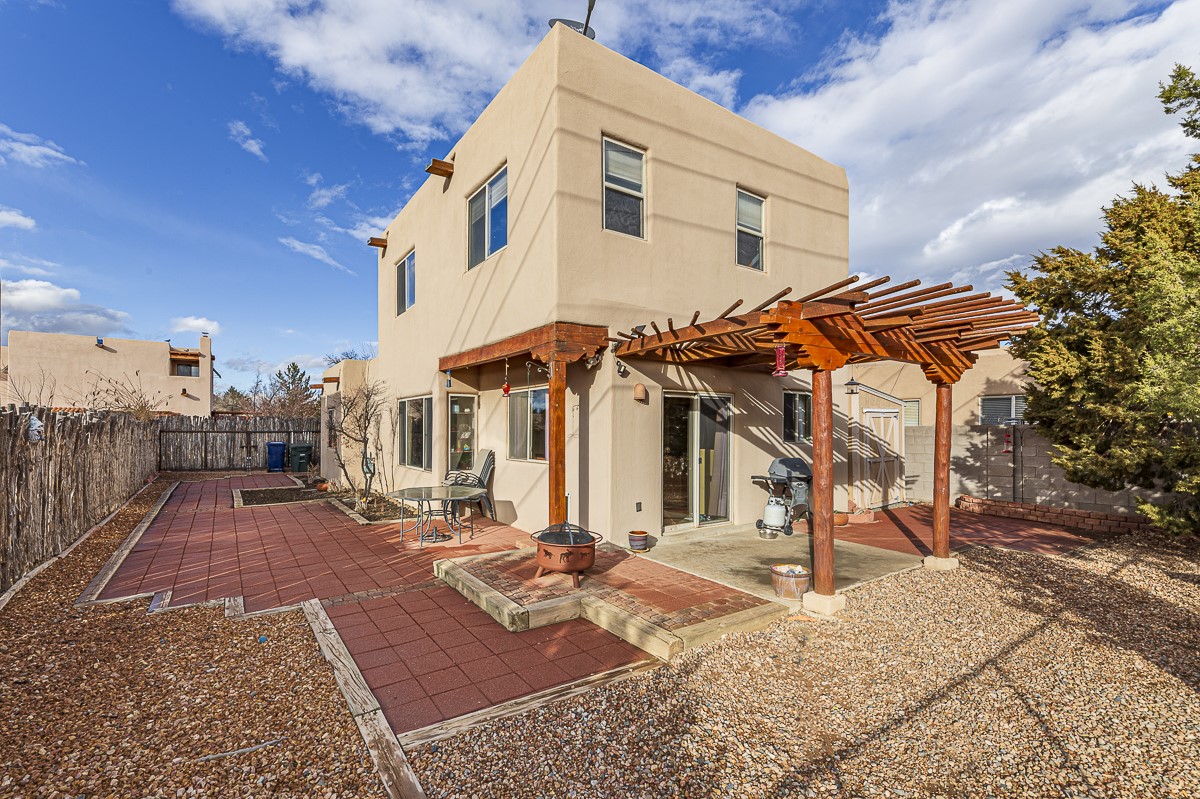 A bright single family two story home with a fully fenced back yard. The welcoming main level features one full bath, a guest room, a window filled living room, kitchen and dining area. The open kitchen invites casual meals and conversation. The kitchen does also include a walk-in pantry! The primary bedroom and a second guest room share the second full bath upstairs. There is a mudroom / laundry room off the kitchen with access to the one car garage. The outdoor shed and the closet under the stairs offer GREAT storage. Outside, a wooden pergola covers the patio off of the dining area. The home is located close to HWY 599 and the Santa Fe Airport. RV or Camper parking inside the fence if needed/wanted.