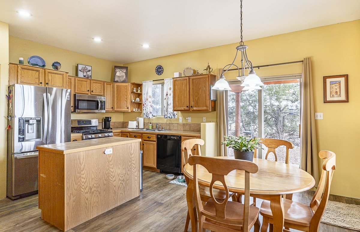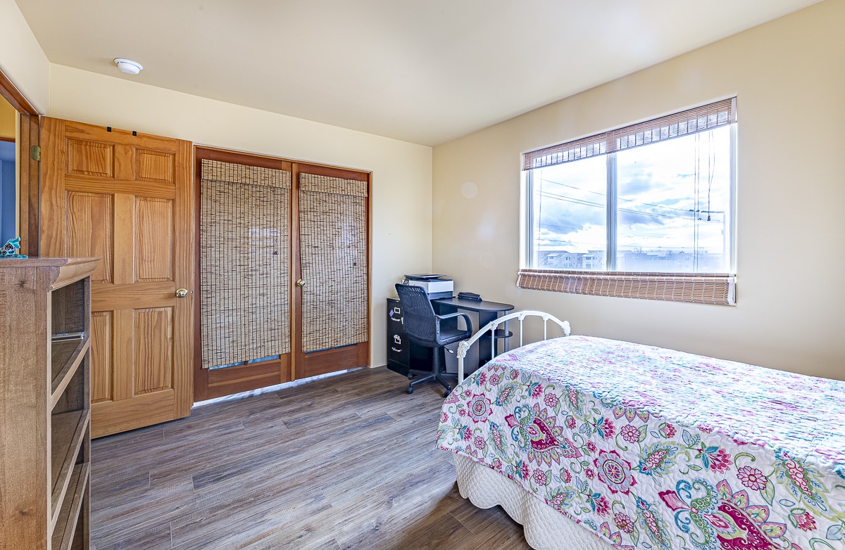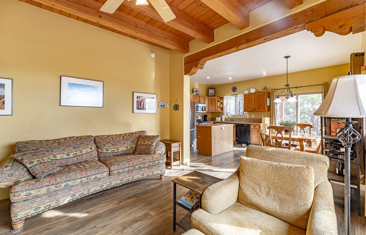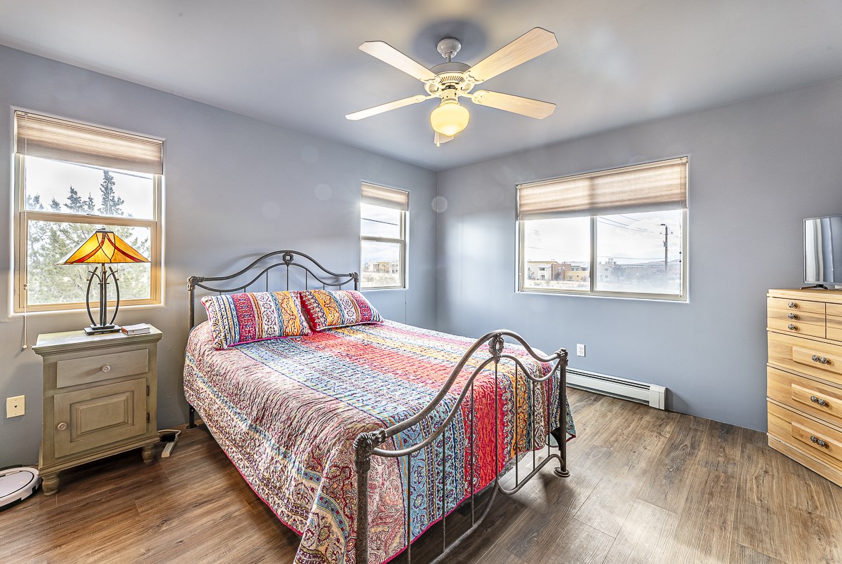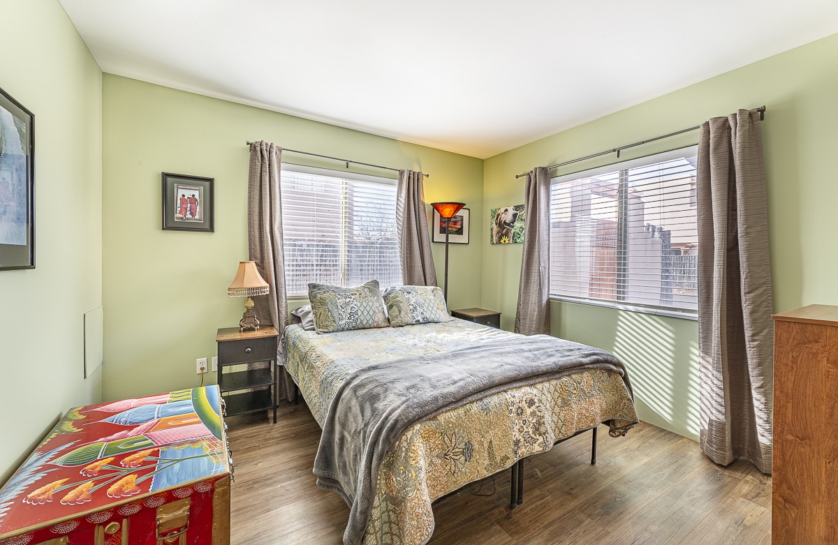 A bright single family two story home with a fully fenced back yard. The welcoming main level features one full bath, a guest room, a window filled living room, kitchen and dining area. The open kitchen invites casual meals and conversation. The kitchen does also include a walk-in pantry! The primary bedroom and a second guest room share the second full bath upstairs. There is a mudroom / laundry room off the kitchen with access to the one car garage. The outdoor shed and the closet under the stairs offer GREAT storage. Outside, a wooden pergola covers the patio off of the dining area. The home is located close to HWY 599 and the Santa Fe Airport. RV or Camper parking inside the fence if needed/wanted.