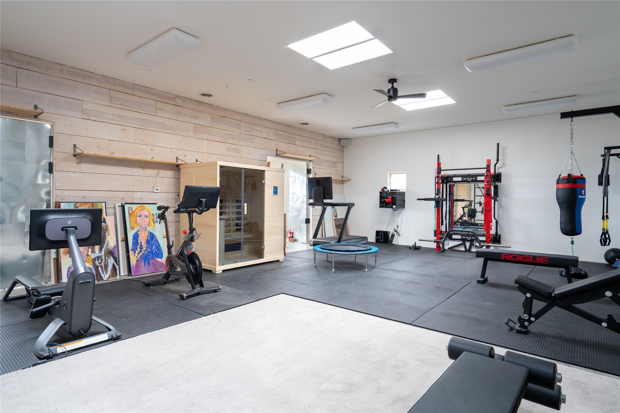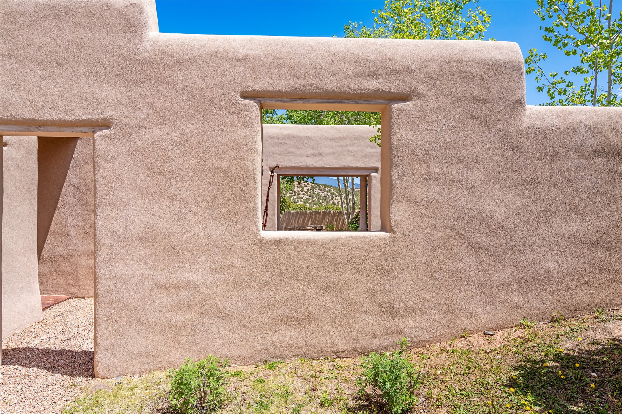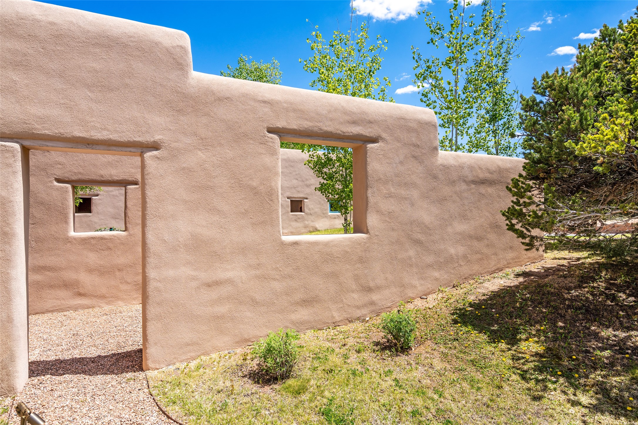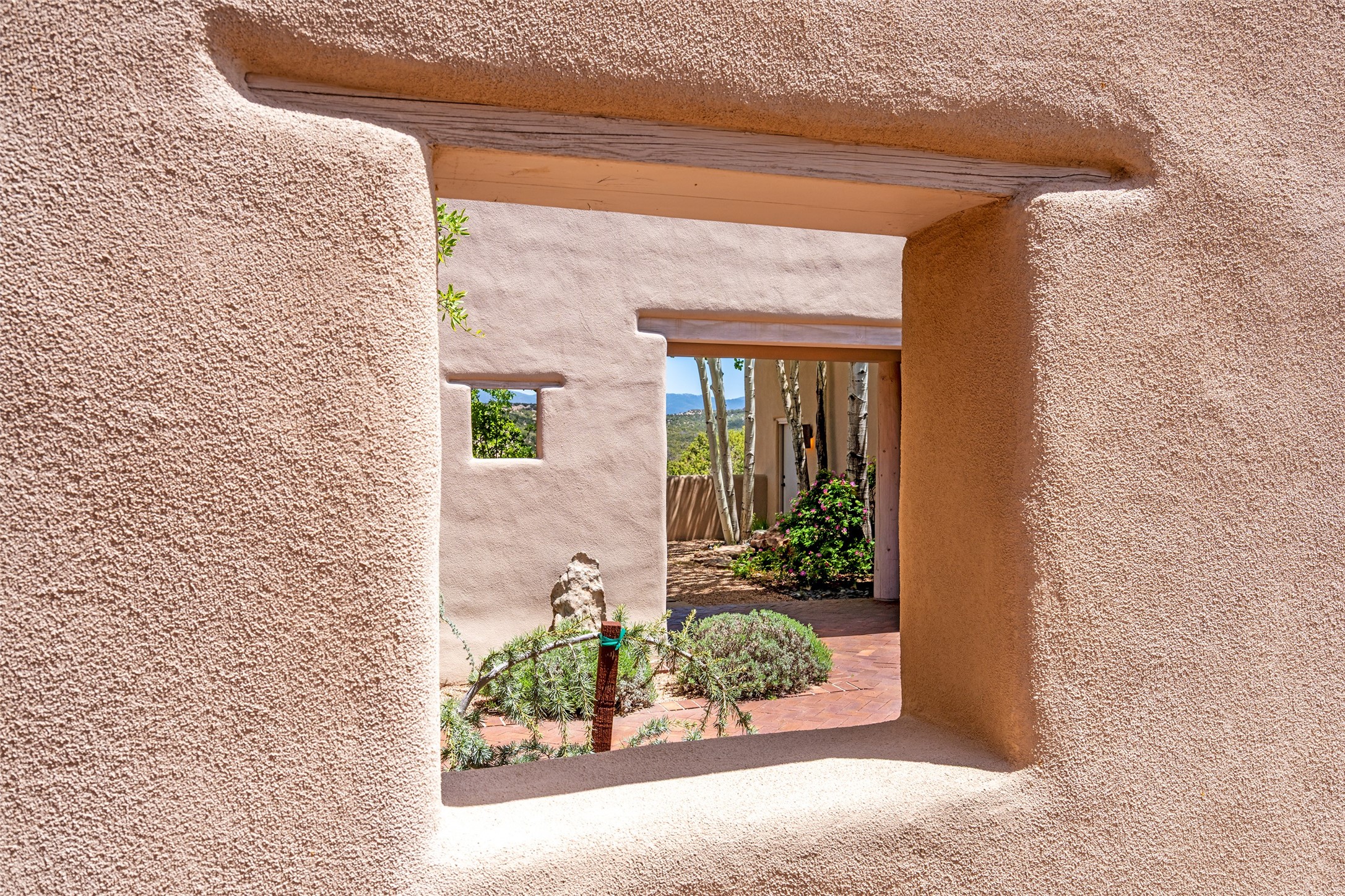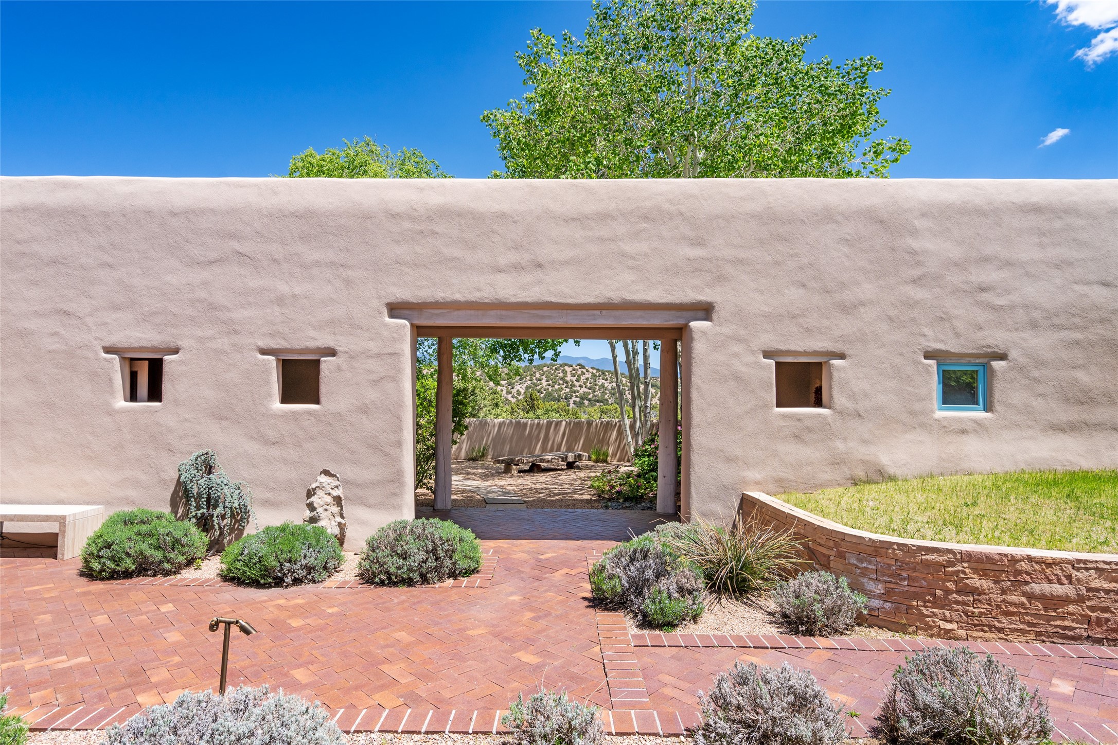 Set on 13.5 acres of pristine land bordering open space, this striking estate offers a seamless blend of modern elegance and natural beauty. Designed for those who appreciate clean lines and open, light-filled spaces, the property includes a main house, a private guest house, versatile studio and multiple outdoor living spaces--all thoughtfully positioned to capture breathtaking views of the Santa Fe landscape and surrounding mountains. The 3,867 sq. ft. main residence is a masterpiece of understated sophistication, featuring an open floor plan enhanced by coved ceilings, smooth plaster walls, and flagstone flooring. Expansive floor-to-ceiling windows invite soft, natural light while framing the ever-changing beauty of the surrounding scenery. The living room, anchored by a commanding fireplace, offers the perfect setting for large-scale artwork and intimate gatherings. Designed for both comfort and functionality, the primary suite includes separate his-and-hers closets and baths. The family room could also double as an office and/or library. The kitchen is a chef's dream, equipped with high-end appliances, a very large island and a spacious walk-in pantry. Tucked away along a charming pathway is a 665 sf, one bed, one bath guest house which provides a peaceful retreat. Meanwhile, the impressive 1,440 sf studio is currently being used as a dedicated artist studio and personal gym. Spacious enough, it could also be a car collector's dream space or RV Storage. Don't miss this rare opportunity to own an exceptional home that balances contemporary design with the tranquility of nature, this estate is an inspiring sanctuary just waiting to be discovered.