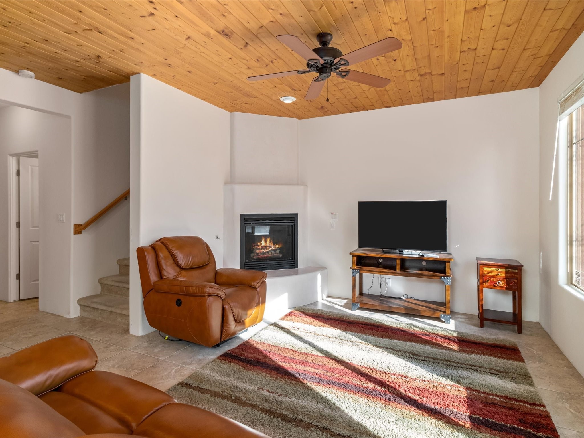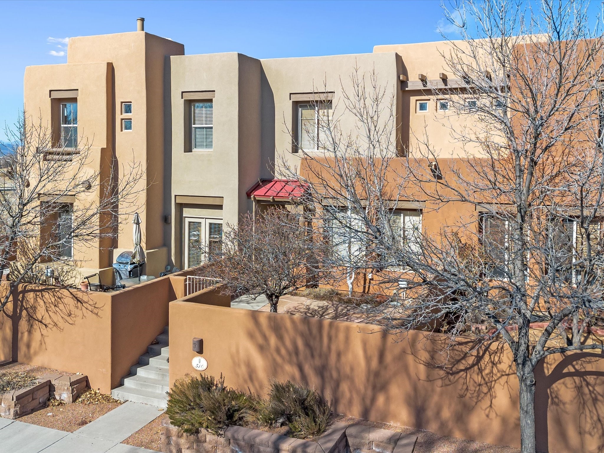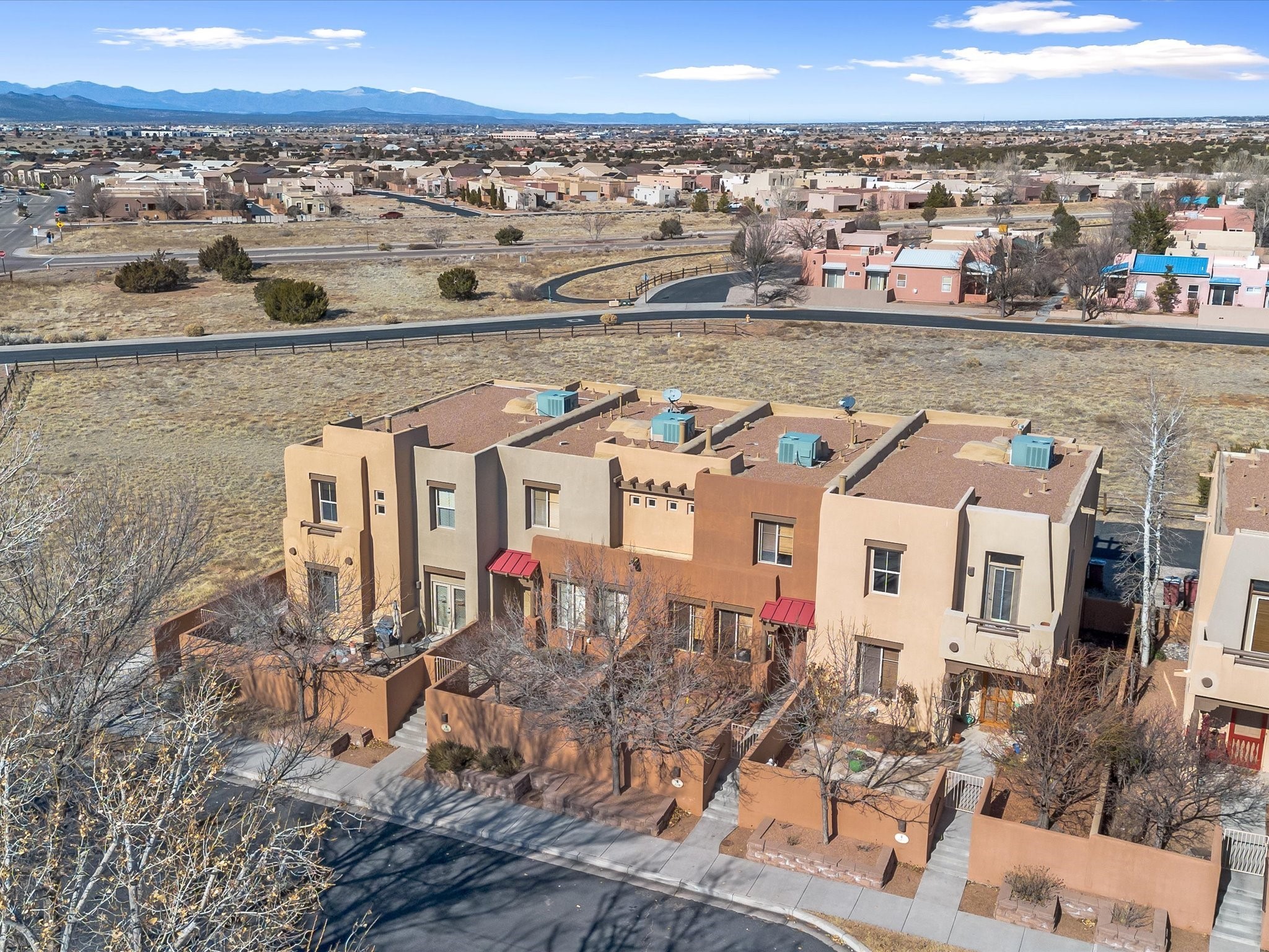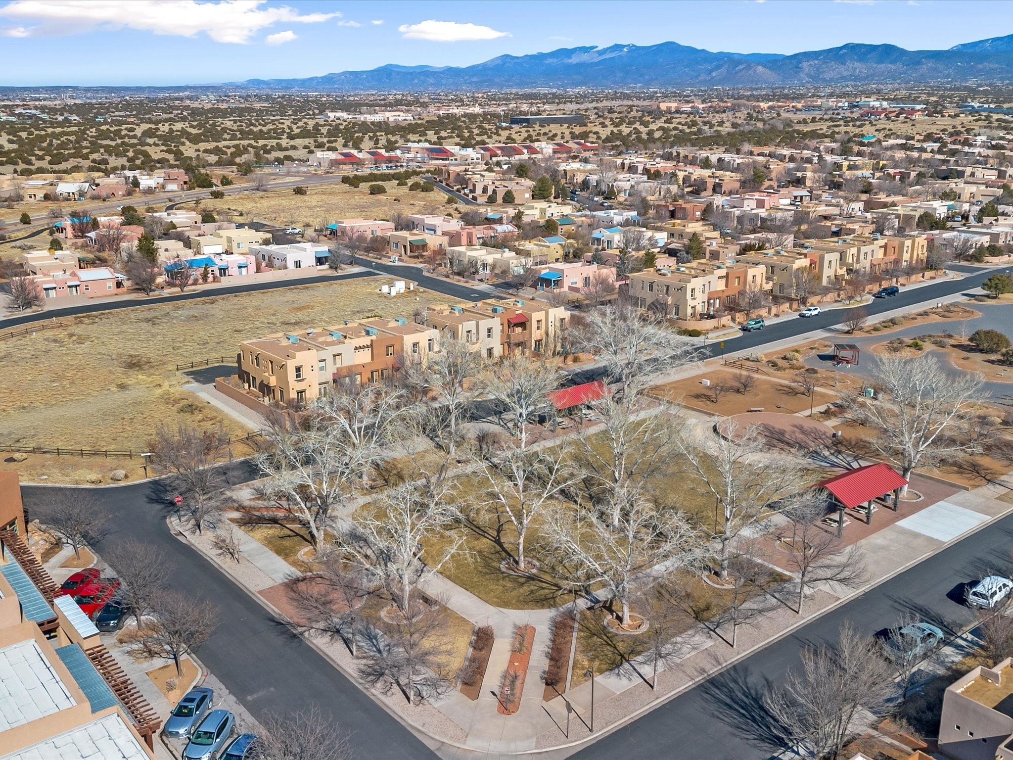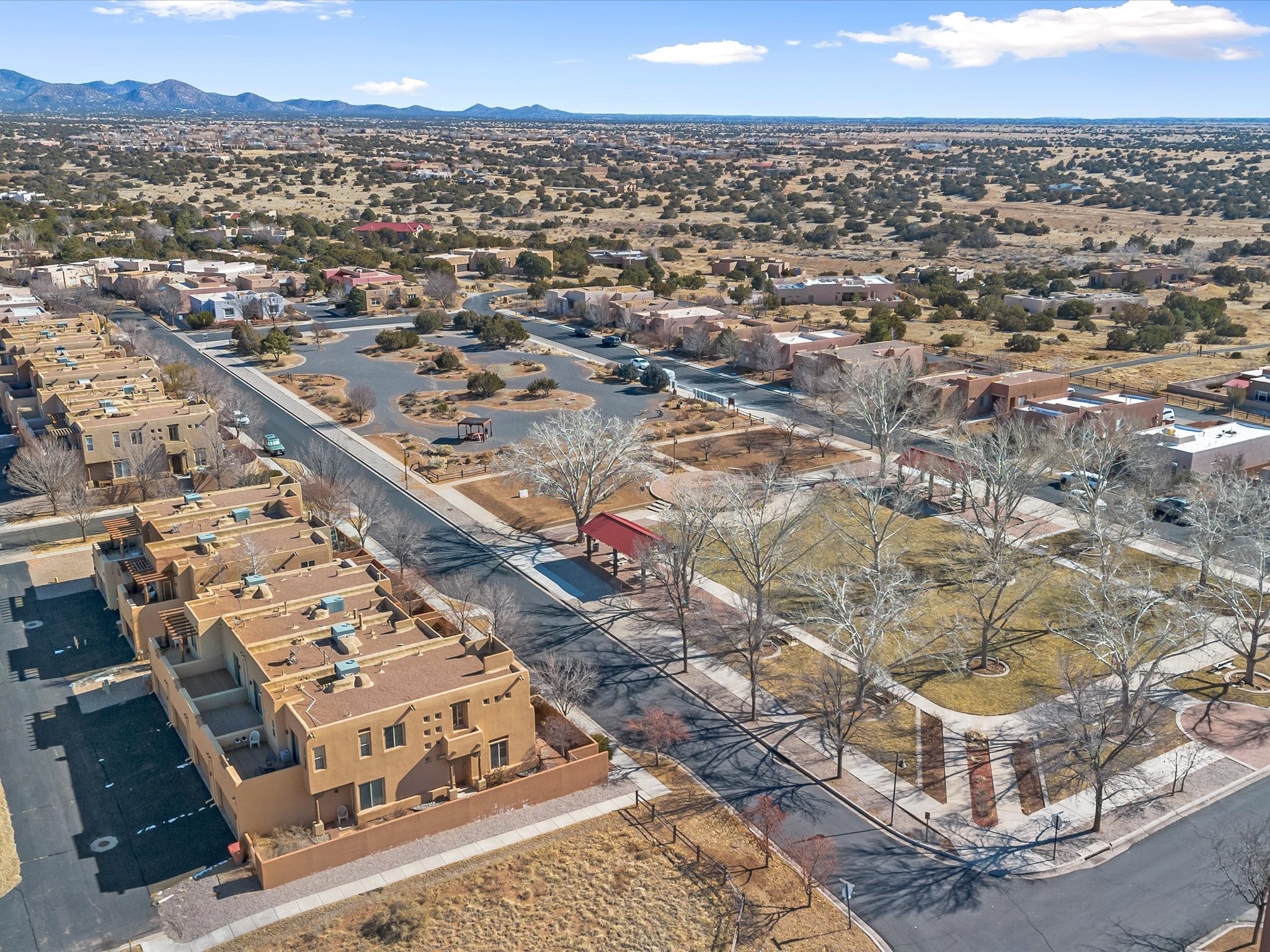 Welcome to this comfortable and warm townhome, gently lived in and located directly across from Rancho Viejo Village Park Plaza. As you step inside, you're greeted by charming tongue and groove ceilings that open up to a spacious living area--ideal for easy entertaining and everyday living. This home features 2 bedrooms, each with their own en-suite bathrooms, offering privacy and convenience. The primary bedroom opens to a large deck with stunning views, perfect for relaxing outdoors. Enjoy the natural light that floods each room, creating a bright and welcoming atmosphere. The thoughtful floor plan provides excellent separation between the bedrooms, ensuring peace and privacy. A generous front courtyard adds to the charm, offering an inviting space for outdoor gatherings or quiet moments in the fresh air. The home is surrounded by beautiful trails and ample open space for outdoor activities, and is conveniently located near Santa Fe Community College with easy access to I-25 for quick commutes. This townhome is a perfect blend of comfort, convenience, and scenic beauty. Don't wait to schedule a private showing today!