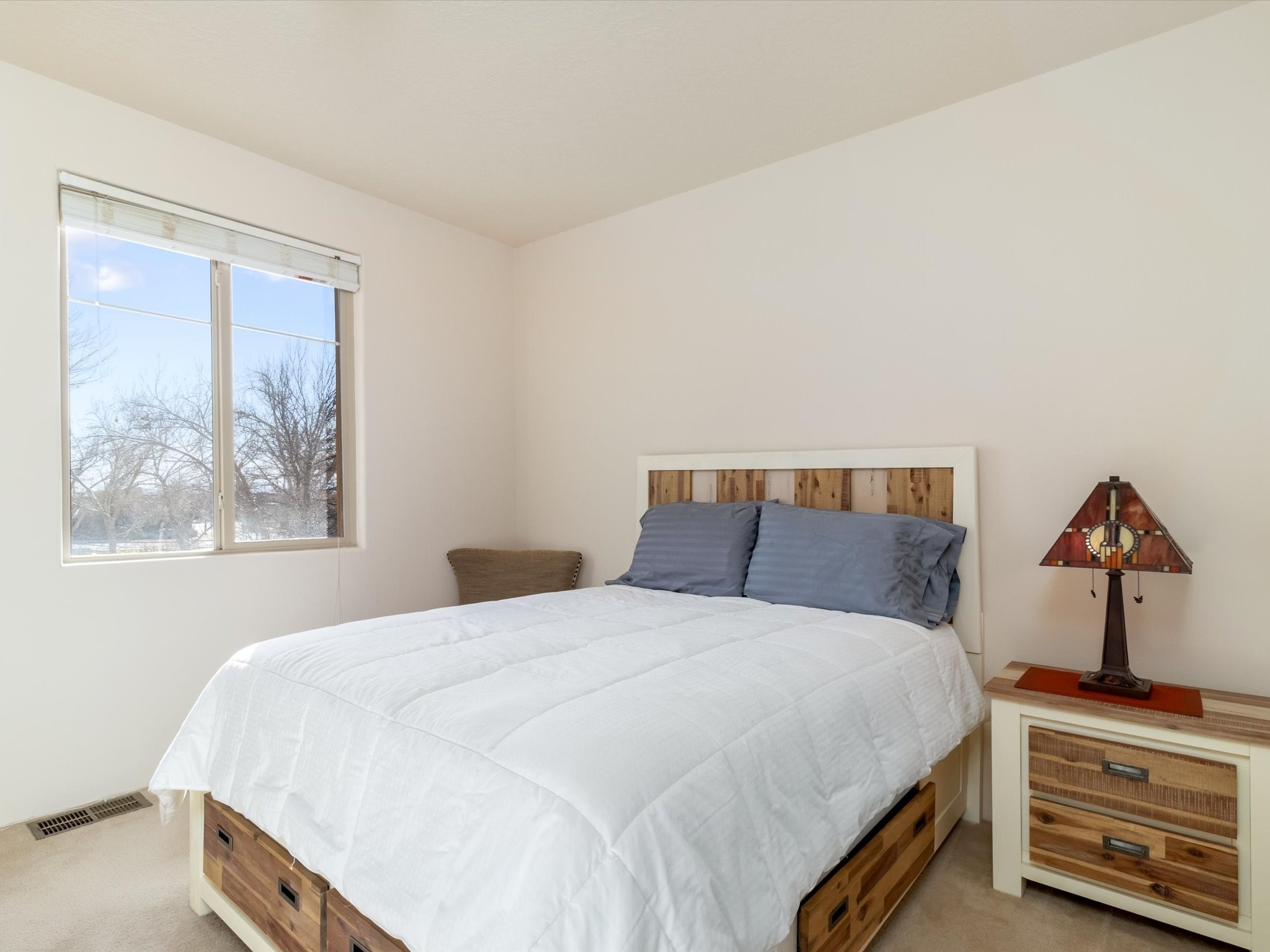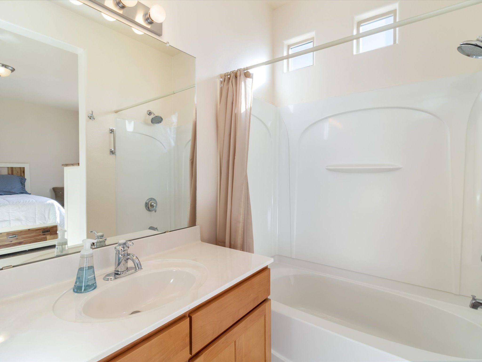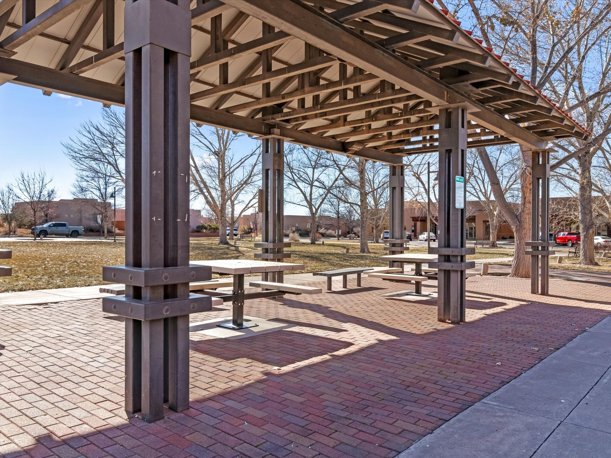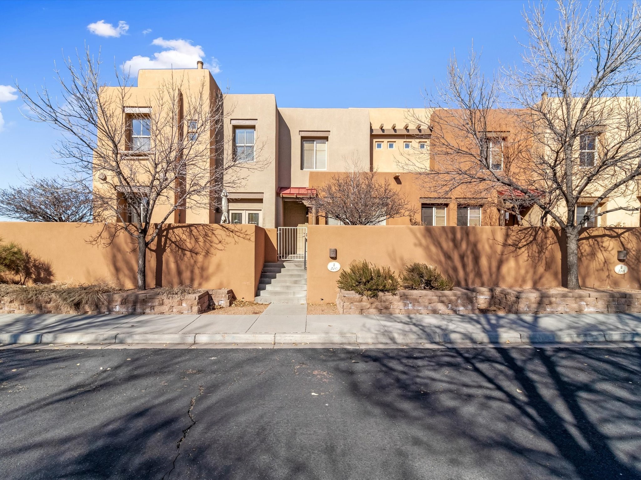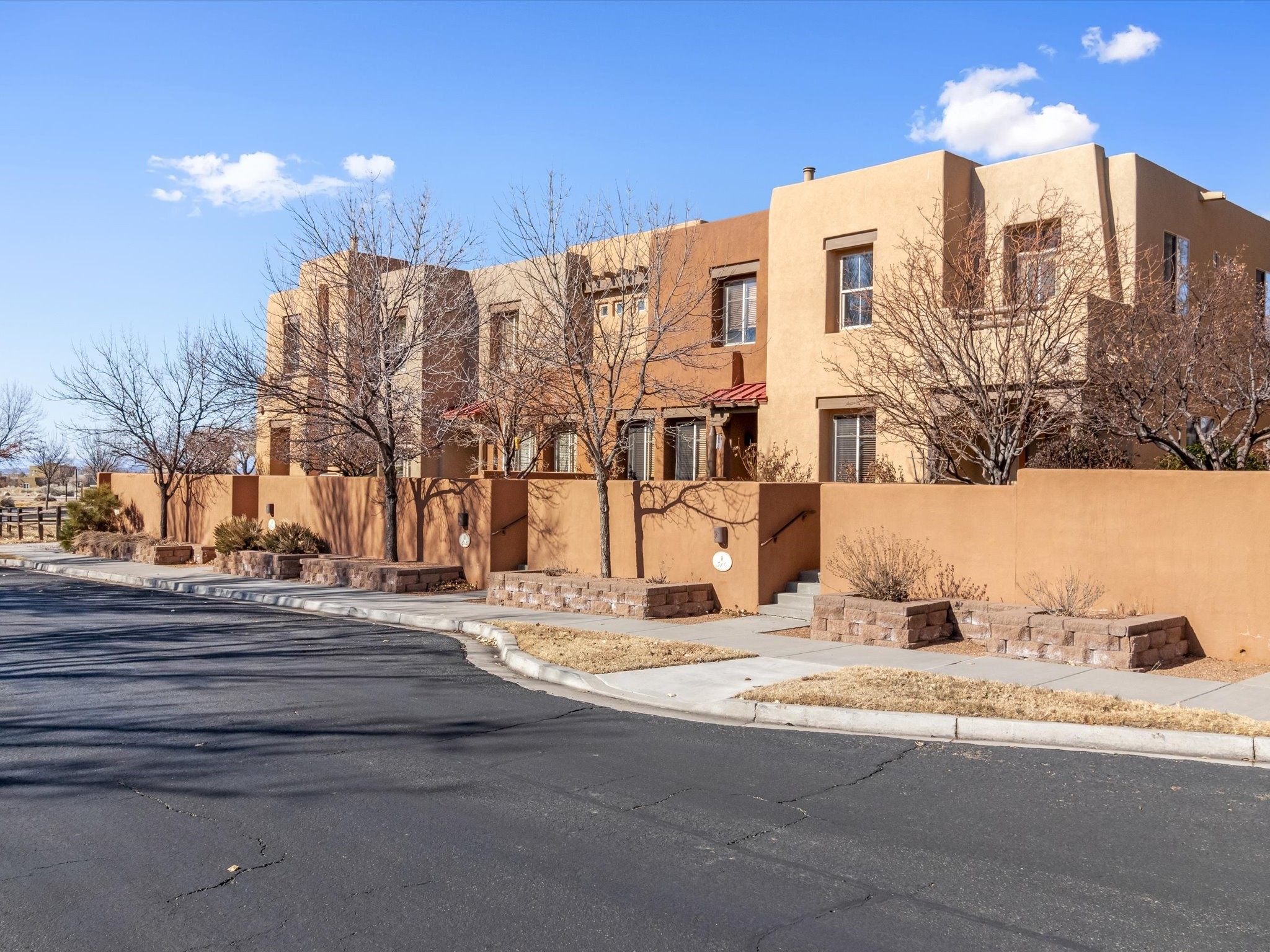 Welcome to this comfortable and warm townhome, gently lived in and located directly across from Rancho Viejo Village Park Plaza. As you step inside, you're greeted by charming tongue and groove ceilings that open up to a spacious living area--ideal for easy entertaining and everyday living. This home features 2 bedrooms, each with their own en-suite bathrooms, offering privacy and convenience. The primary bedroom opens to a large deck with stunning views, perfect for relaxing outdoors. Enjoy the natural light that floods each room, creating a bright and welcoming atmosphere. The thoughtful floor plan provides excellent separation between the bedrooms, ensuring peace and privacy. A generous front courtyard adds to the charm, offering an inviting space for outdoor gatherings or quiet moments in the fresh air. The home is surrounded by beautiful trails and ample open space for outdoor activities, and is conveniently located near Santa Fe Community College with easy access to I-25 for quick commutes. This townhome is a perfect blend of comfort, convenience, and scenic beauty. Don't wait to schedule a private showing today!
