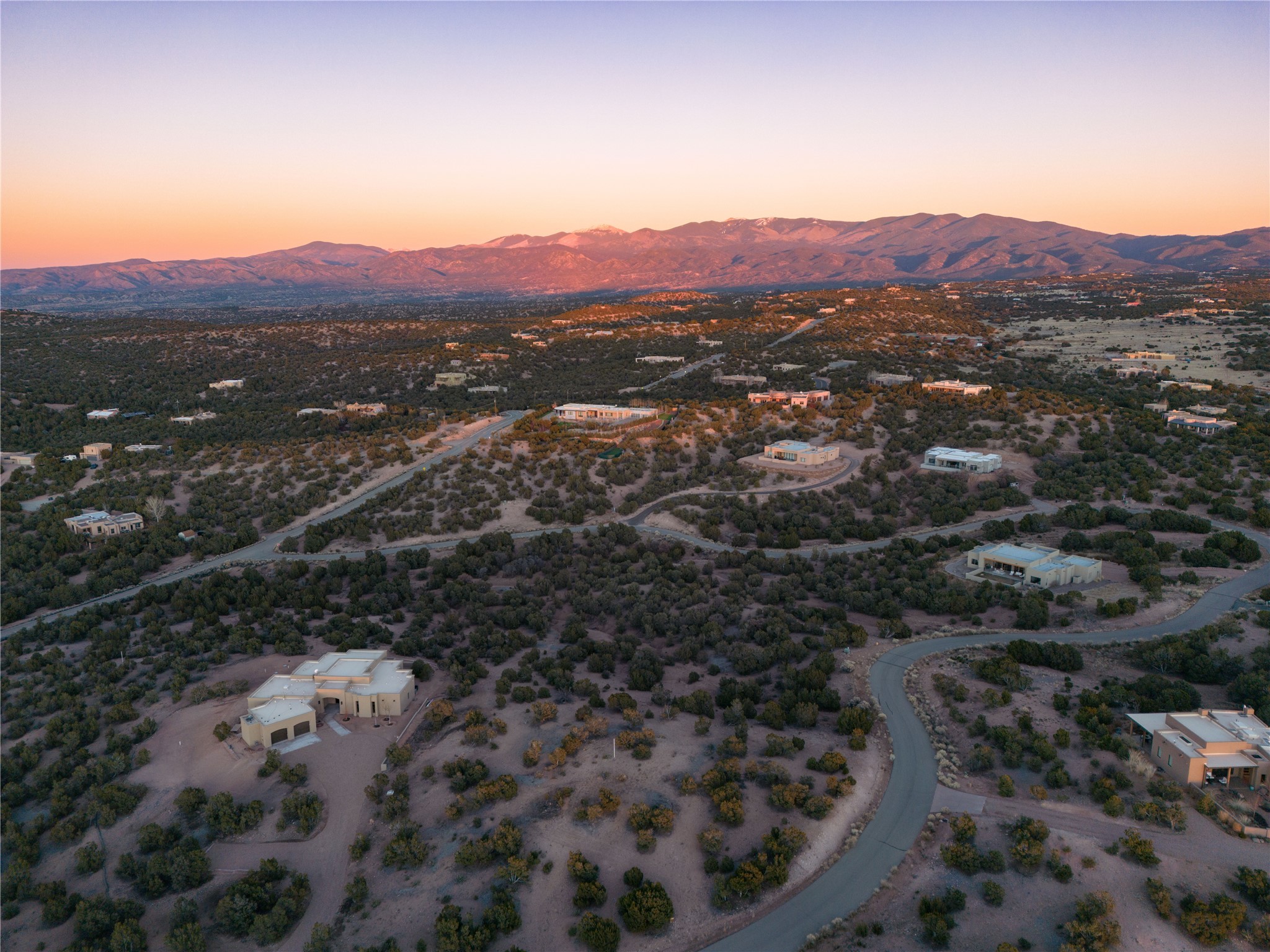 World Class View Lot! Perched on a hilltop with massive panoramic views of the Sangres, Jemez, and all the way to Albuquerque and north toward Colorado. The views can't be blocked by new construction, you'll know that the viewscape you see now will not be blocked, no surprises! Staked easy build site with plans in luxury subdivision Sundance Estates, 16 minutes from The Plaza, a world away from everything else. All utilities at the lot's edge including a shared well and public electricity. Geotechnical Investigation complete and available for inspection. Developable area staked. Shared well with adjudicated rights. 2.56 acres with pinion and juniper trees, starry nights, and sunshine filled days outside Santa Fe's world class dining, art, culture and outdoor recreation. Plans available for a 3,555 sqaure foot heated area luxury home with portals and courtyards. No gravel roads, all paved access. Close to the Las Campanas Country Club with two Jack Nicholas Signature golf courses, equestrian center, tennis courts, and much more. If you're looking for a lot with big, all around, georgous views, come have a look at this rare opportunity. Listing broker will show you around!