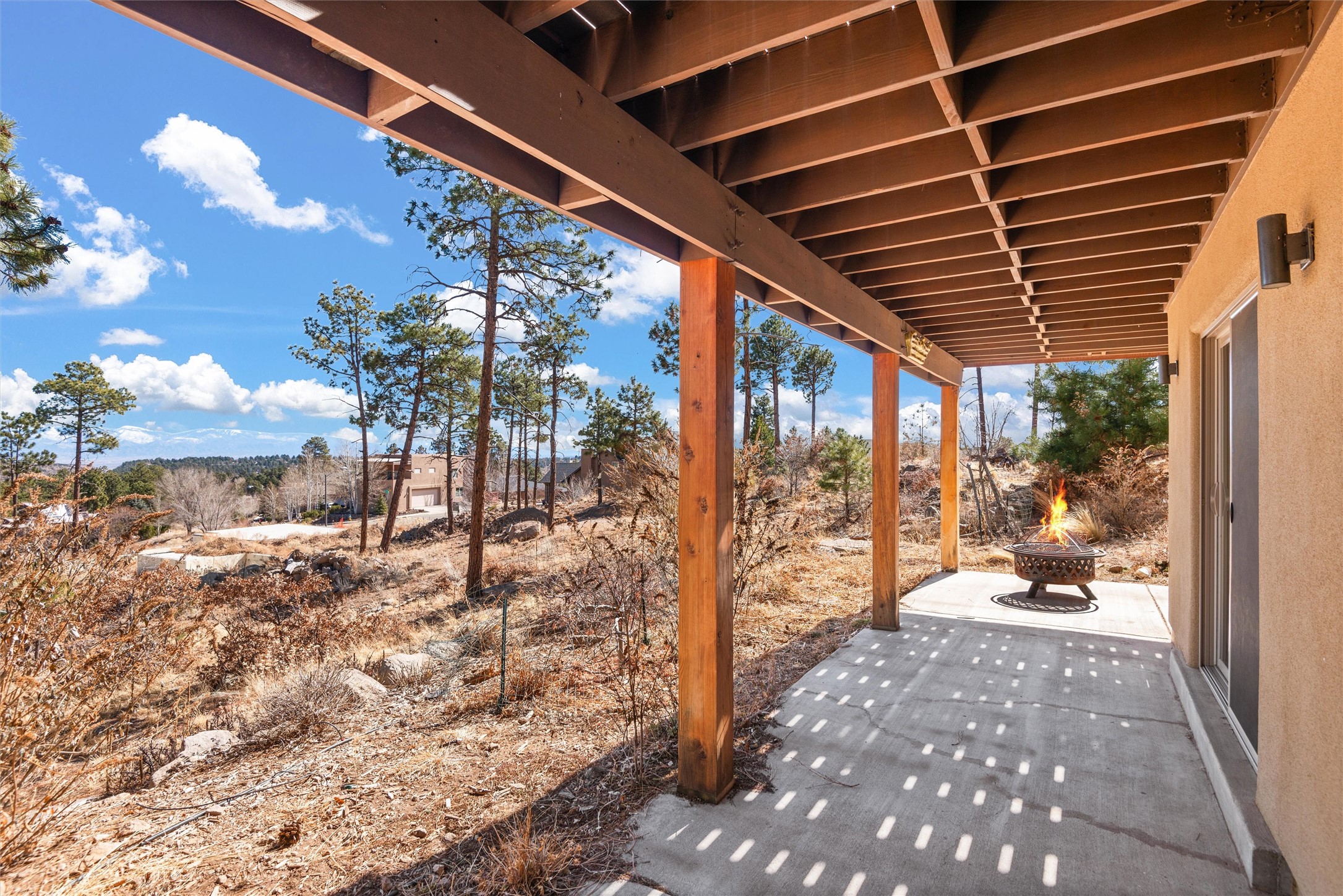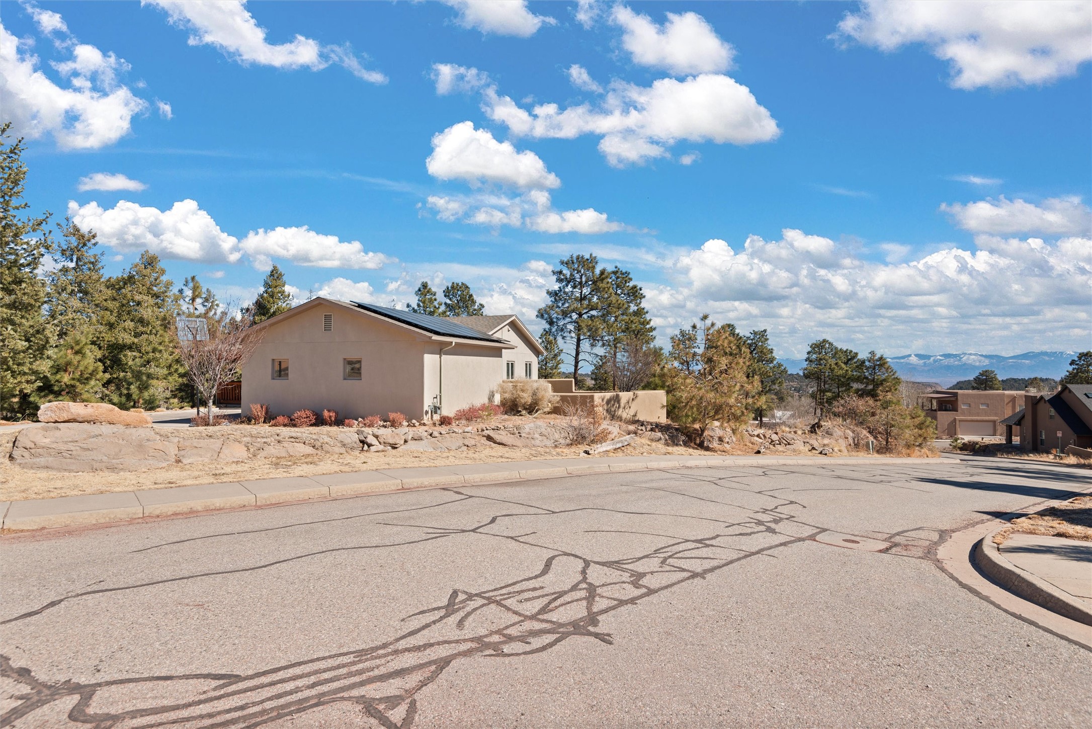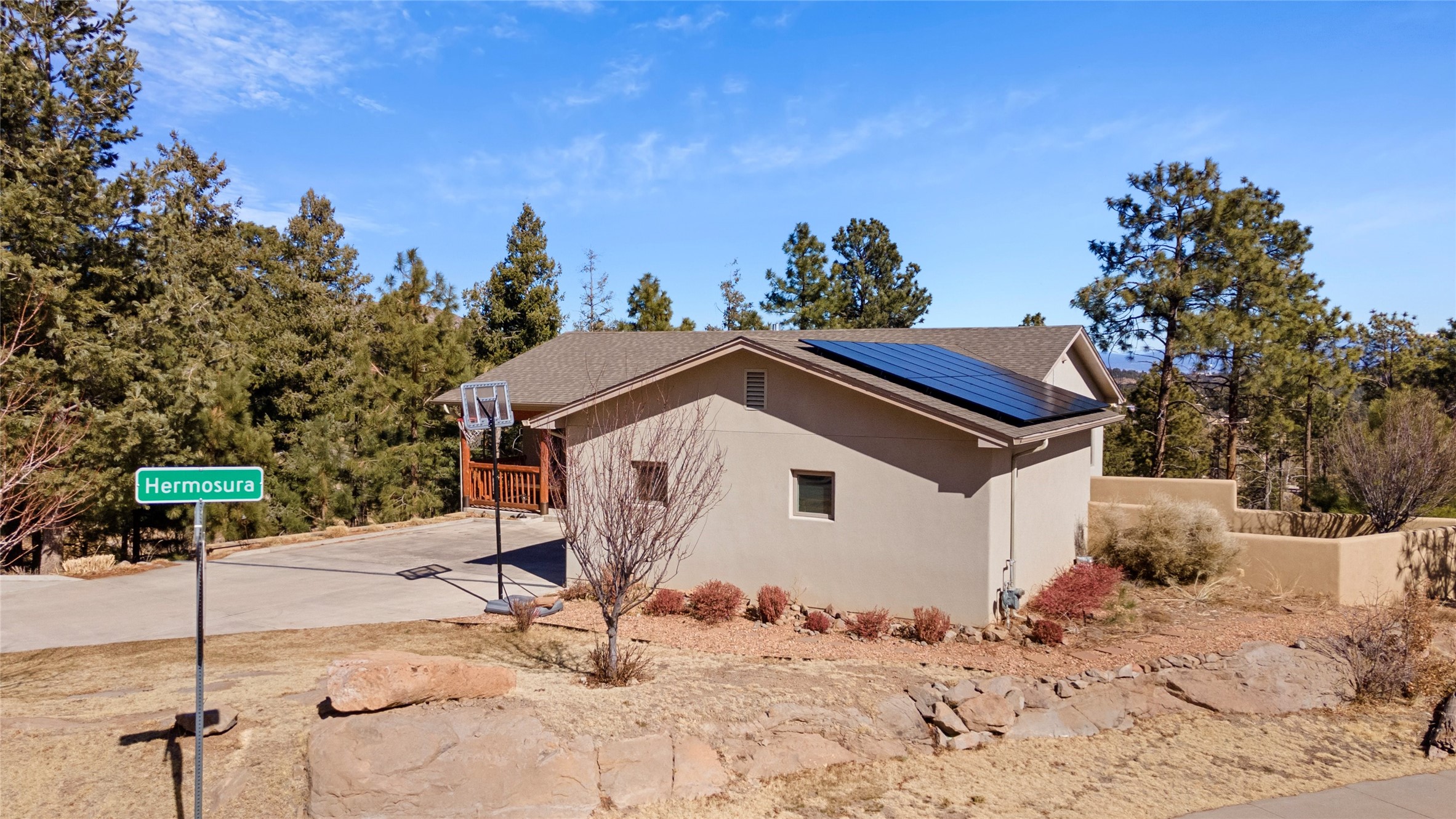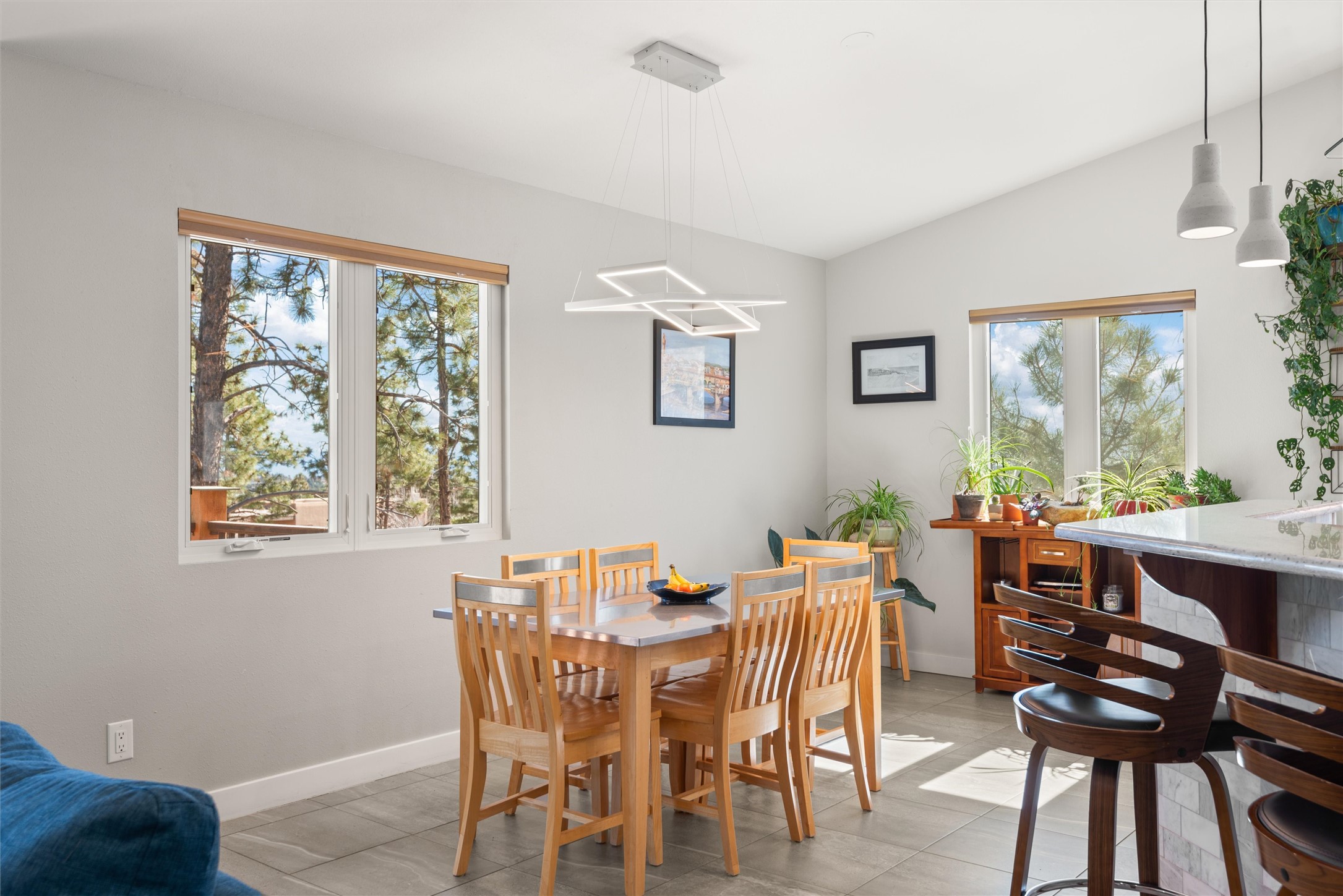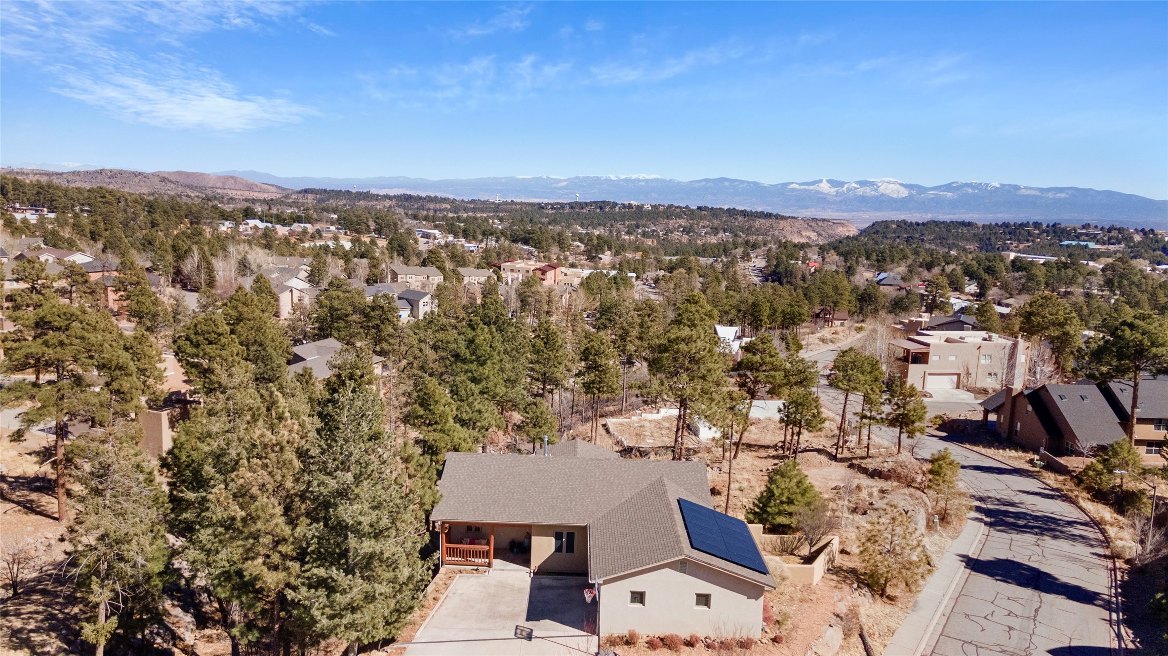 Welcome to this beautifully designed home, where elegance meets comfort in one of Los Alamos' most sought-after neighborhoods. From the moment you arrive, you'll be drawn in by its inviting curb appeal, featuring a charming front porch with a swing--perfect for relaxing and enjoying the peaceful surroundings. The west-facing, flat driveway offers both convenience and ease year-round.Step inside to discover a bright and airy living space with soaring ceilings, high-end finishes, and expansive windows that flood the home with natural light while showcasing breathtaking views. The thoughtful layout includes three spacious bedrooms and a versatile bonus room--ideal for a home gym, media space, or creative studio.Designed with both style and efficiency in mind, this home offers year-round comfort with in-floor heating, mini-split climate control, and a striking gas fireplace that serves as the heart of the living area. Solar panels further enhance its energy efficiency, helping to reduce utility costs while embracing sustainable living.At the center of the home, the beautifully appointed kitchen exudes warmth and sophistication. Rich wood cabinetry, soft neutral tones, and a generous pantry create an inviting space that is as functional as it is stylish. Whether you're preparing meals or entertaining guests, this kitchen is designed to impress.With its seamless flow, modern amenities, and serene ambiance, this home is truly a rare find. Don't miss your chance to make it yours!