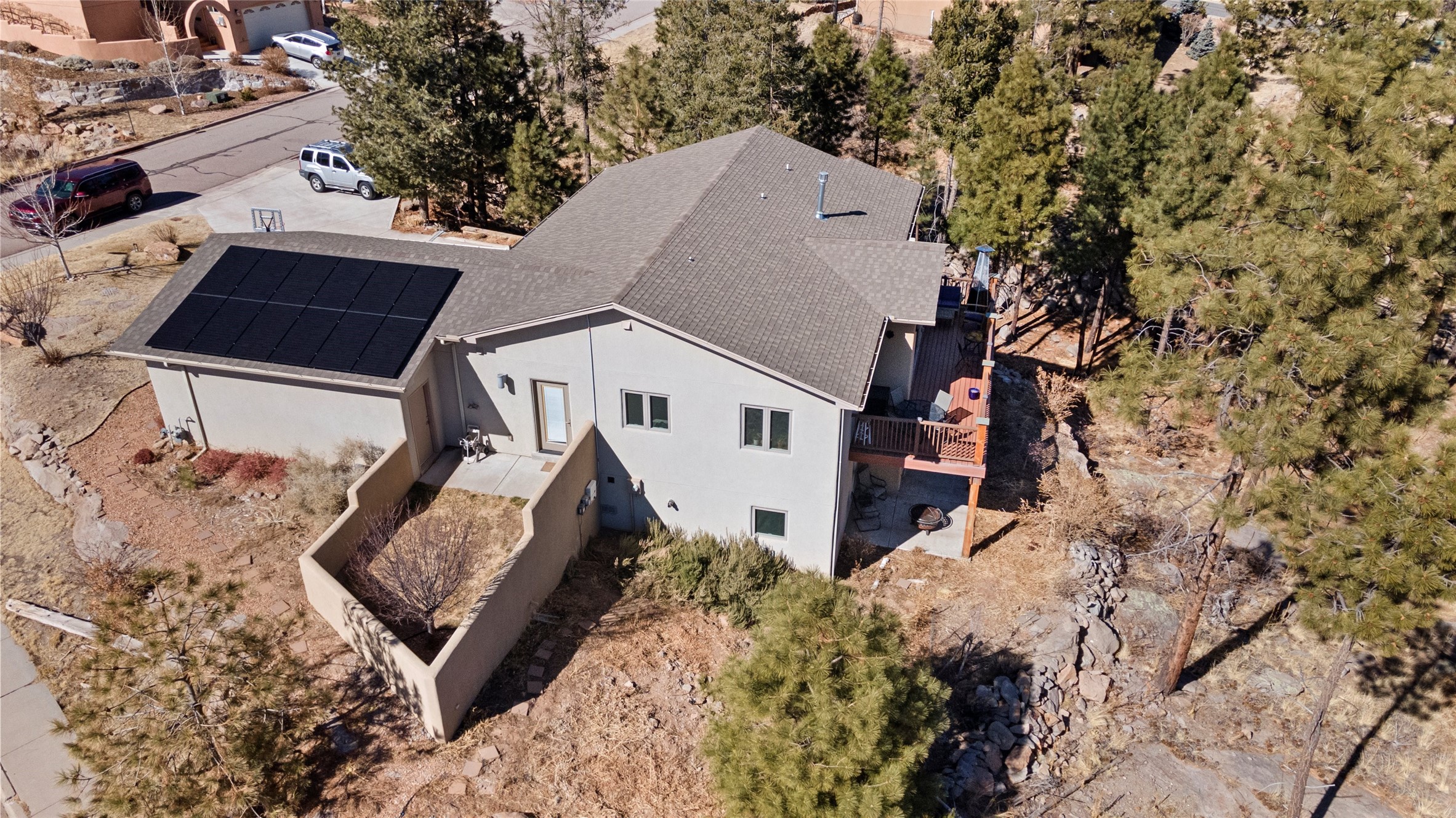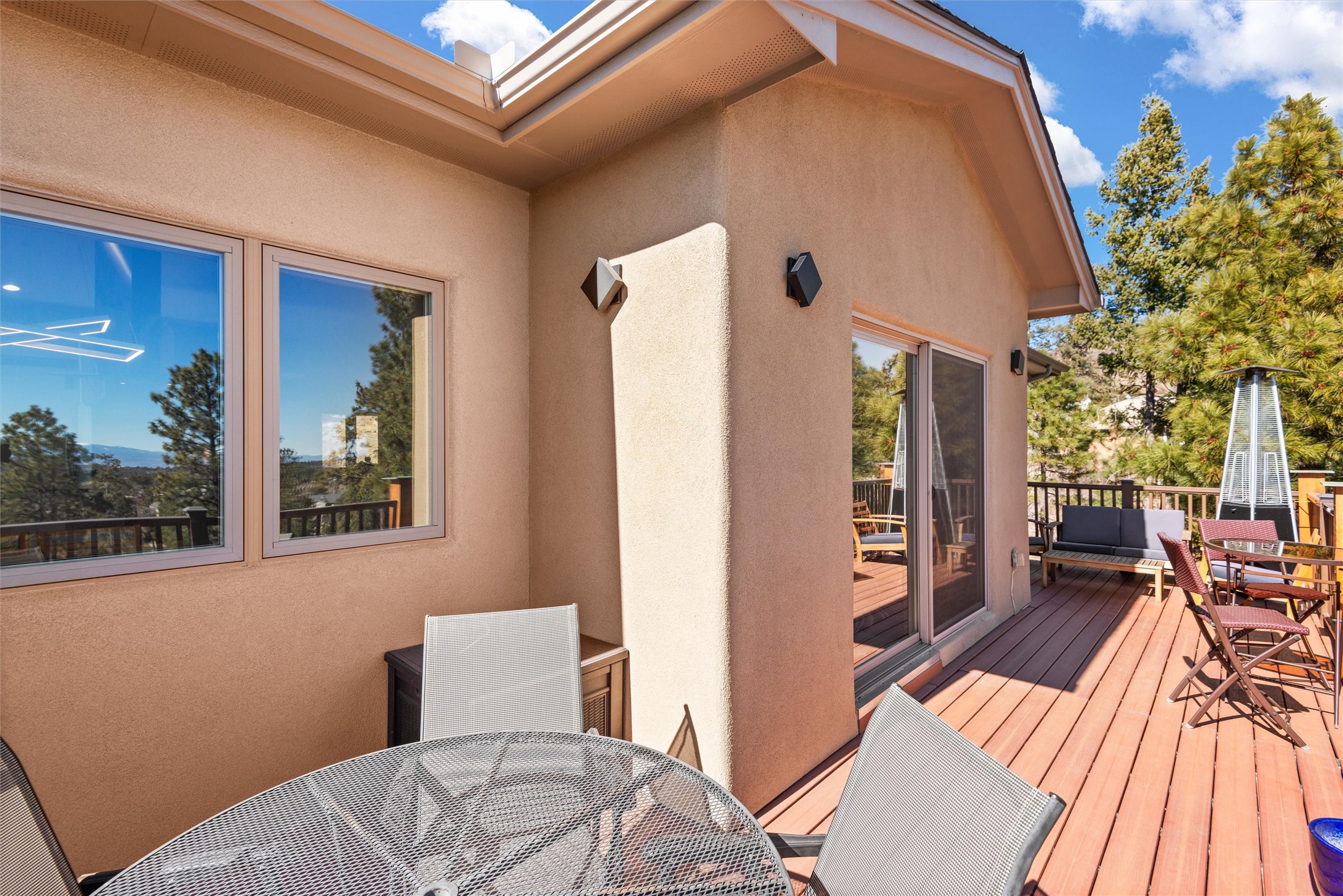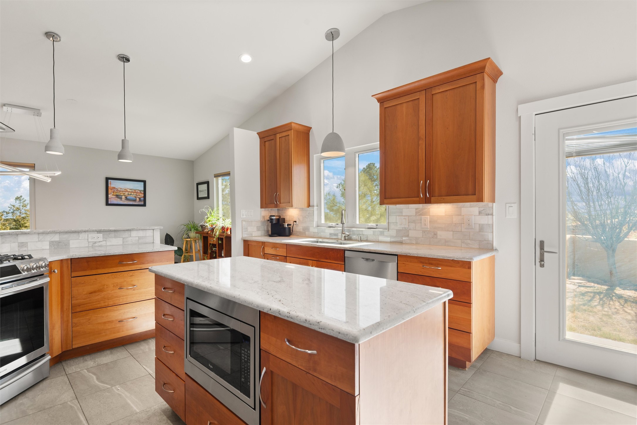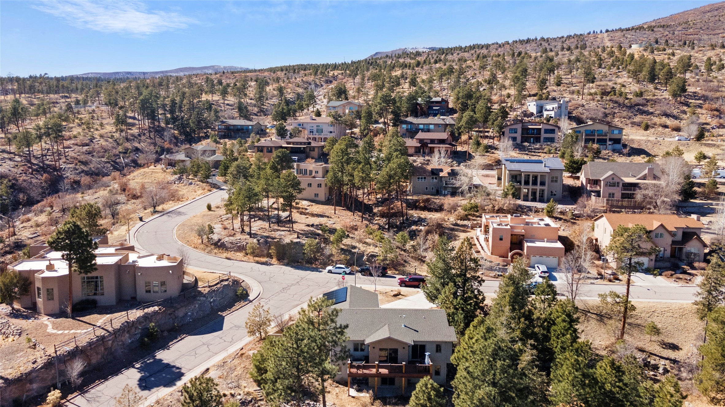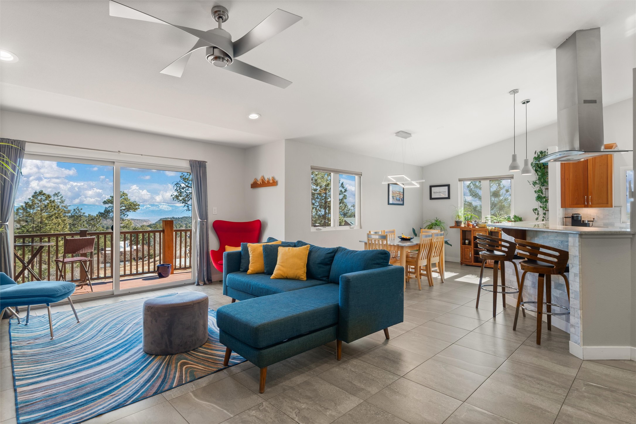 Welcome to this beautifully designed home, where elegance meets comfort in one of Los Alamos' most sought-after neighborhoods. From the moment you arrive, you'll be drawn in by its inviting curb appeal, featuring a charming front porch with a swing--perfect for relaxing and enjoying the peaceful surroundings. The west-facing, flat driveway offers both convenience and ease year-round.Step inside to discover a bright and airy living space with soaring ceilings, high-end finishes, and expansive windows that flood the home with natural light while showcasing breathtaking views. The thoughtful layout includes three spacious bedrooms and a versatile bonus room--ideal for a home gym, media space, or creative studio.Designed with both style and efficiency in mind, this home offers year-round comfort with in-floor heating, mini-split climate control, and a striking gas fireplace that serves as the heart of the living area. Solar panels further enhance its energy efficiency, helping to reduce utility costs while embracing sustainable living.At the center of the home, the beautifully appointed kitchen exudes warmth and sophistication. Rich wood cabinetry, soft neutral tones, and a generous pantry create an inviting space that is as functional as it is stylish. Whether you're preparing meals or entertaining guests, this kitchen is designed to impress.With its seamless flow, modern amenities, and serene ambiance, this home is truly a rare find. Don't miss your chance to make it yours!