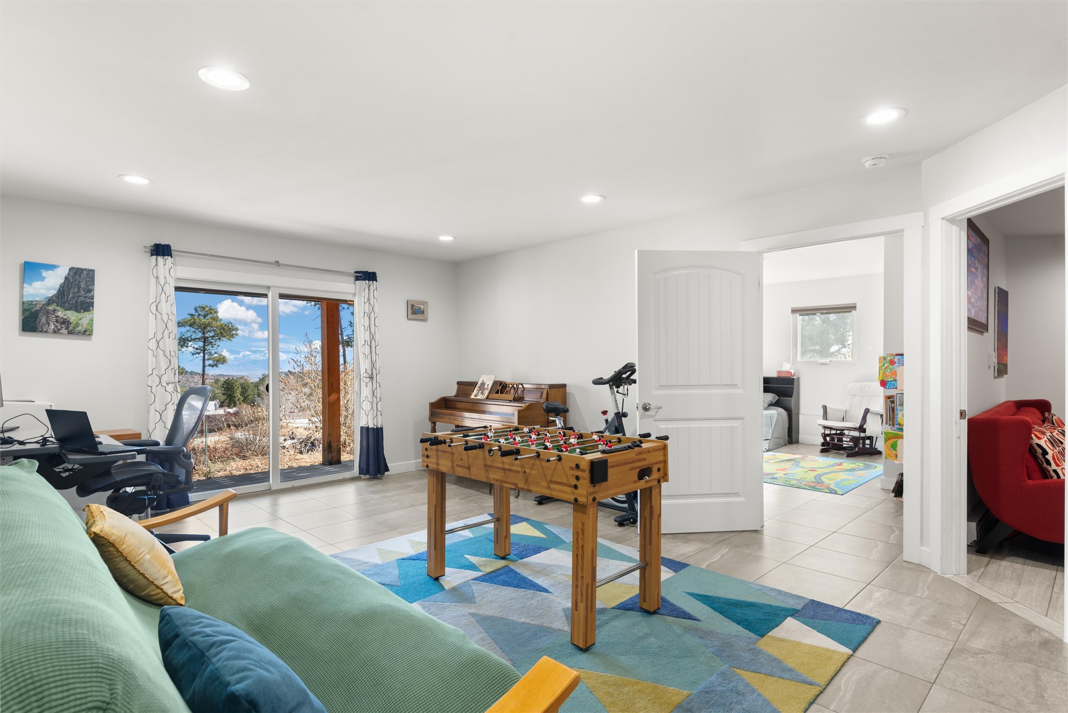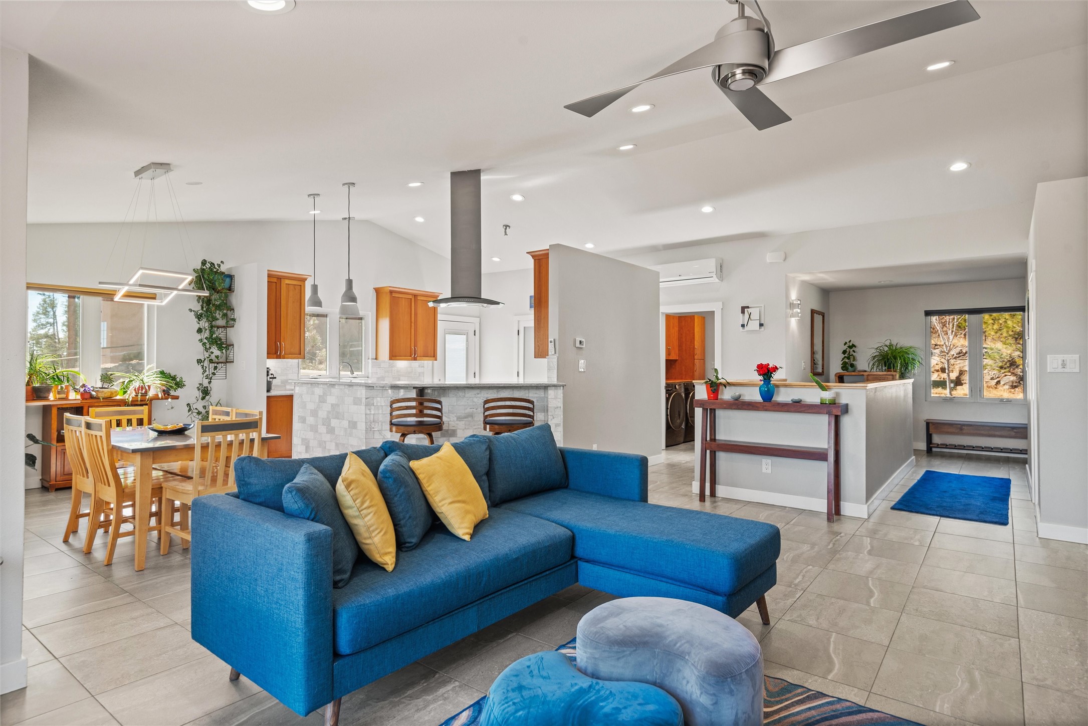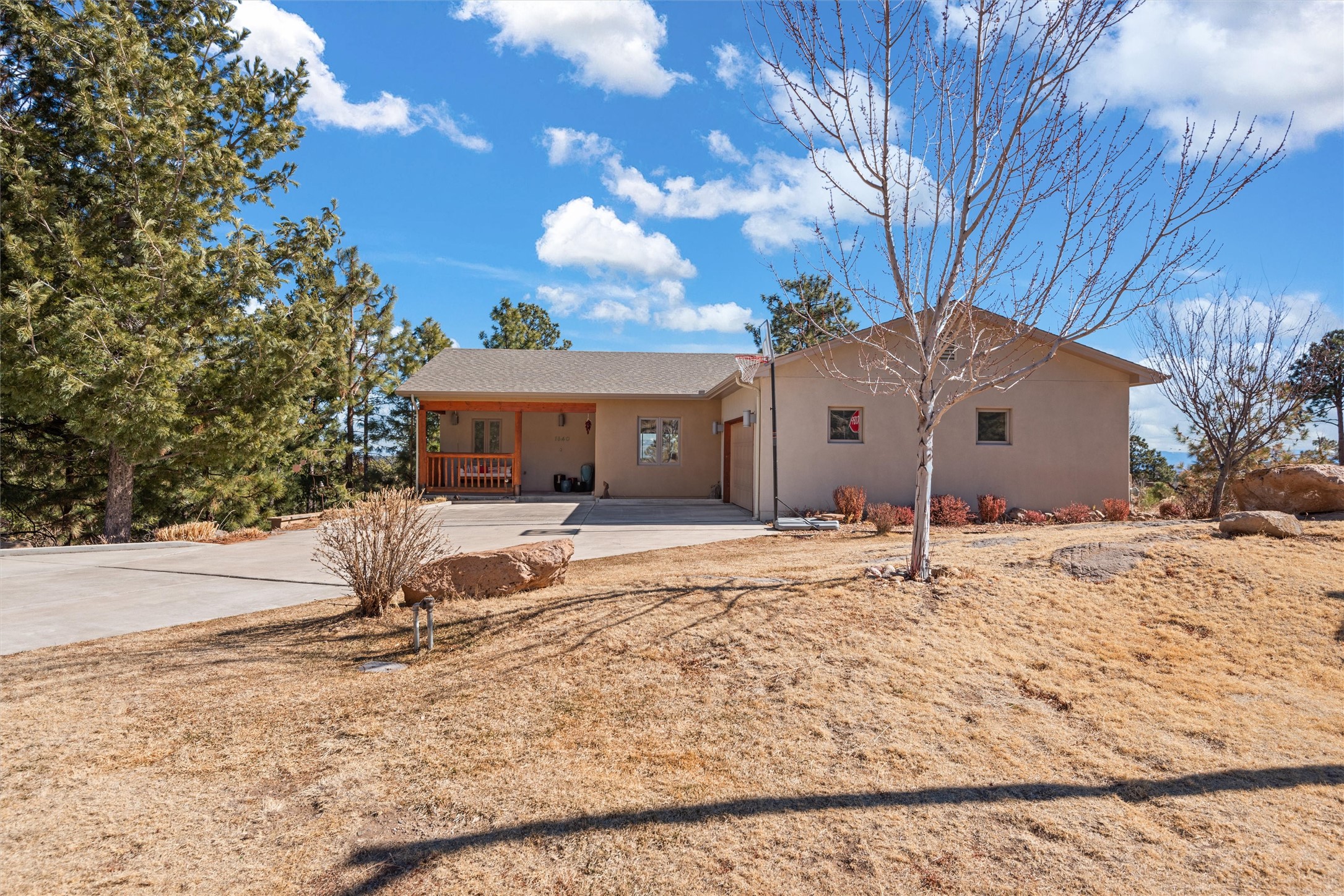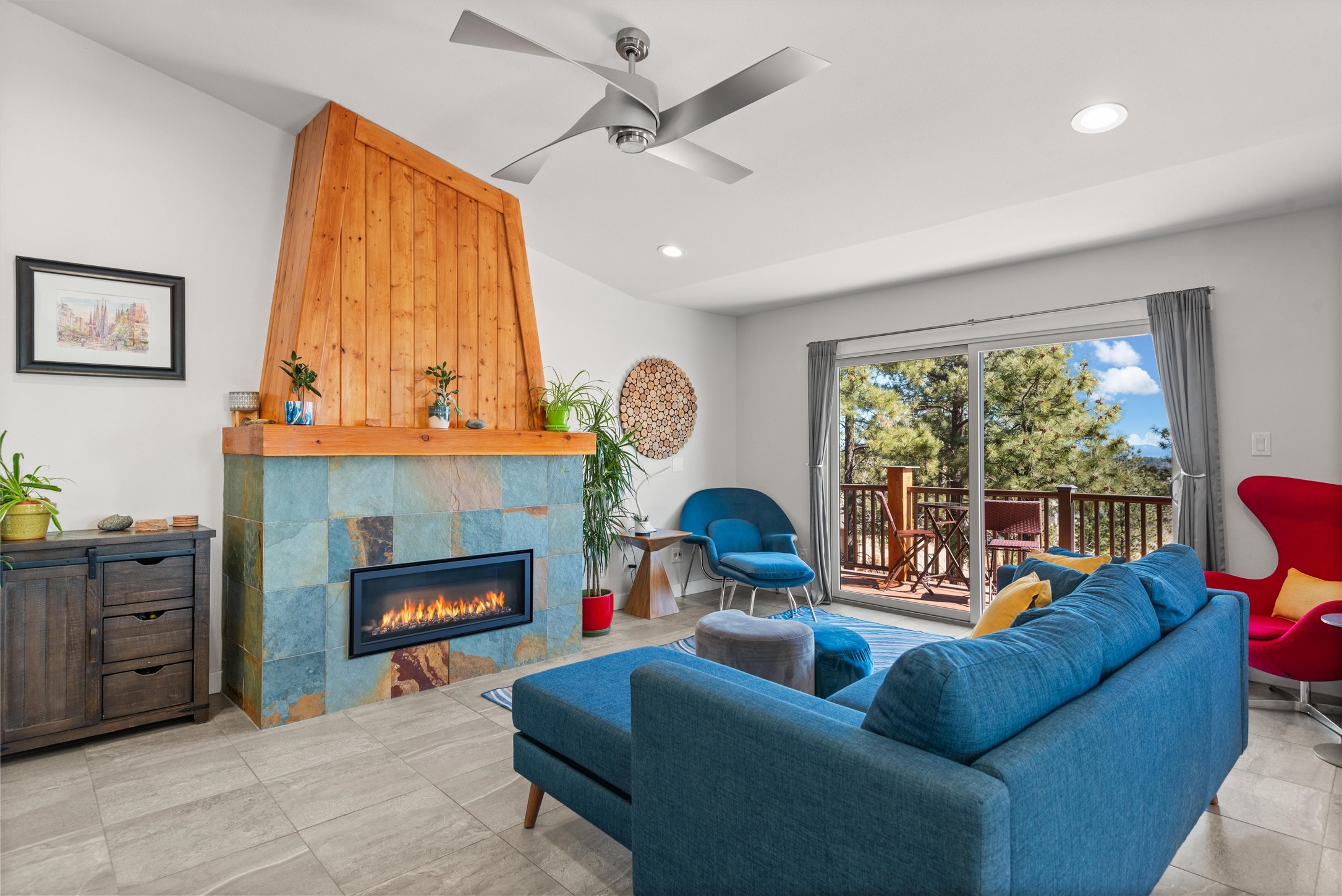 Welcome to this beautifully designed home, where elegance meets comfort in one of Los Alamos' most sought-after neighborhoods. From the moment you arrive, you'll be drawn in by its inviting curb appeal, featuring a charming front porch with a swing--perfect for relaxing and enjoying the peaceful surroundings. The west-facing, flat driveway offers both convenience and ease year-round.Step inside to discover a bright and airy living space with soaring ceilings, high-end finishes, and expansive windows that flood the home with natural light while showcasing breathtaking views. The thoughtful layout includes three spacious bedrooms and a versatile bonus room--ideal for a home gym, media space, or creative studio.Designed with both style and efficiency in mind, this home offers year-round comfort with in-floor heating, mini-split climate control, and a striking gas fireplace that serves as the heart of the living area. Solar panels further enhance its energy efficiency, helping to reduce utility costs while embracing sustainable living.At the center of the home, the beautifully appointed kitchen exudes warmth and sophistication. Rich wood cabinetry, soft neutral tones, and a generous pantry create an inviting space that is as functional as it is stylish. Whether you're preparing meals or entertaining guests, this kitchen is designed to impress.With its seamless flow, modern amenities, and serene ambiance, this home is truly a rare find. Don't miss your chance to make it yours!