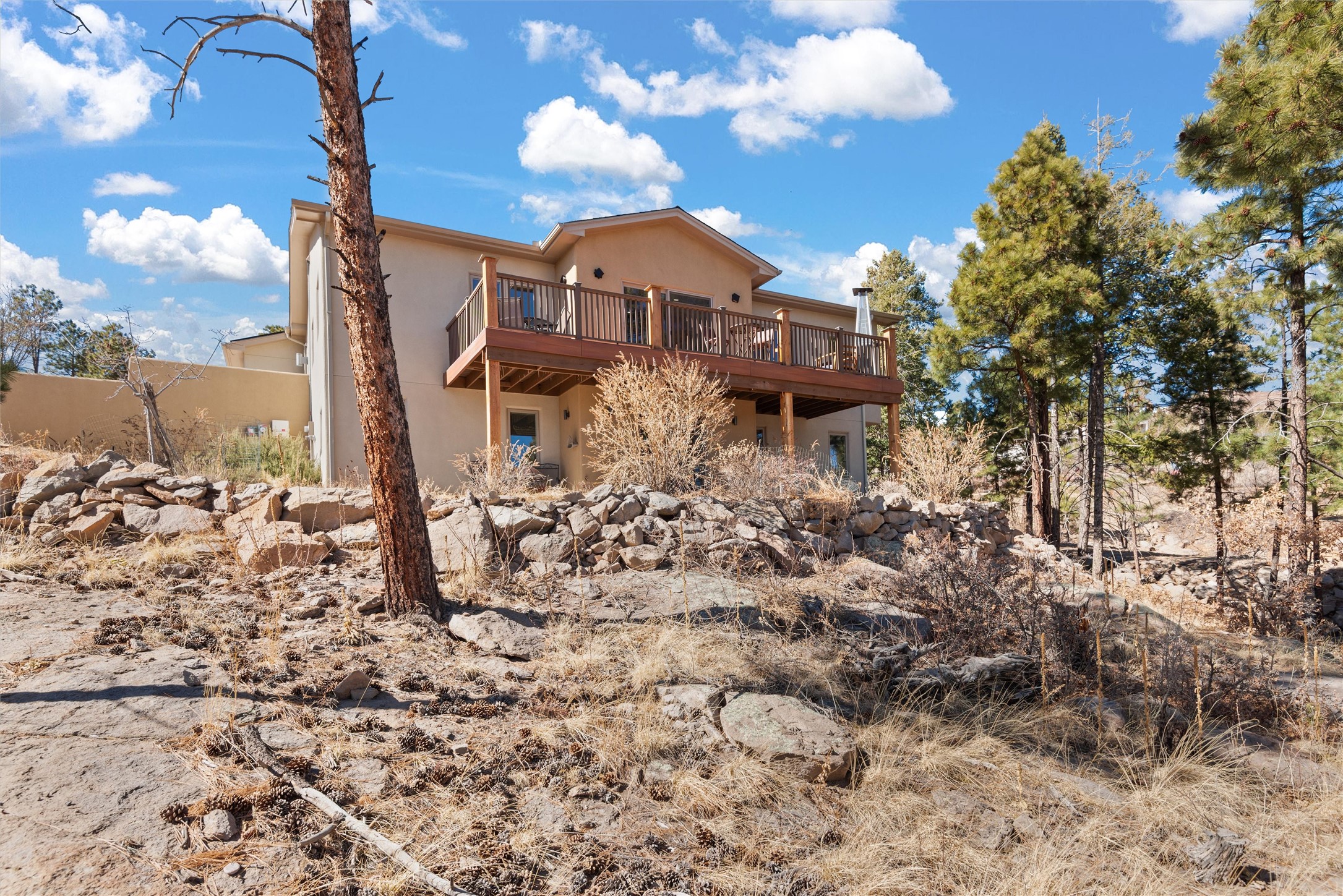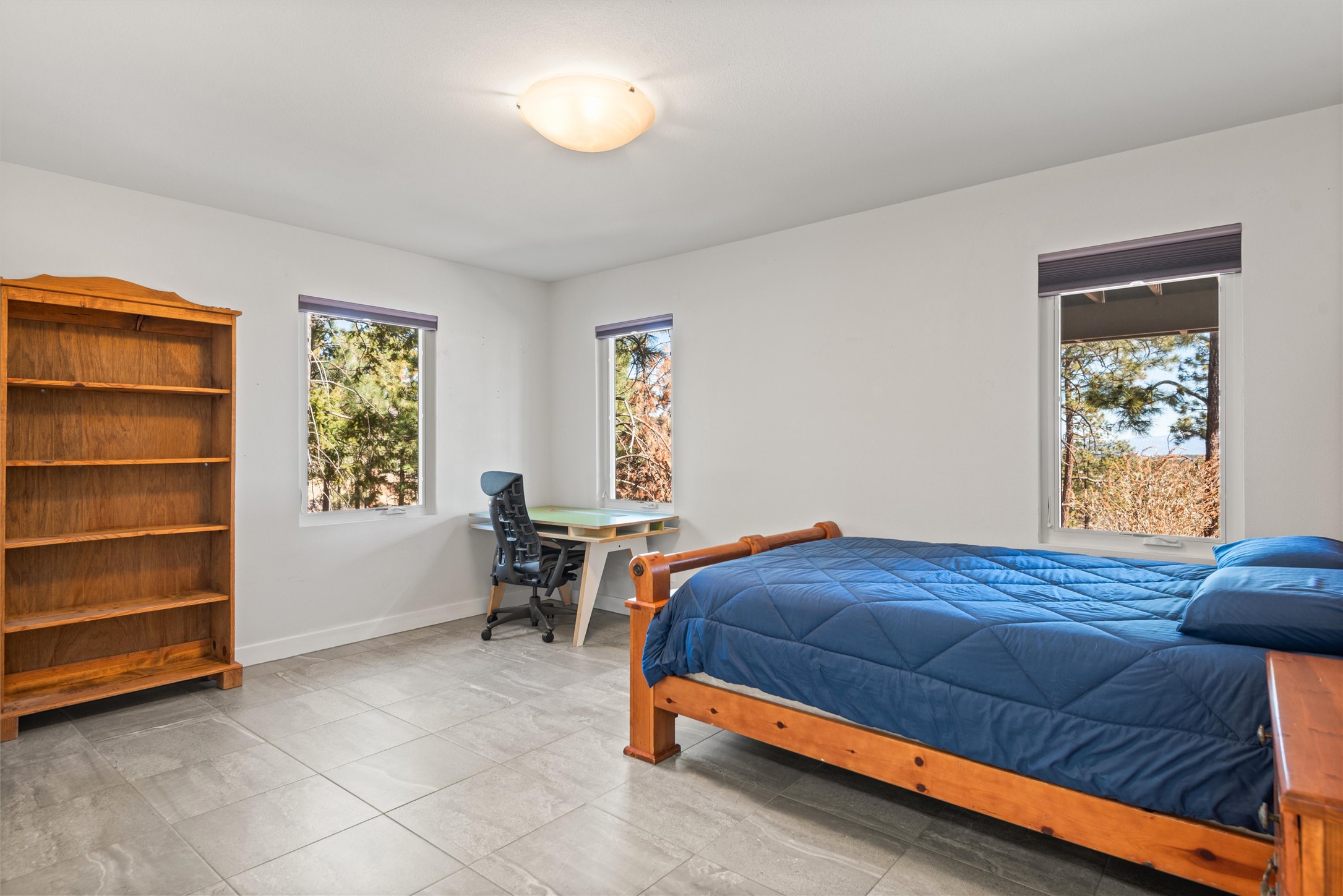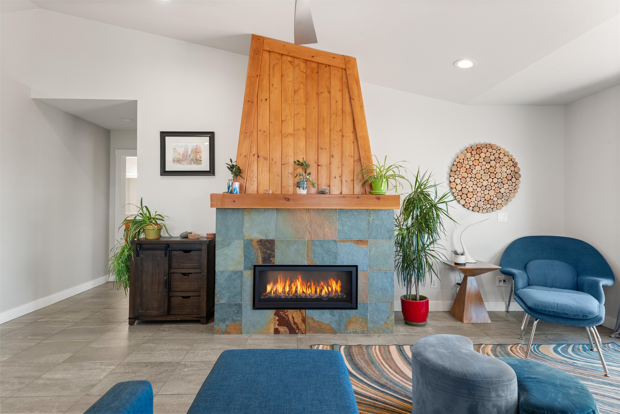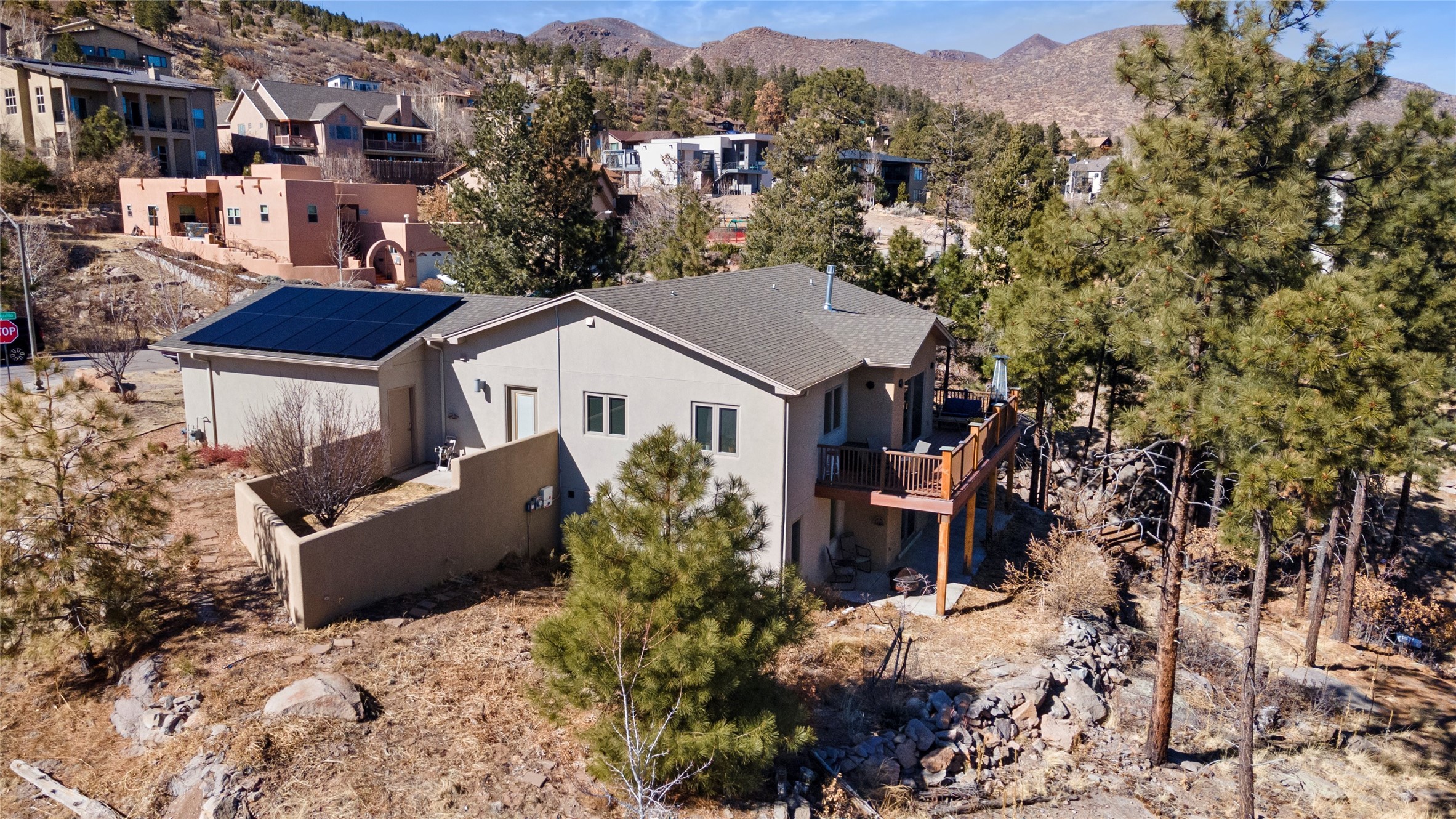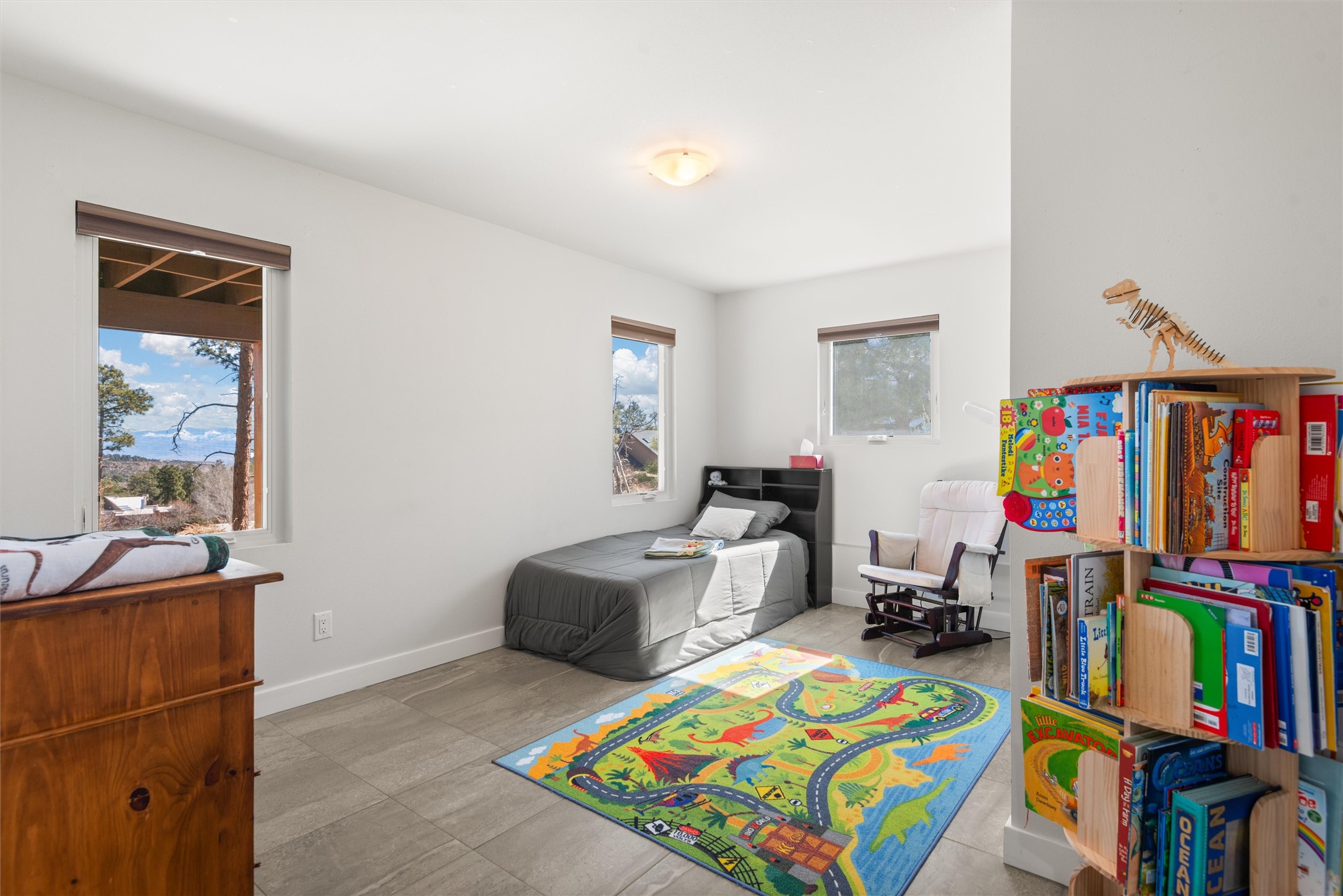 Welcome to this beautifully designed home, where elegance meets comfort in one of Los Alamos' most sought-after neighborhoods. From the moment you arrive, you'll be drawn in by its inviting curb appeal, featuring a charming front porch with a swing--perfect for relaxing and enjoying the peaceful surroundings. The west-facing, flat driveway offers both convenience and ease year-round.Step inside to discover a bright and airy living space with soaring ceilings, high-end finishes, and expansive windows that flood the home with natural light while showcasing breathtaking views. The thoughtful layout includes three spacious bedrooms and a versatile bonus room--ideal for a home gym, media space, or creative studio.Designed with both style and efficiency in mind, this home offers year-round comfort with in-floor heating, mini-split climate control, and a striking gas fireplace that serves as the heart of the living area. Solar panels further enhance its energy efficiency, helping to reduce utility costs while embracing sustainable living.At the center of the home, the beautifully appointed kitchen exudes warmth and sophistication. Rich wood cabinetry, soft neutral tones, and a generous pantry create an inviting space that is as functional as it is stylish. Whether you're preparing meals or entertaining guests, this kitchen is designed to impress.With its seamless flow, modern amenities, and serene ambiance, this home is truly a rare find. Don't miss your chance to make it yours!