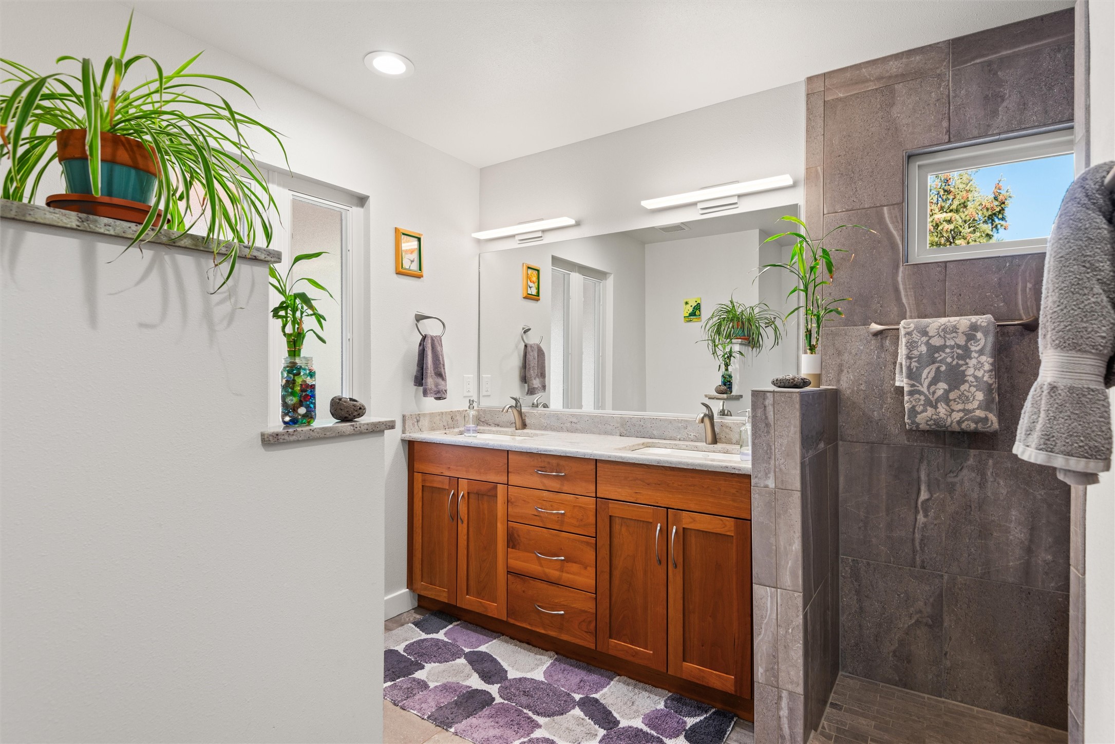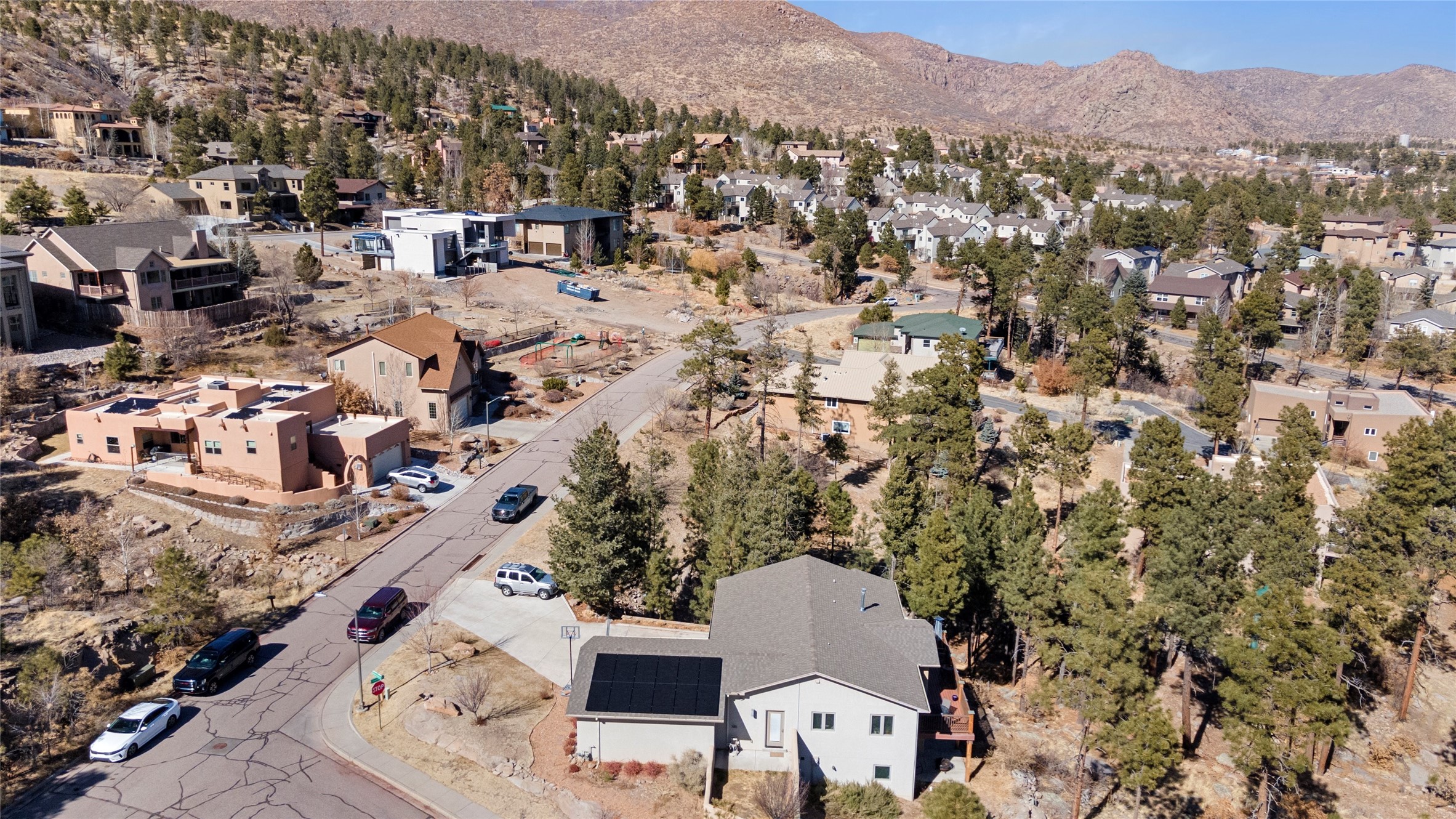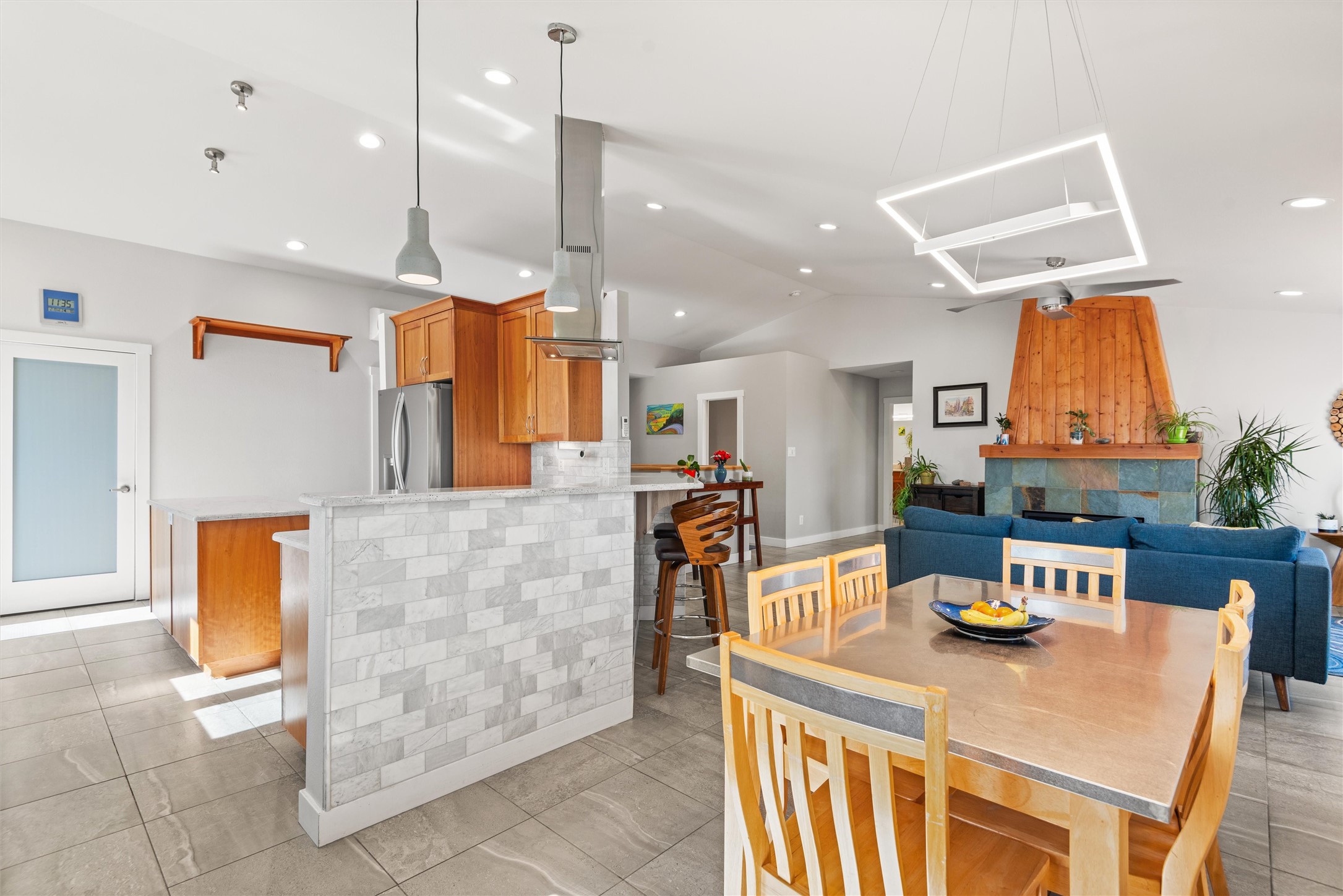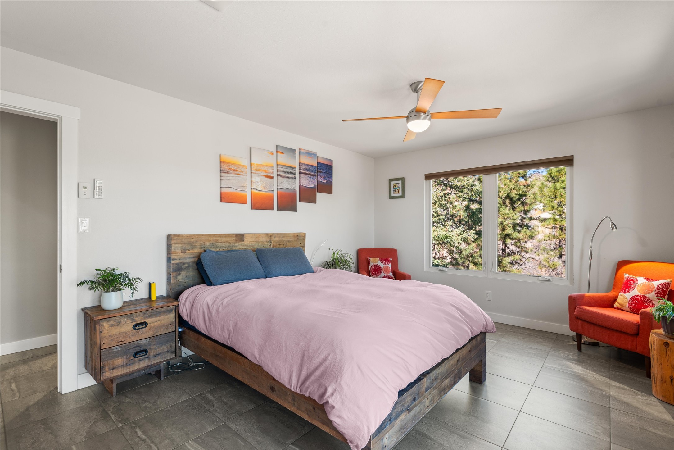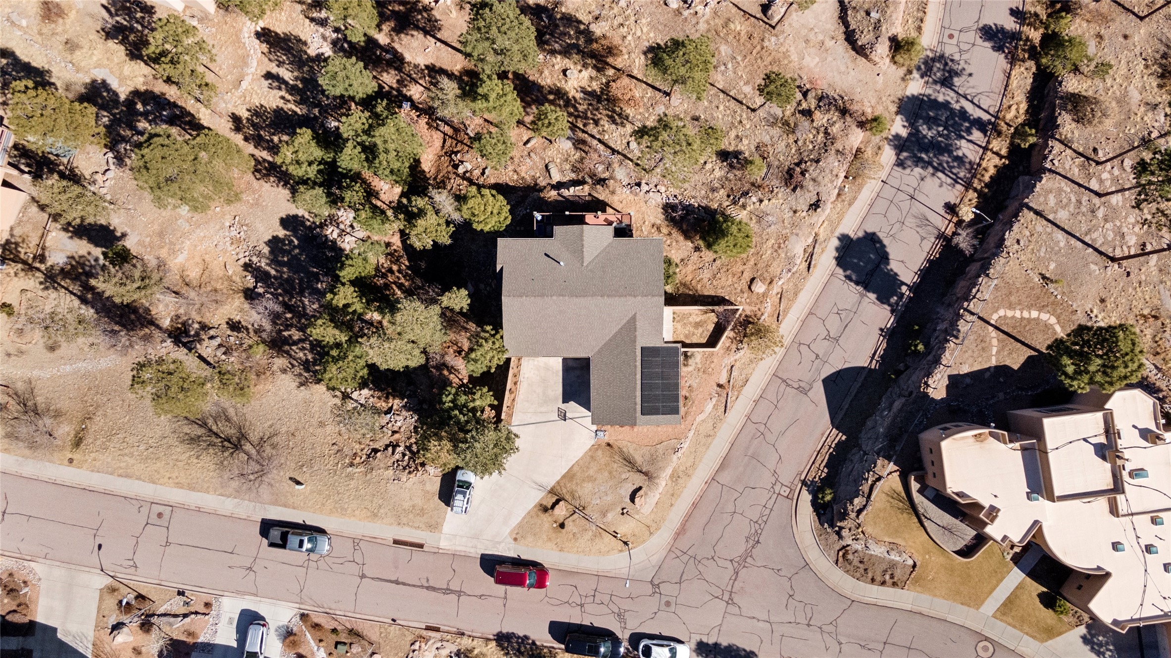 Welcome to this beautifully designed home, where elegance meets comfort in one of Los Alamos' most sought-after neighborhoods. From the moment you arrive, you'll be drawn in by its inviting curb appeal, featuring a charming front porch with a swing--perfect for relaxing and enjoying the peaceful surroundings. The west-facing, flat driveway offers both convenience and ease year-round.Step inside to discover a bright and airy living space with soaring ceilings, high-end finishes, and expansive windows that flood the home with natural light while showcasing breathtaking views. The thoughtful layout includes three spacious bedrooms and a versatile bonus room--ideal for a home gym, media space, or creative studio.Designed with both style and efficiency in mind, this home offers year-round comfort with in-floor heating, mini-split climate control, and a striking gas fireplace that serves as the heart of the living area. Solar panels further enhance its energy efficiency, helping to reduce utility costs while embracing sustainable living.At the center of the home, the beautifully appointed kitchen exudes warmth and sophistication. Rich wood cabinetry, soft neutral tones, and a generous pantry create an inviting space that is as functional as it is stylish. Whether you're preparing meals or entertaining guests, this kitchen is designed to impress.With its seamless flow, modern amenities, and serene ambiance, this home is truly a rare find. Don't miss your chance to make it yours!