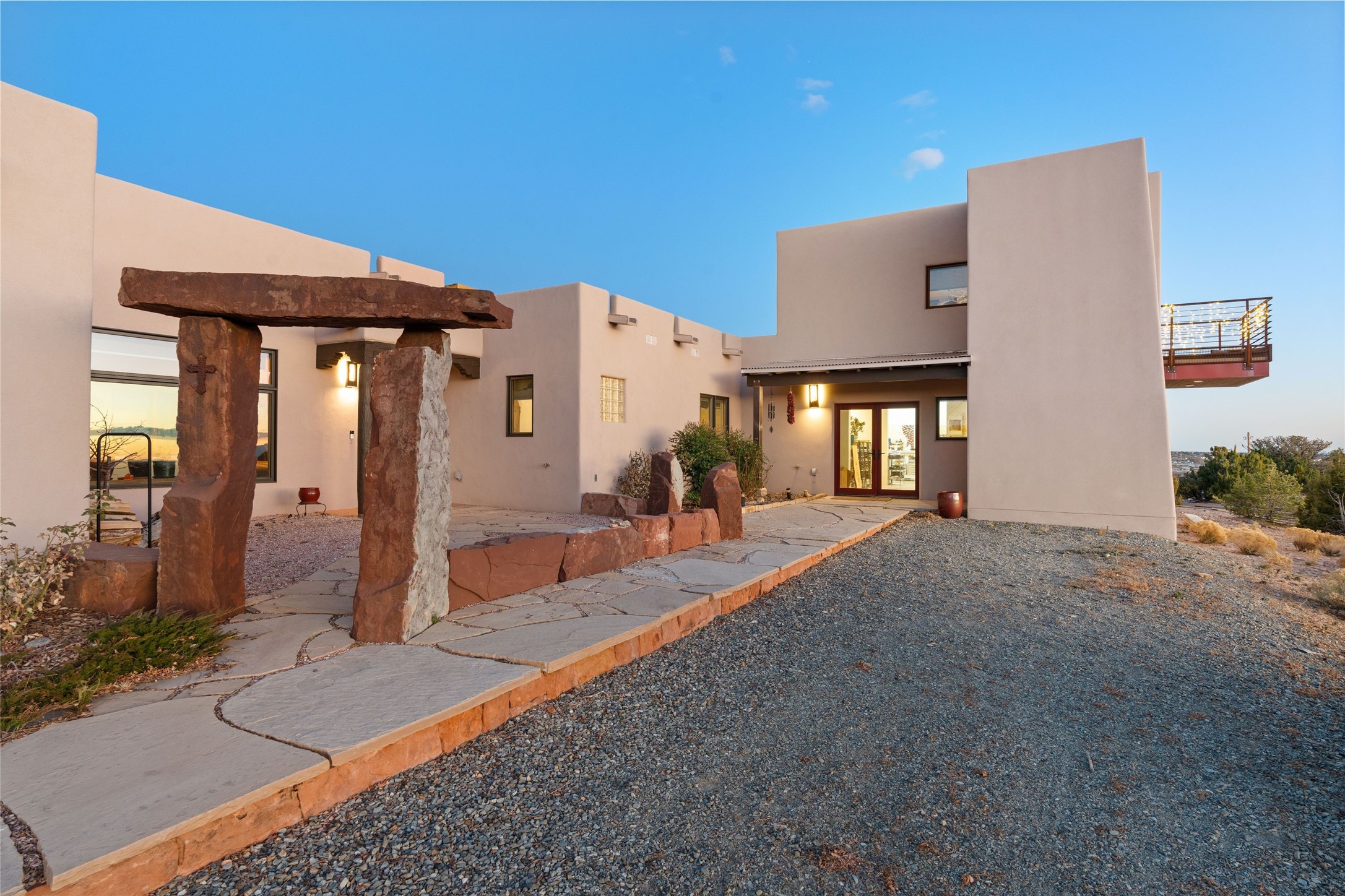 An Artist's Dream Oasis awaits the new owners of this fabulous property! You will have stunning sunrises and sunsets from this well located home on the west ridge overlooking Santa Fe. Just 3.5 miles from the Plaza, the 360 views will enthrall everyone. The 3 bedroom 3 bath main home has two suites, one of which has been successfully used as a vacation rental...it can be a mother-in law suite as well with it's own entrance and outdoor sitting area. The house has had most every detail updated with high end finishes. New windows and doors, new mini-split, new lighting. The kitchen and primary bathroom were remodeled in 2019 with upscale cabinets, appliances and countertops. The 2009 sq. ft. studio/guest house is a professional artist's dream, completed in 2019 with soaring ceilings, fabulous work spaces and an art storage loft. The possibilities are endless as there is kitchen area and 3/4 bath, with rooms that could be bedrooms or living space. It's a must see - must buy home for your Santa Fe life style! See attached documents for a list of upgrades and amenities.