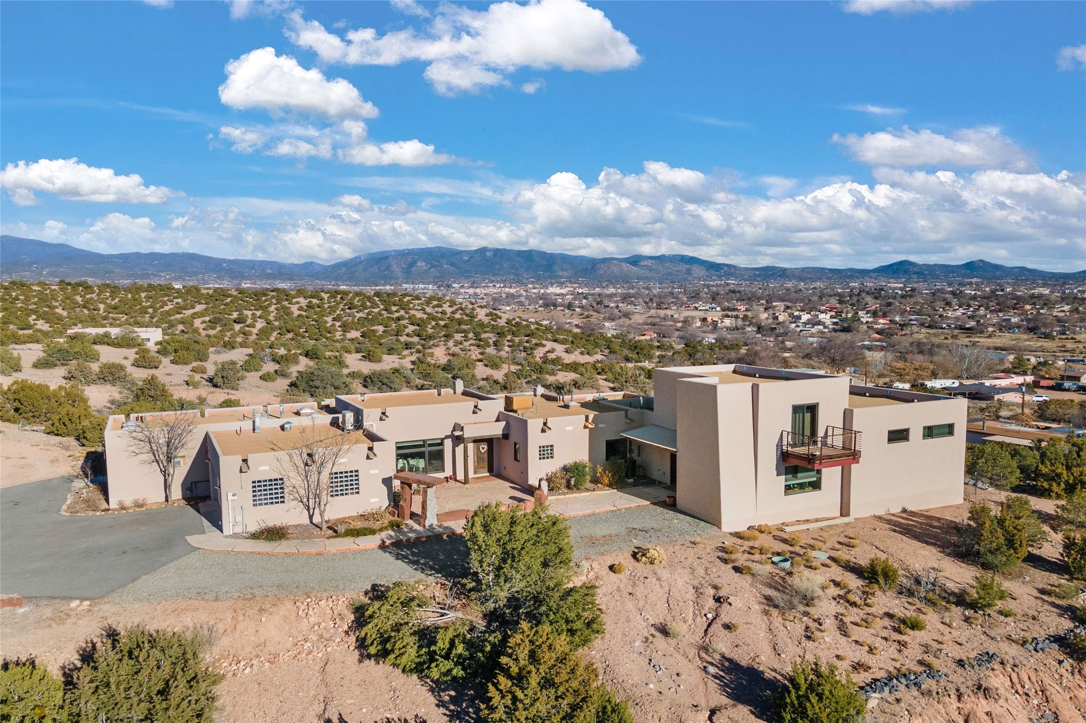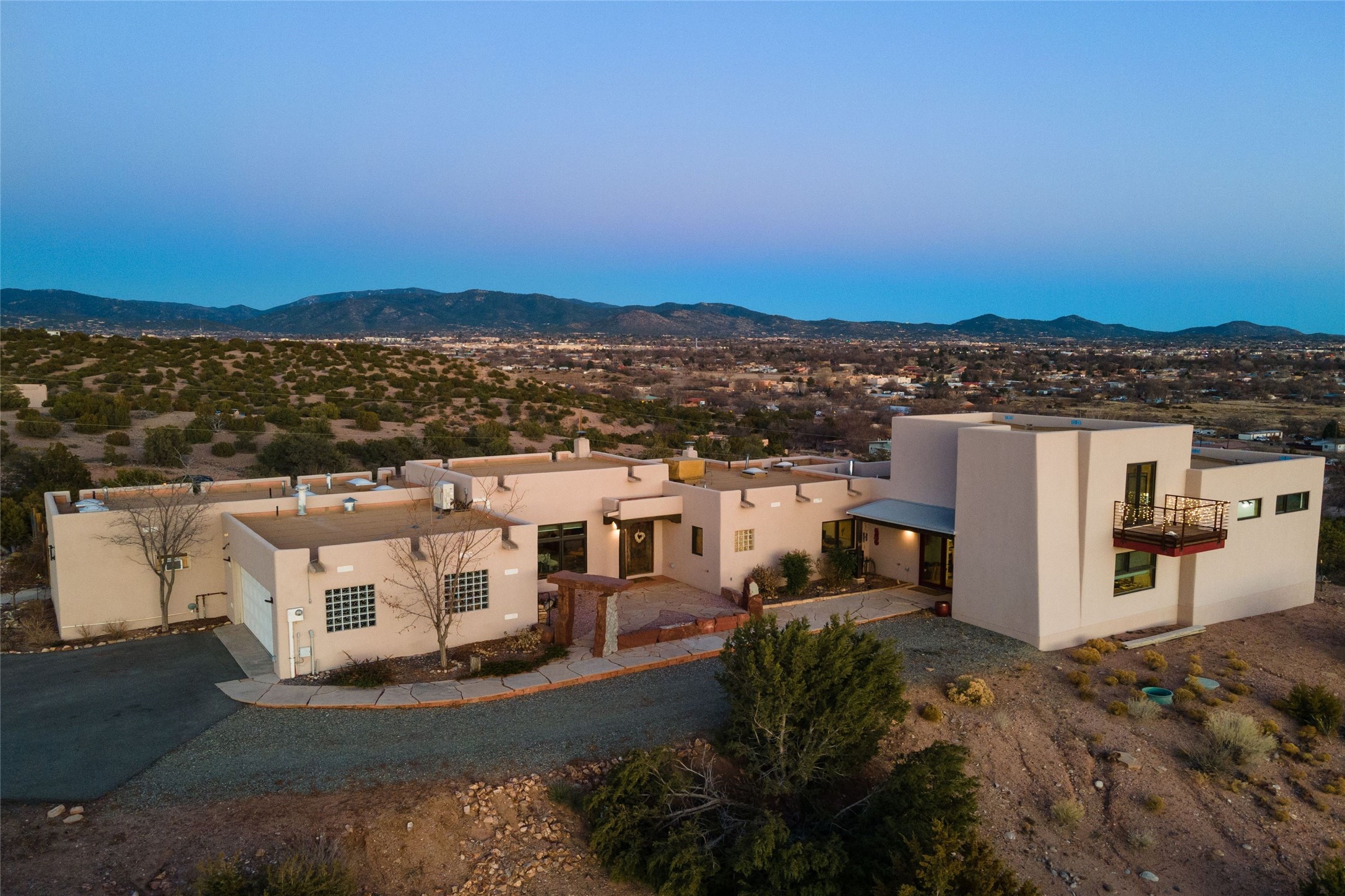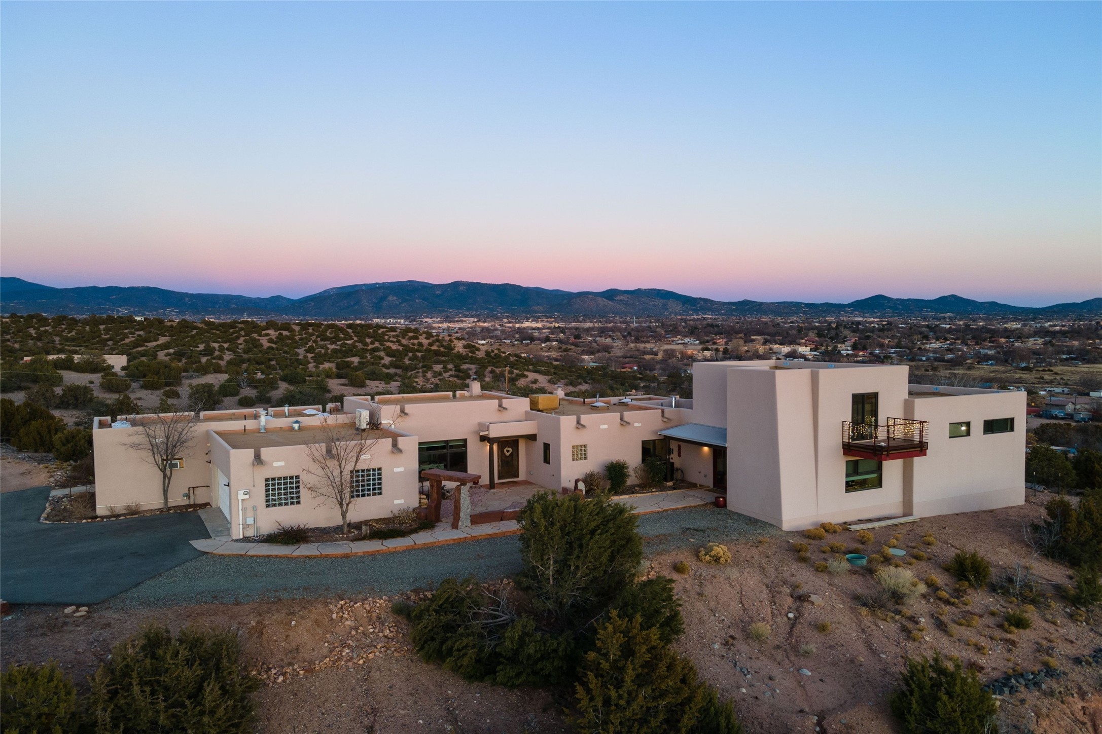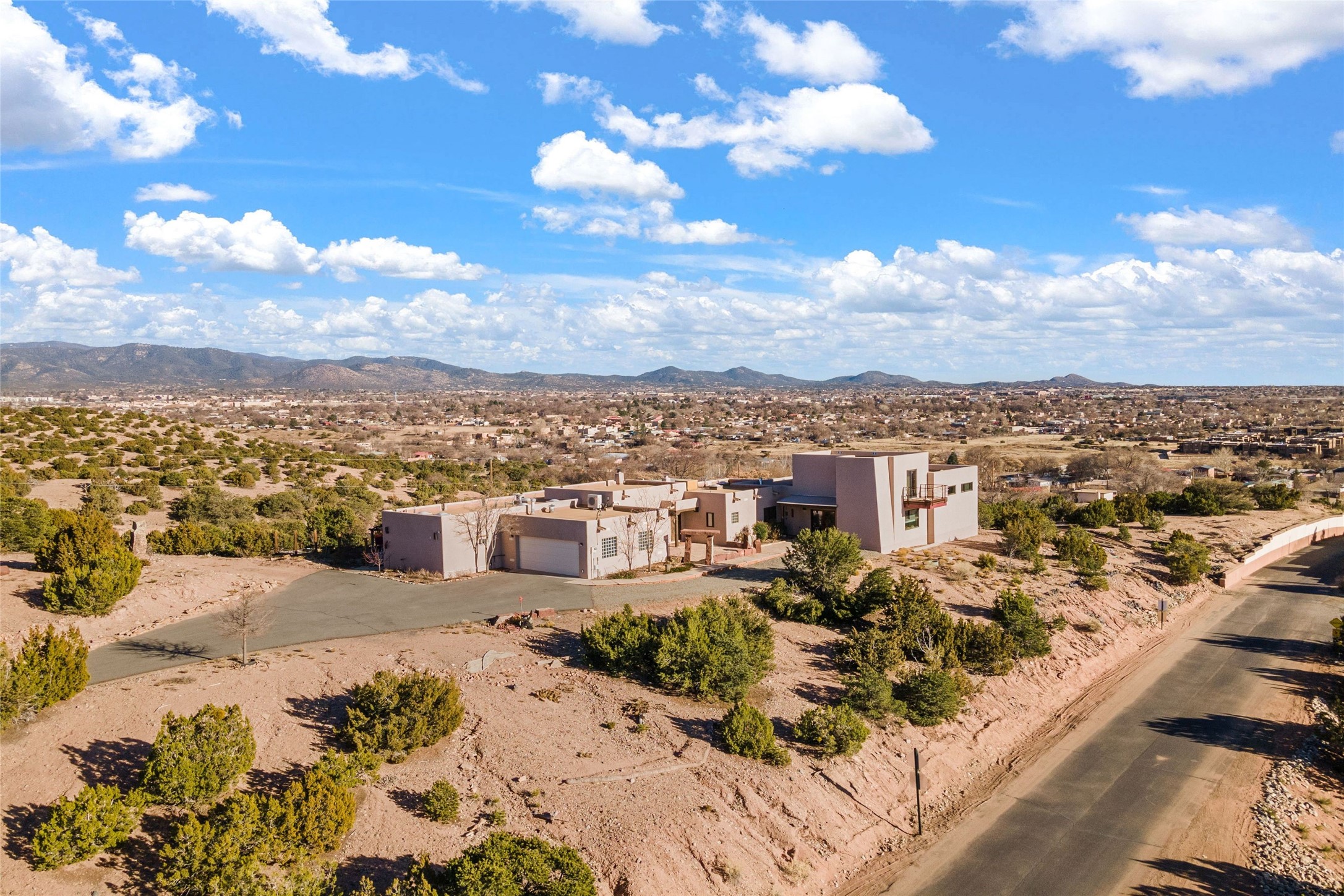 An Artist's Dream Oasis awaits the new owners of this fabulous property! You will have stunning sunrises and sunsets from this well located home on the west ridge overlooking Santa Fe. Just 3.5 miles from the Plaza, the 360 views will enthrall everyone. The 3 bedroom 3 bath main home has two suites, one of which has been successfully used as a vacation rental...it can be a mother-in law suite as well with it's own entrance and outdoor sitting area. The house has had most every detail updated with high end finishes. New windows and doors, new mini-split, new lighting. The kitchen and primary bathroom were remodeled in 2019 with upscale cabinets, appliances and countertops. The 2009 sq. ft. studio/guest house is a professional artist's dream, completed in 2019 with soaring ceilings, fabulous work spaces and an art storage loft. The possibilities are endless as there is kitchen area and 3/4 bath, with rooms that could be bedrooms or living space. It's a must see - must buy home for your Santa Fe life style! See attached documents for a list of upgrades and amenities.