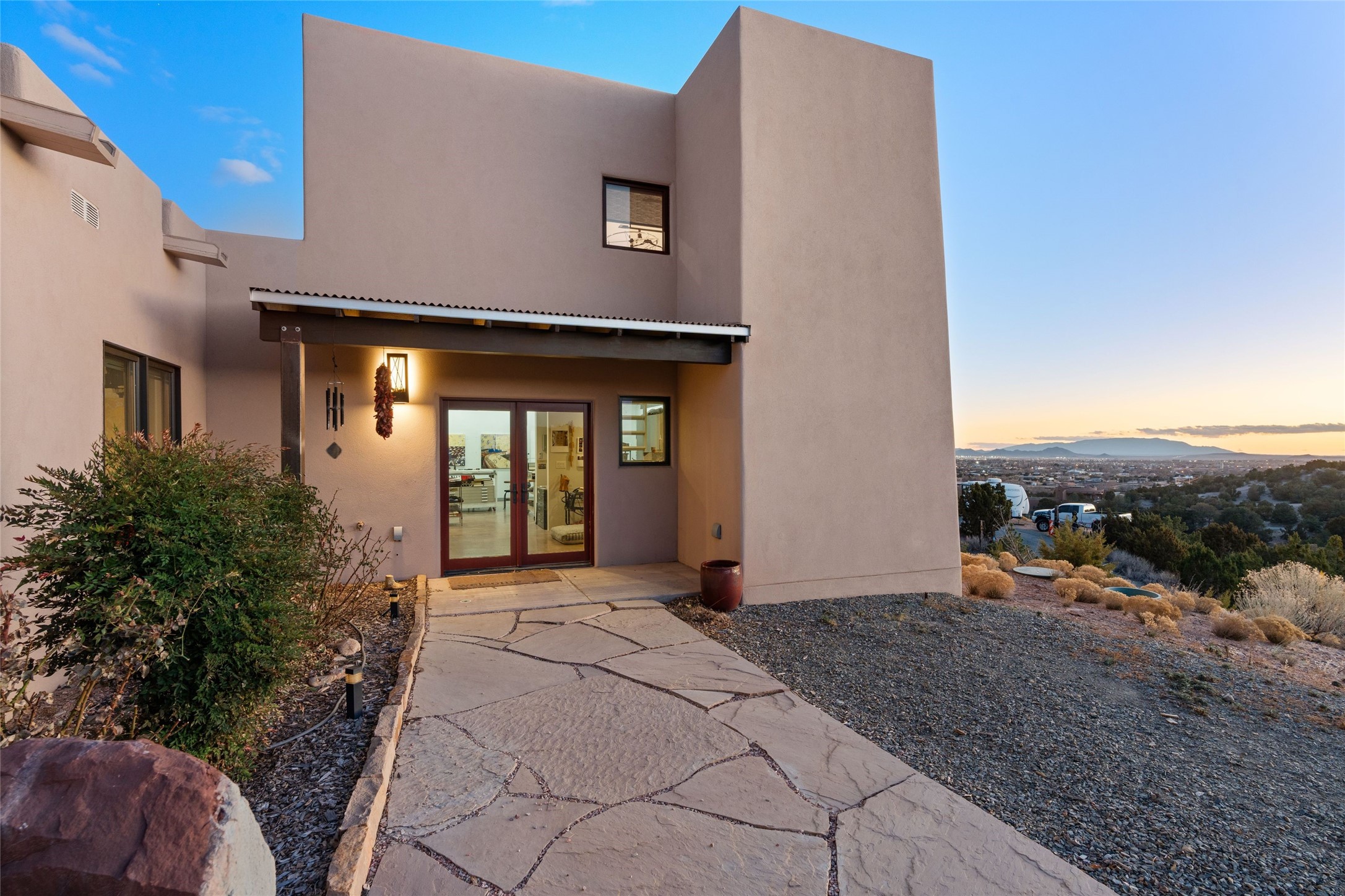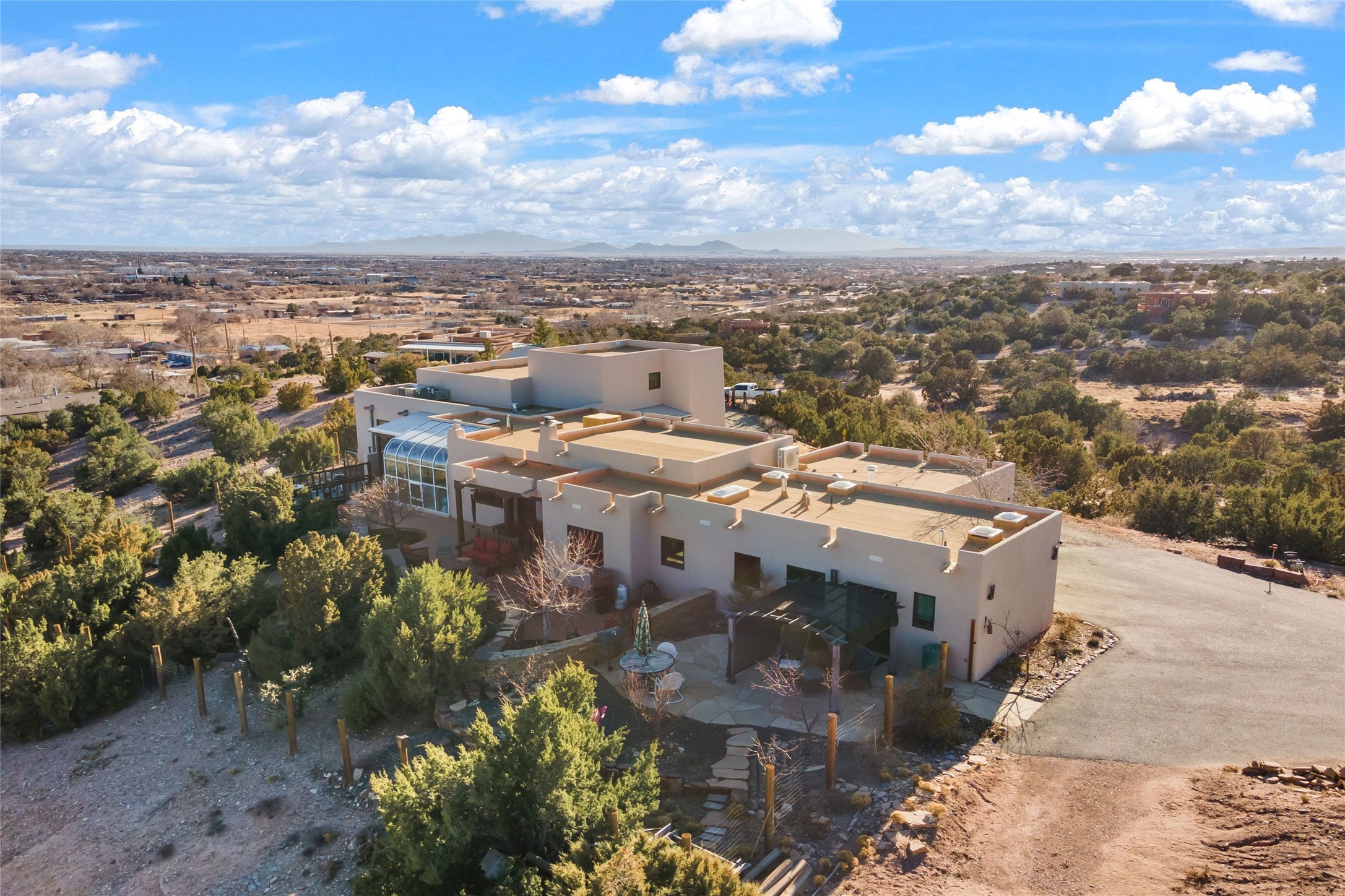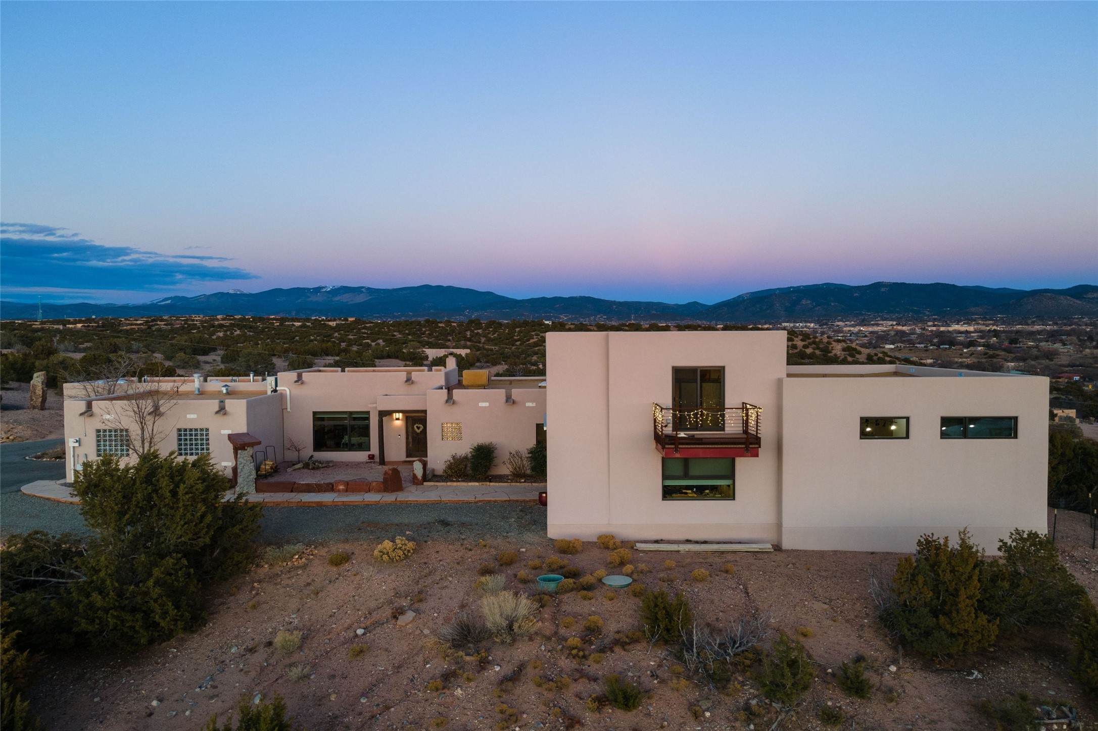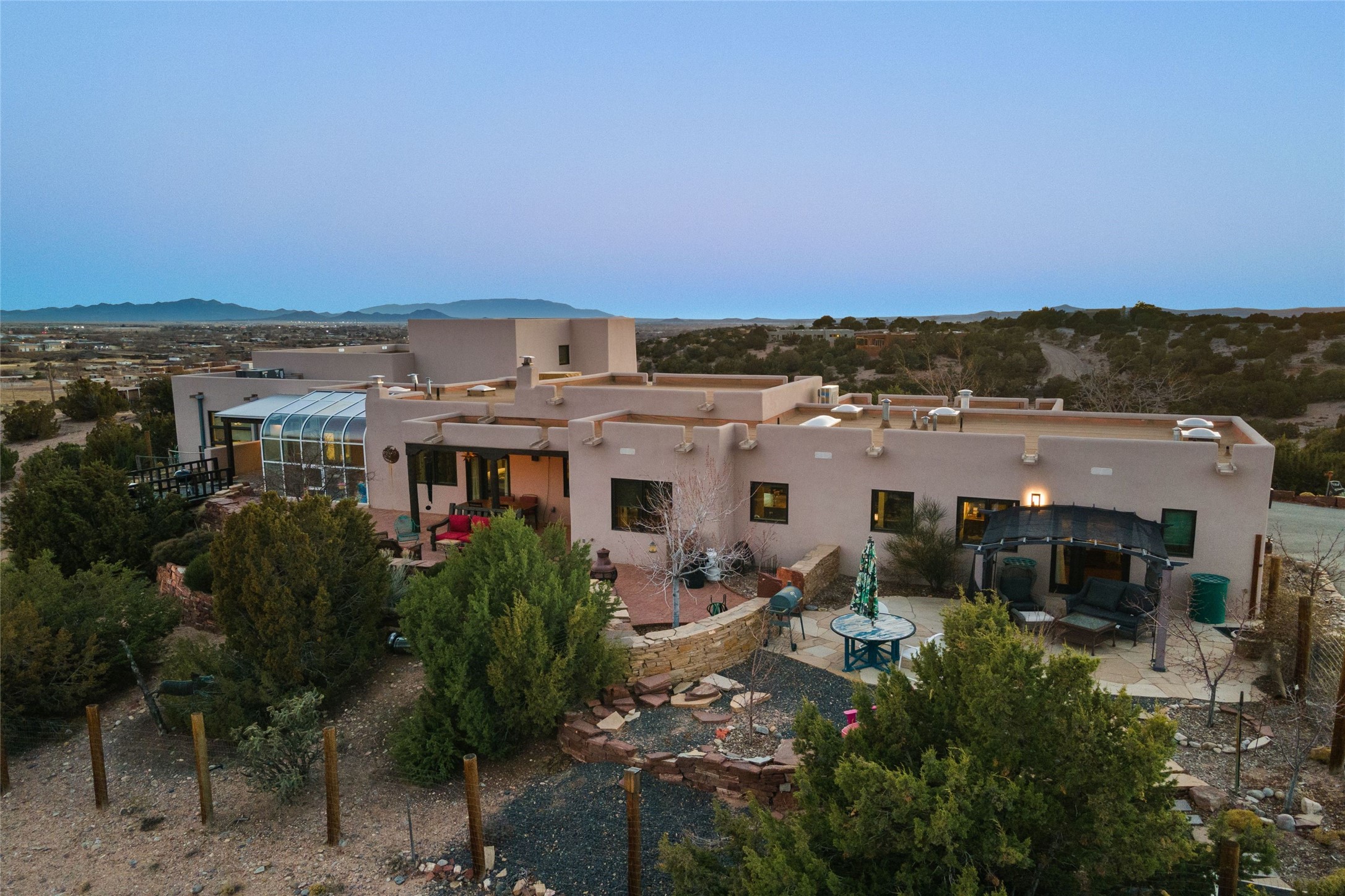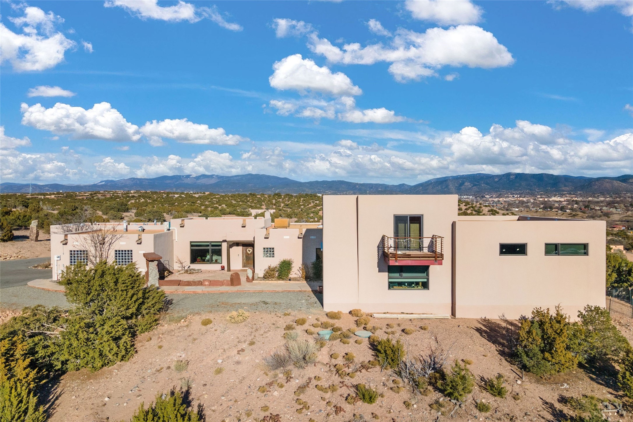 An Artist's Dream Oasis awaits the new owners of this fabulous property! You will have stunning sunrises and sunsets from this well located home on the west ridge overlooking Santa Fe. Just 3.5 miles from the Plaza, the 360 views will enthrall everyone. The 3 bedroom 3 bath main home has two suites, one of which has been successfully used as a vacation rental...it can be a mother-in law suite as well with it's own entrance and outdoor sitting area. The house has had most every detail updated with high end finishes. New windows and doors, new mini-split, new lighting. The kitchen and primary bathroom were remodeled in 2019 with upscale cabinets, appliances and countertops. The 2009 sq. ft. studio/guest house is a professional artist's dream, completed in 2019 with soaring ceilings, fabulous work spaces and an art storage loft. The possibilities are endless as there is kitchen area and 3/4 bath, with rooms that could be bedrooms or living space. It's a must see - must buy home for your Santa Fe life style! See attached documents for a list of upgrades and amenities.
