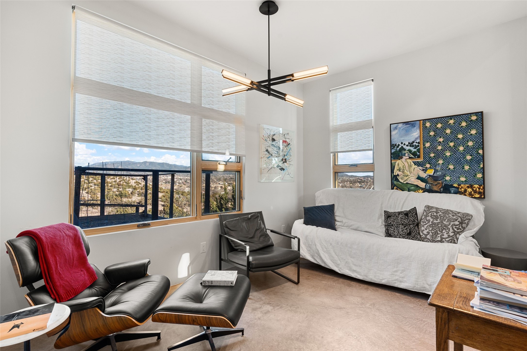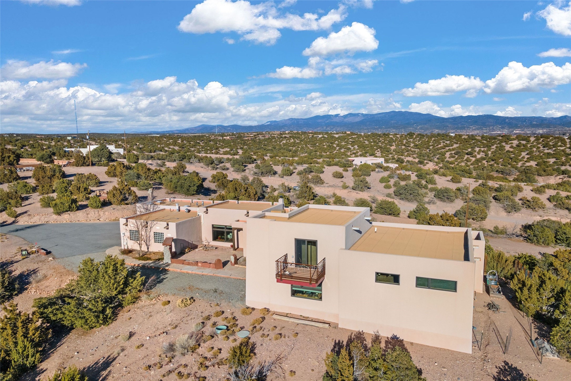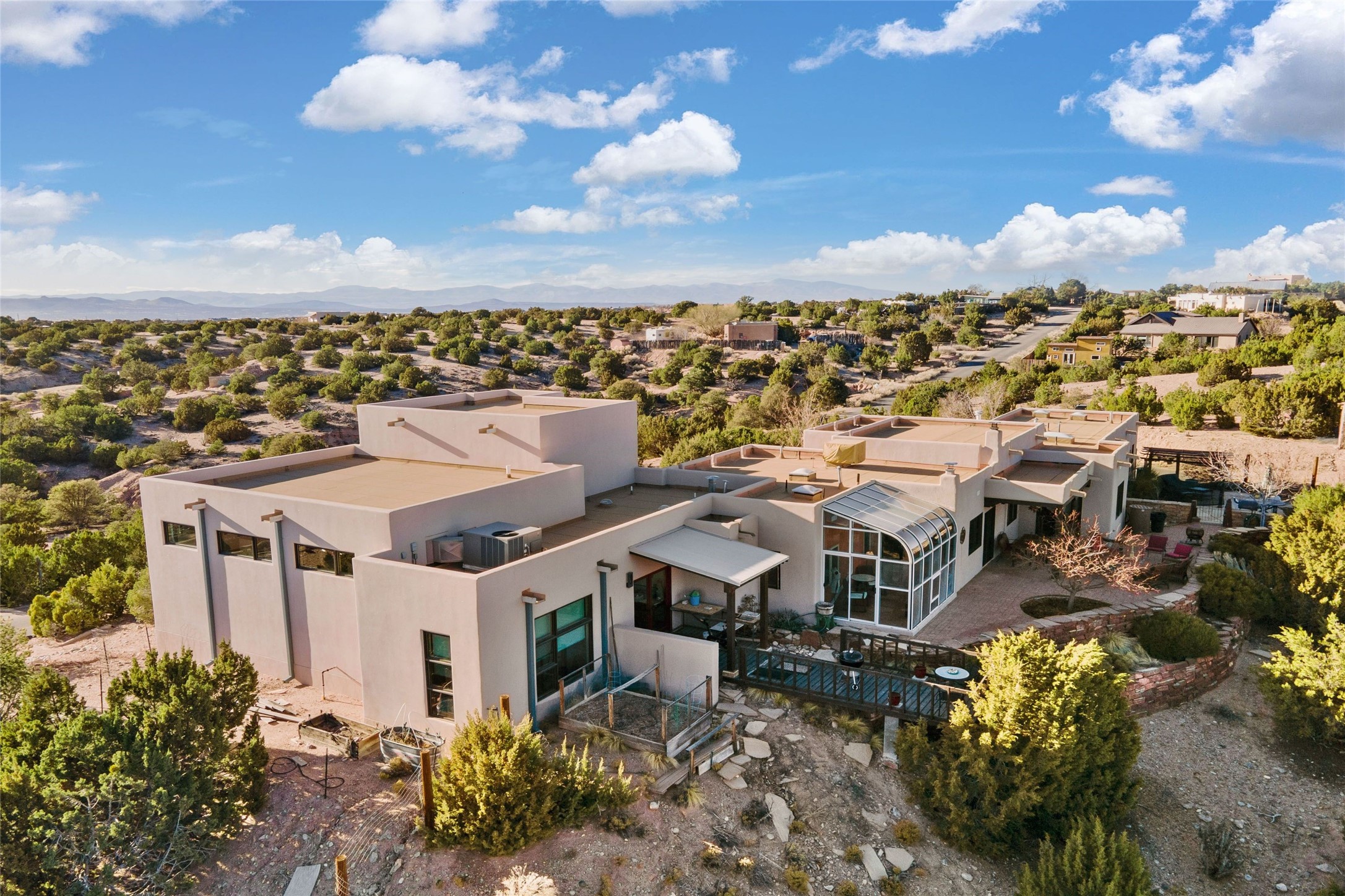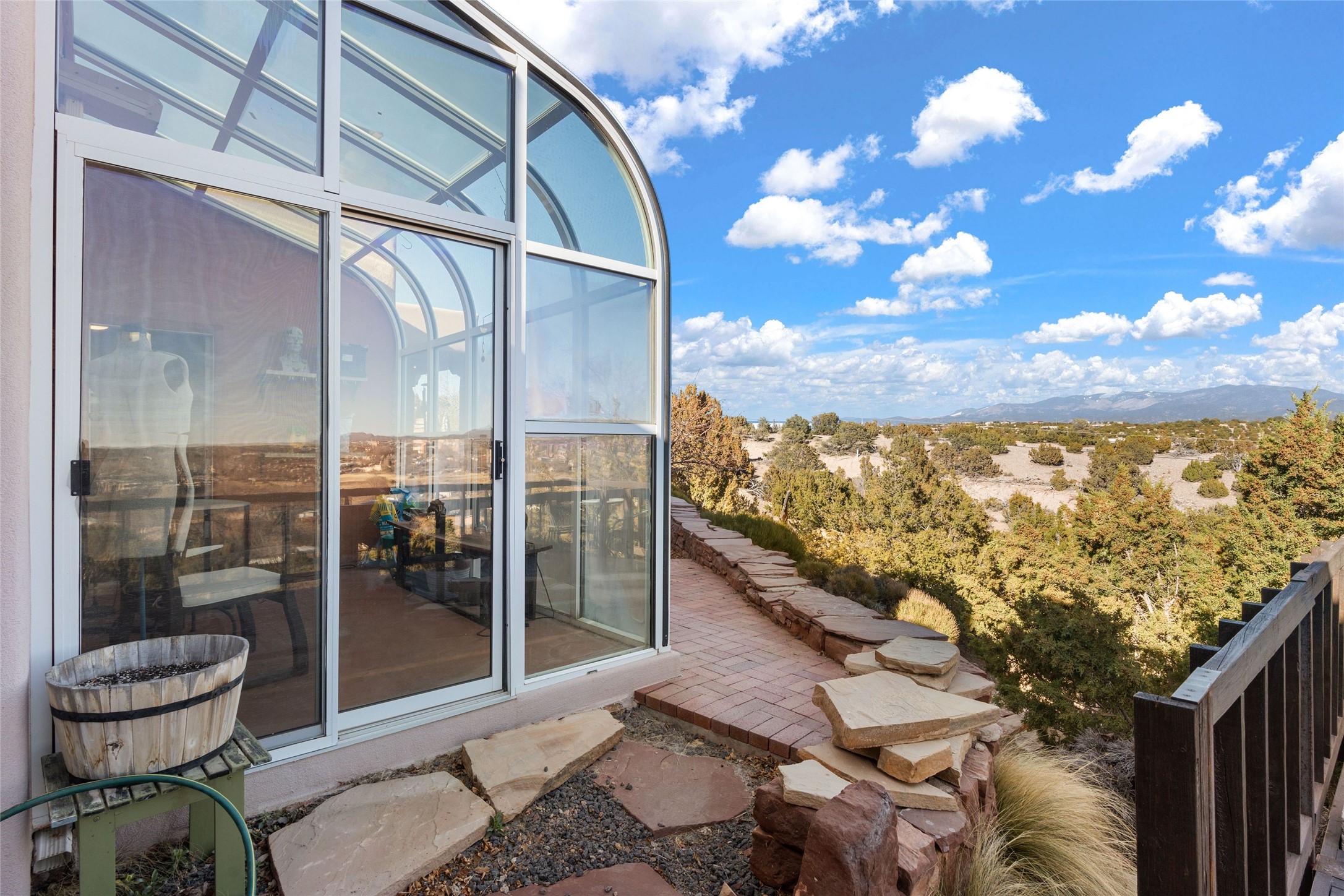 An Artist's Dream Oasis awaits the new owners of this fabulous property! You will have stunning sunrises and sunsets from this well located home on the west ridge overlooking Santa Fe. Just 3.5 miles from the Plaza, the 360 views will enthrall everyone. The 3 bedroom 3 bath main home has two suites, one of which has been successfully used as a vacation rental...it can be a mother-in law suite as well with it's own entrance and outdoor sitting area. The house has had most every detail updated with high end finishes. New windows and doors, new mini-split, new lighting. The kitchen and primary bathroom were remodeled in 2019 with upscale cabinets, appliances and countertops. The 2009 sq. ft. studio/guest house is a professional artist's dream, completed in 2019 with soaring ceilings, fabulous work spaces and an art storage loft. The possibilities are endless as there is kitchen area and 3/4 bath, with rooms that could be bedrooms or living space. It's a must see - must buy home for your Santa Fe life style! See attached documents for a list of upgrades and amenities.