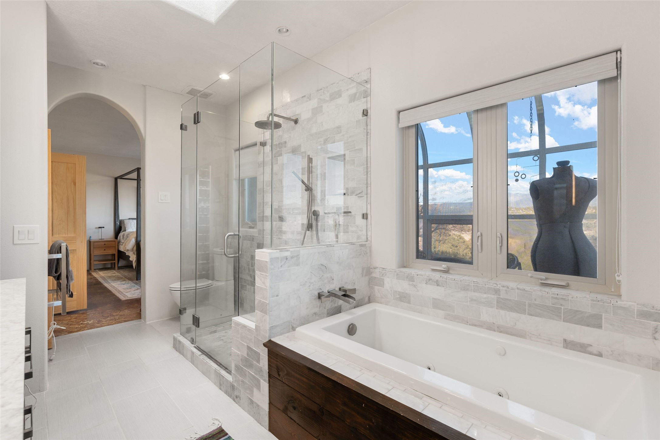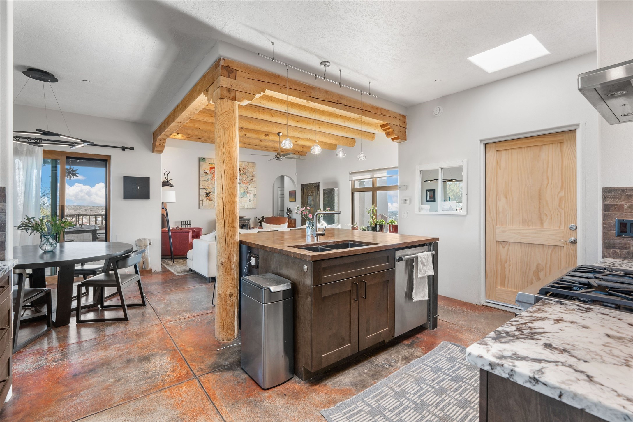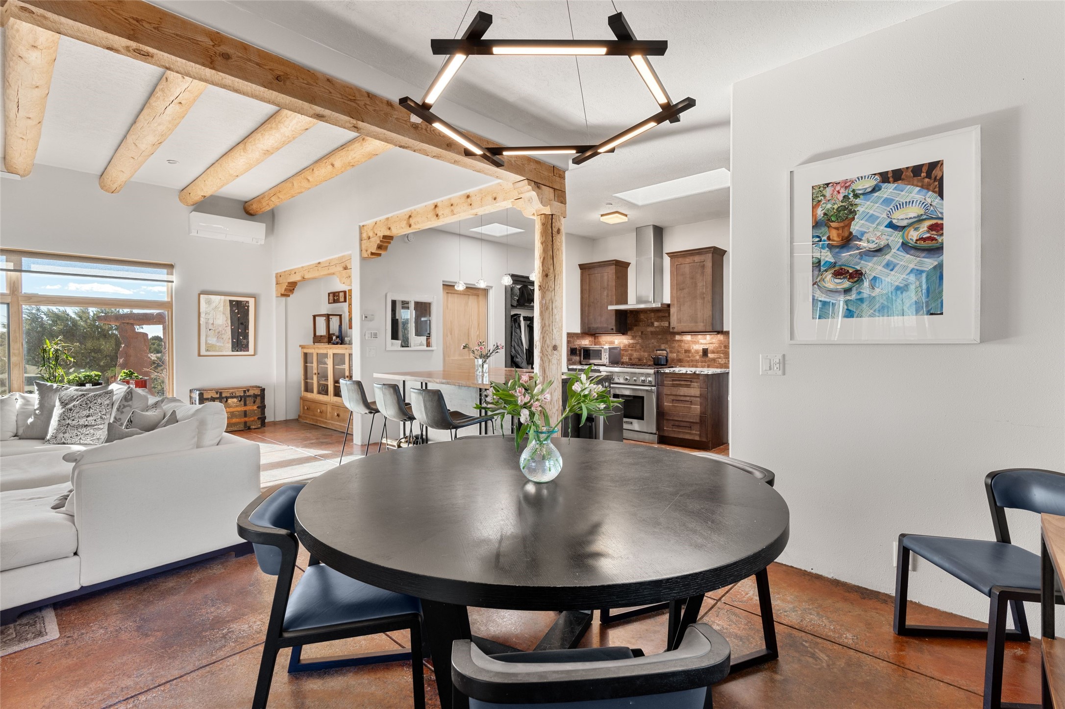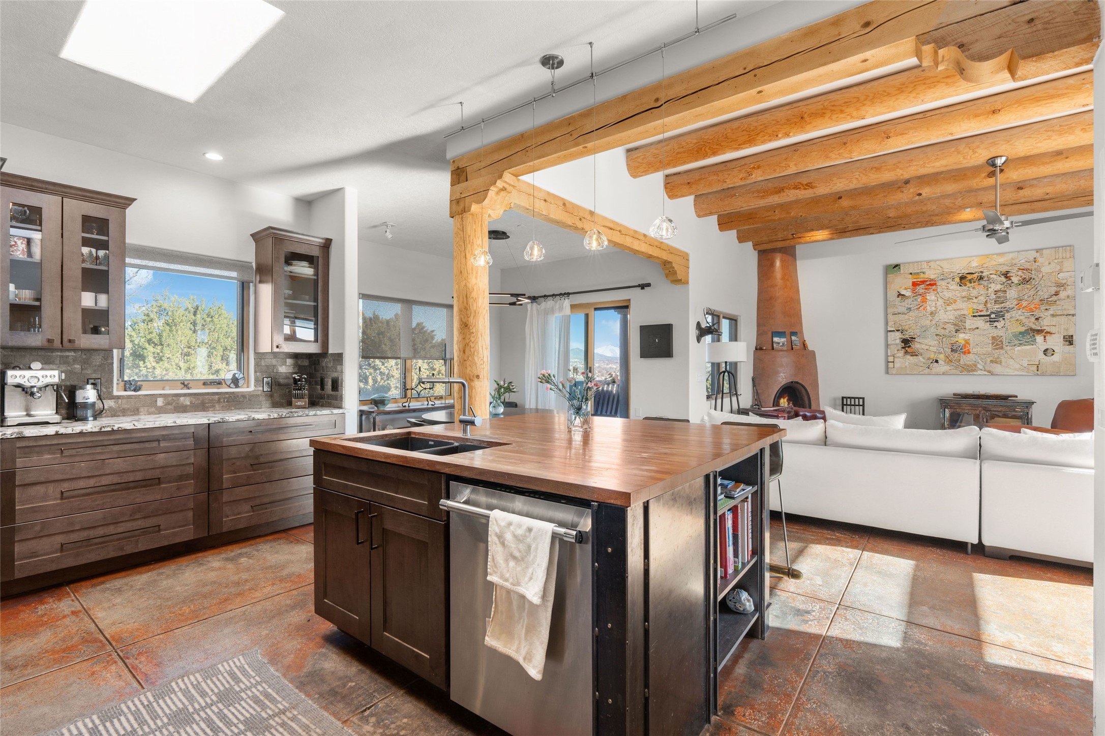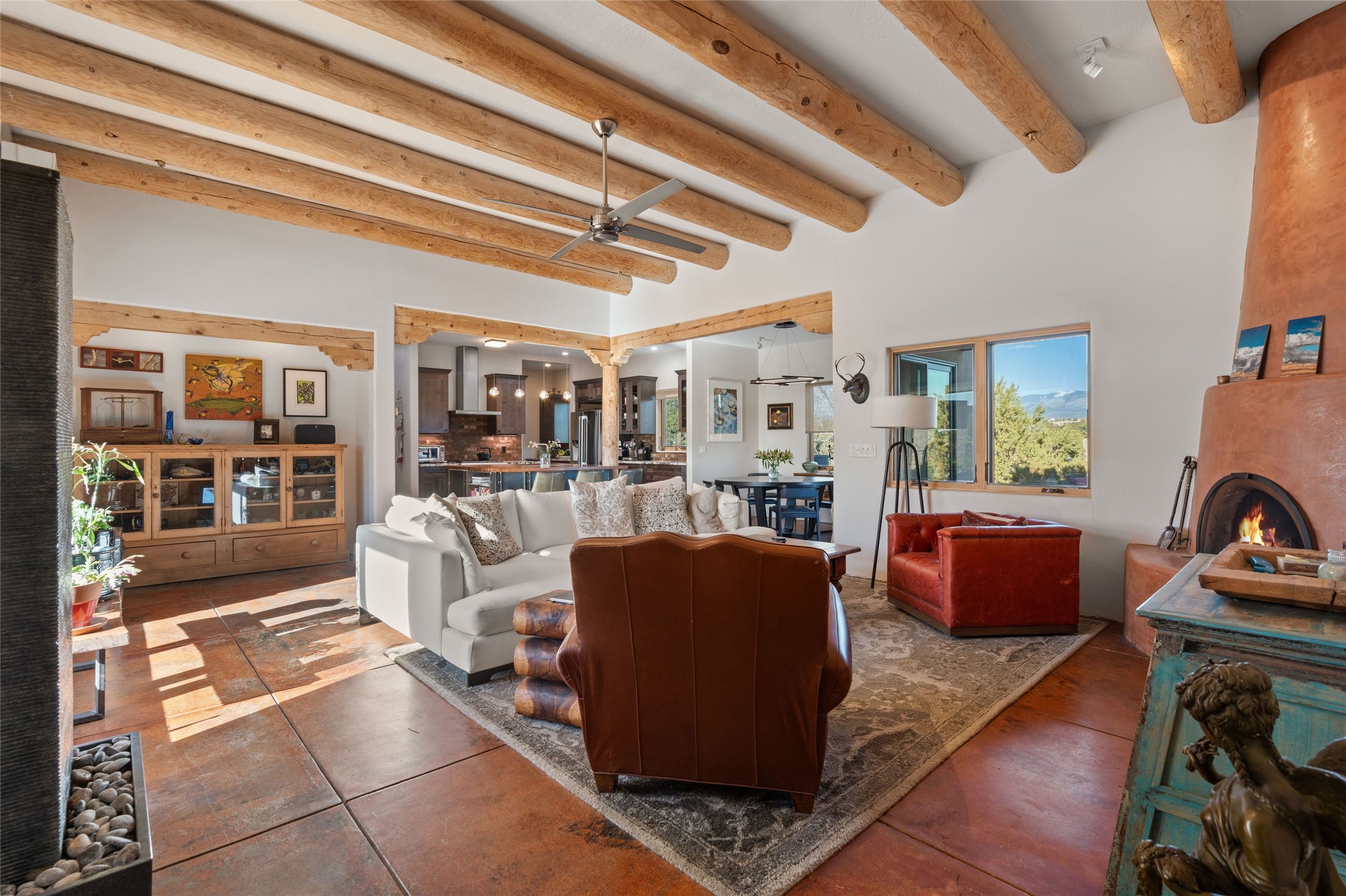An Artist's Dream Oasis awaits the new owners of this fabulous property! You will have stunning sunrises and sunsets from this well located home on the west ridge overlooking Santa Fe. Just 3.5 miles from the Plaza, the 360 views will enthrall everyone. The 3 bedroom 3 bath main home has two suites, one of which has been successfully used as a vacation rental...it can be a mother-in law suite as well with it's own entrance and outdoor sitting area. The house has had most every detail updated with high end finishes. New windows and doors, new mini-split, new lighting. The kitchen and primary bathroom were remodeled in 2019 with upscale cabinets, appliances and countertops. The 2009 sq. ft. studio/guest house is a professional artist's dream, completed in 2019 with soaring ceilings, fabulous work spaces and an art storage loft. The possibilities are endless as there is kitchen area and 3/4 bath, with rooms that could be bedrooms or living space. It's a must see - must buy home for your Santa Fe life style! See attached documents for a list of upgrades and amenities.