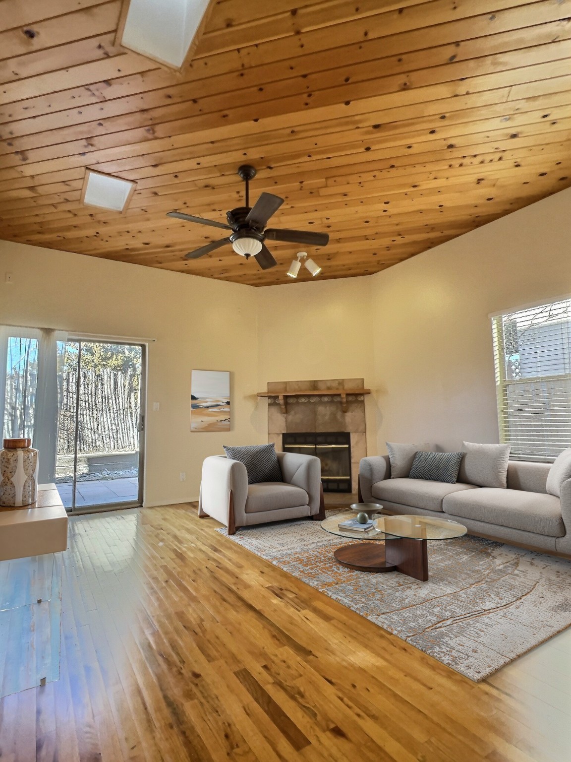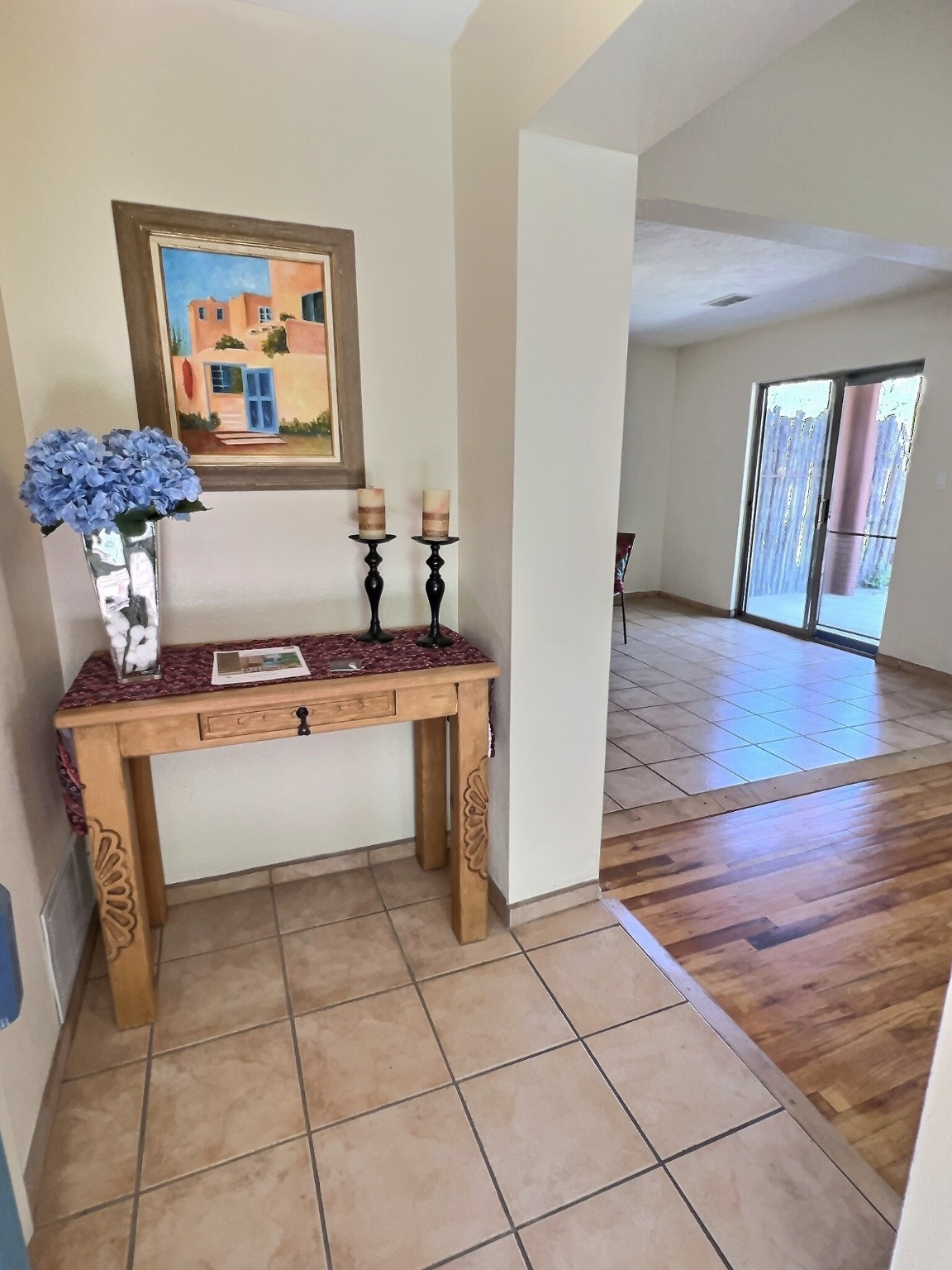Charming Santa Fe Retreat with Stunning Views!Tucked away in a peaceful cul-de-sac, this delightful 3-bedroom, 2.5-bathroom home offers the perfect blend of comfort, convenience, and natural beauty. With lovely views and direct access to a serene greenbelt, this property is a rare find in one of Santa Fe's most desirable locations.Step inside to discover a warm and welcoming interior featuring a cozy fireplace, ideal for chilly evenings. The open-concept layout flows effortlessly, creating a perfect space for both relaxing and entertaining. Upstairs, the primary suite is a true retreat with its own private balcony, a perfect spot to enjoy your morning coffee while taking in the views. Two additional bedrooms provide flexibility for guests, a home office, or a growing family.The central location places you minutes from the Santa Fe Place Mall, local schools, parks, and scenic walking paths, making daily errands and weekend adventures a breeze. At the Genoveva Chavez Community Center, you'll enjoy easy access to top-tier fitness facilities, ice skating, swimming, and more - all just one minute away.Nestled in a quiet cul-de-sac, this property offers a peaceful retreat with minimal traffic - ideal for kids at play or evening strolls. Whether you're relaxing in the cozy living area, entertaining in the open-concept kitchen and dining space, or enjoying the nearby amenities, this home checks all the boxes.
